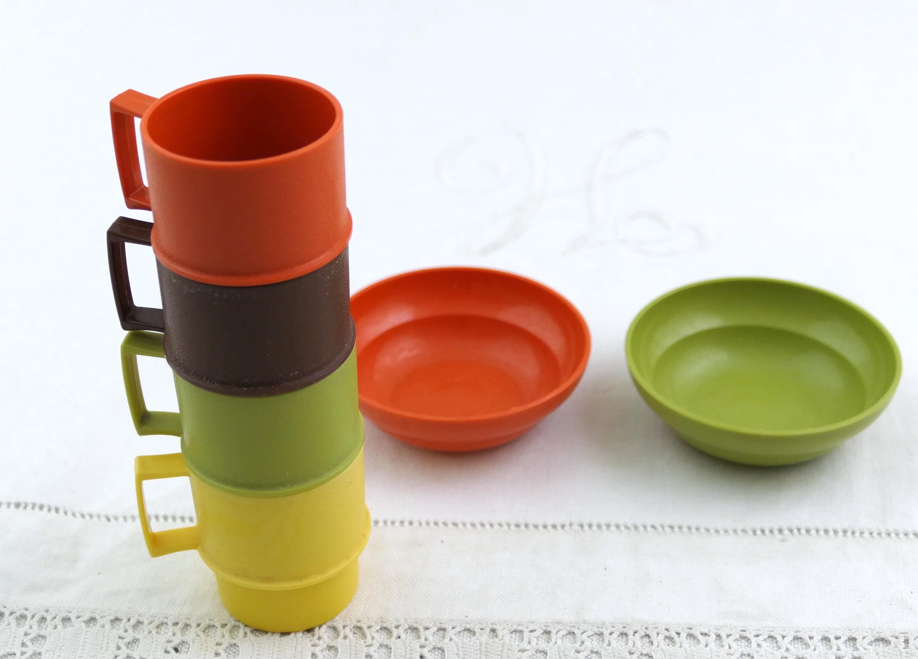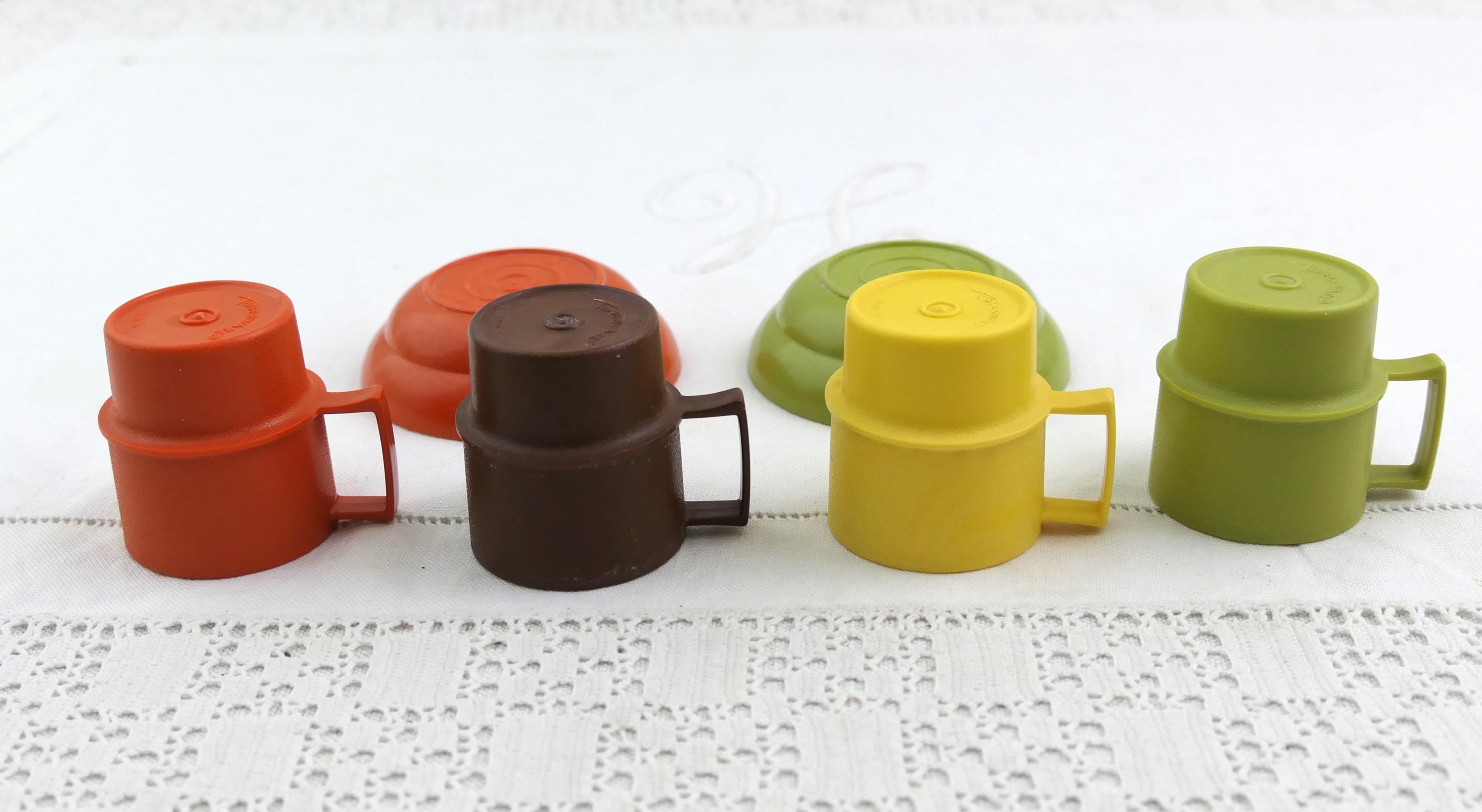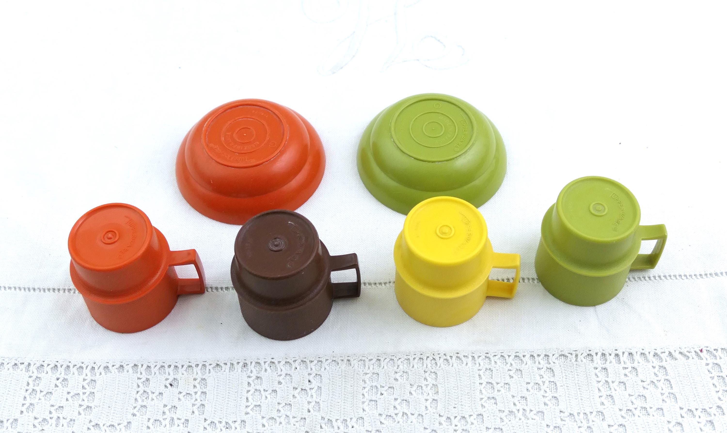 Vintage Tupperware toy incomplete set of 4 cups and 2 saucers. Made by Tupperware of strong plastic. Ca 1970s.
