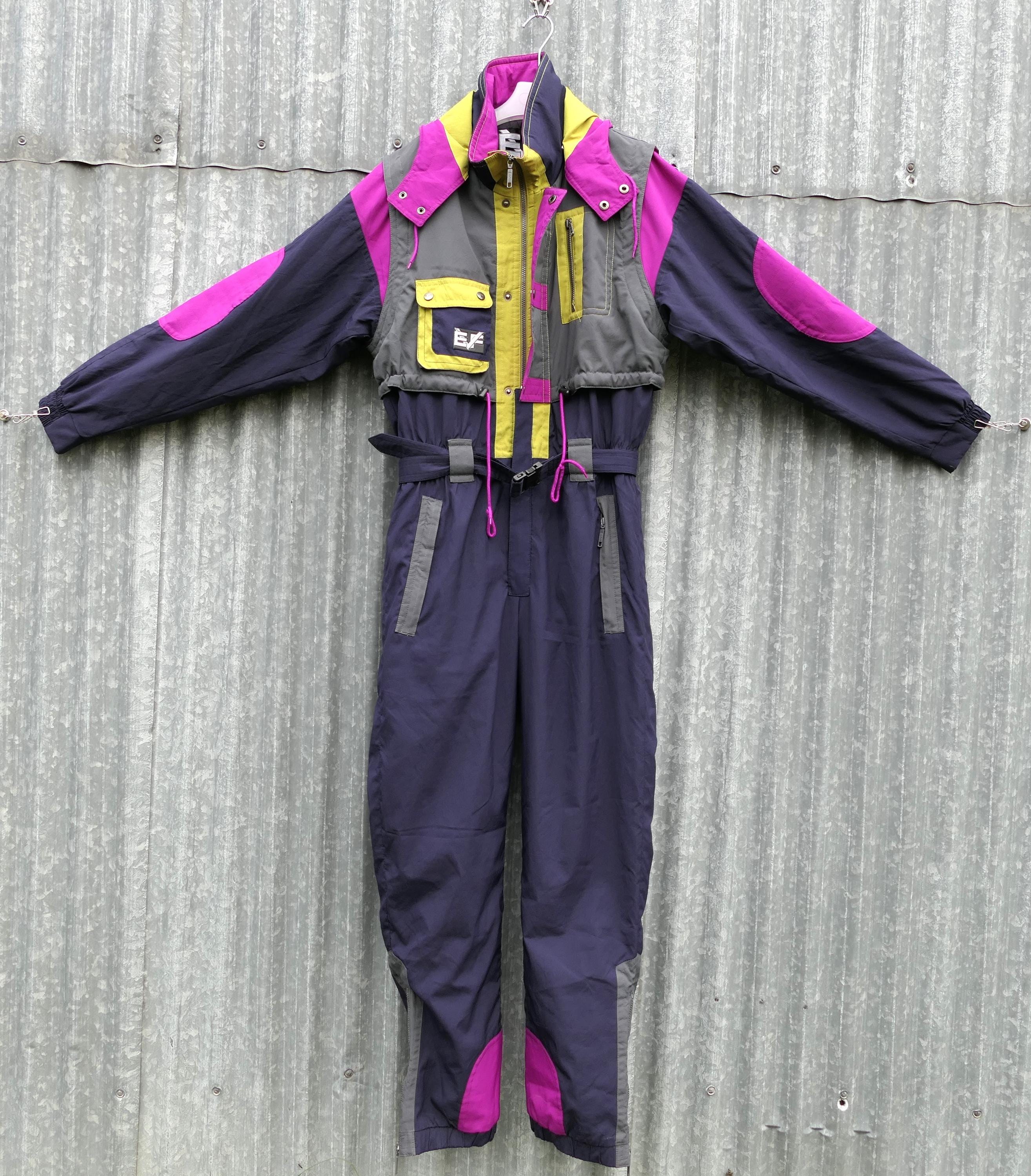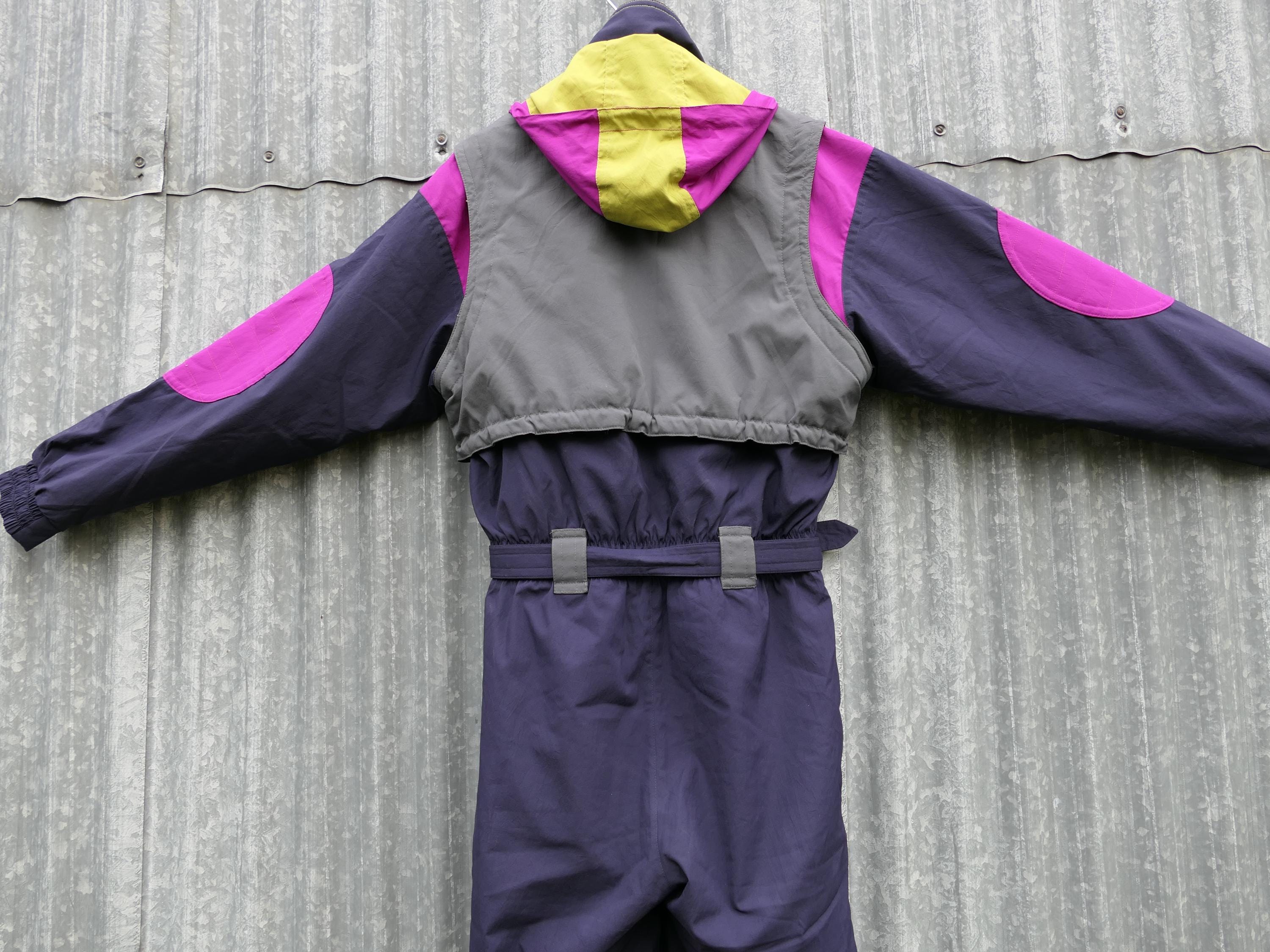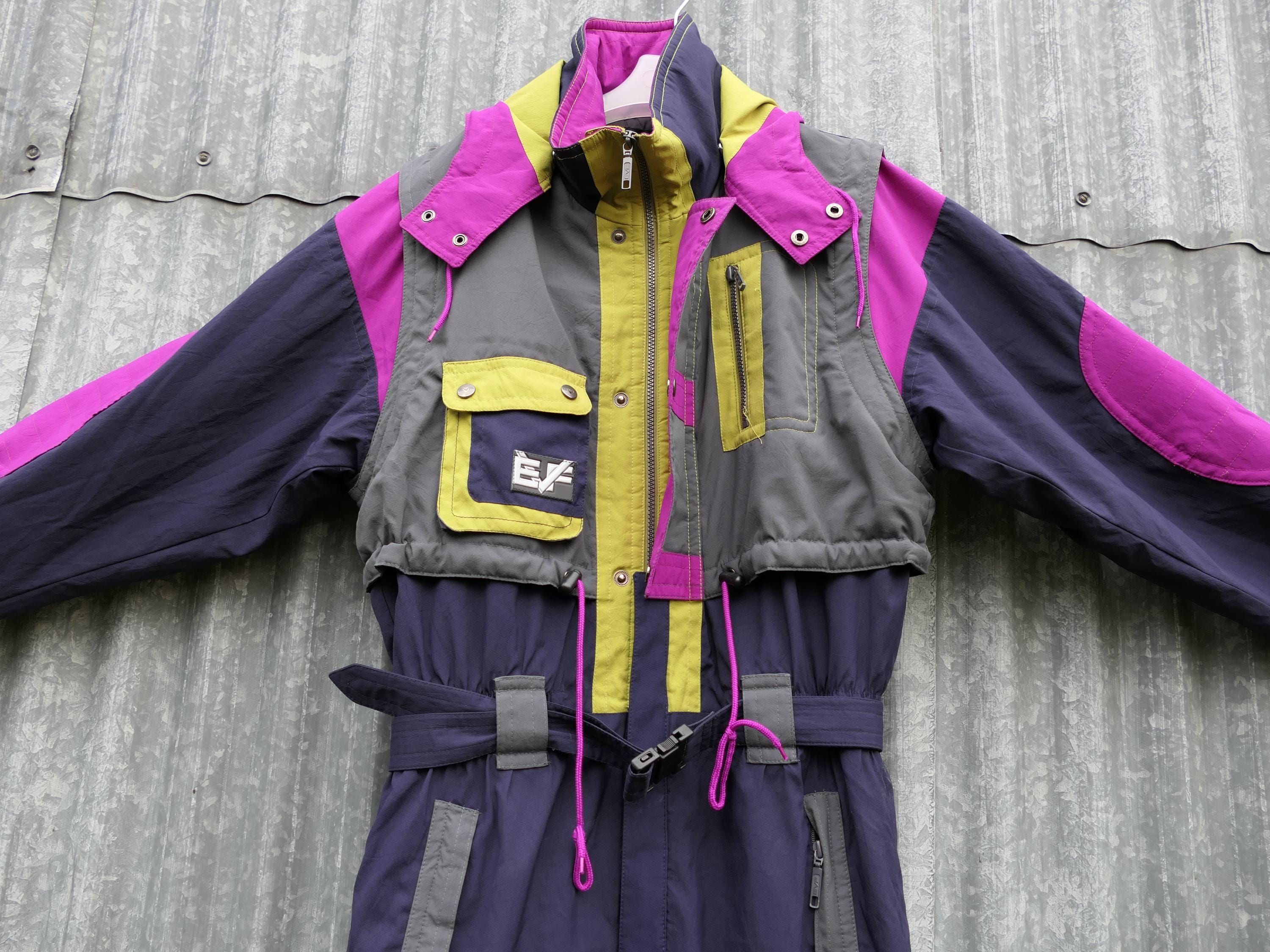 Vintage EVF snowsuit. Made by EVF of synthetic fibers. Removable hood. Size 52, fits chest 40-42 inches / 101- 106 cm. Ca 1980s