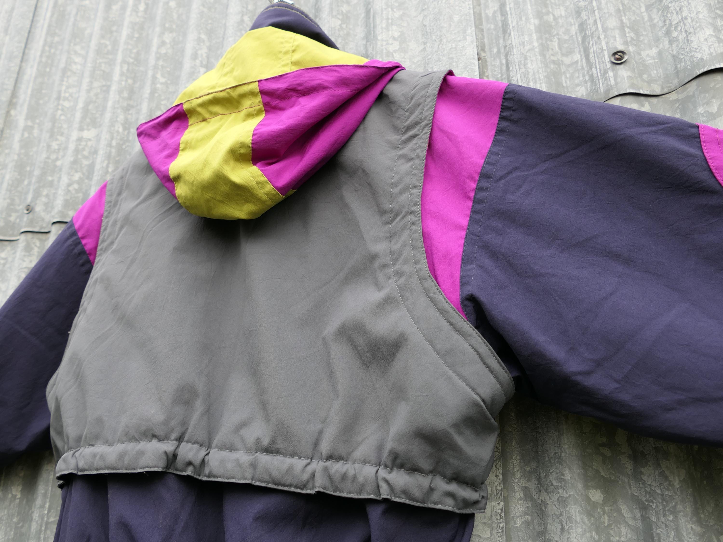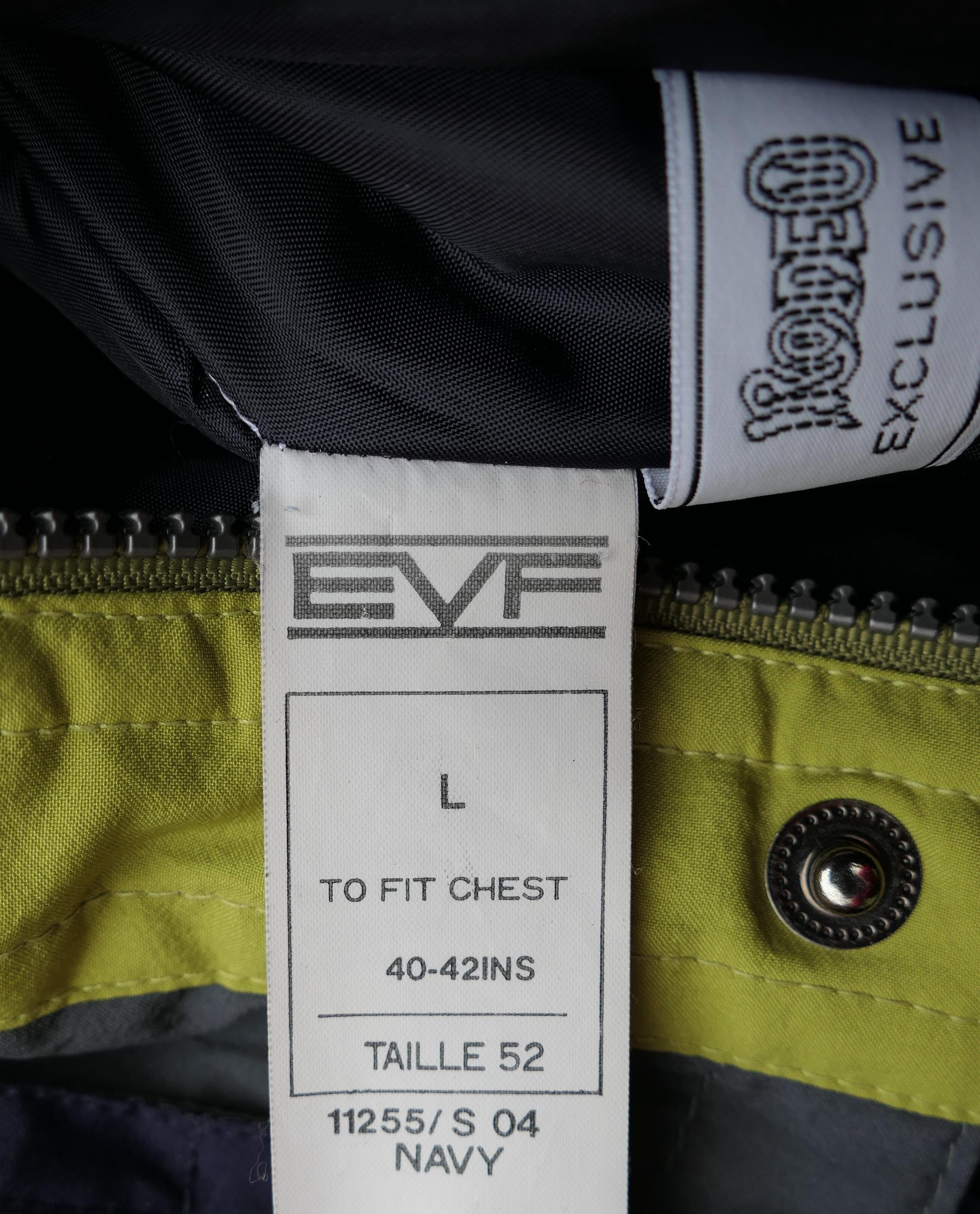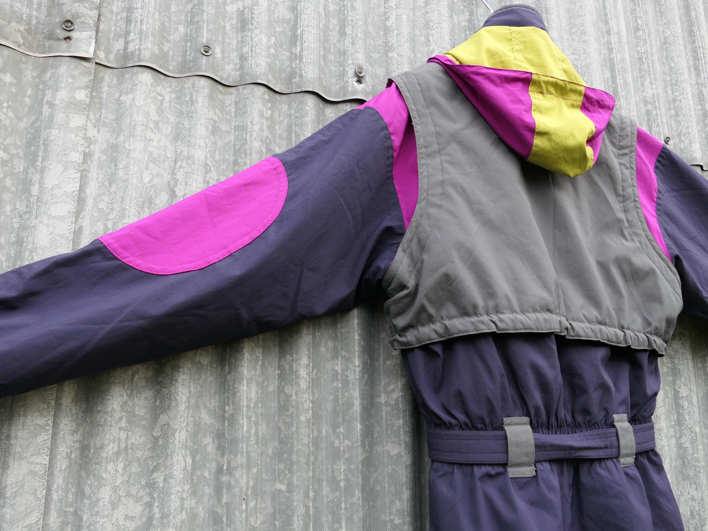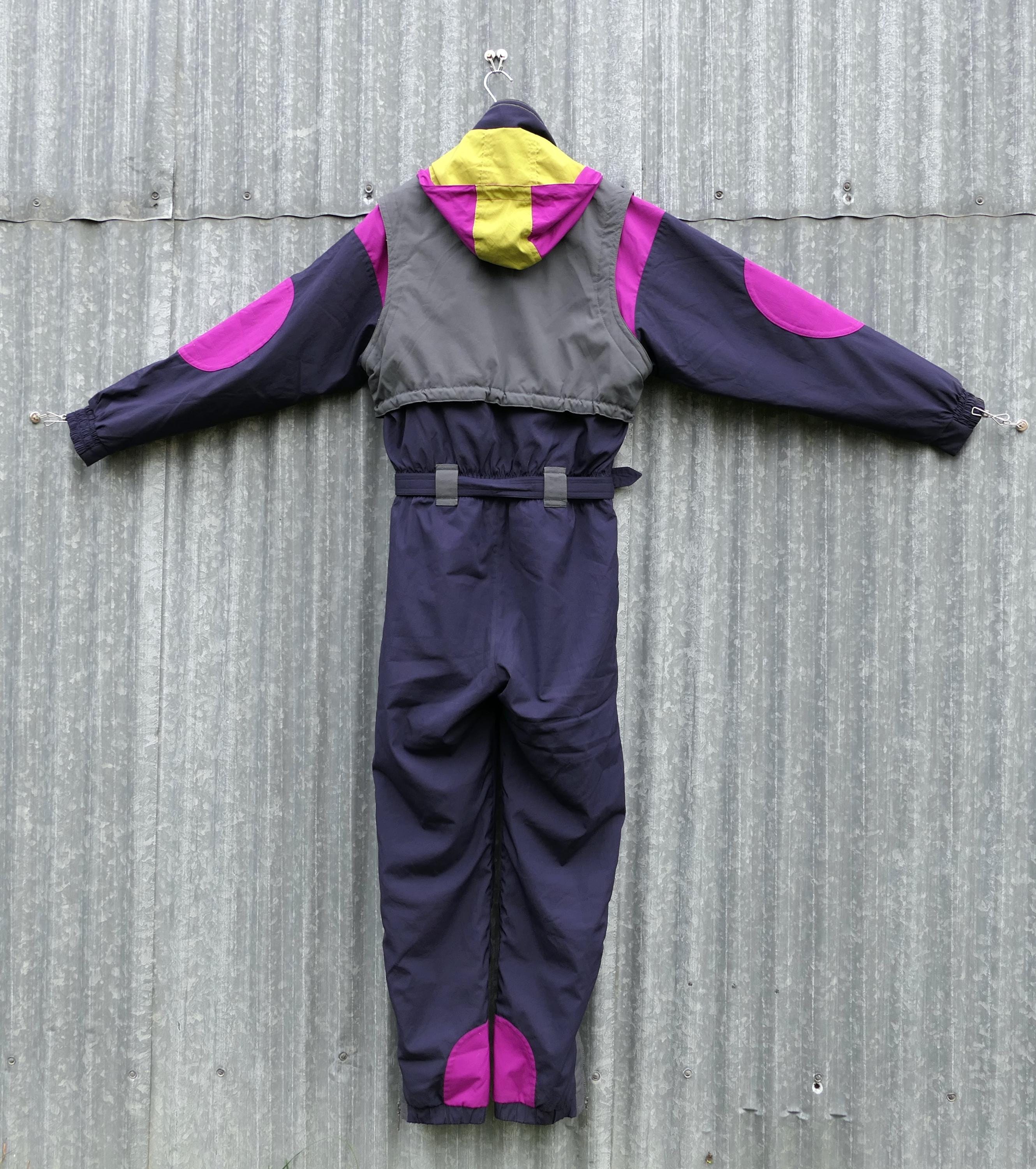 Vintage EVF snowsuit. Made by EVF of synthetic fibers. Removable hood. Size 52, fits chest 40-42 inches / 101- 106 cm. Ca 1980s