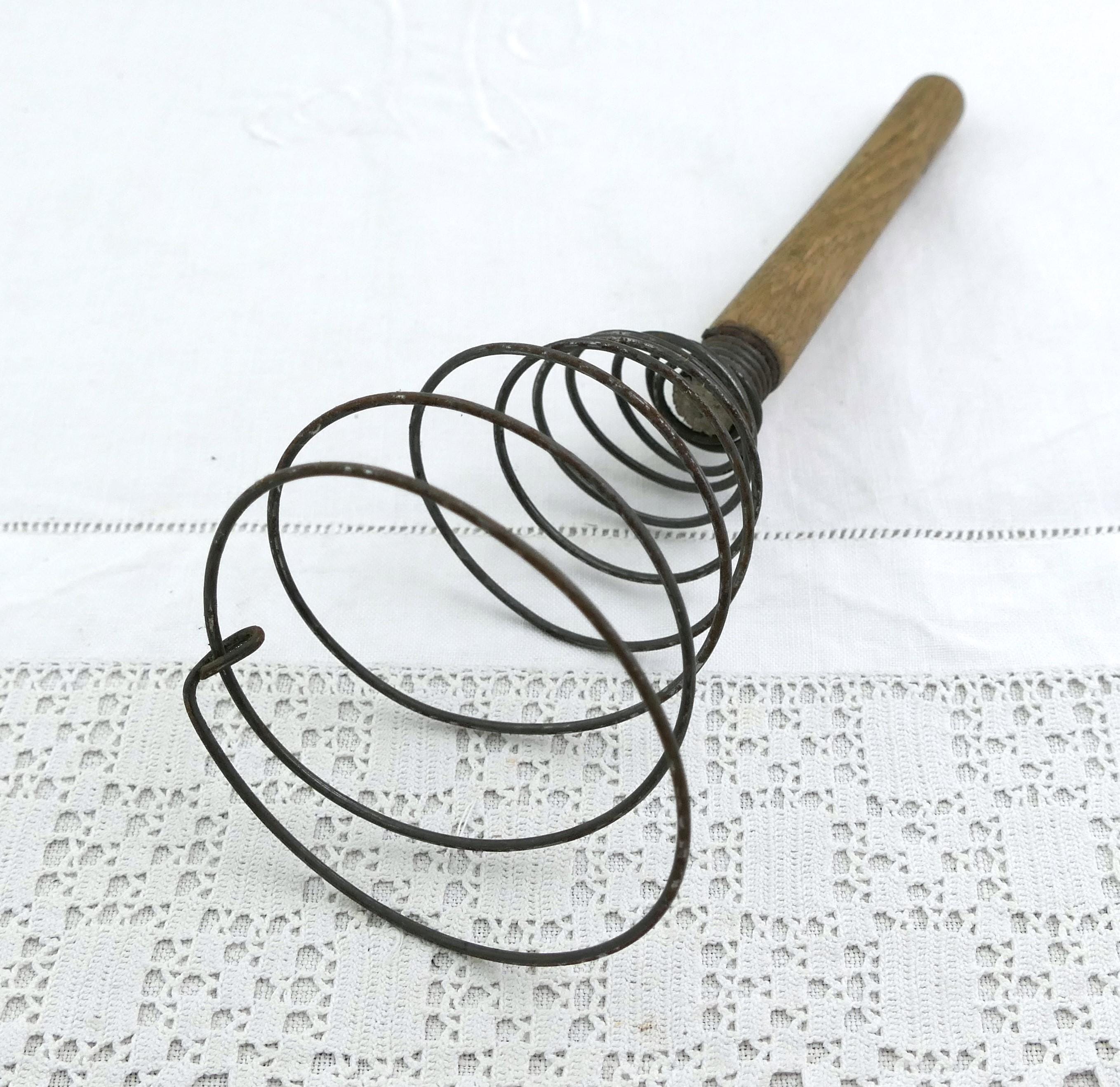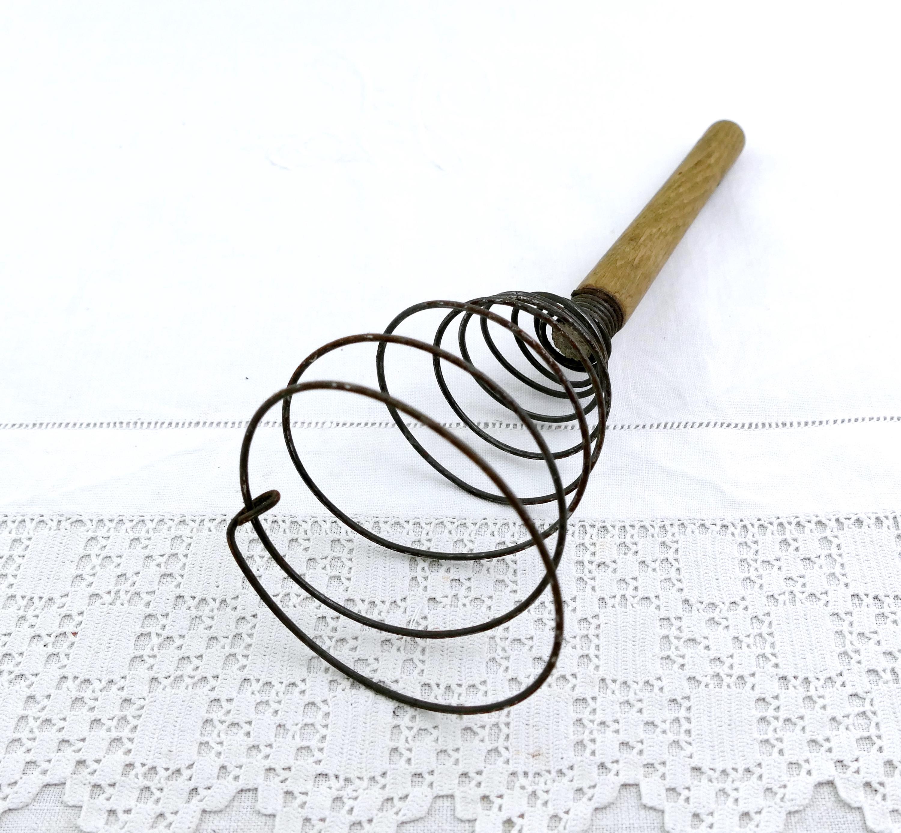 Antique French spiral egg whisk. Made of metal wire with wooden handle. Ca early 1900s.