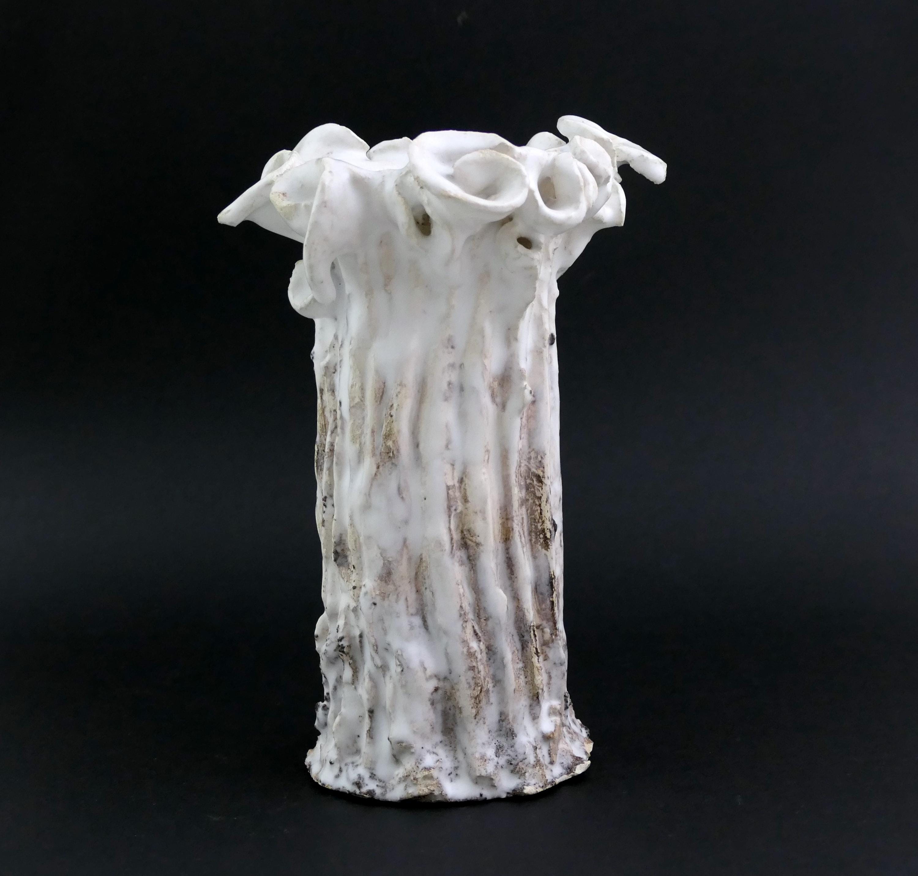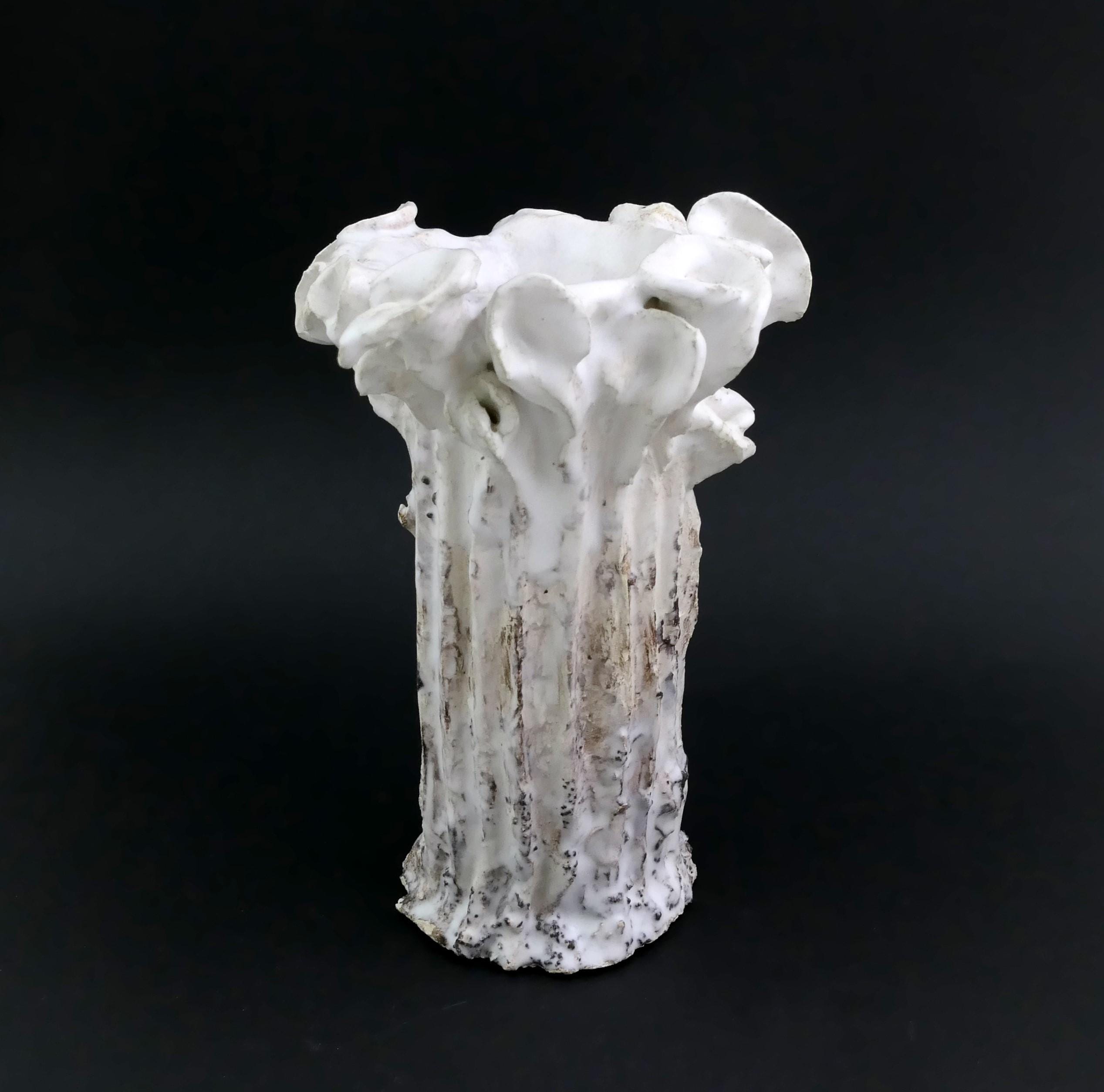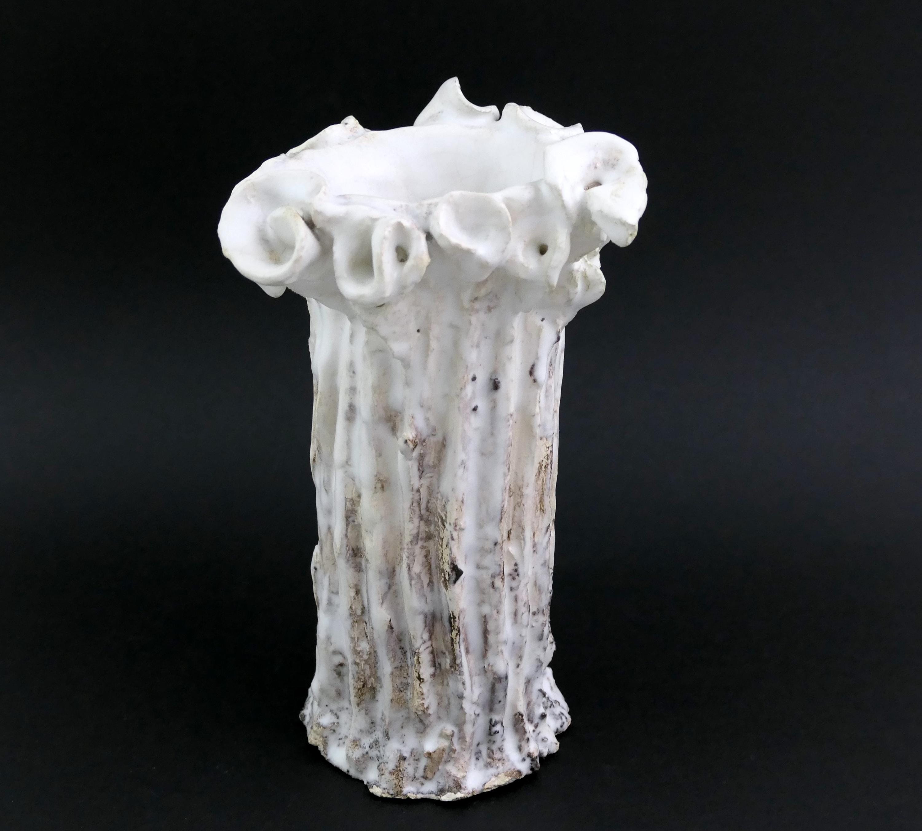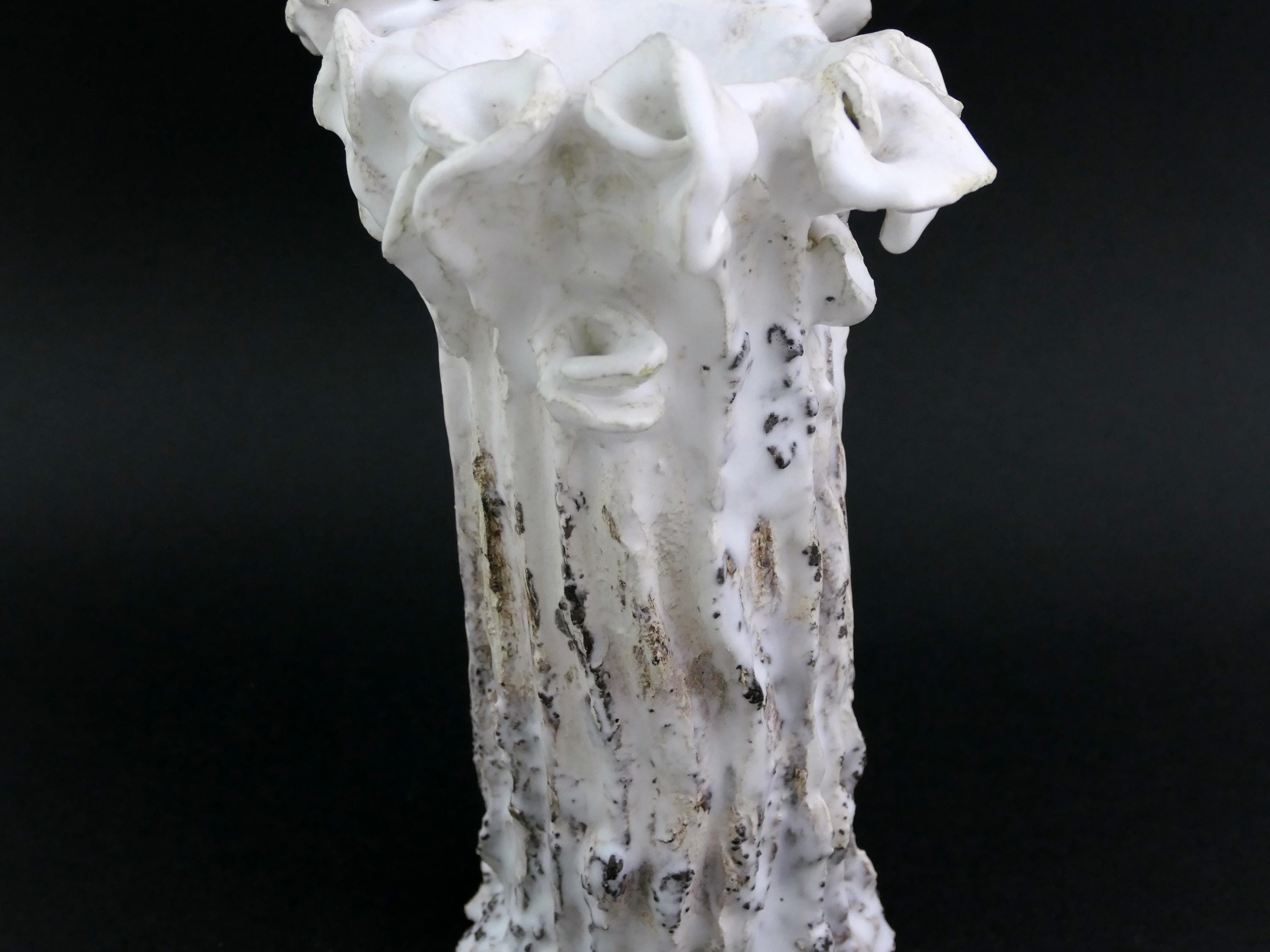 Vintage French brutalist flower vase. Handmade of white glazed pottery. Ca 1960s