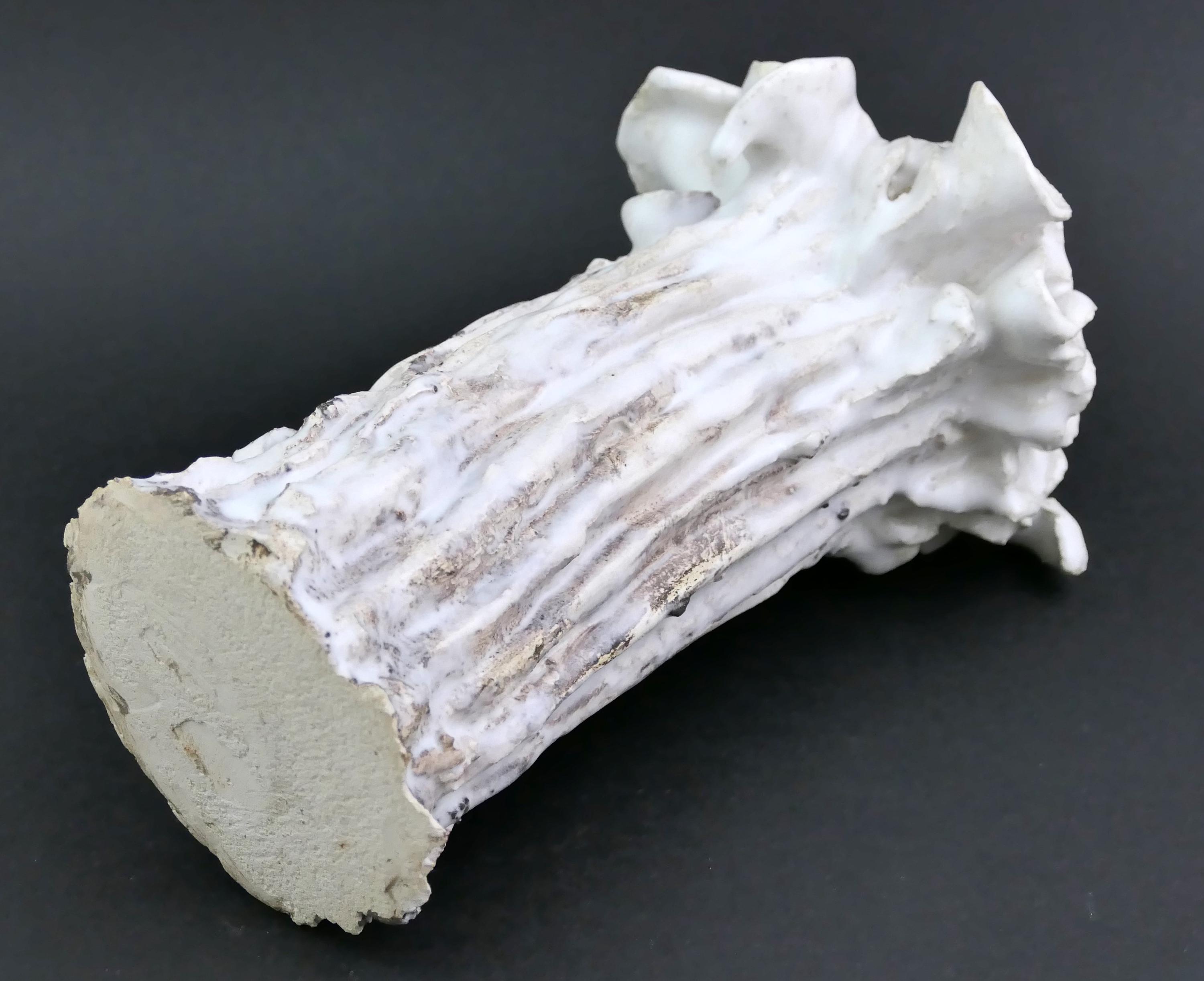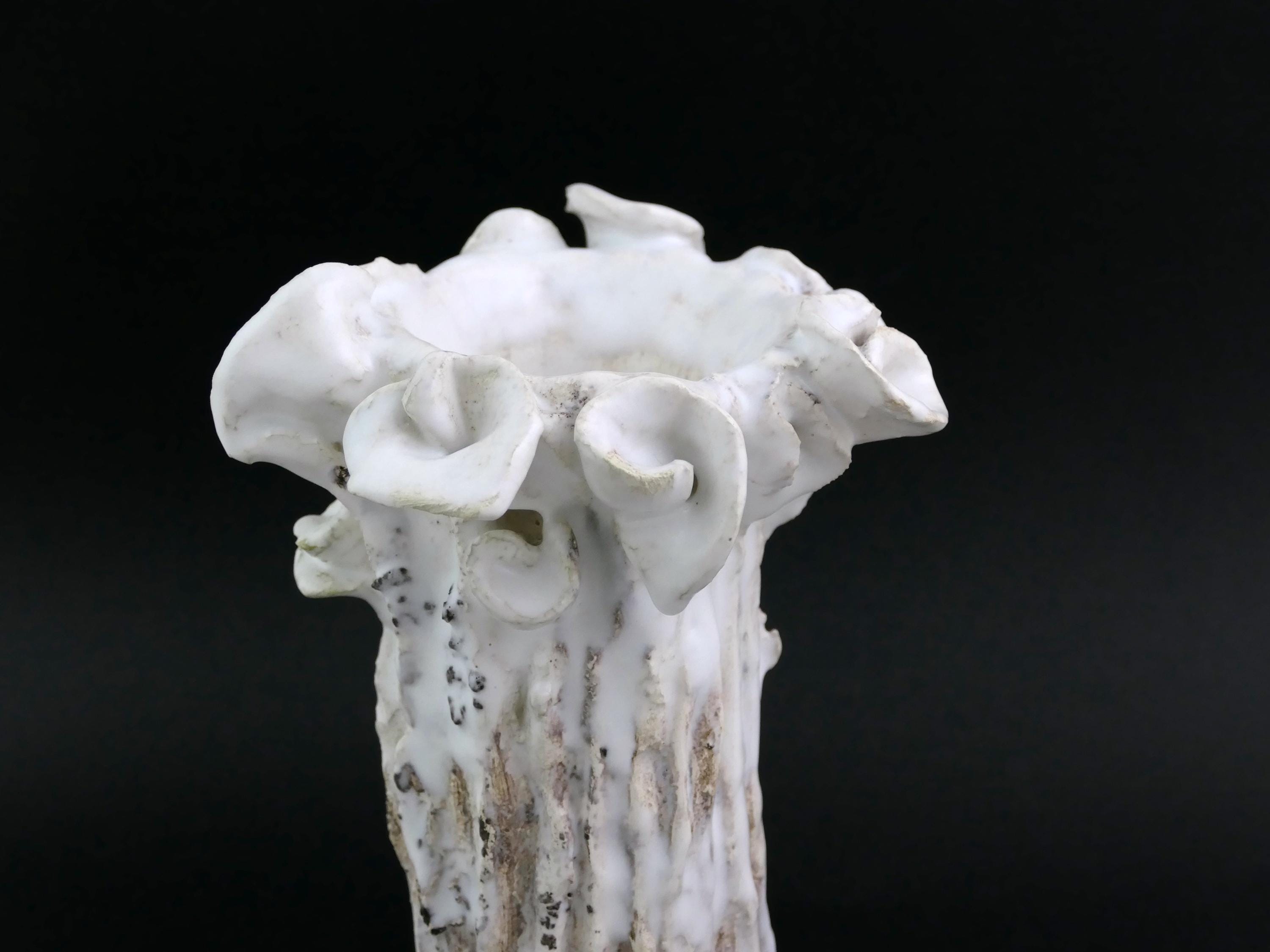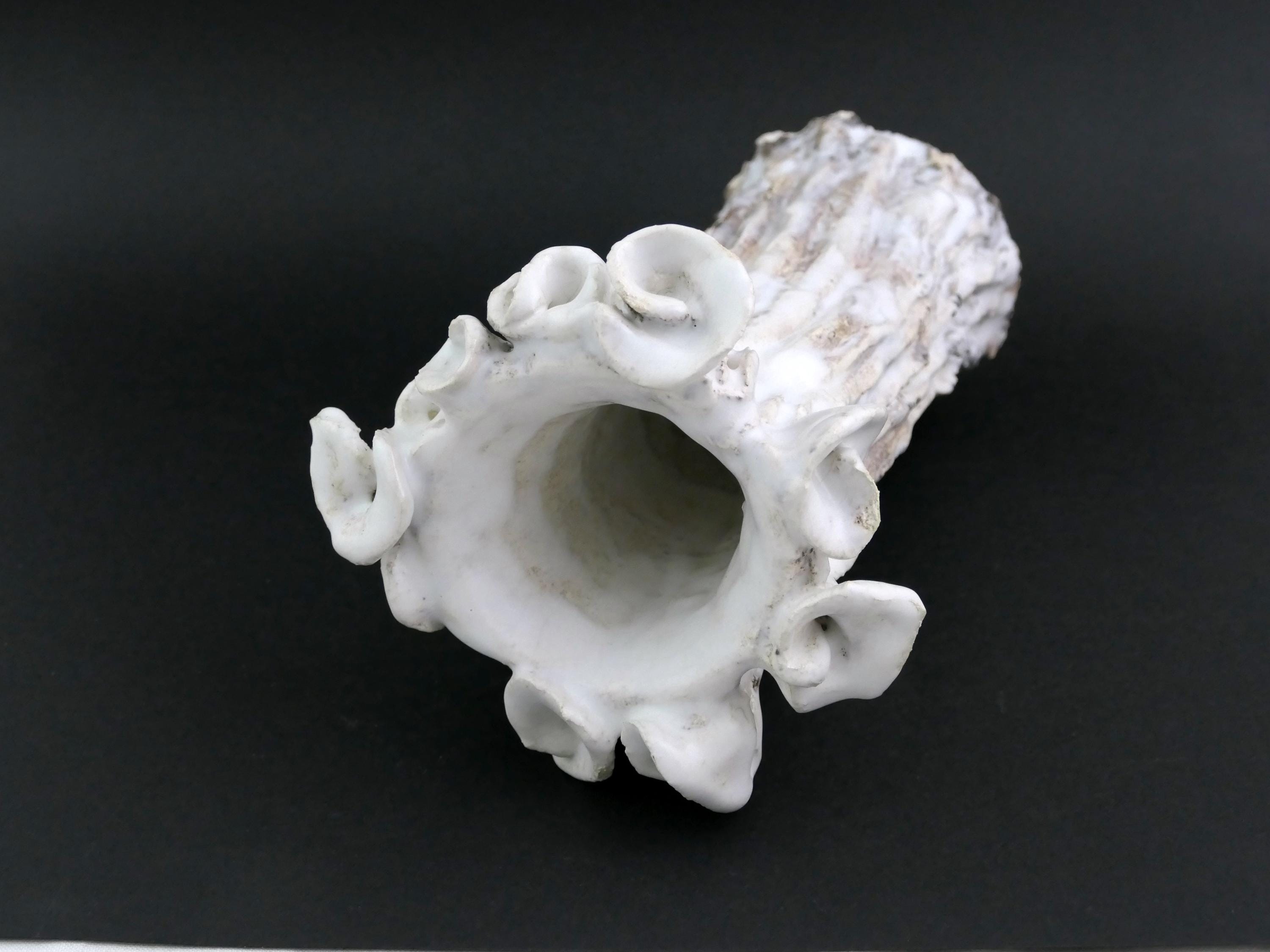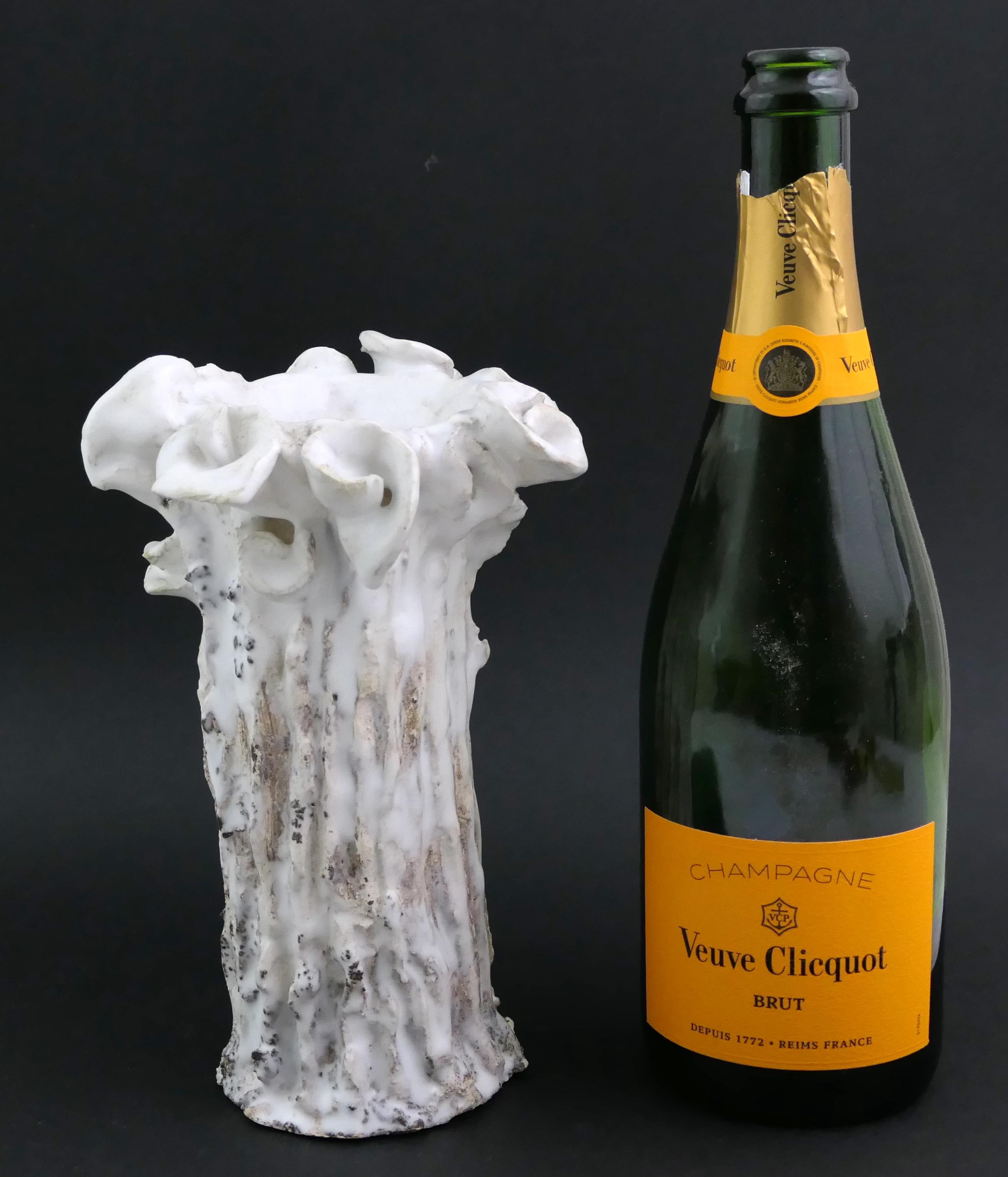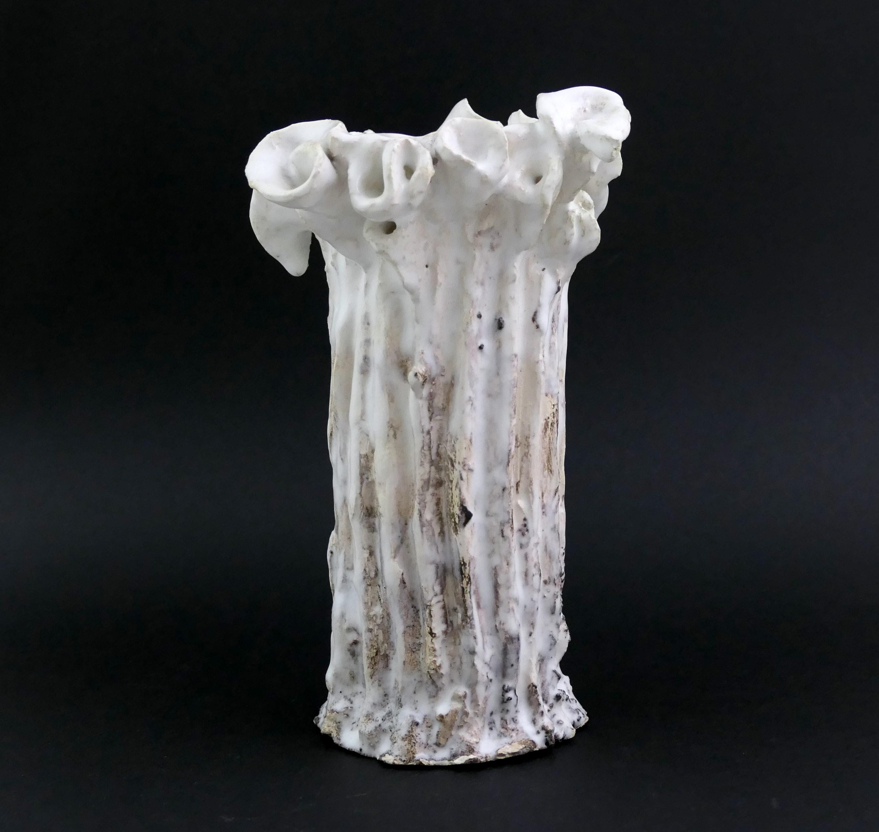Vintage French brutalist flower vase. Handmade of white glazed pottery. Ca 1960s