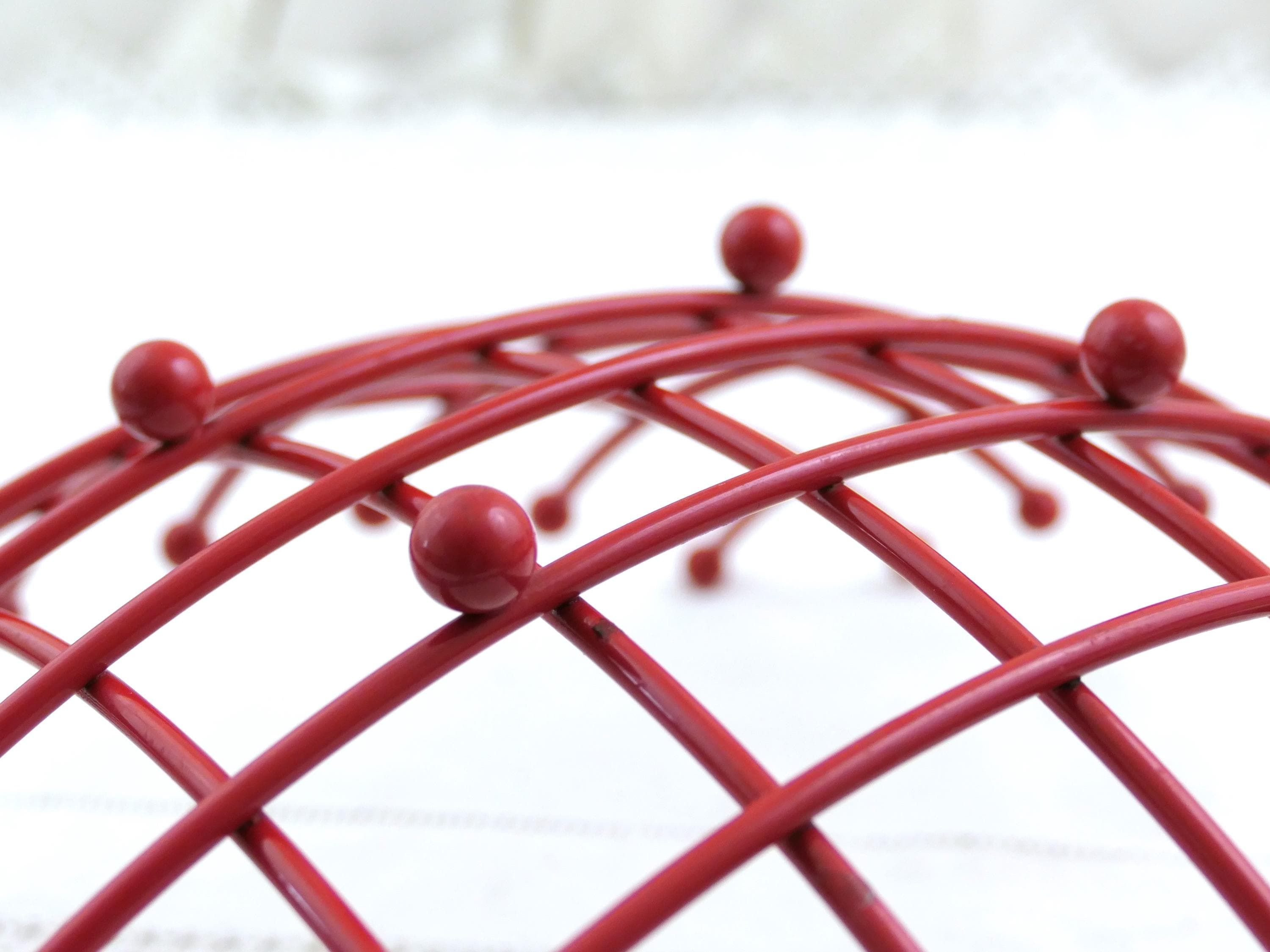 Vintage bright red Ikea wire fruit bowl. Made of red enameled metal wire. Ca 1980s- 1990s.