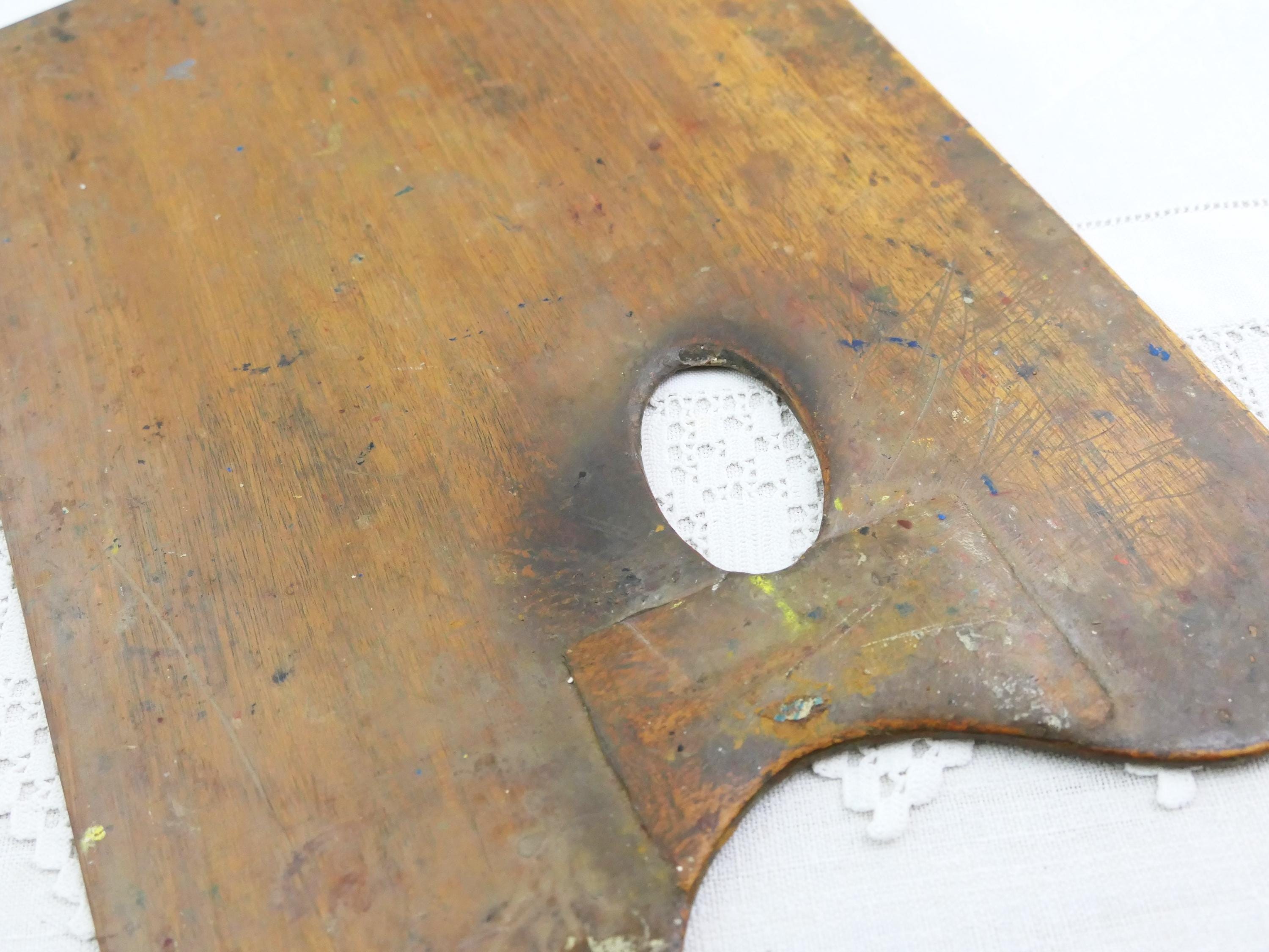 Antique used artist's palette. Rectangular shaped. Made of wood. Ca 1960s.