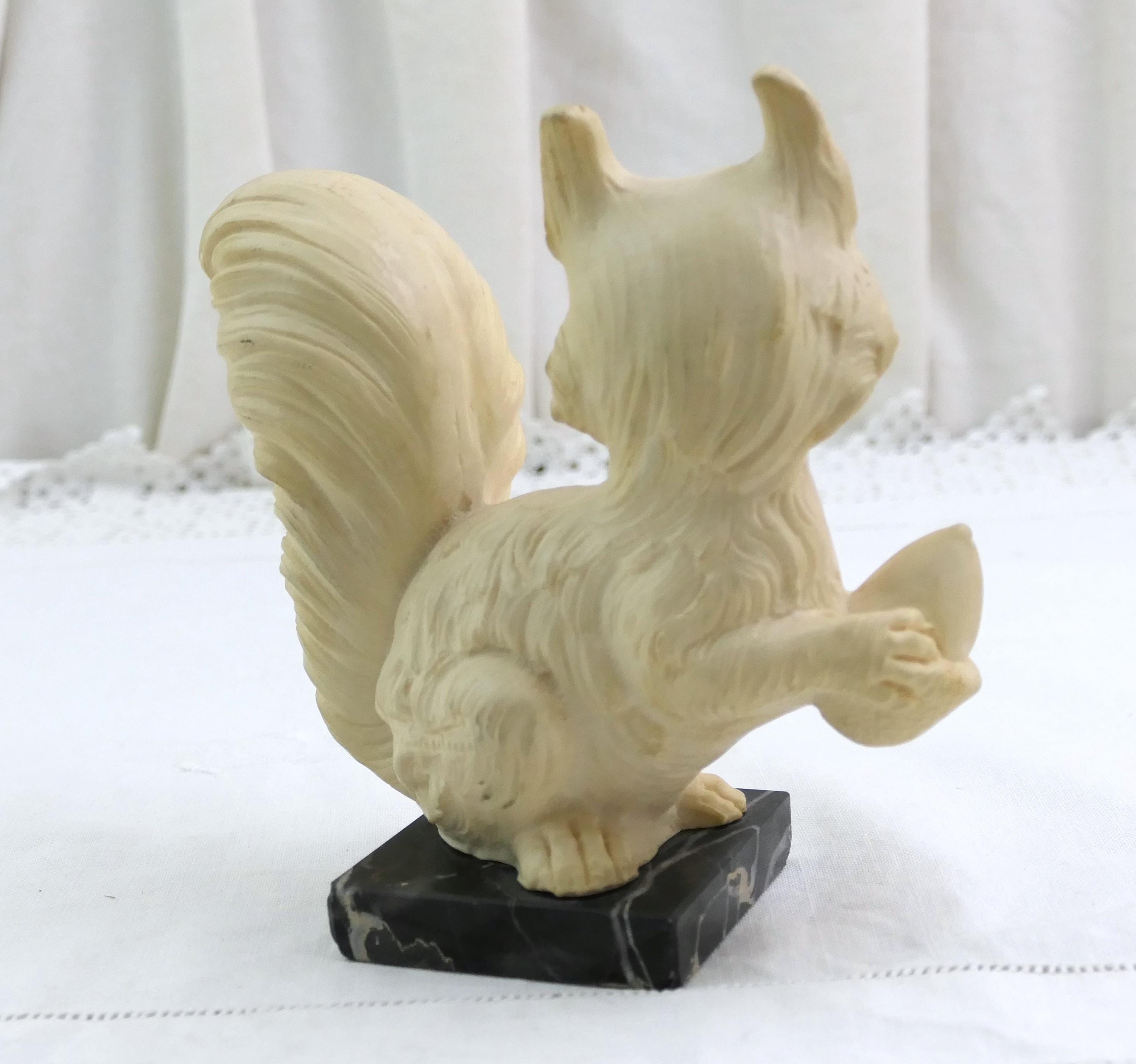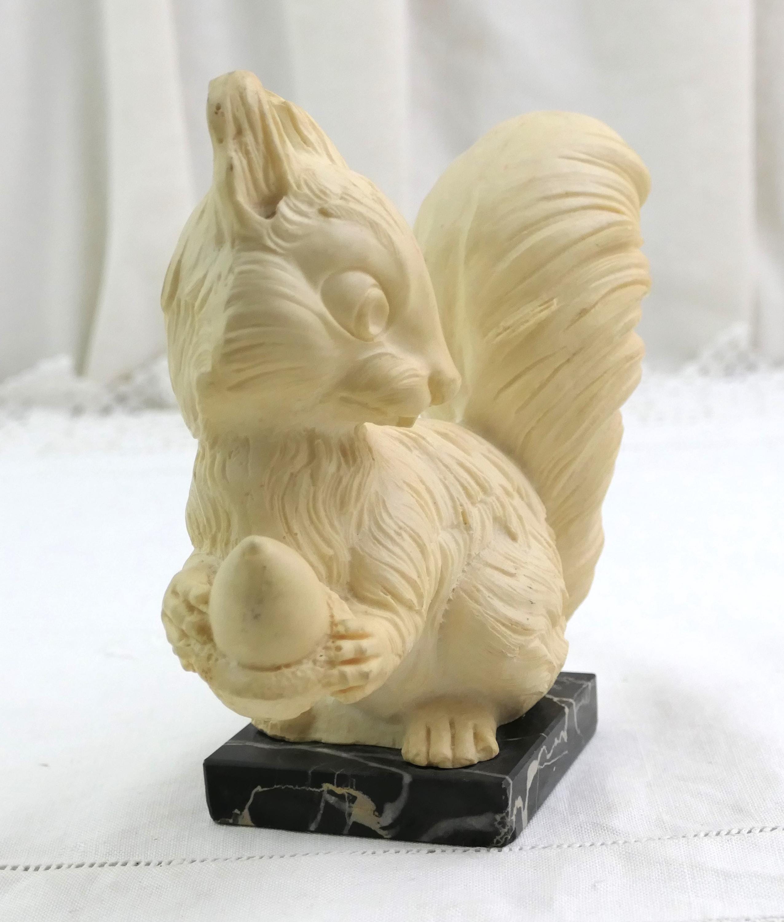 Vintage Italian beige alabaster hand carved squirrel figurine. Made by Santani in Italy of alabaster and black veined marble. Ca 1960s.