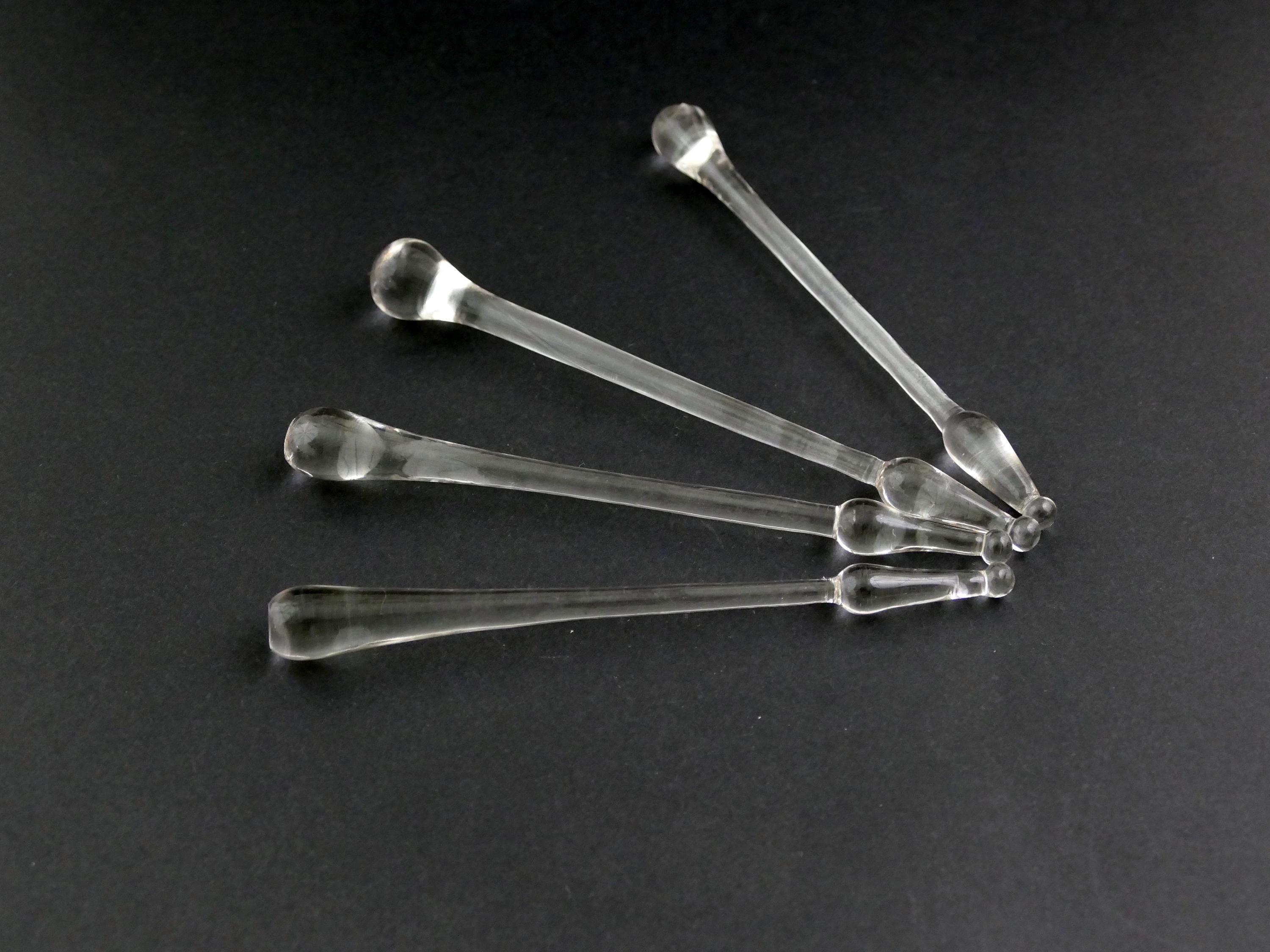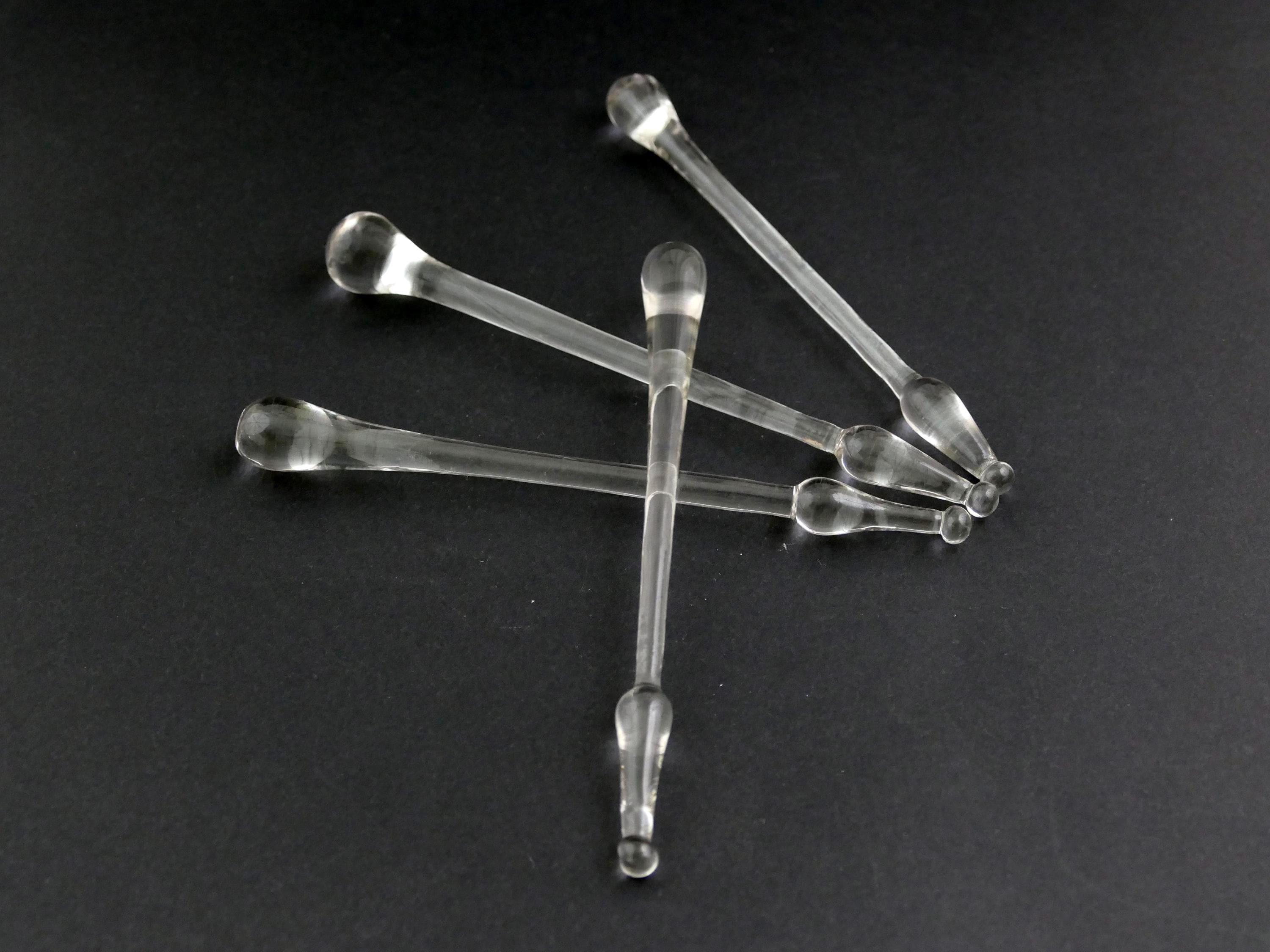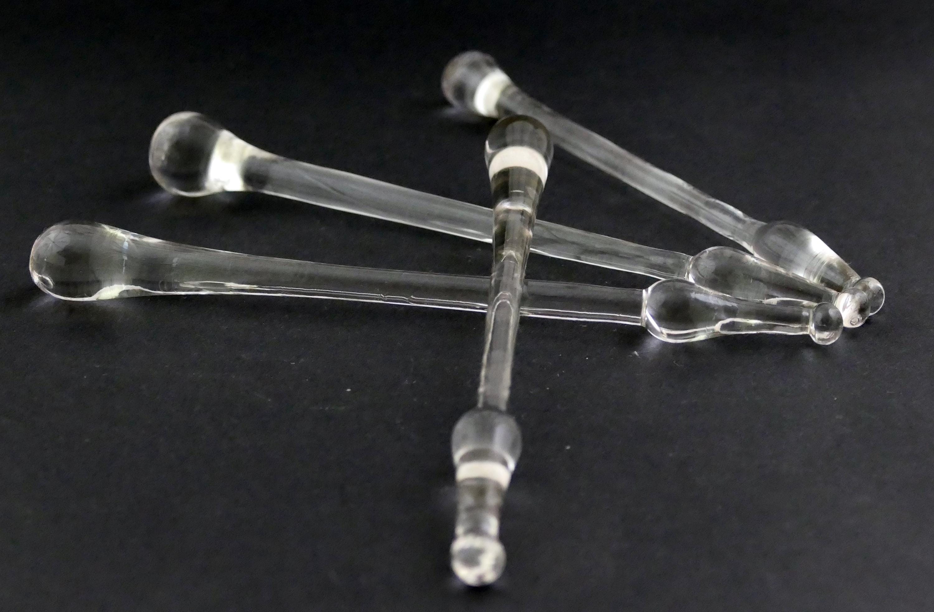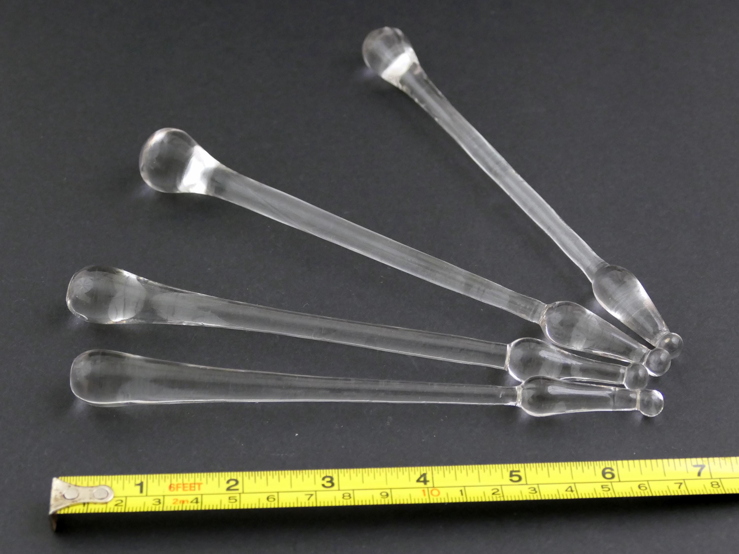 Vintage set of 4 swizzle sticks. Handmade of clear glass. Ca early to mid 1900s.
