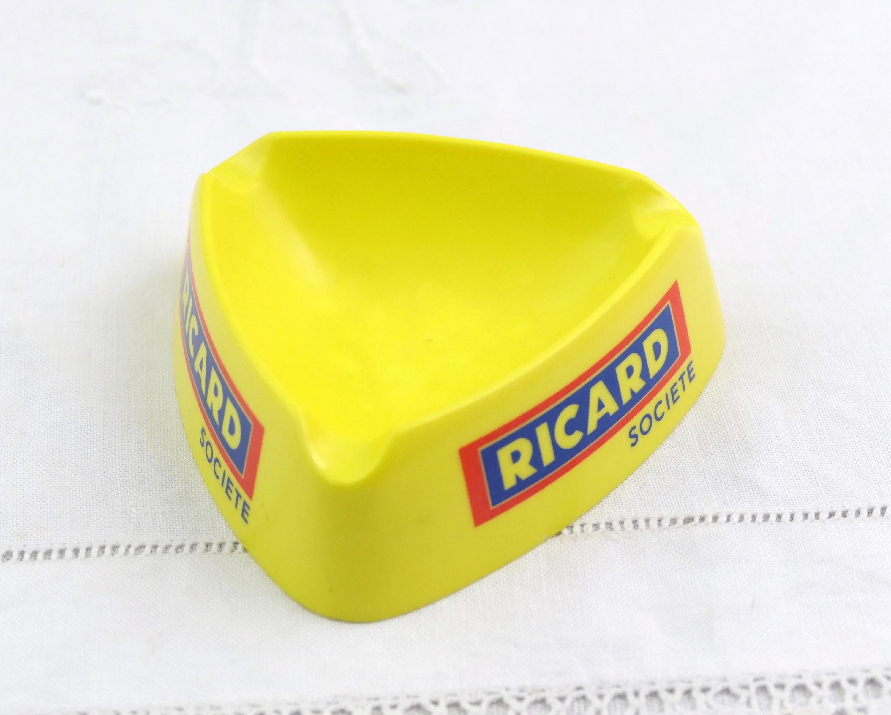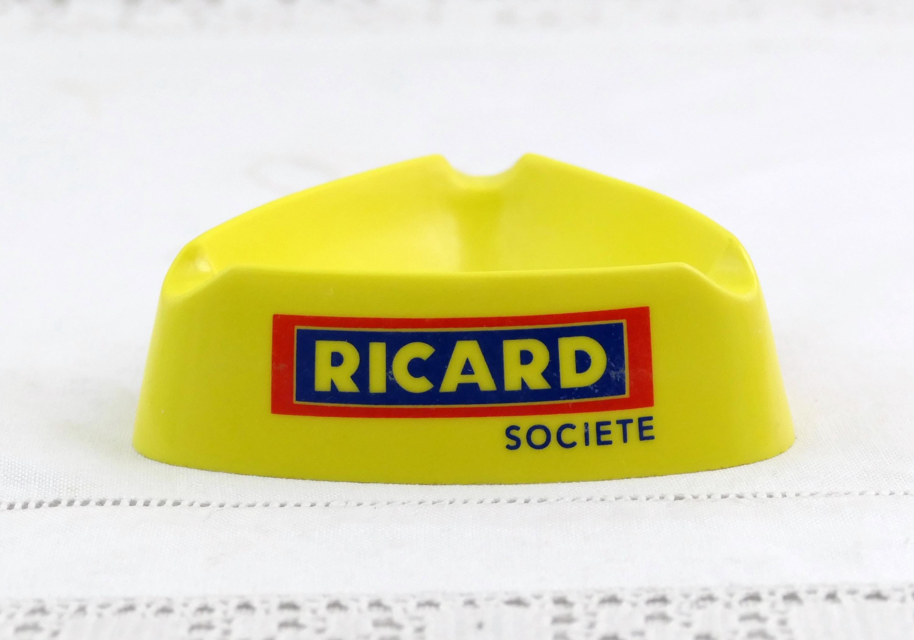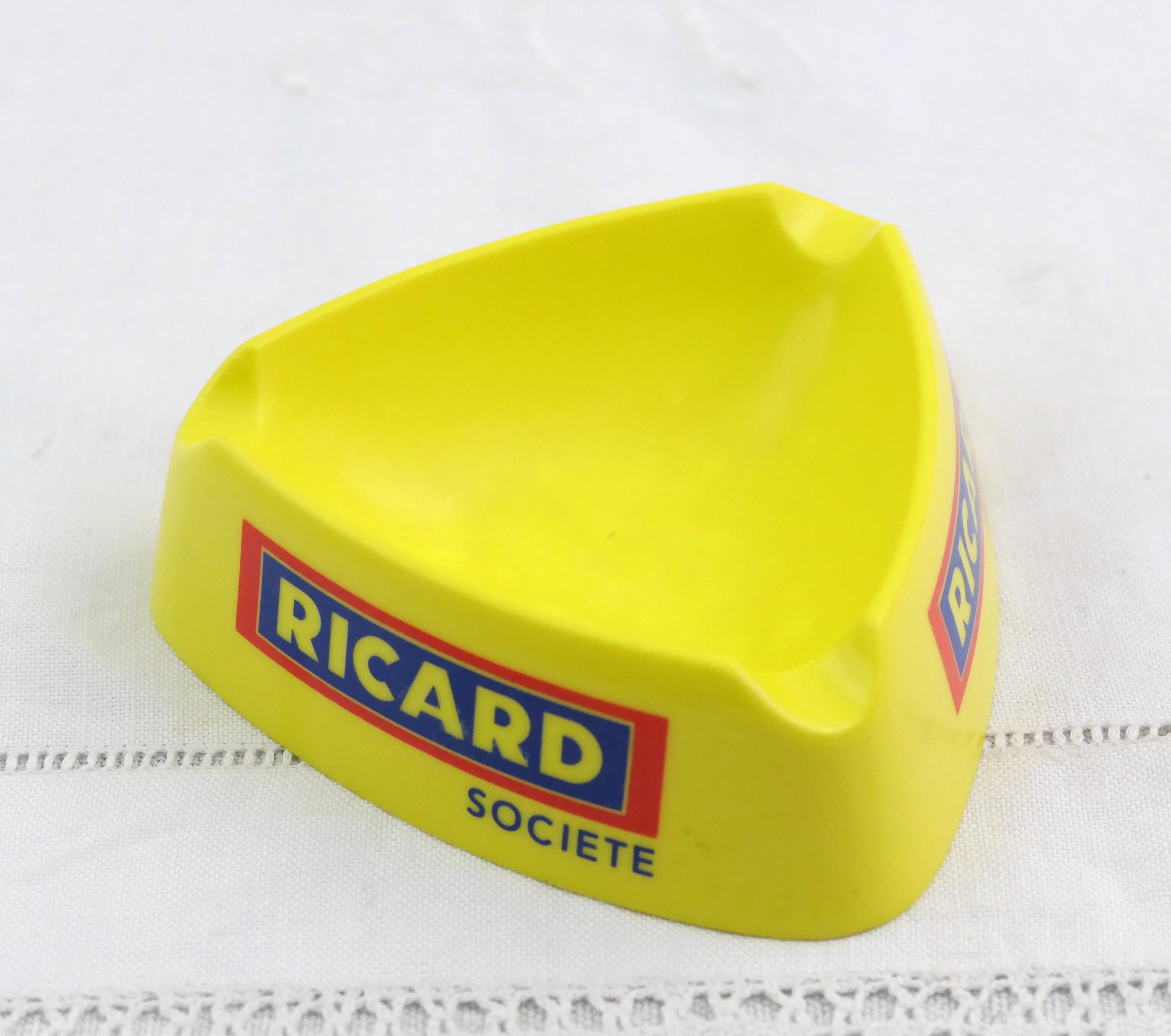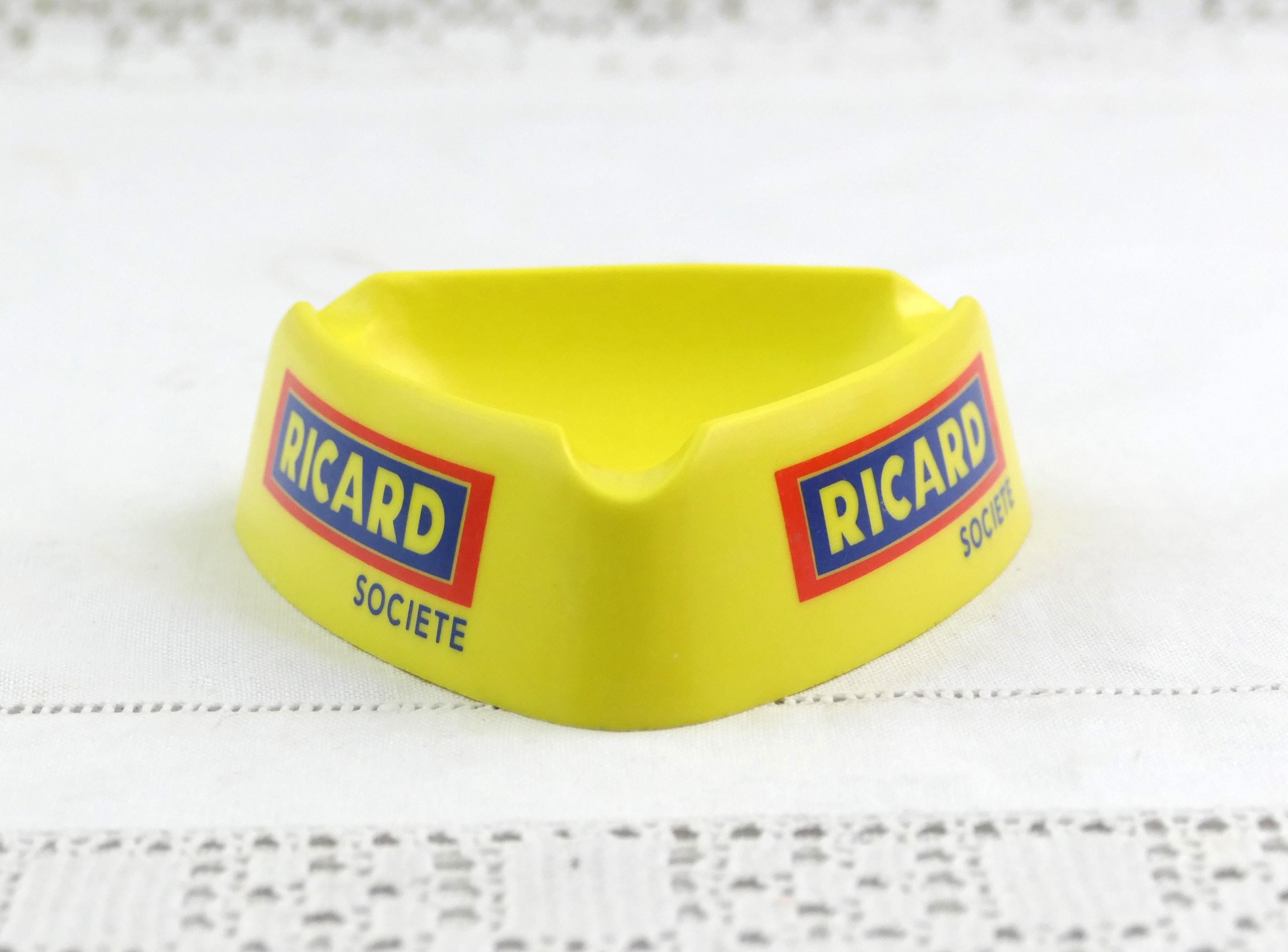 Vintage French promotional ashtray for aniseed aperitif drink Ricard. Made in France of bright yellow melamine. Ca 1950s.