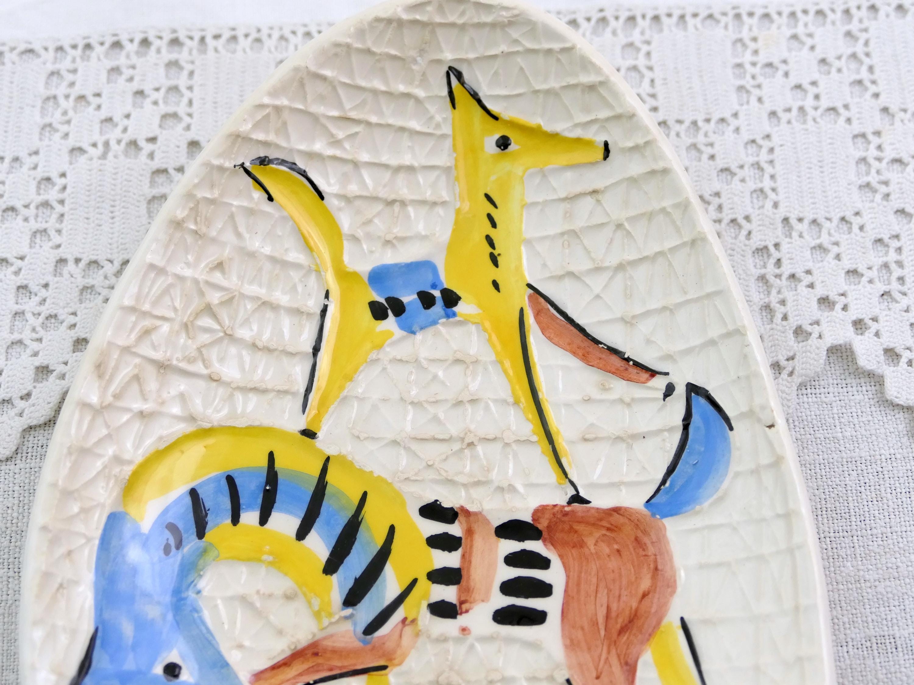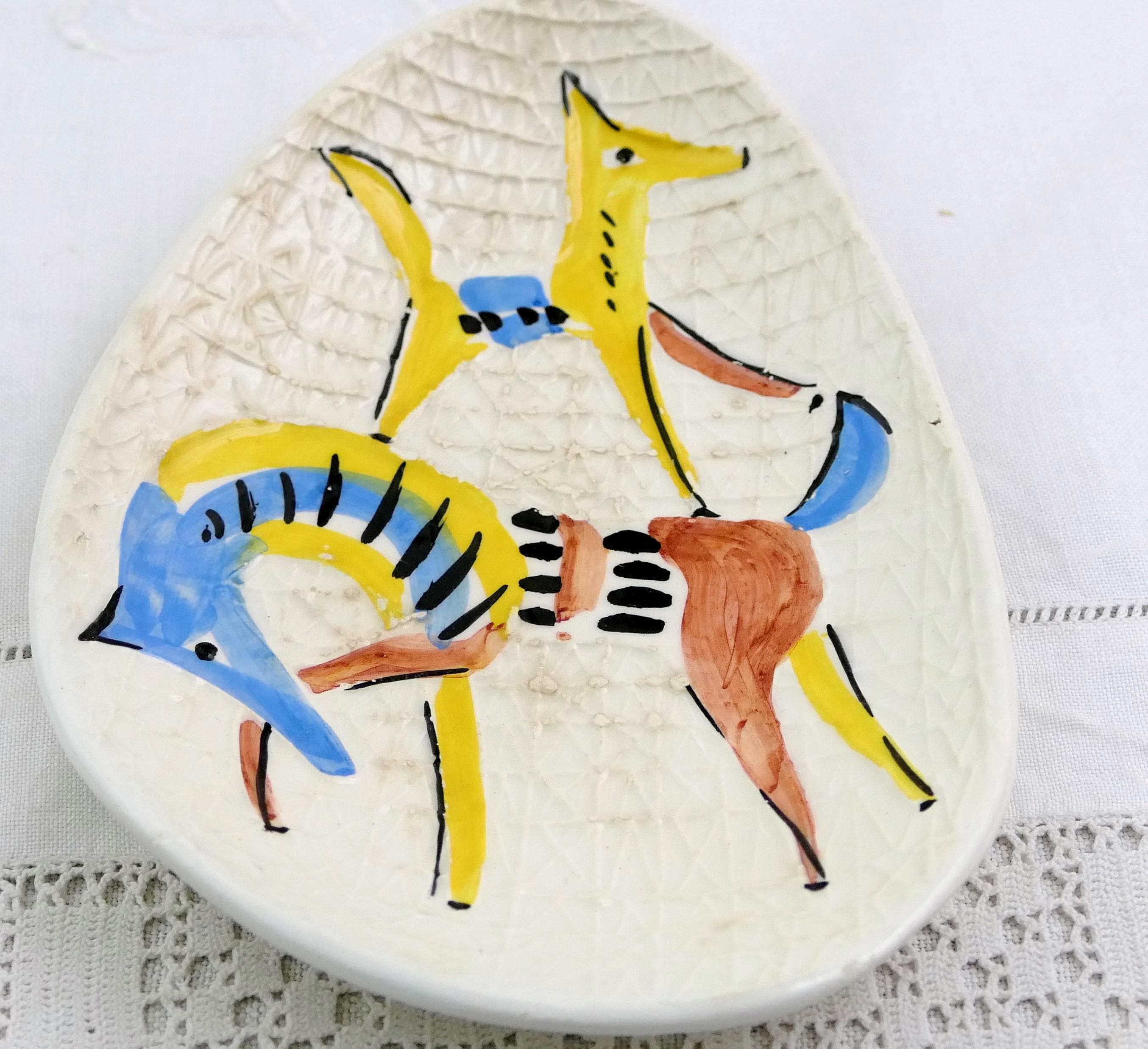 Vintage Alessio Tasca ceramic vide poche with stylized horse design. Made of glazed pottery. Ca 1950s