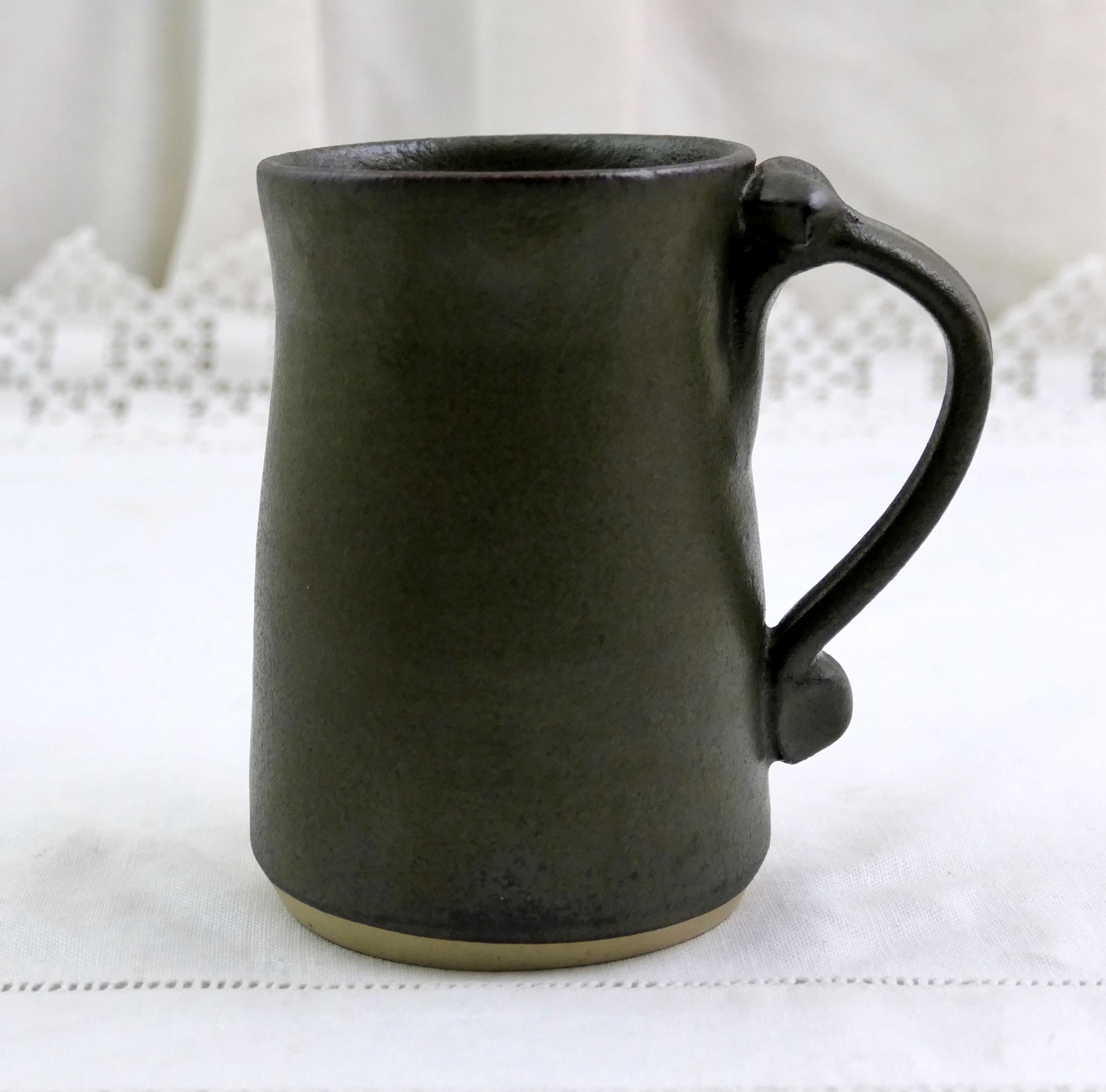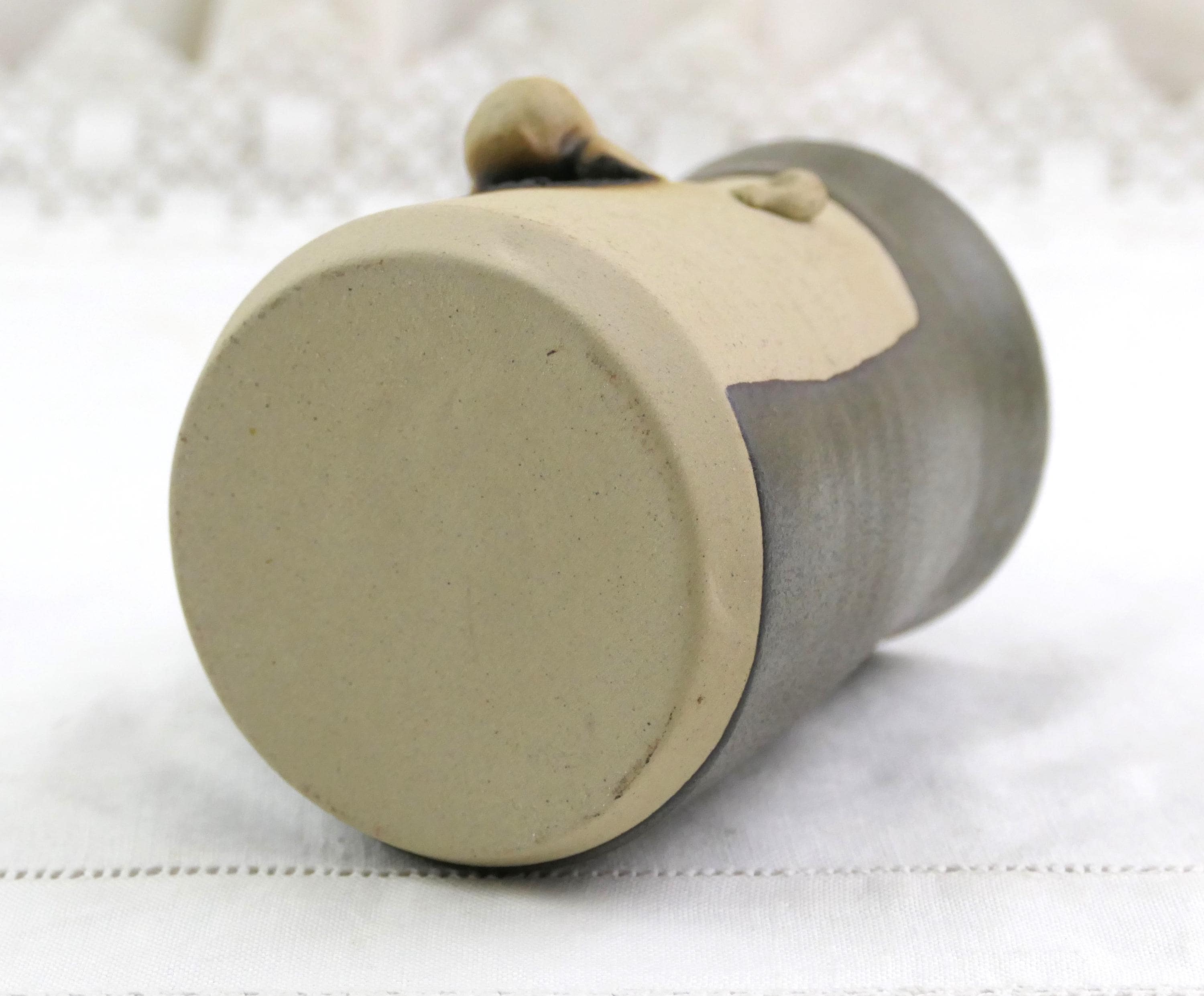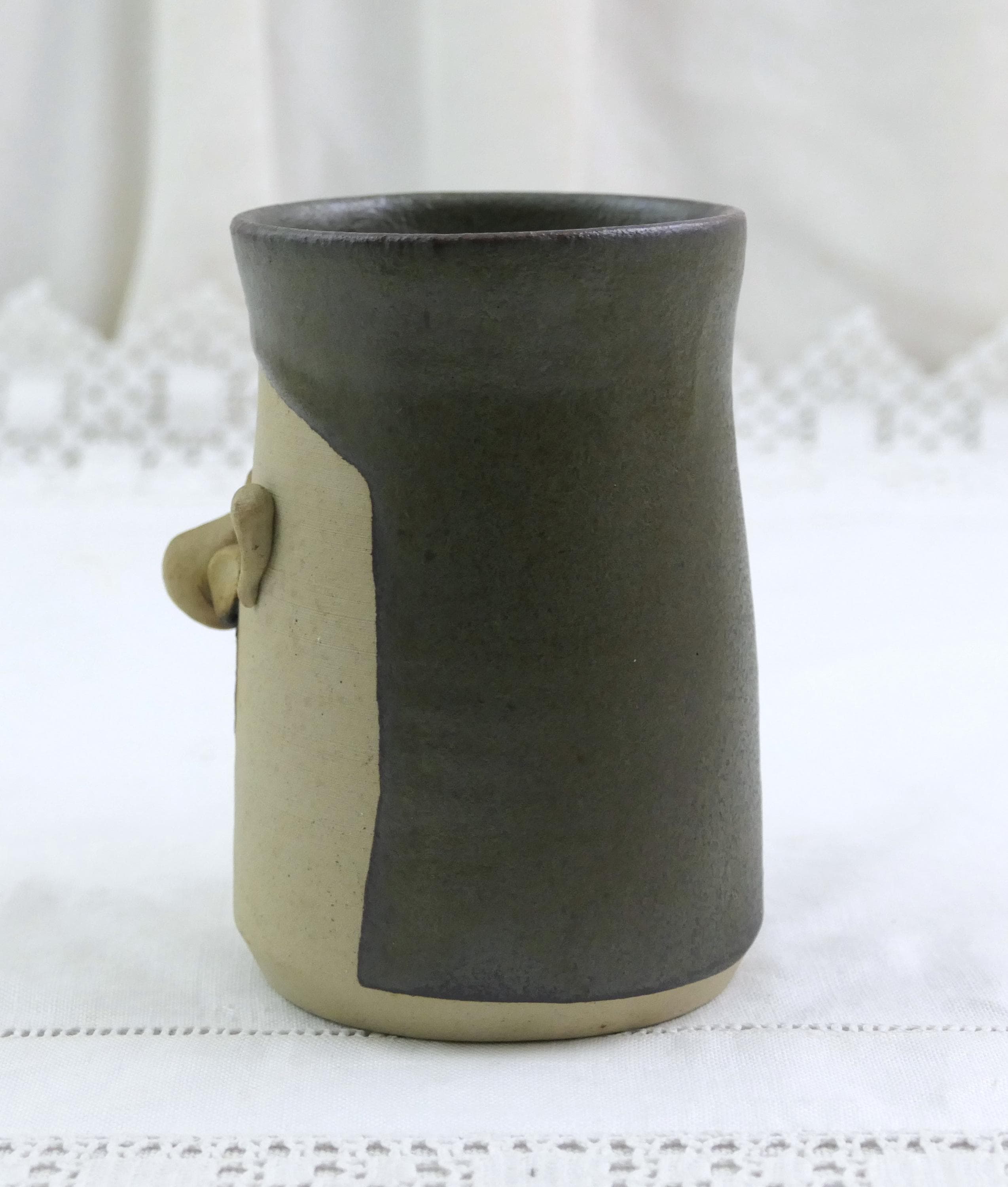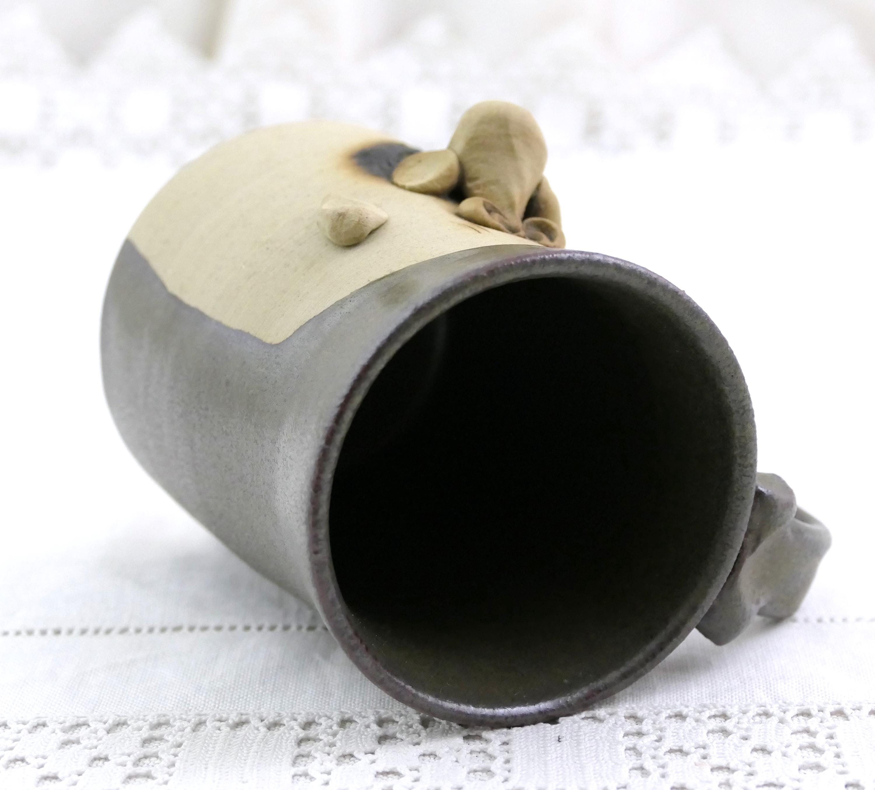 Vintage handmade coffee mug with a 3 dimensional face. Handmade of stoneware pottery. Ca late 1900s.