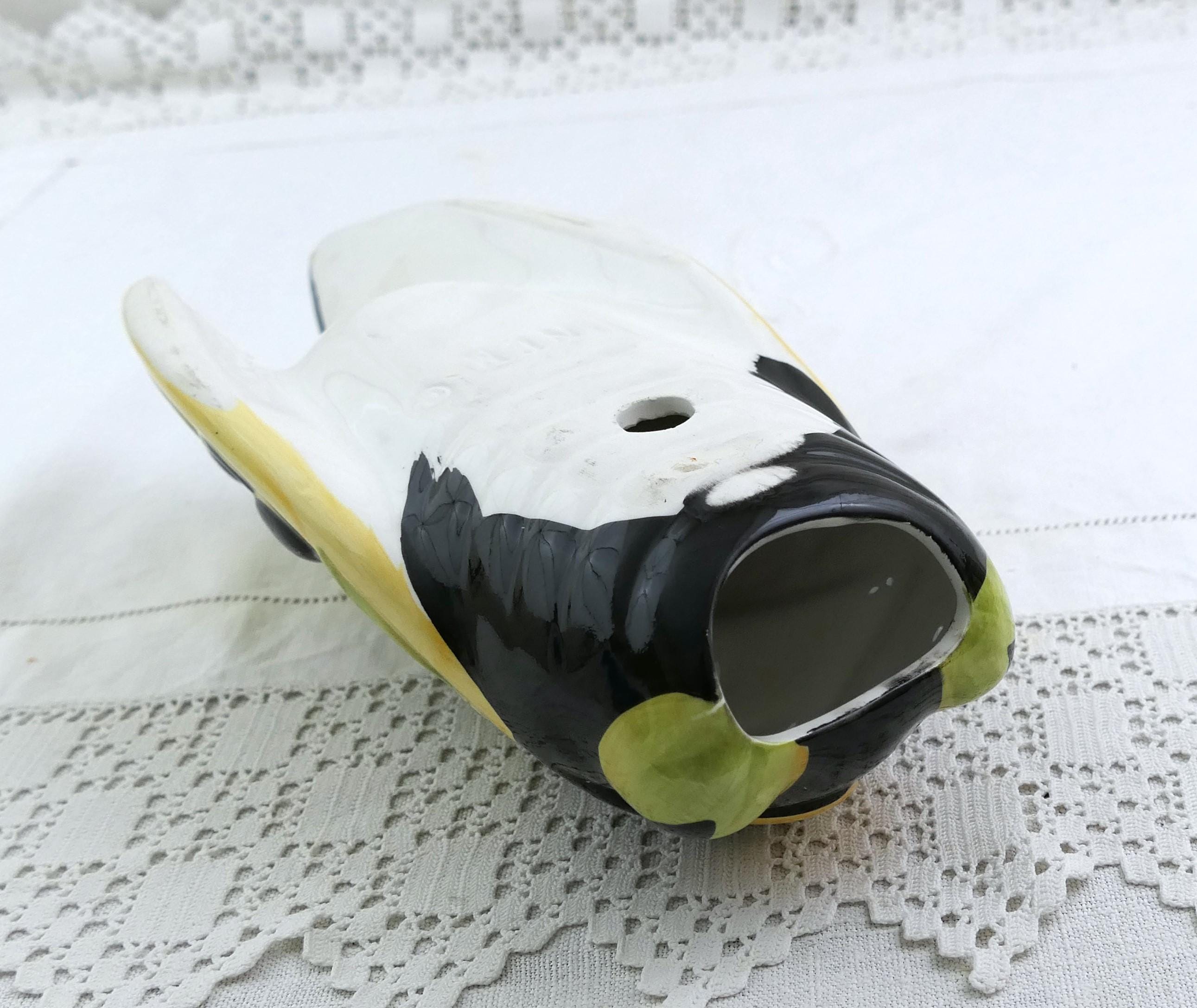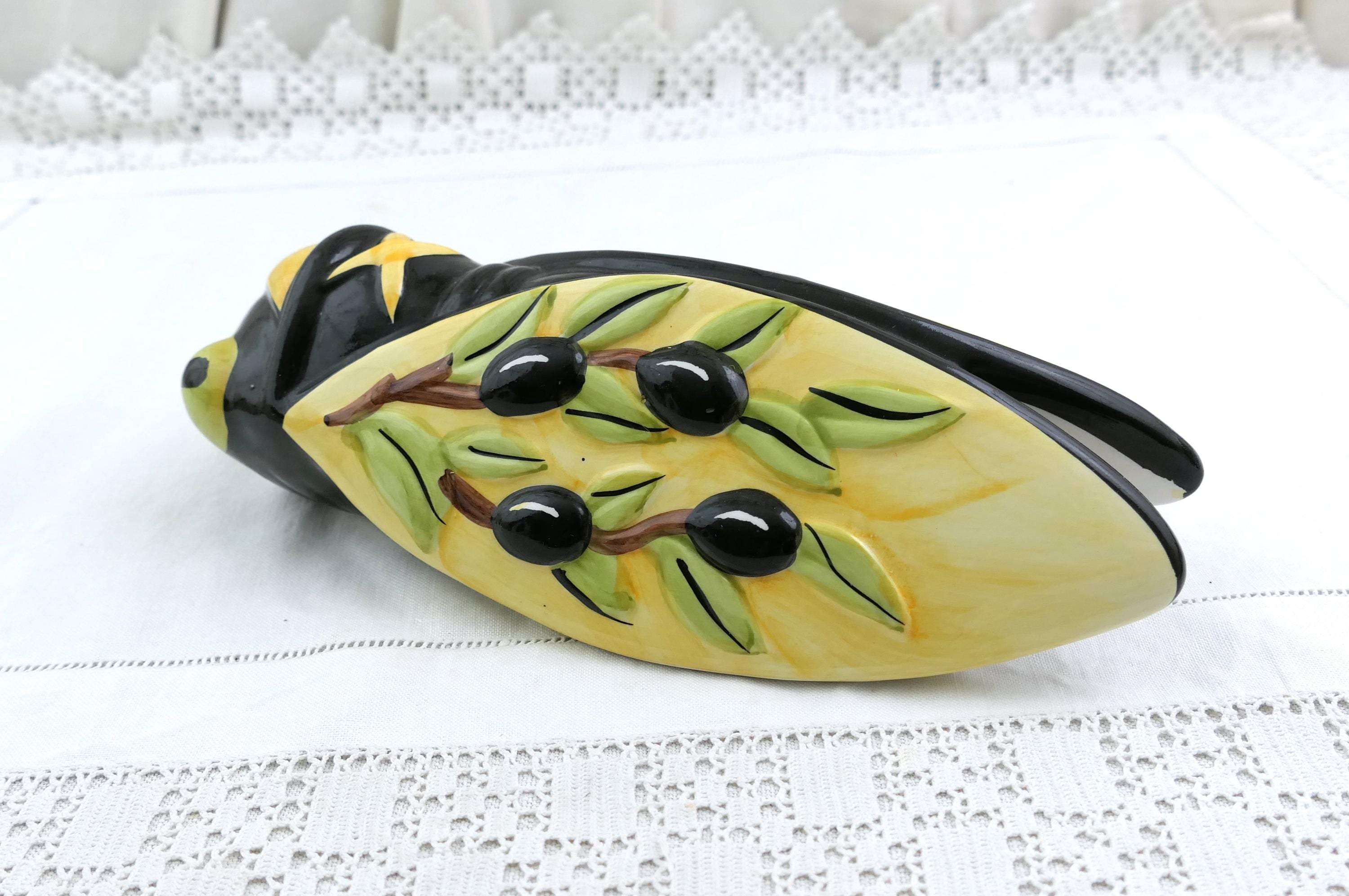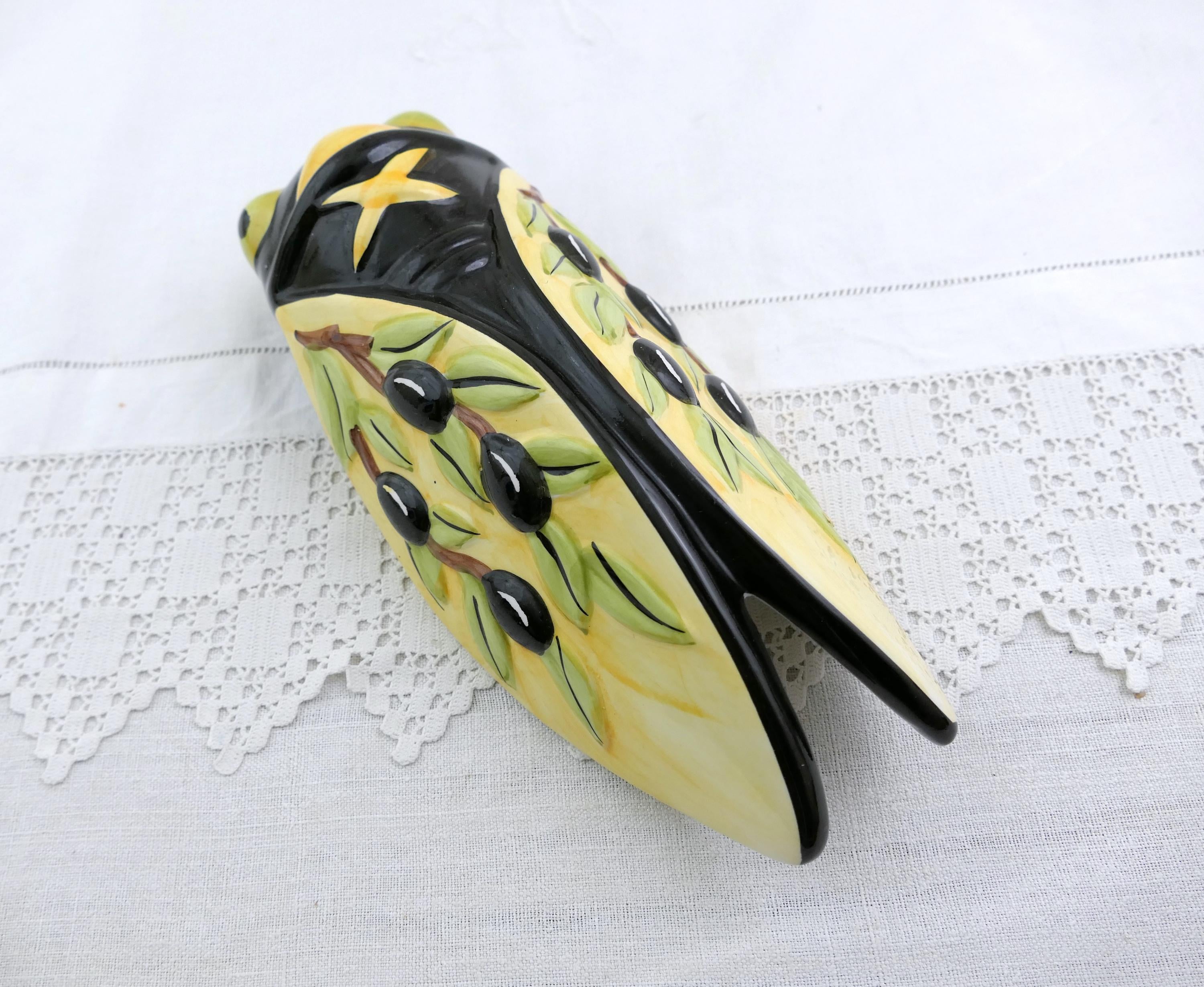 Vintage French cicada wall pocket vase. Made by Nem of glazed pottery. Ca late 1900s.