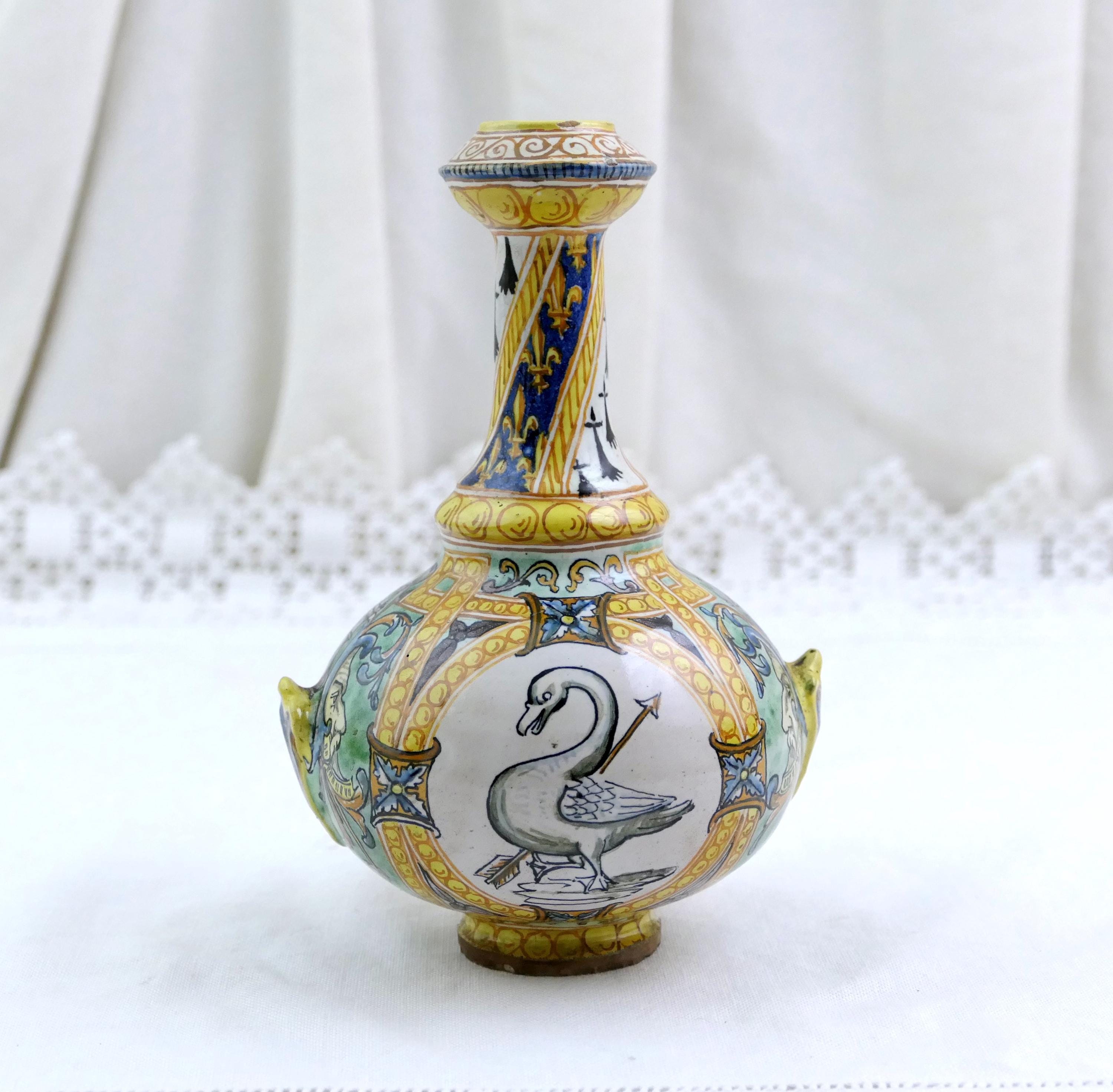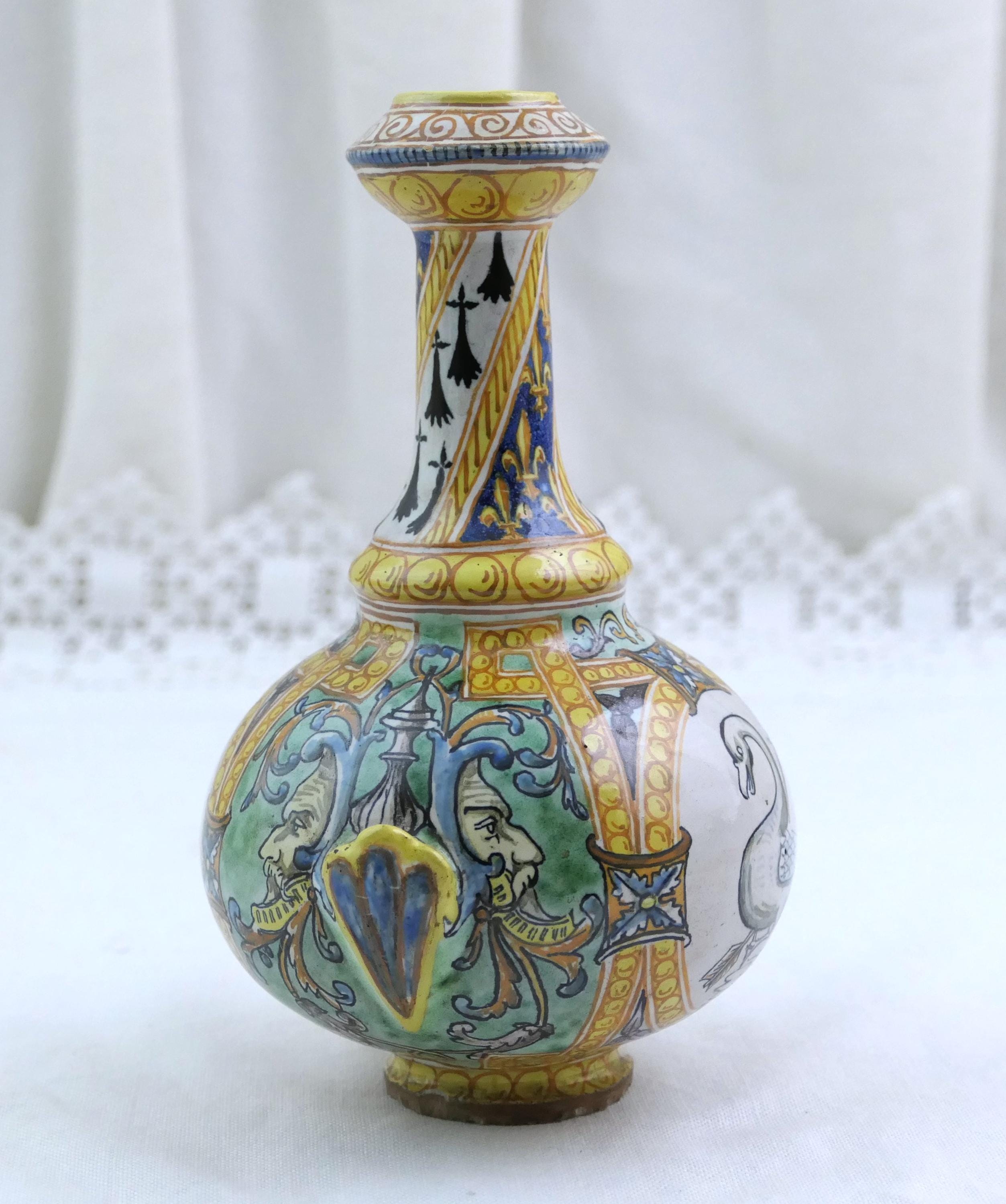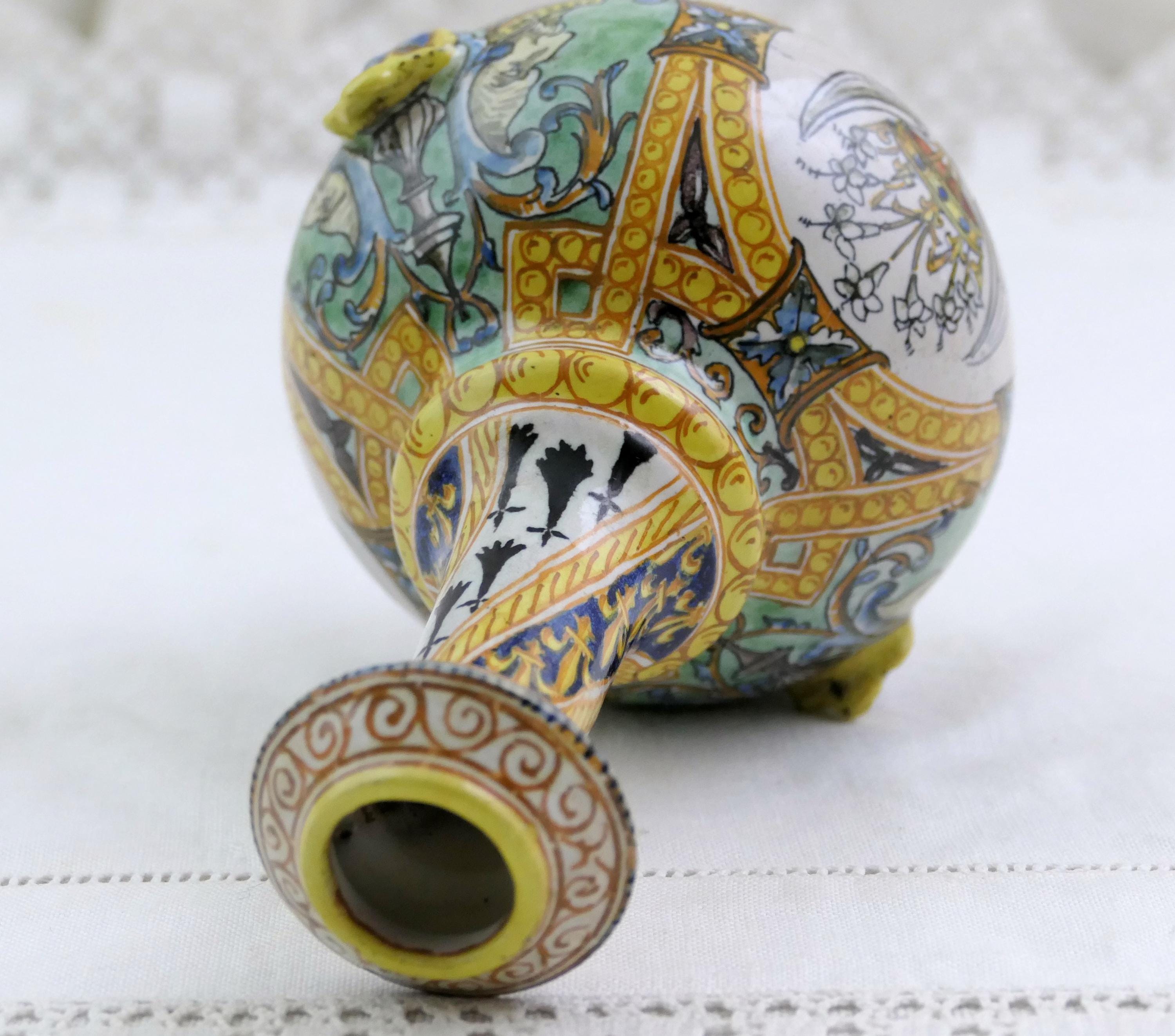 Small antique French faïence Blois Ulysse Bruneau Balon hand pained vase. Made of pottery in the Loire valley. Ca mid to late 1800s.