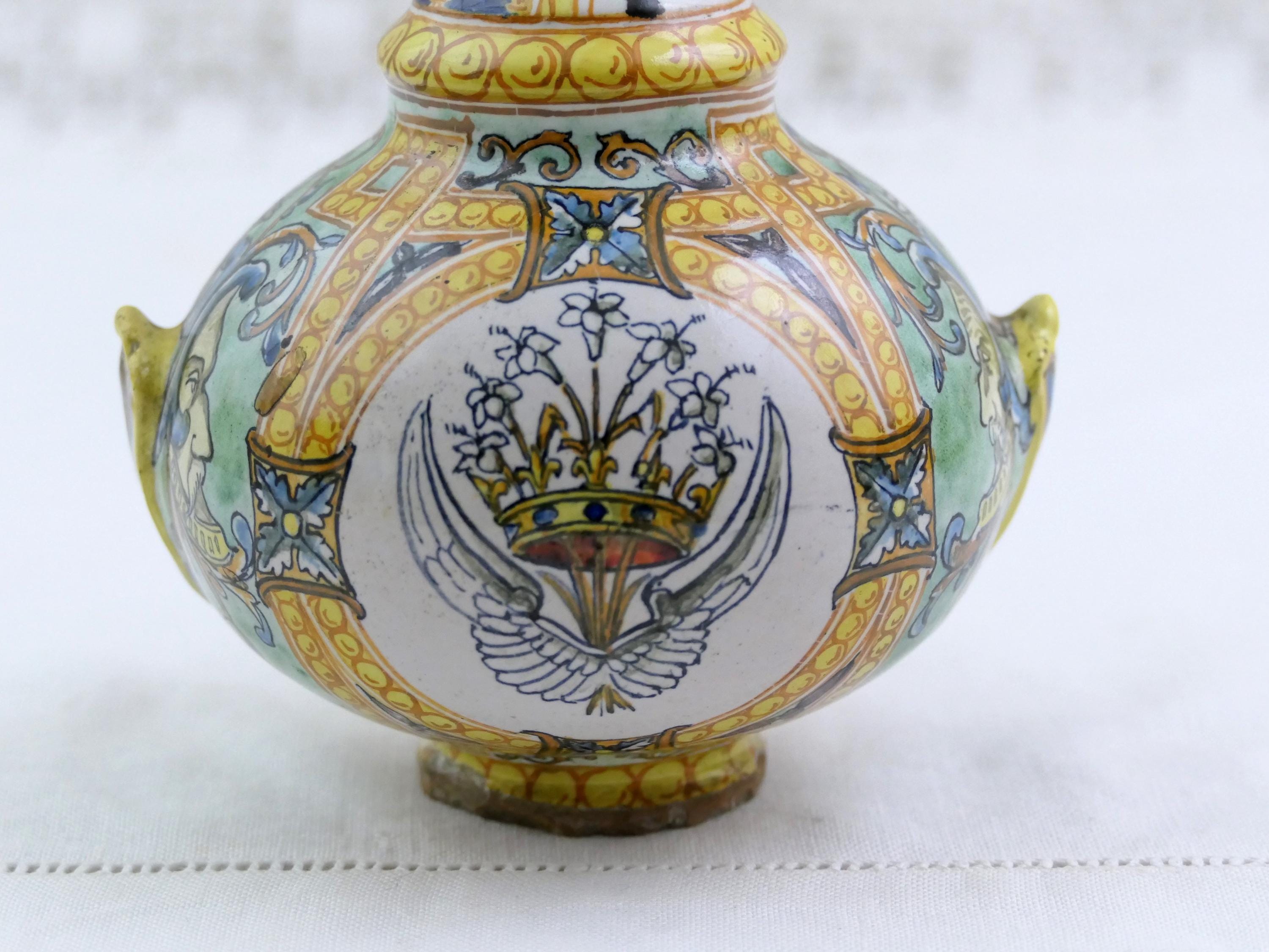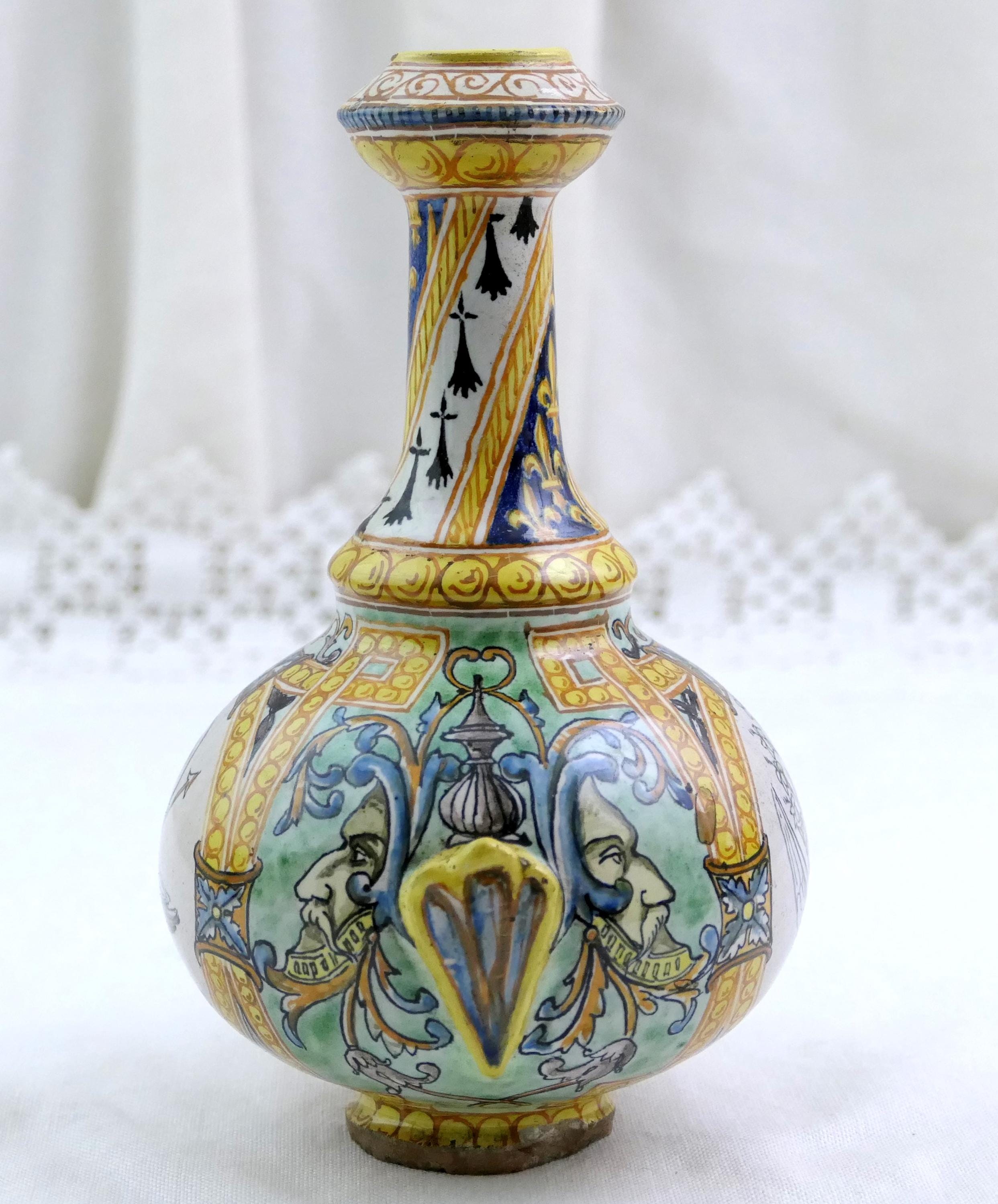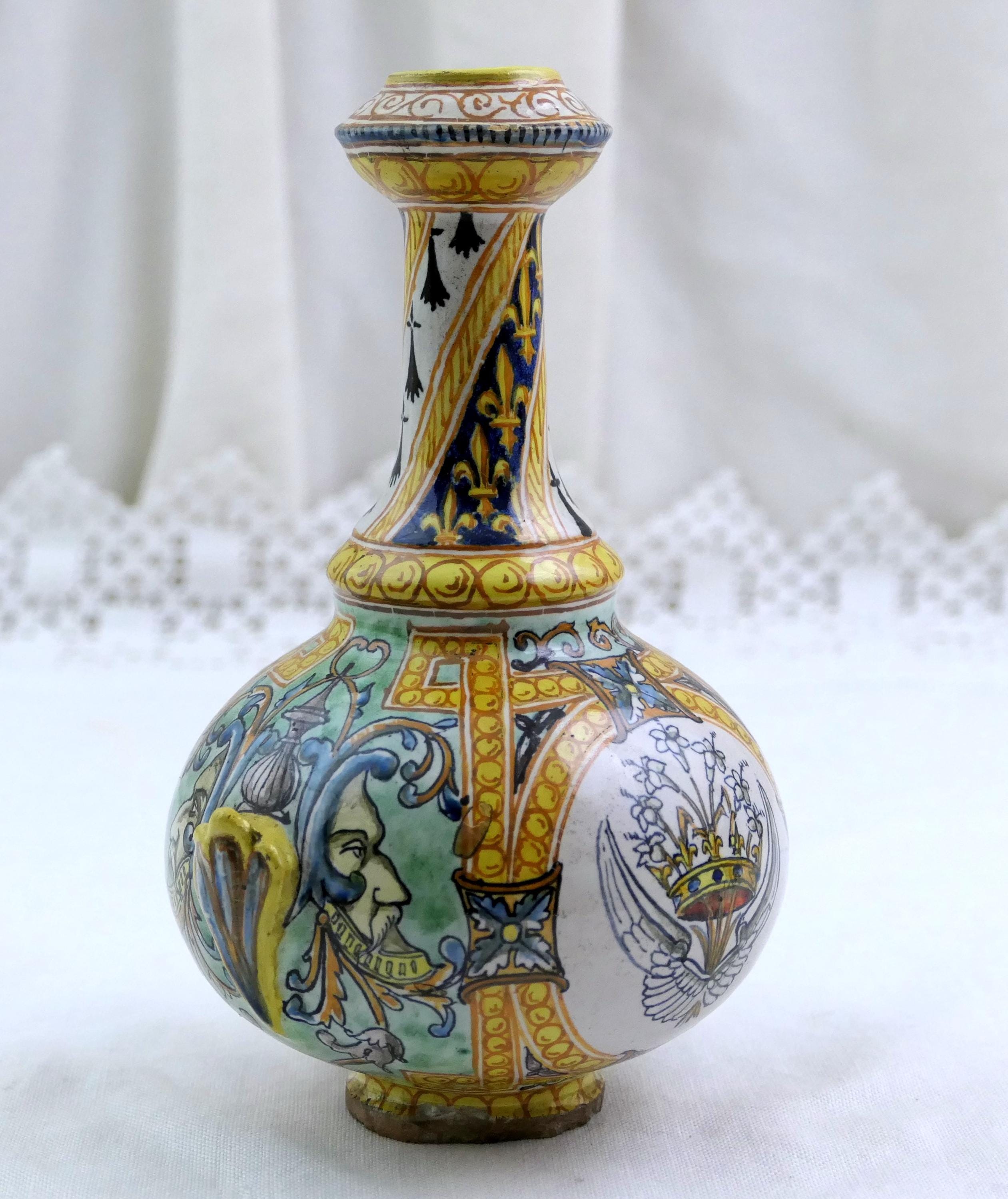 Small antique French faïence Blois Ulysse Bruneau Balon hand pained vase. Made of pottery in the Loire valley. Ca mid to late 1800s.