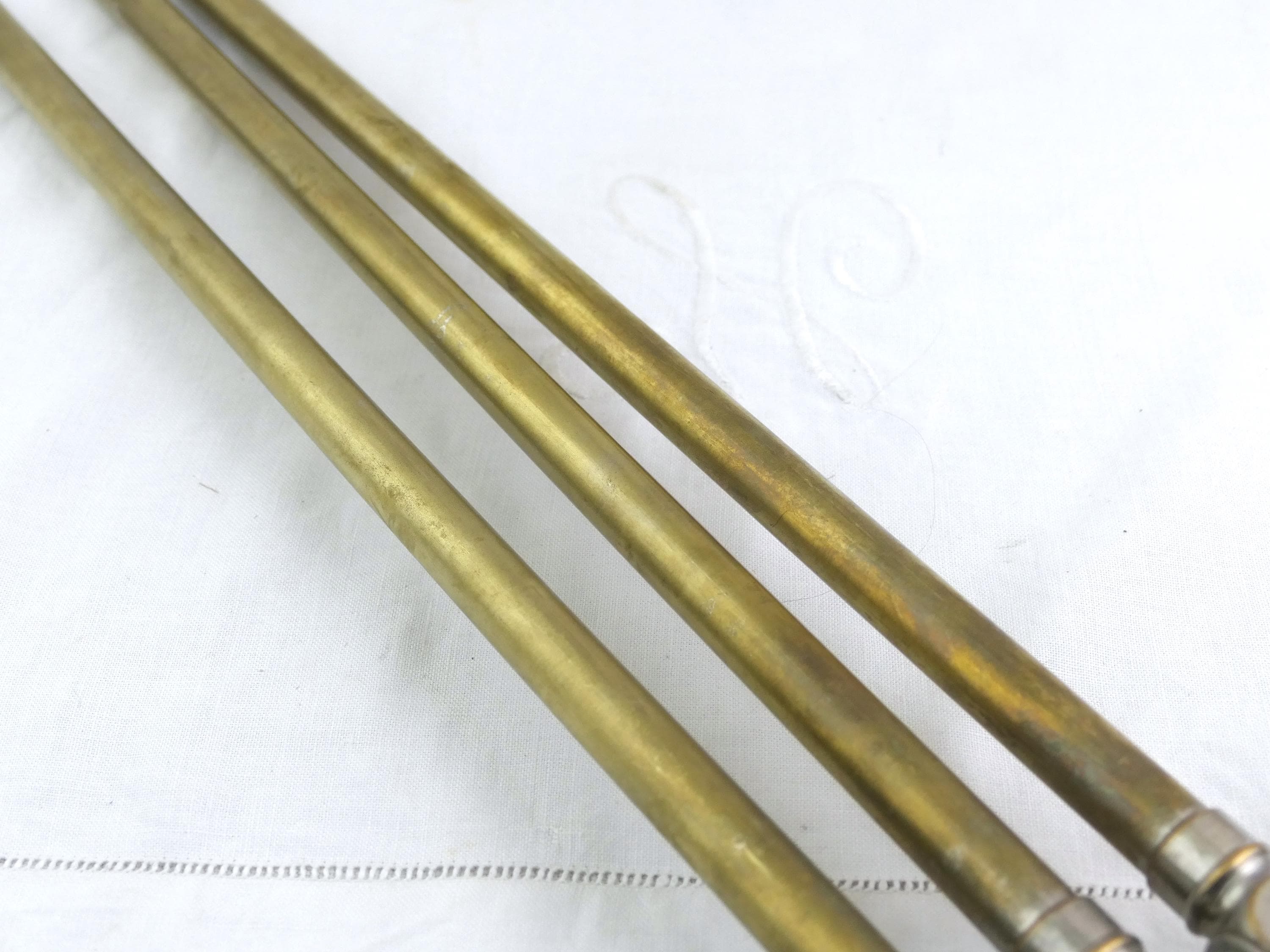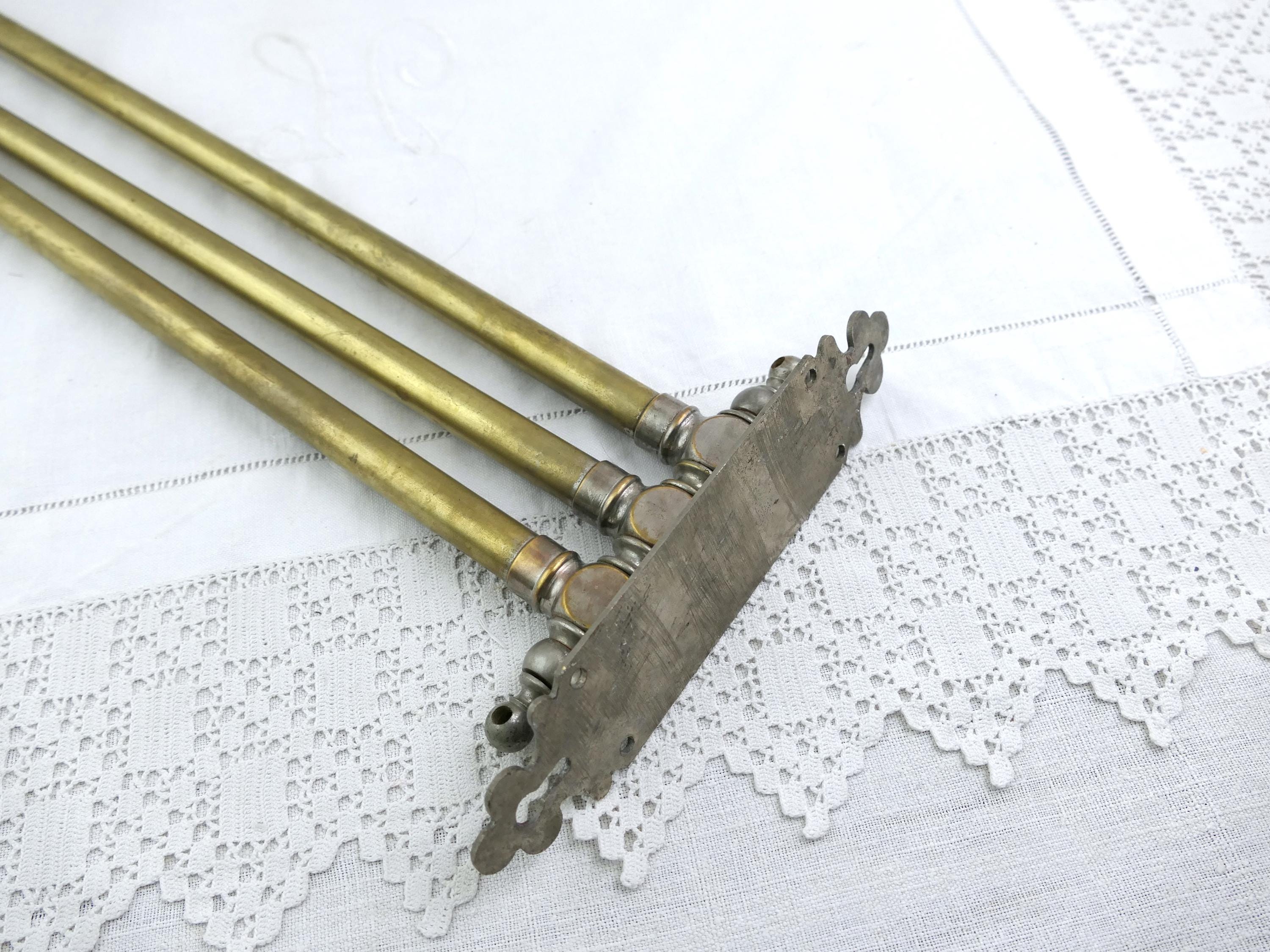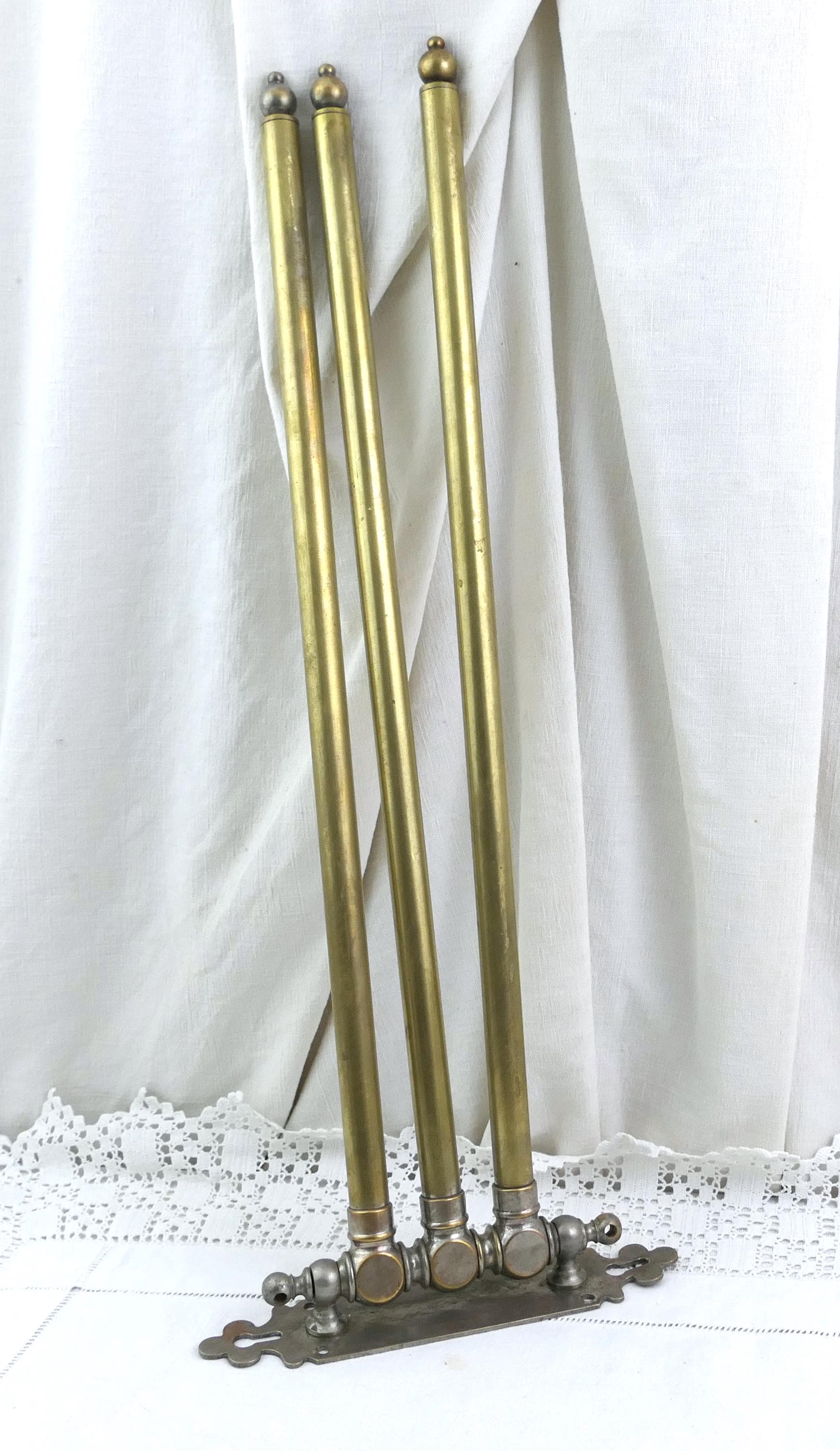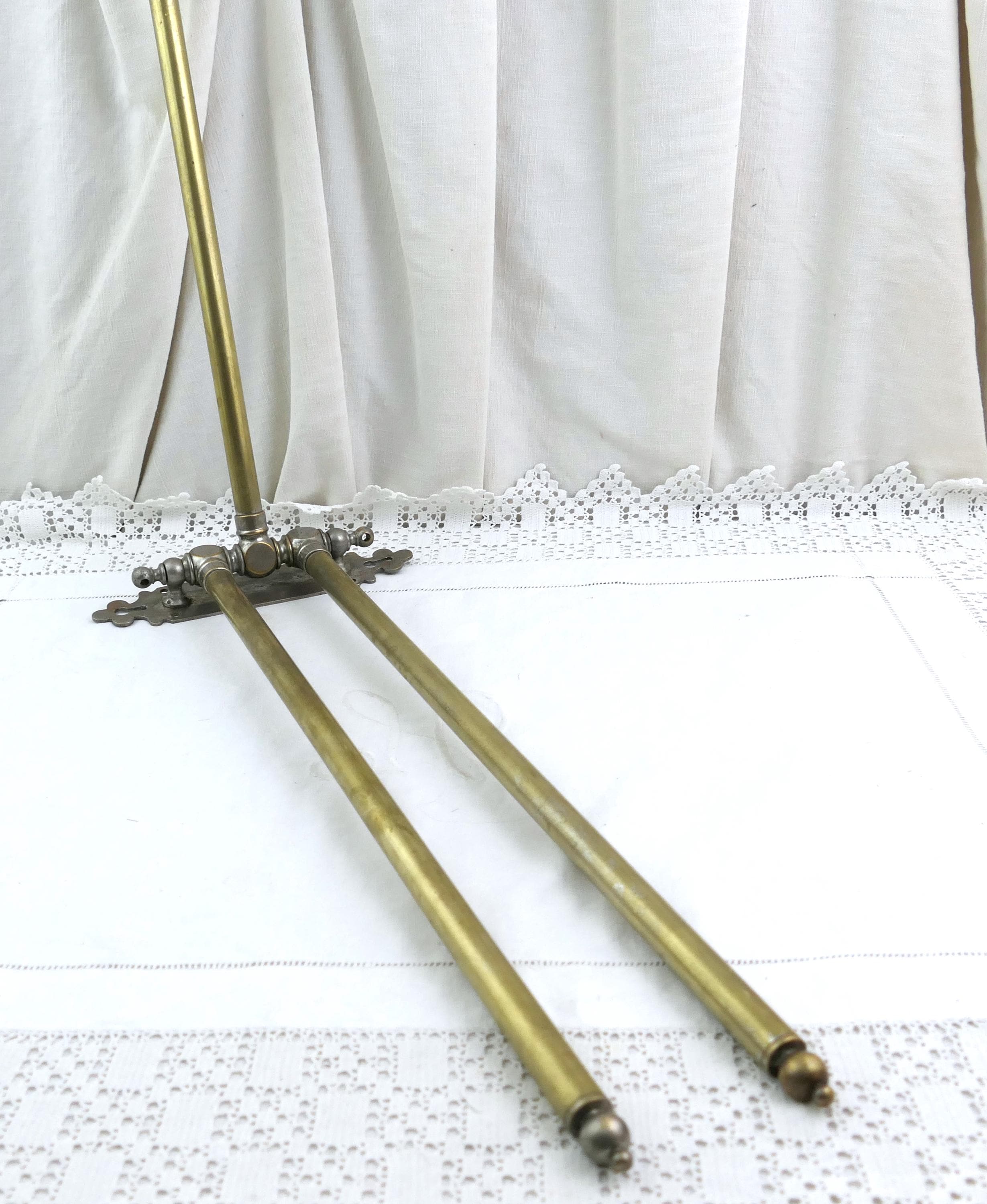 Large antique French swivel towel rack with 3 rods. Made of brass with worn silver plate. Ca late 1800s - mid 1900s.