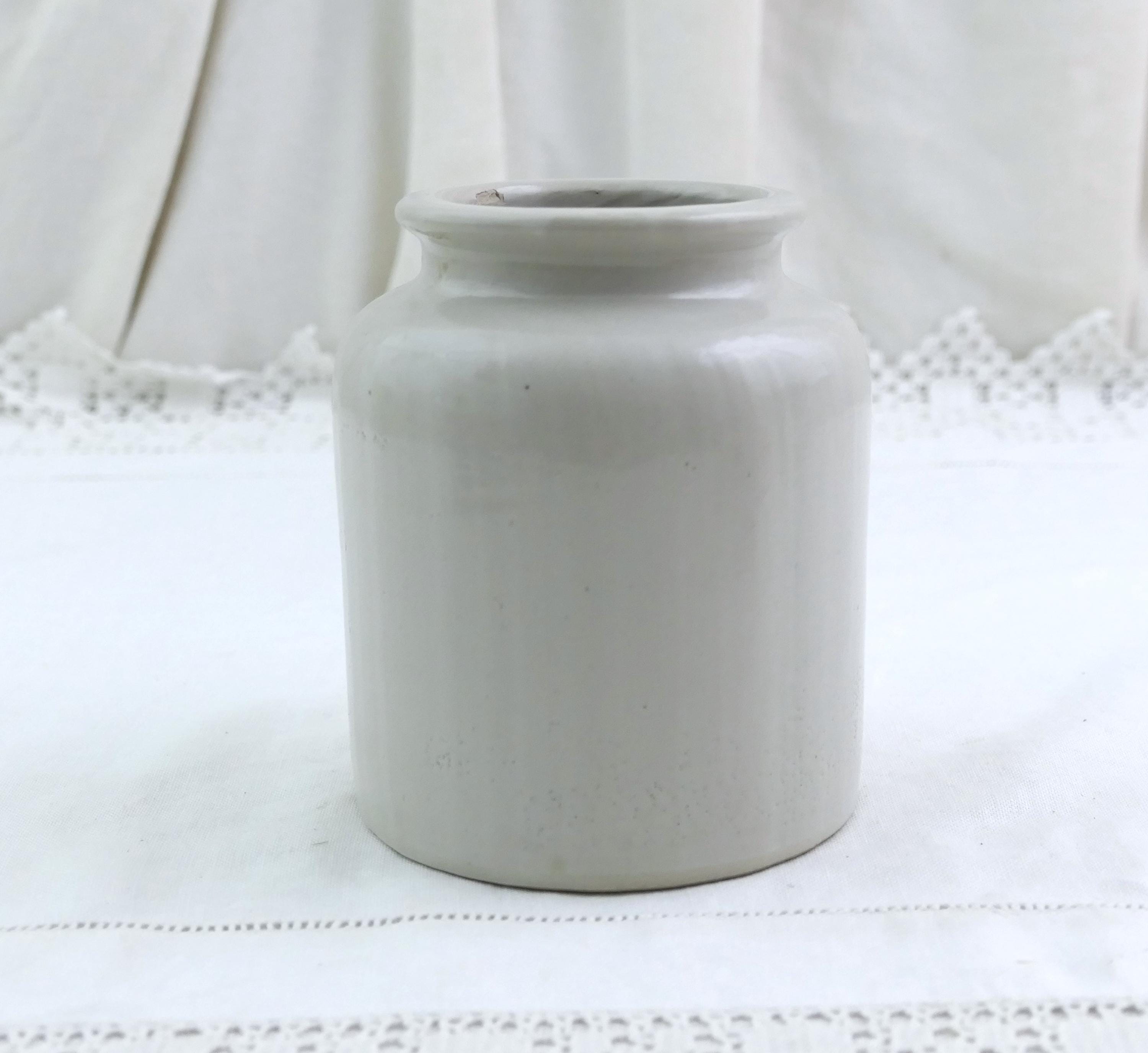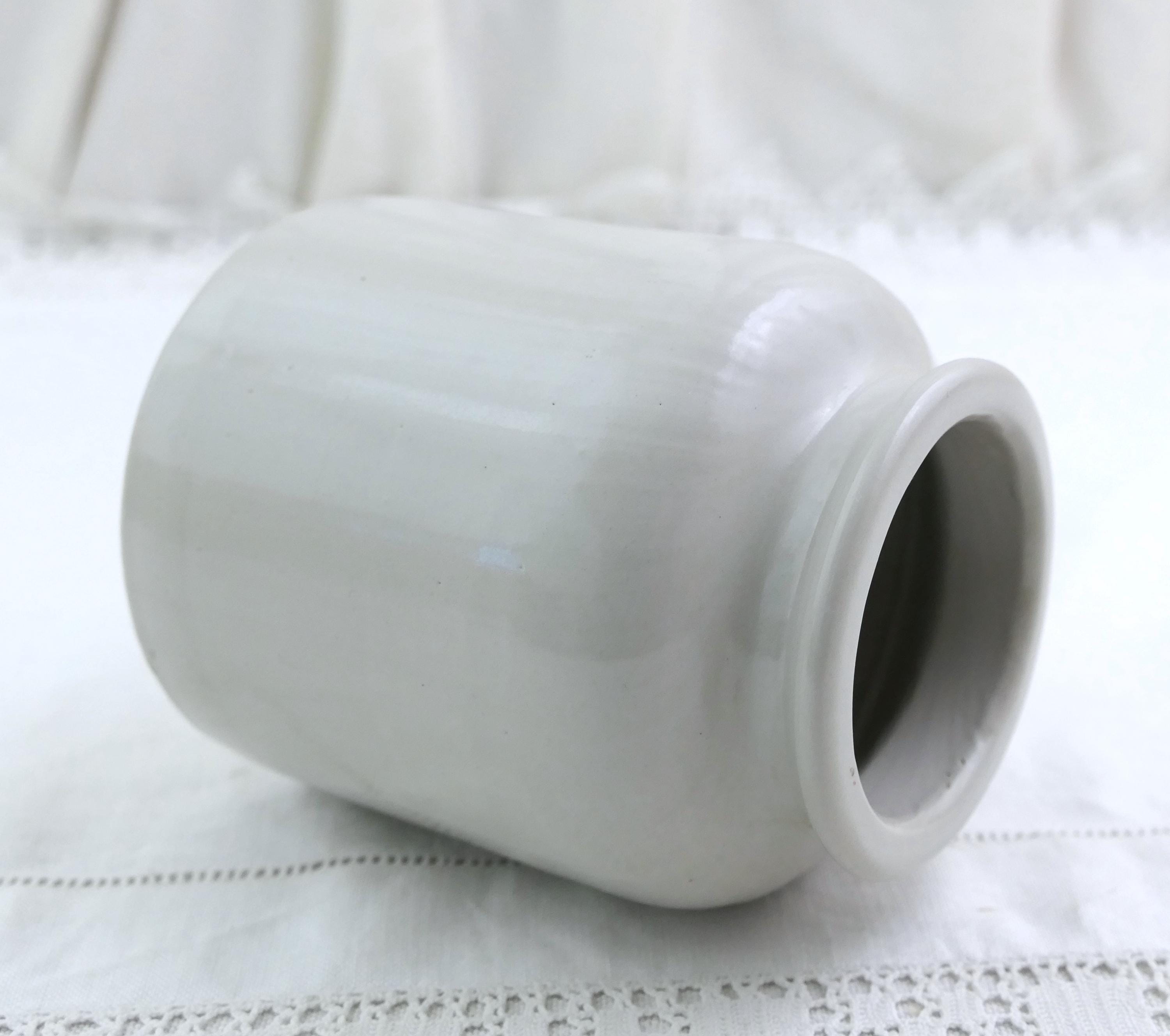 Vintage French off white crock pot. Made of salt glazed earthenware pottery. Ca 1920s.