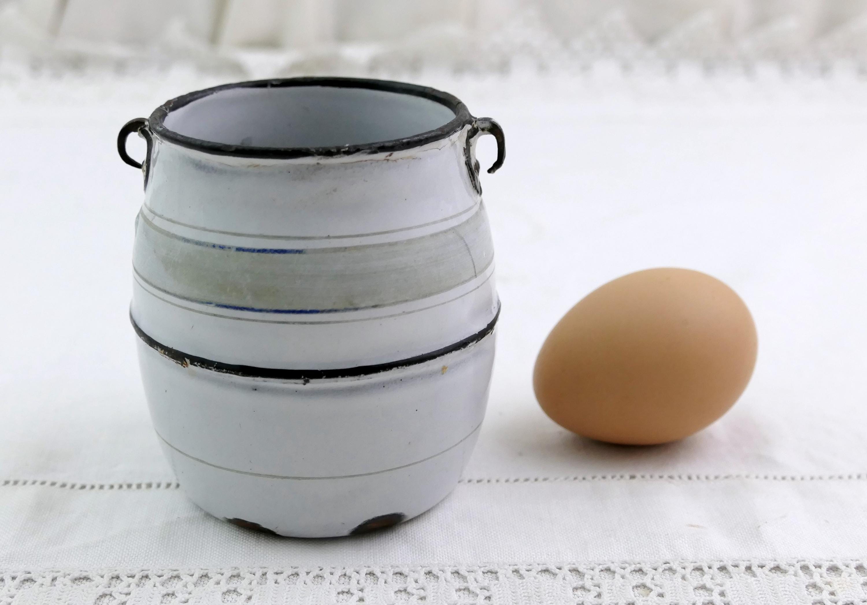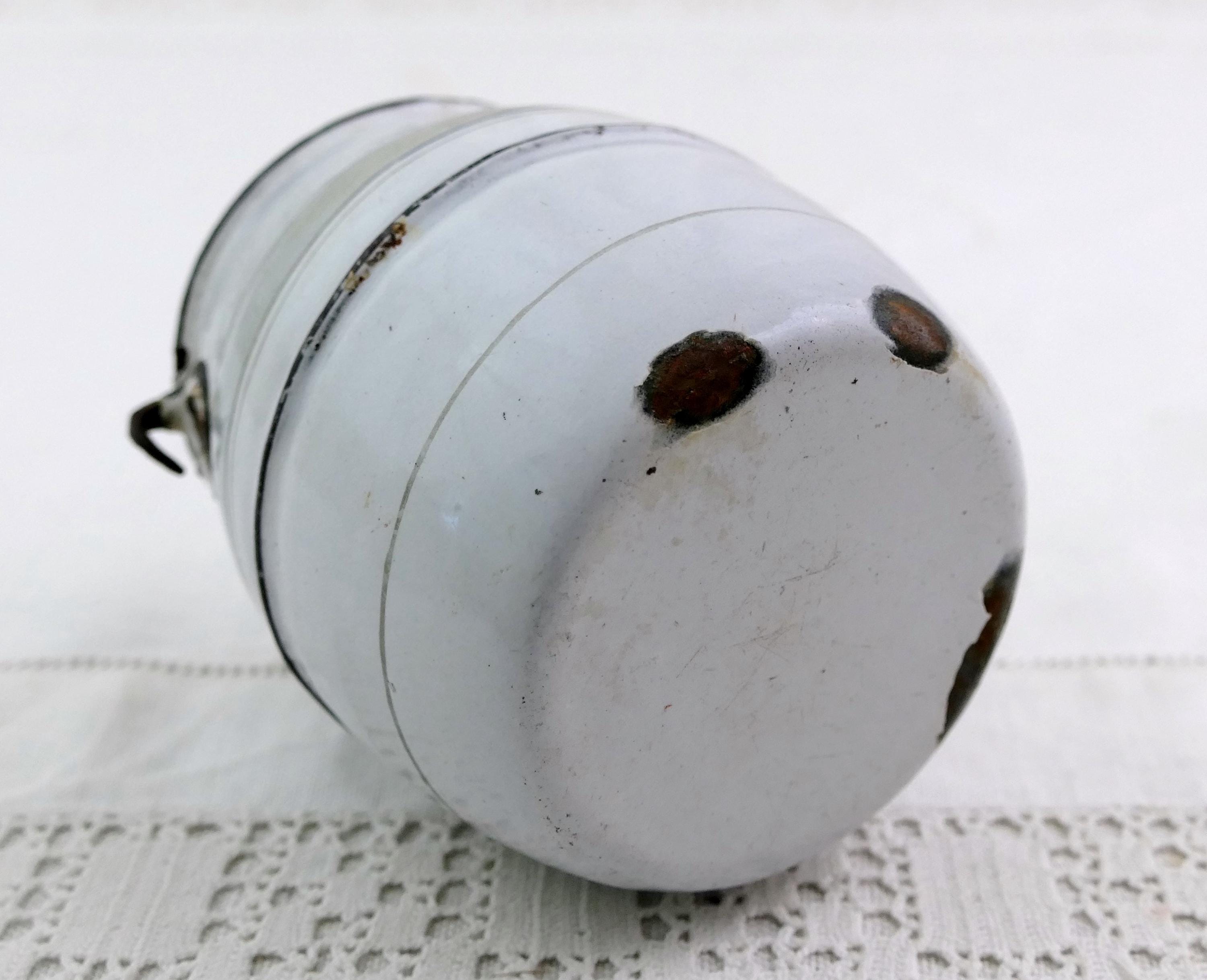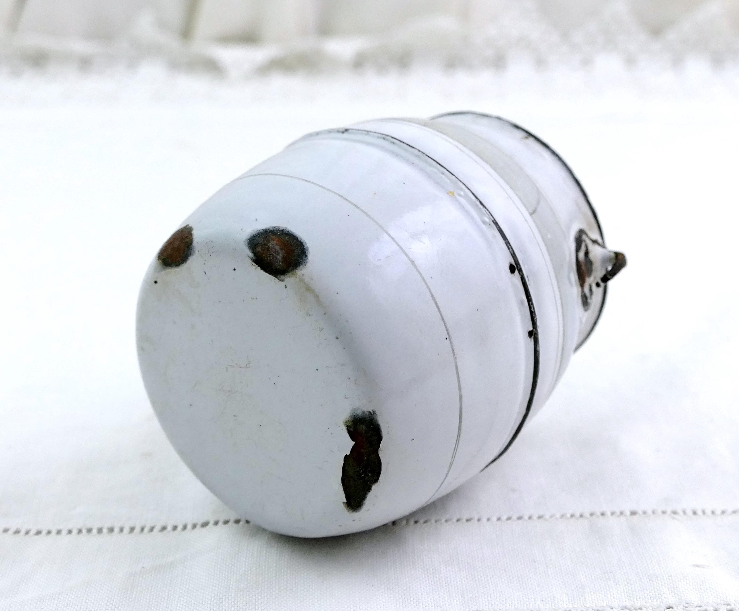 • In antique pre used condition, enamel chips and missing handle - see photos.