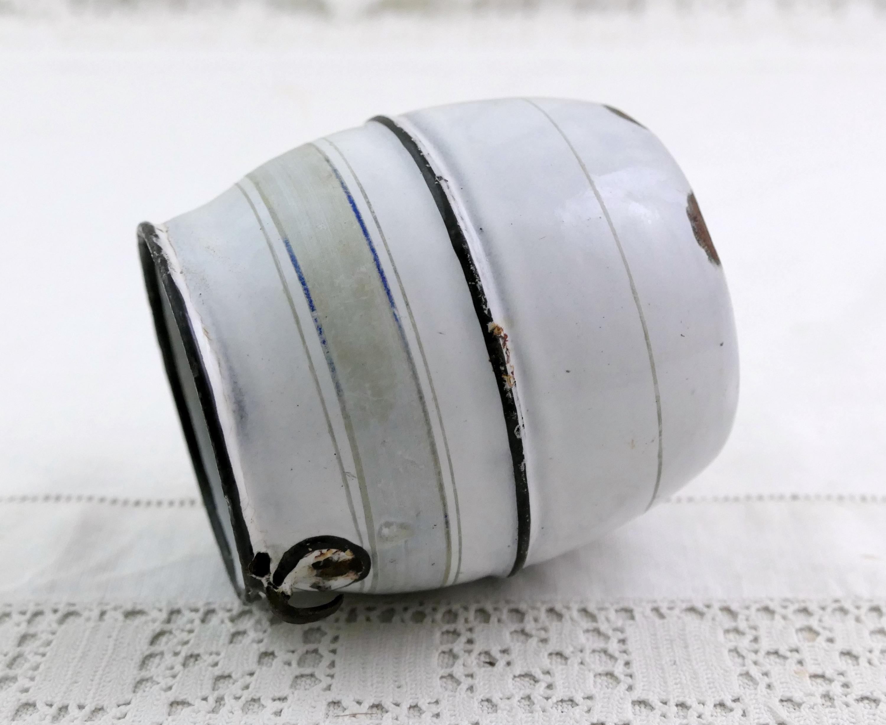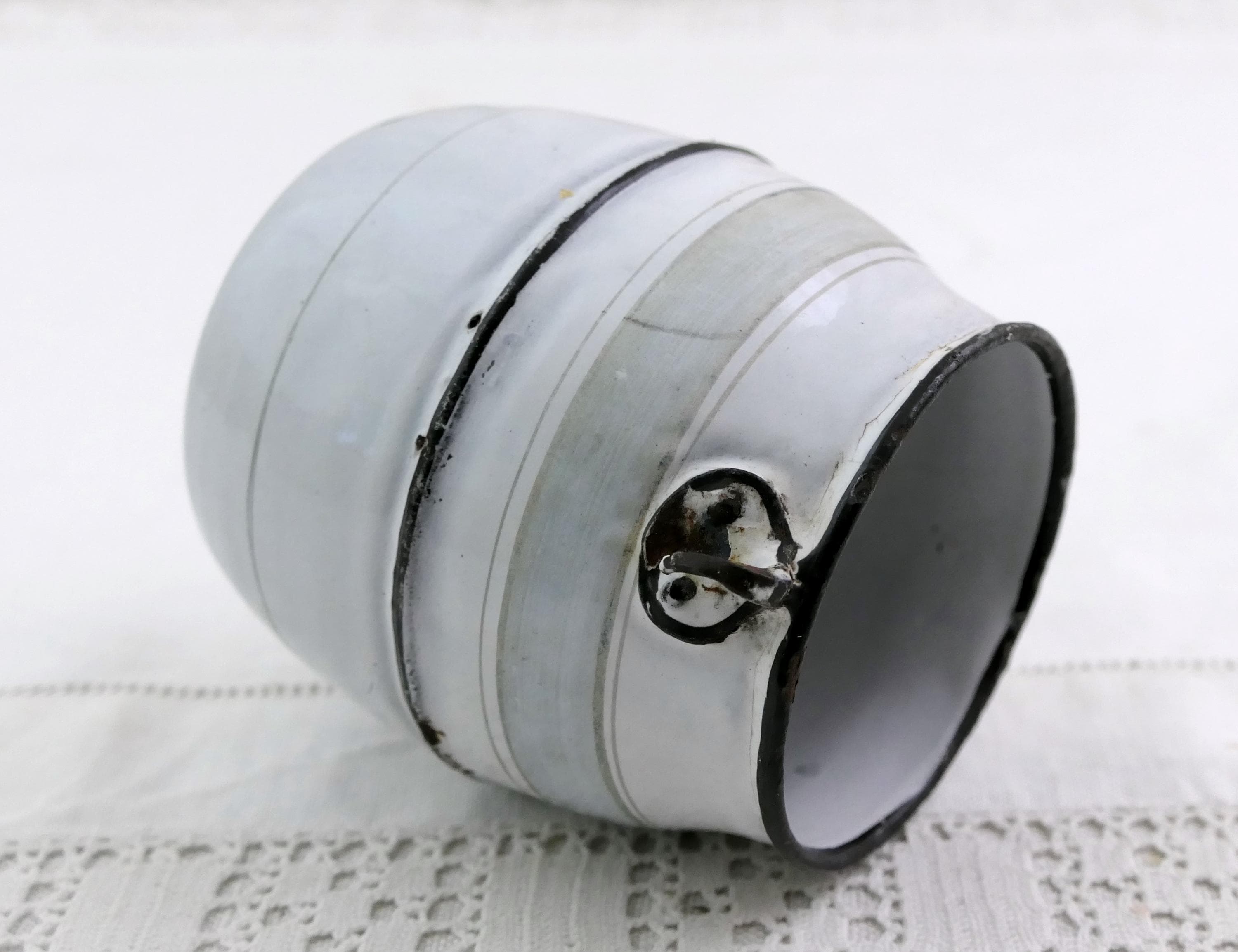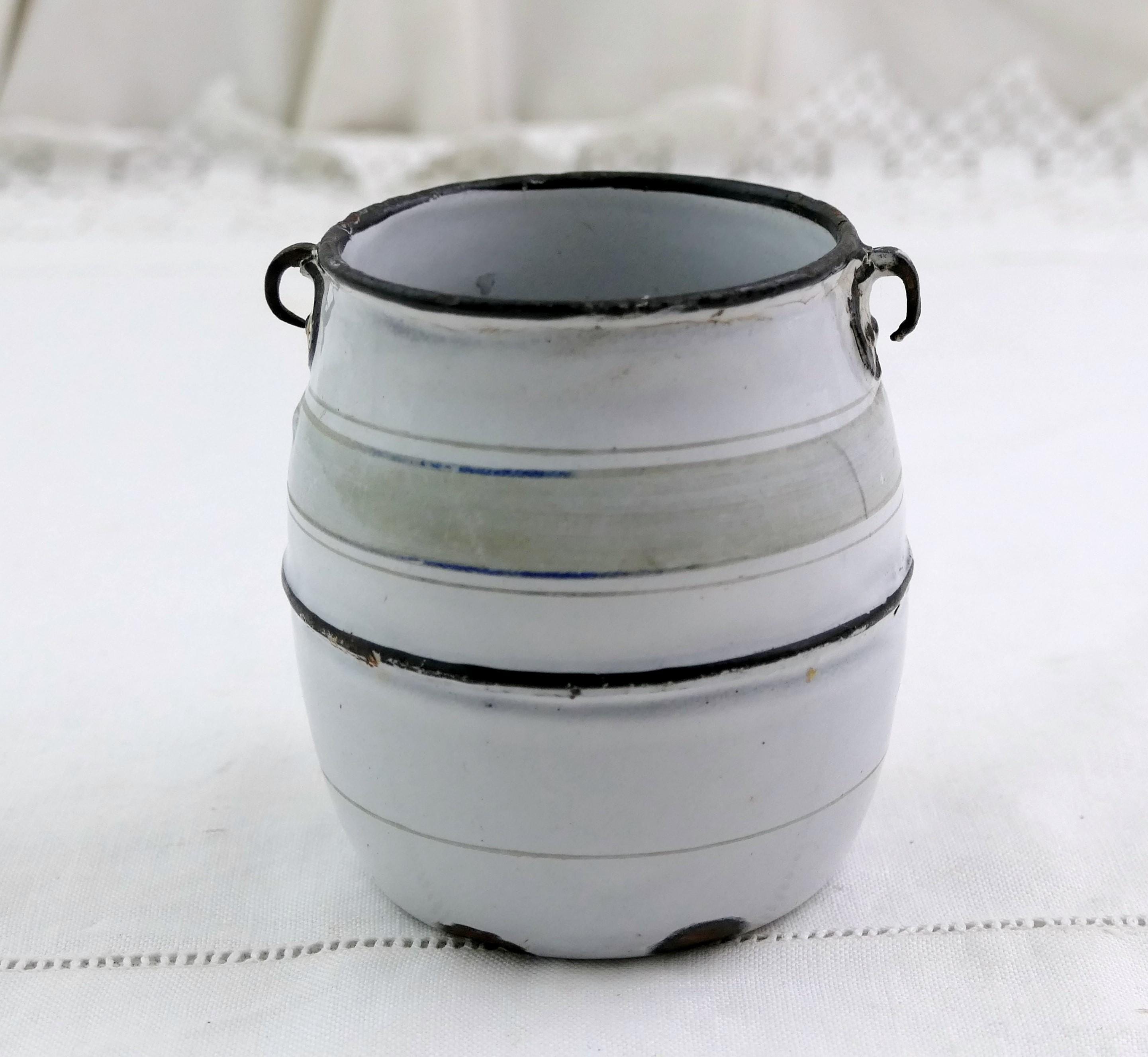 Antique French chippy white small pot belled bucket without a handle. Could be used as a desk tidy. Ca 1800s.