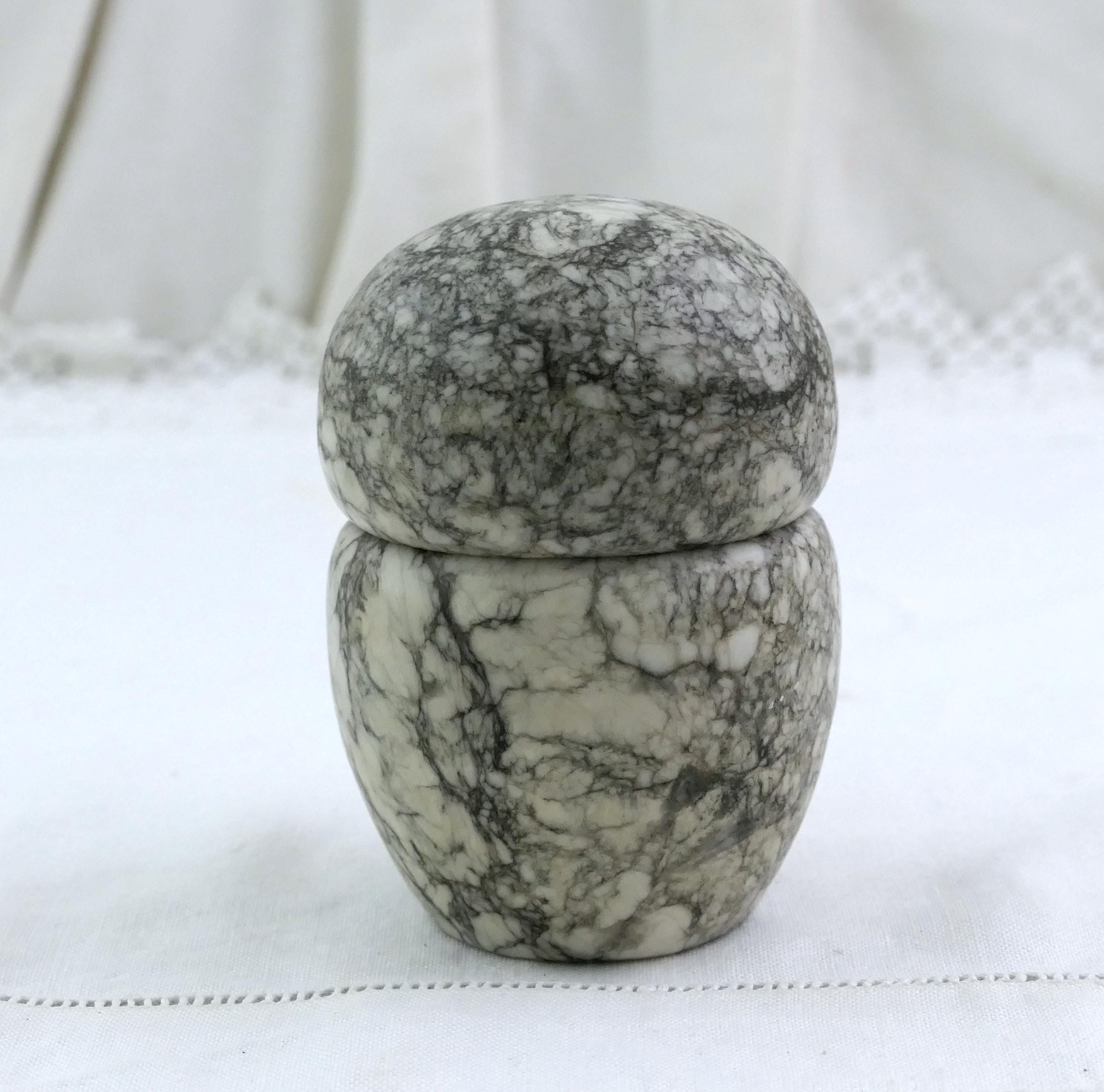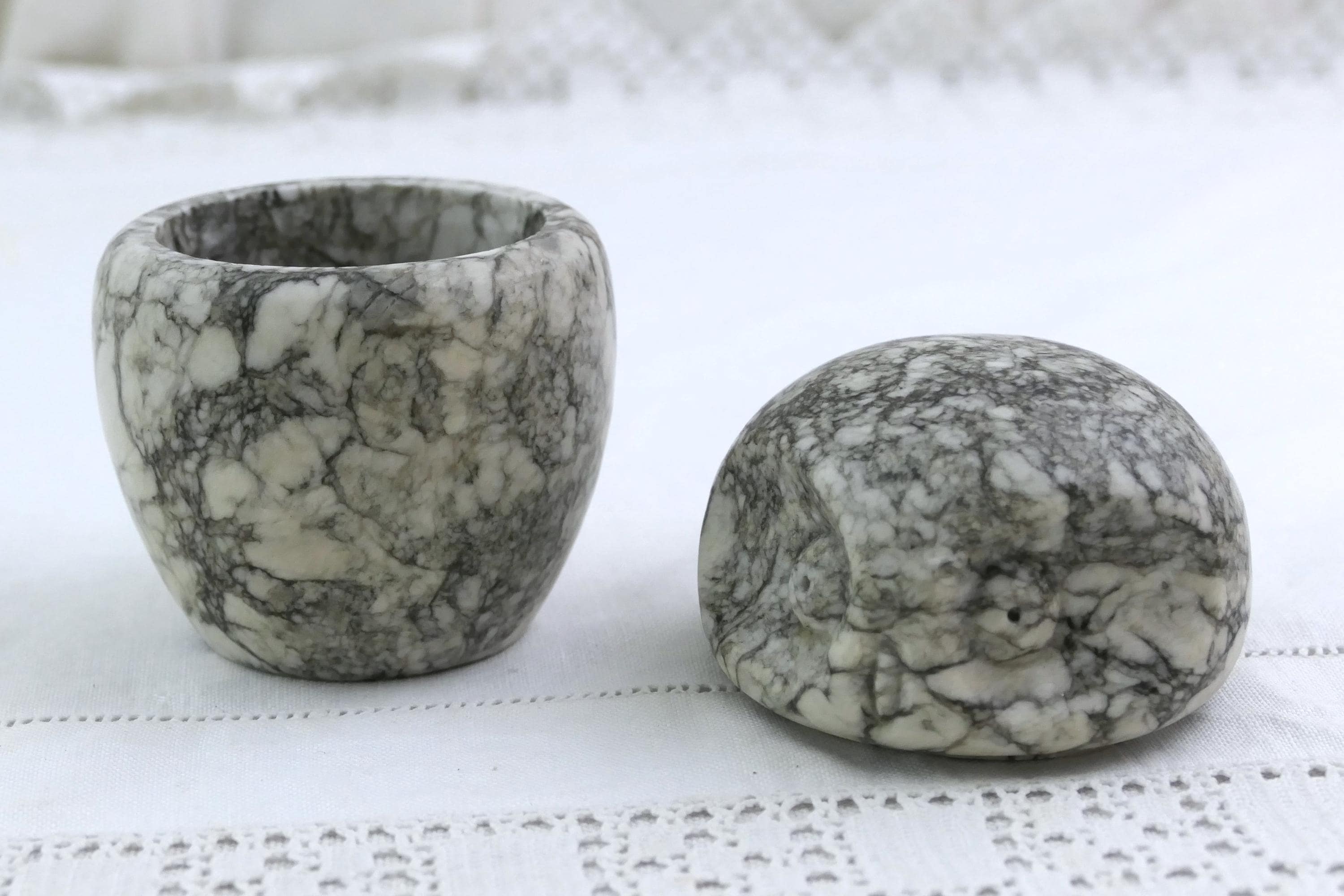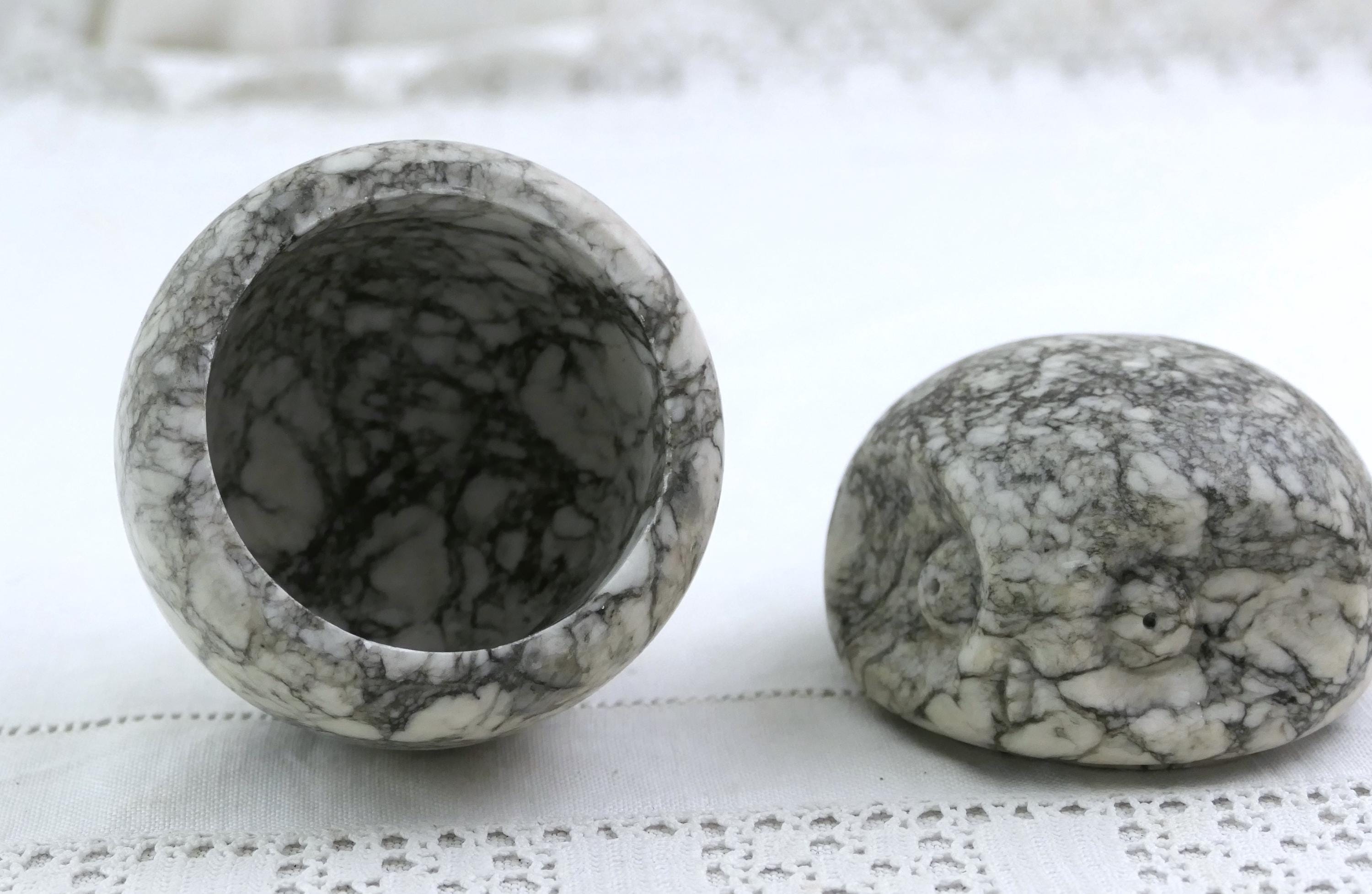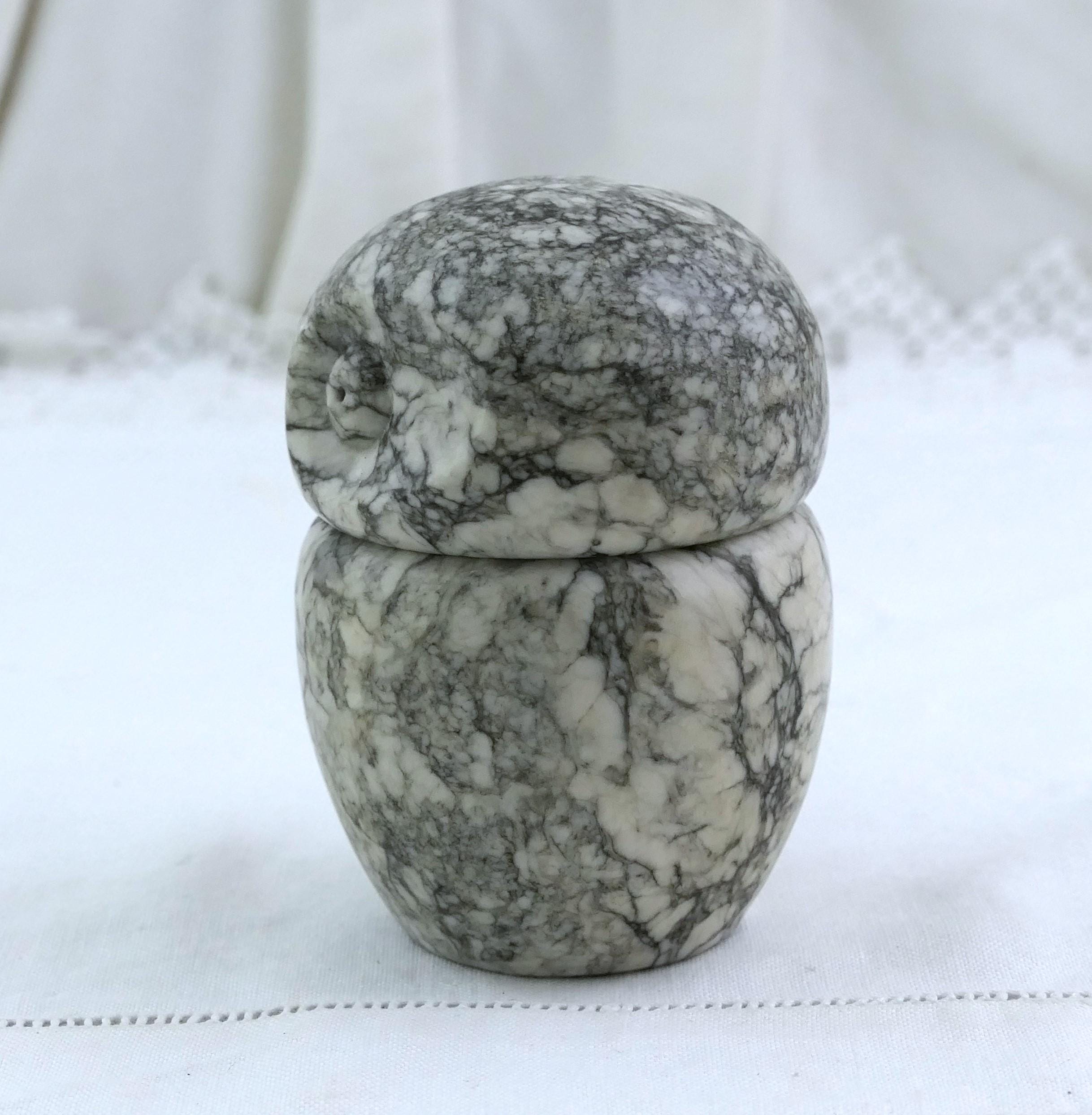 Retro vintage stone owl box. Made of carved, polished black and white alabaster stone. Ca mid 1900s.