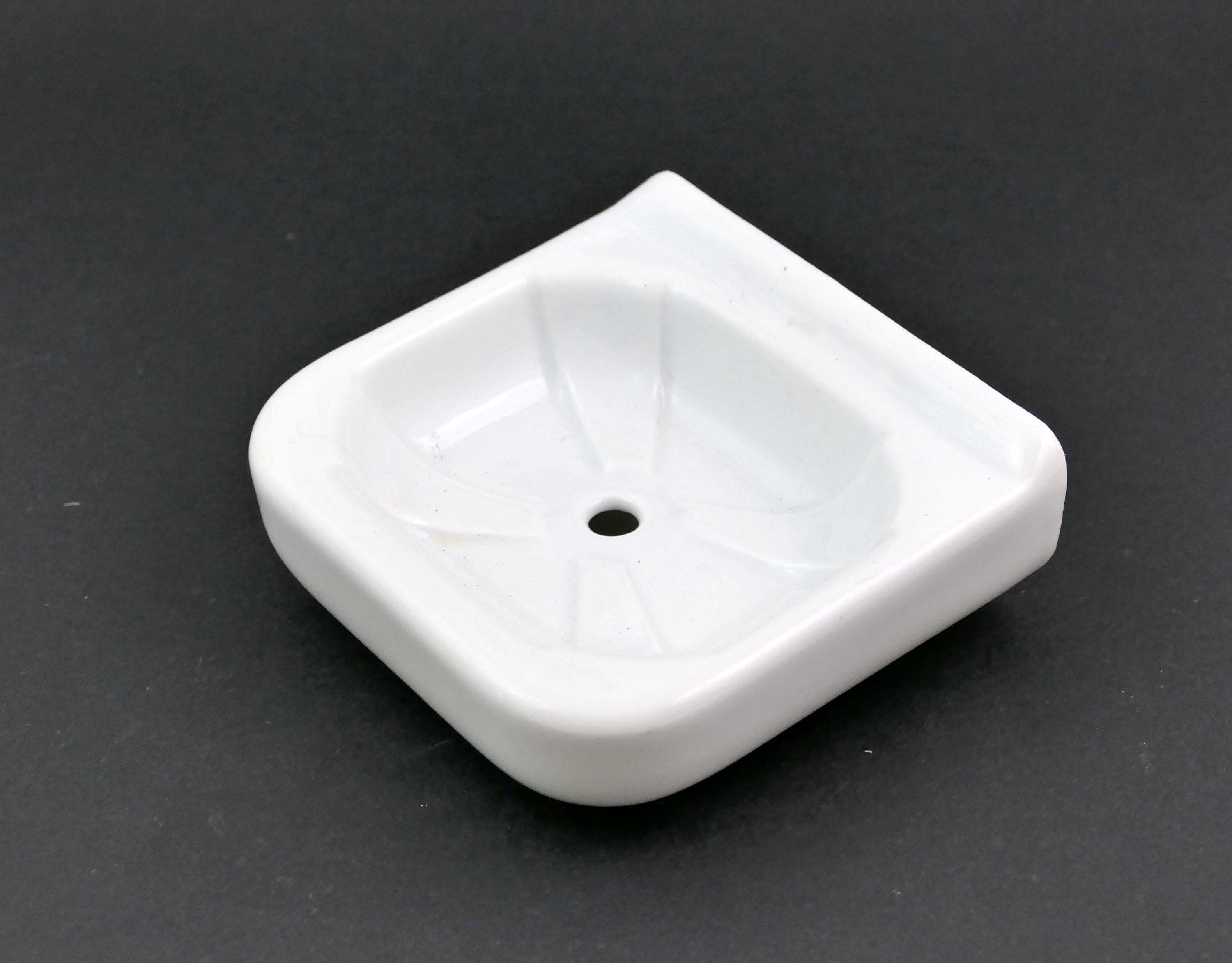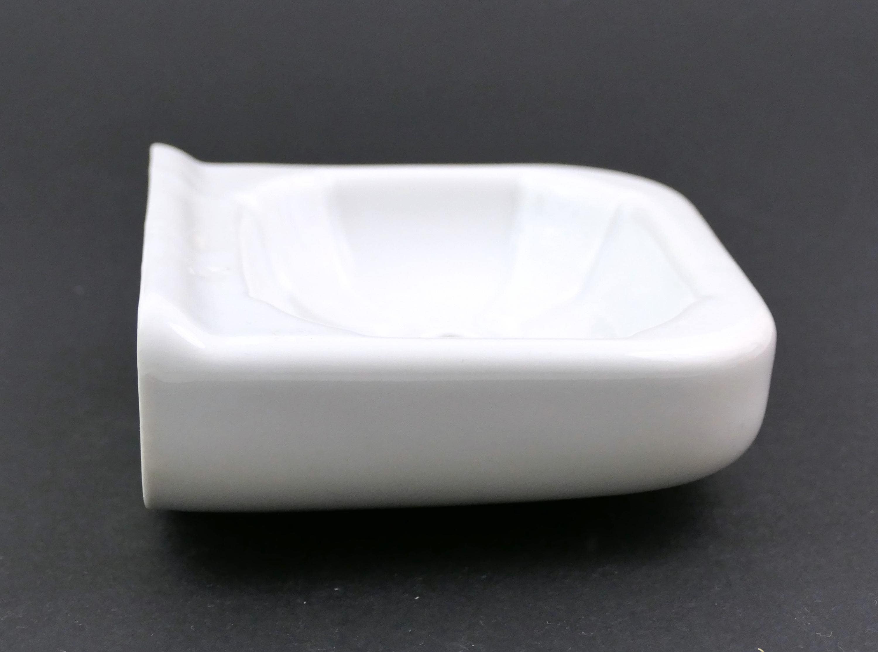 Vintage French wall mounted soap bar holder. Made in Limoges of white glazed porcelain china. Ca 1930s.