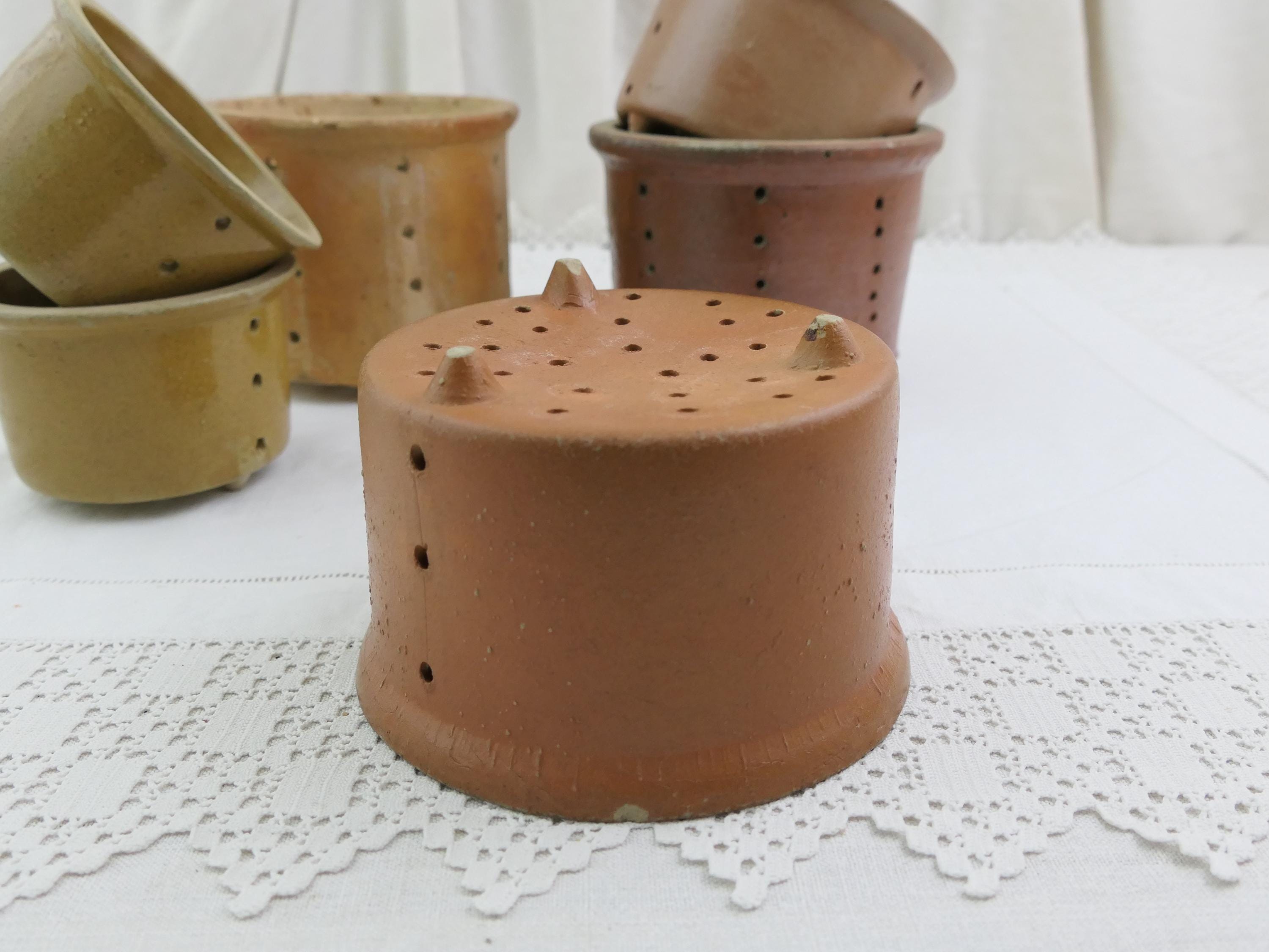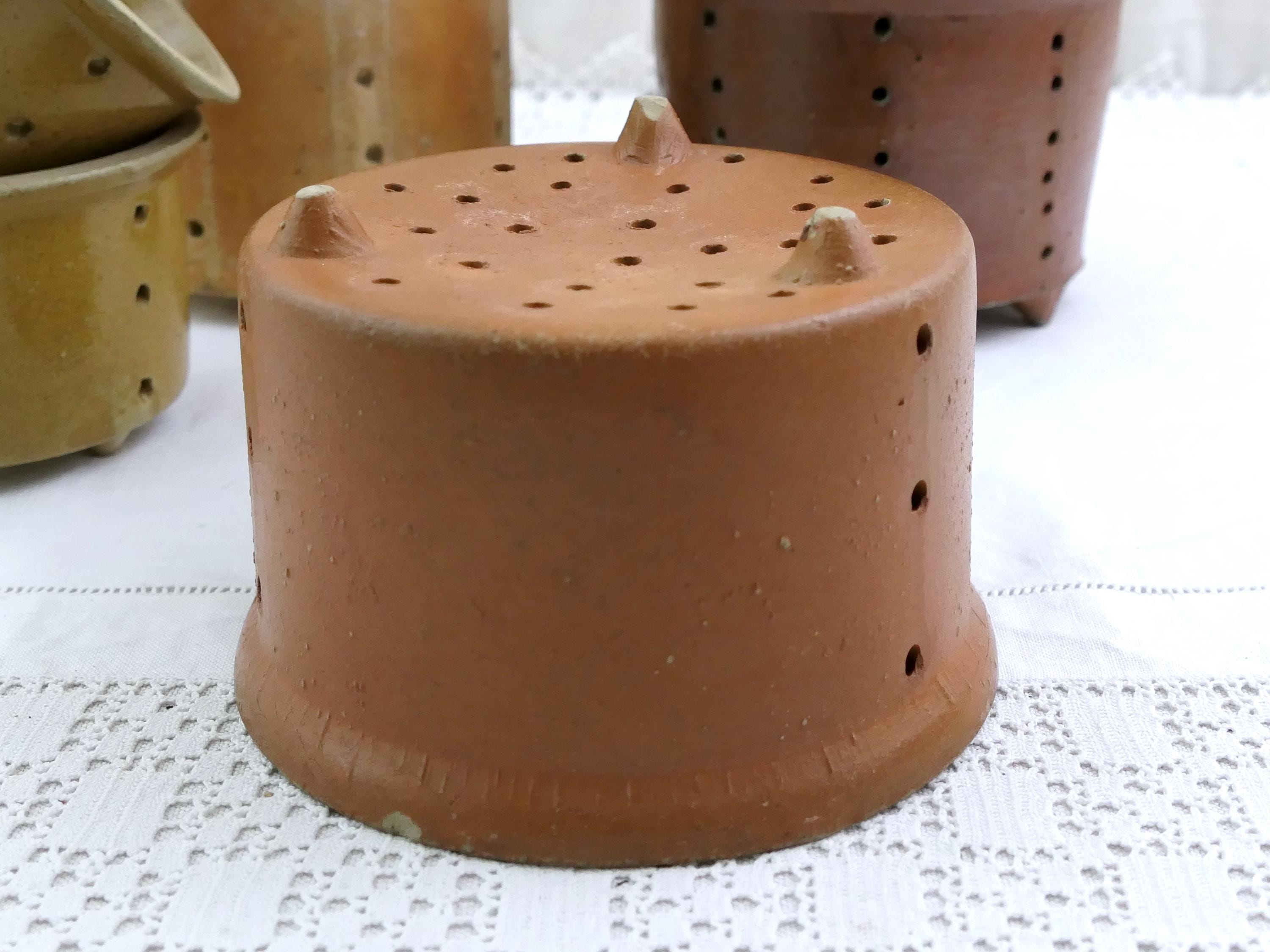 Large Antique French cheese mold. Made of salt glazed pottery. Ca early 1900s.