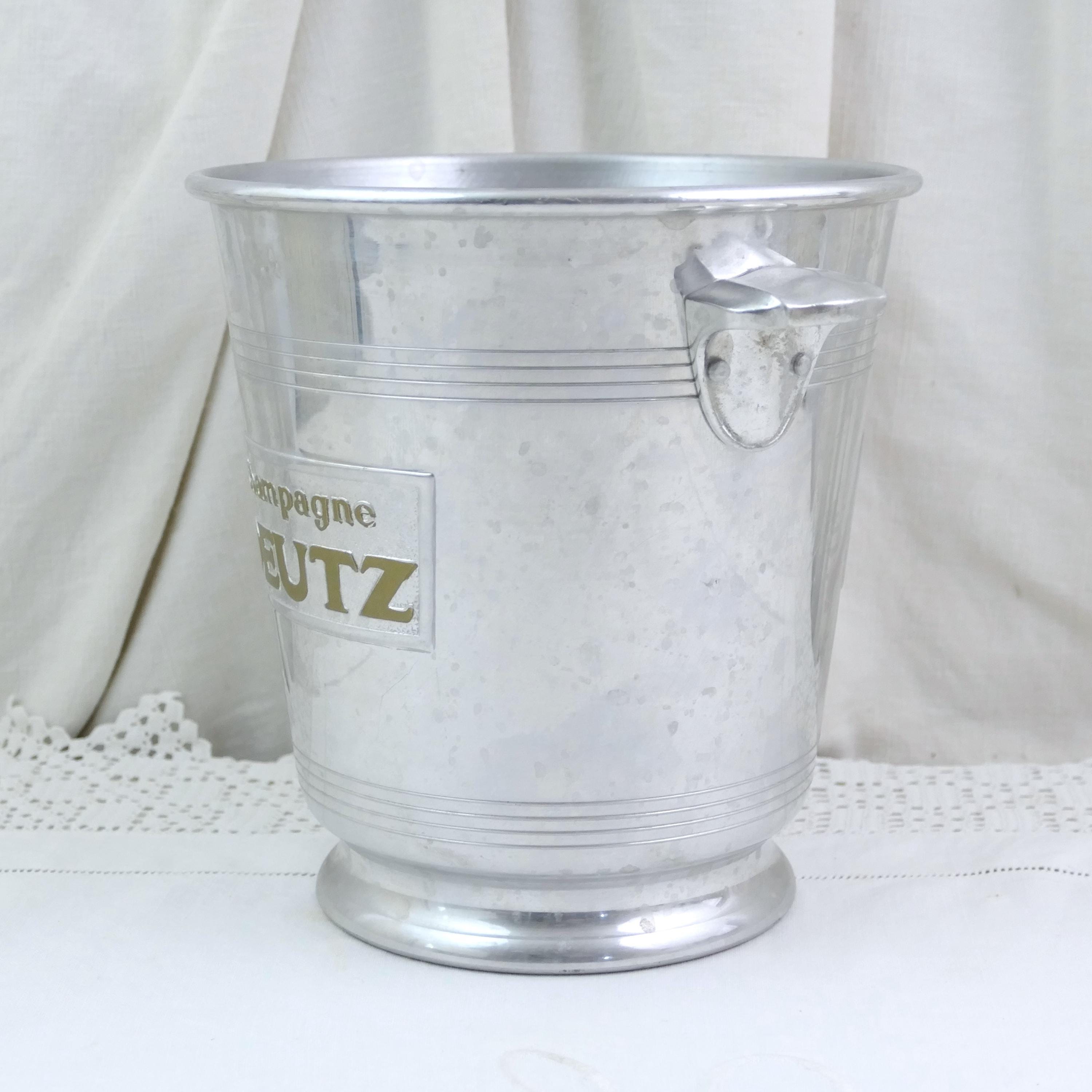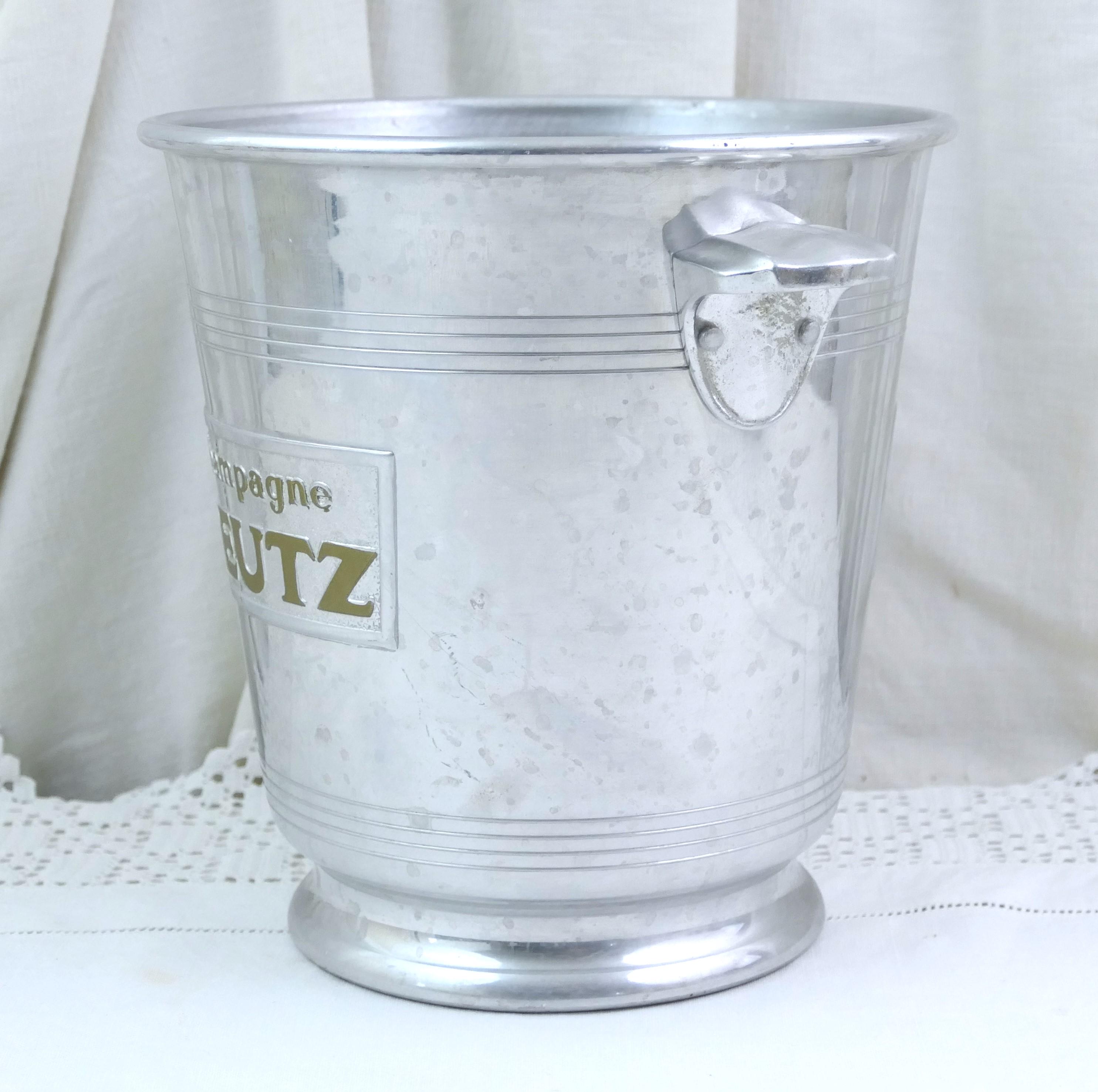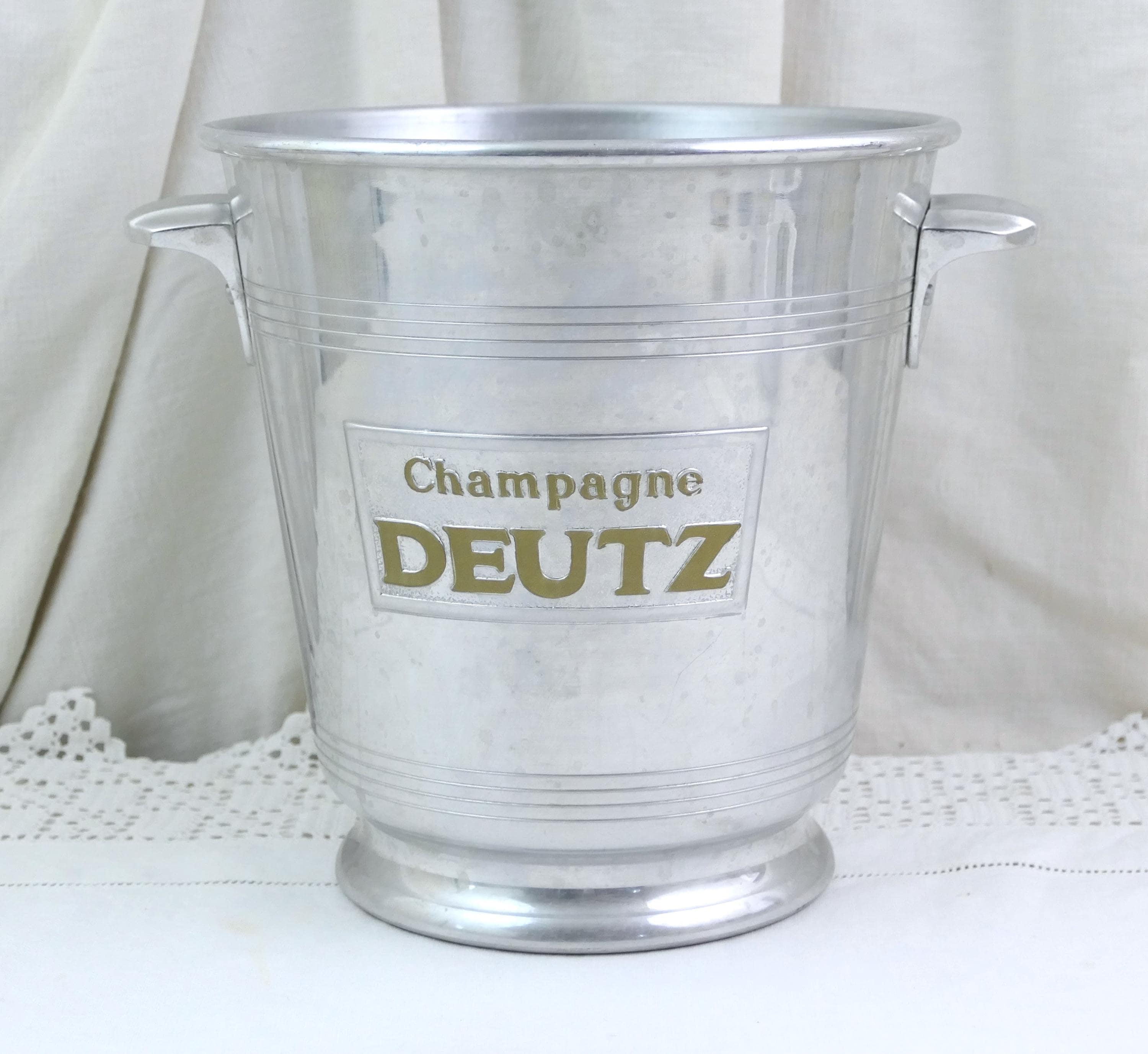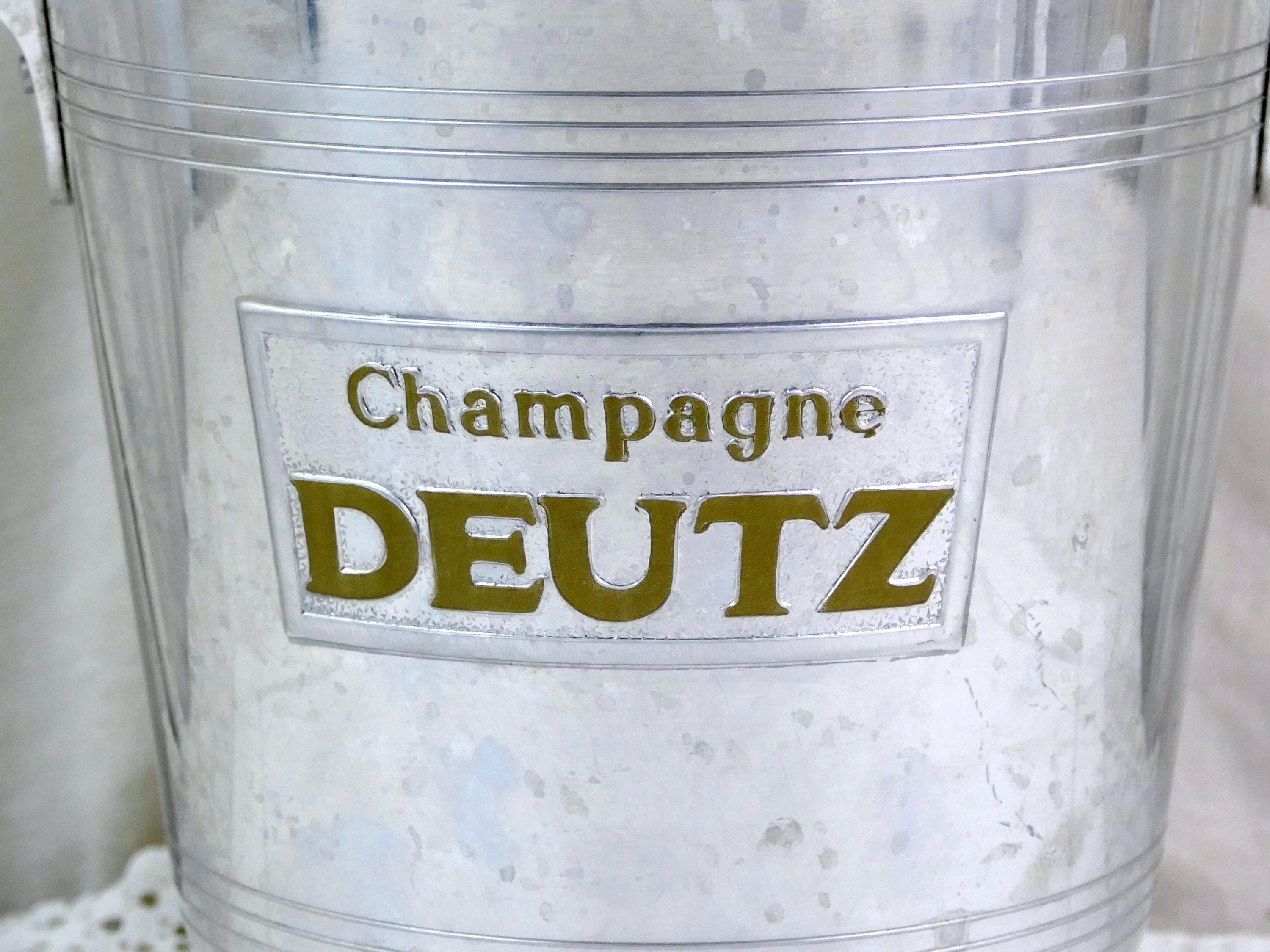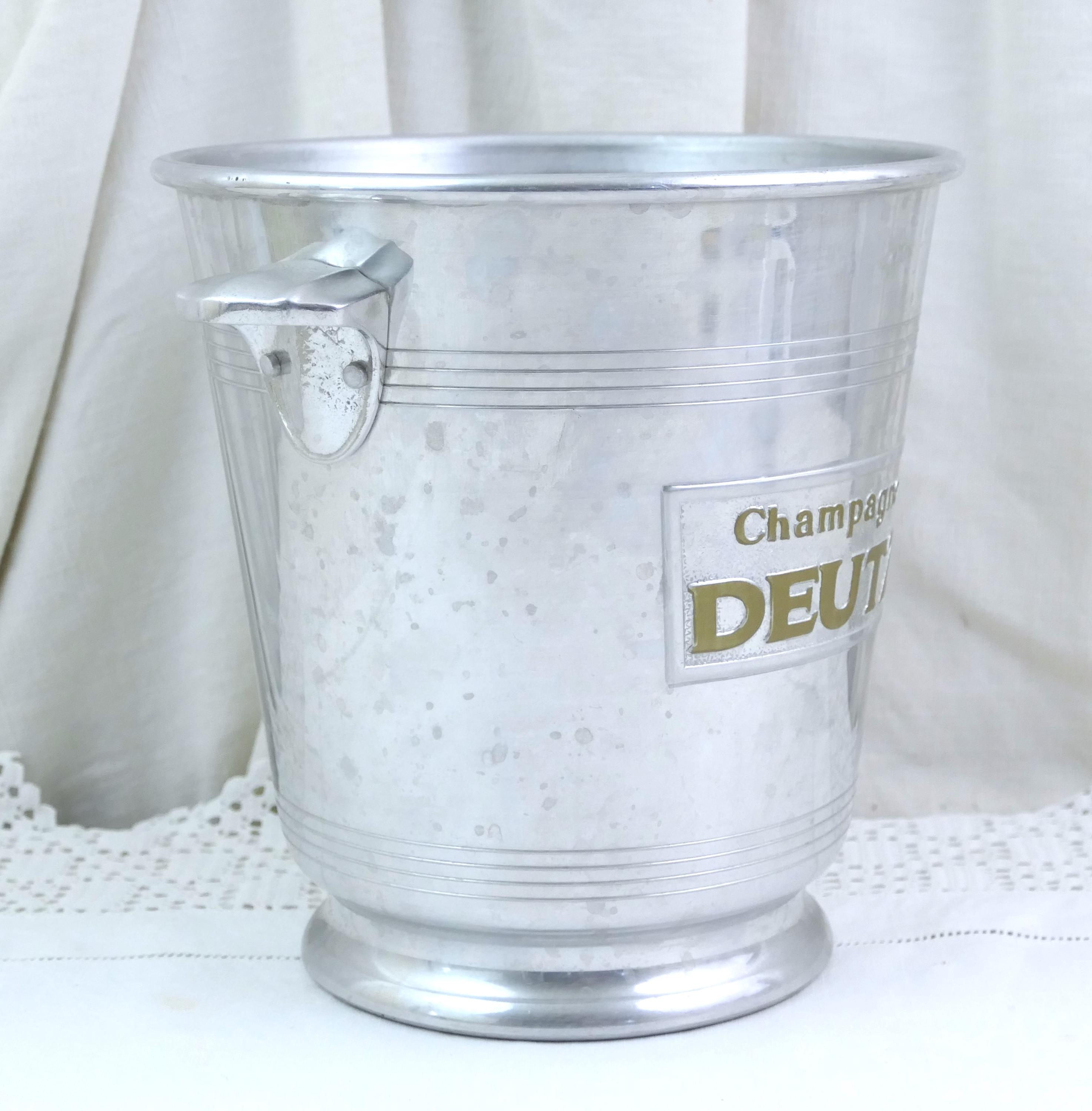 Vintage French ice bucket Deutz Champagne. Made of white metal with weighted base. Ca 1950s / 1960s.