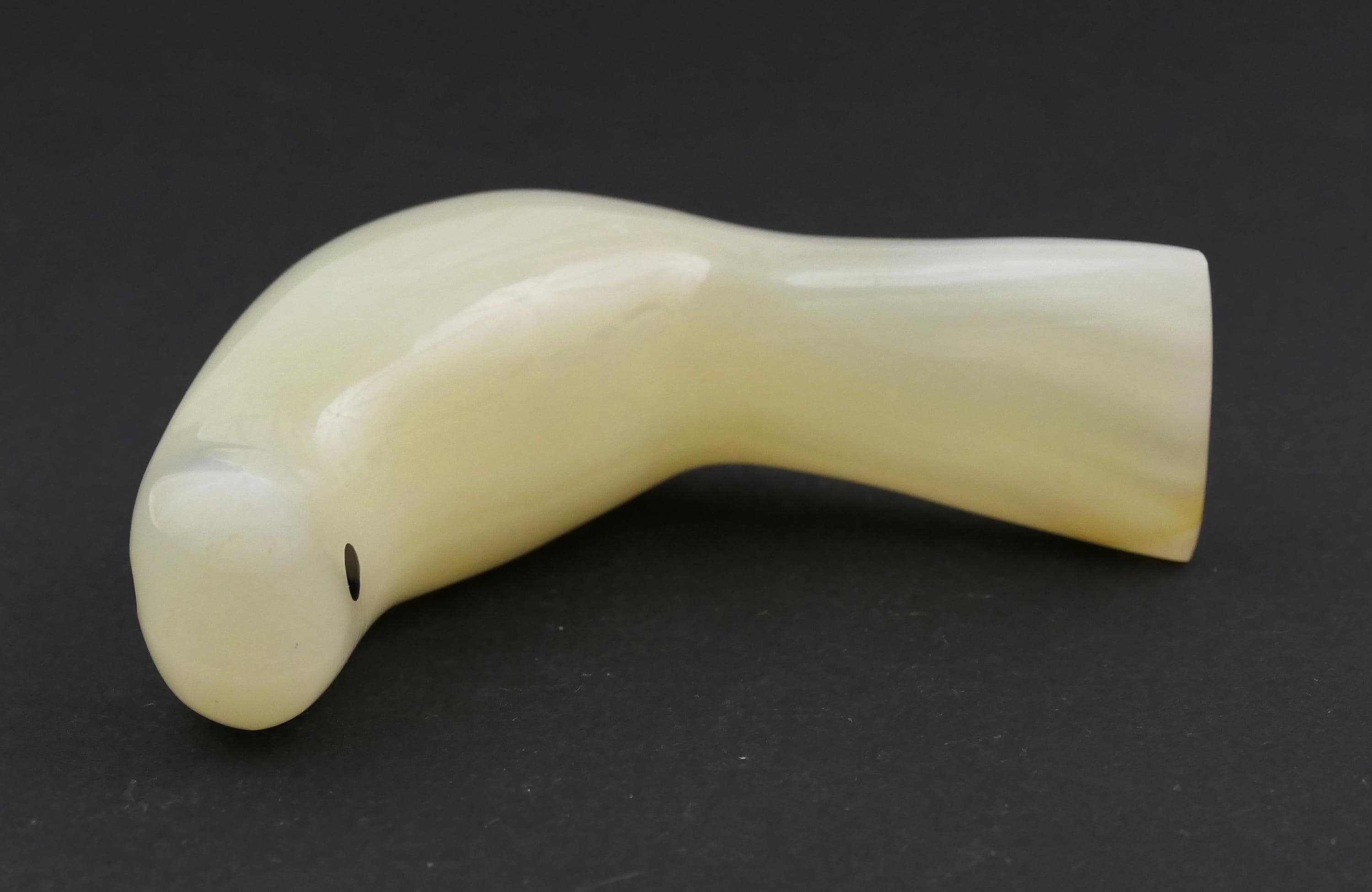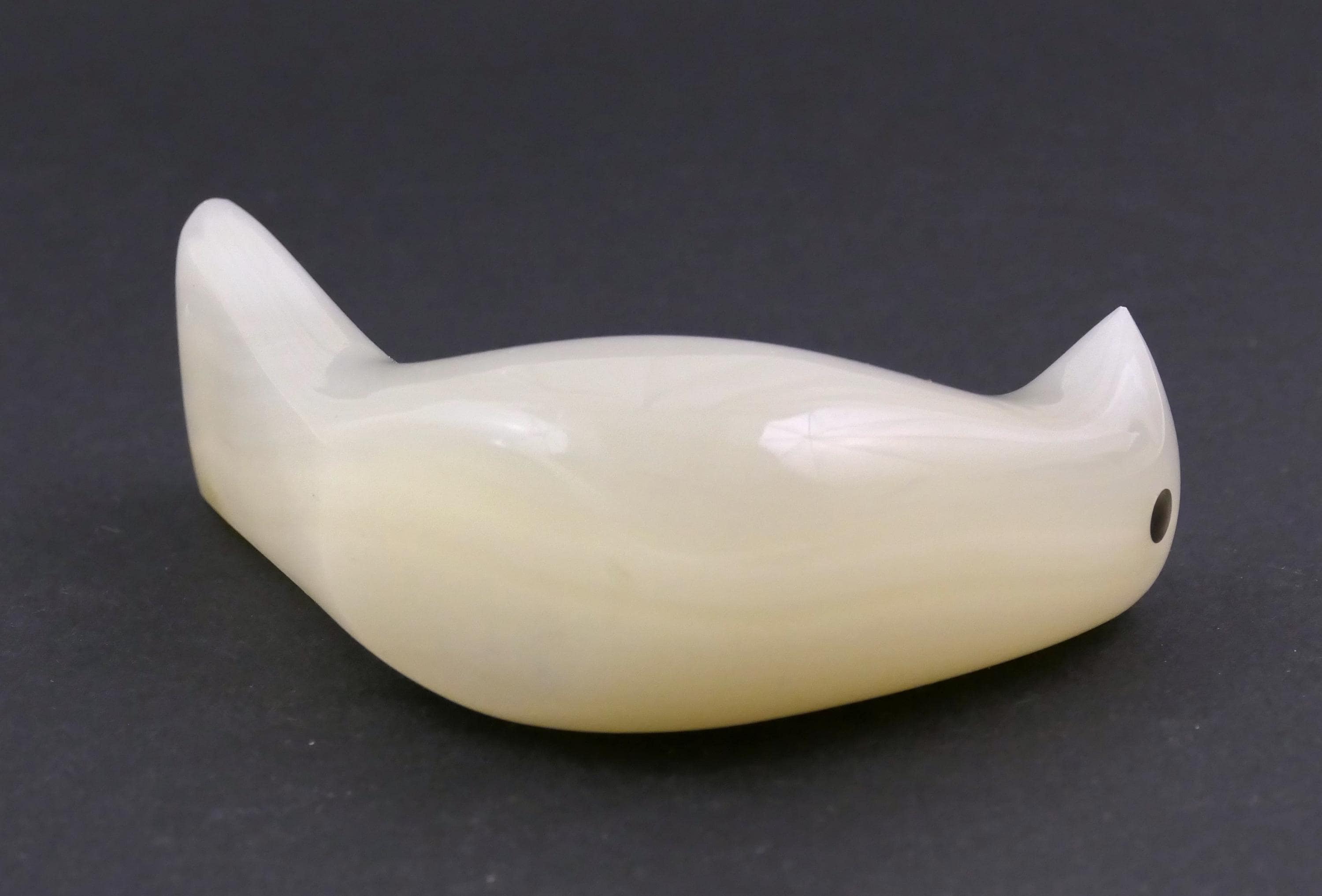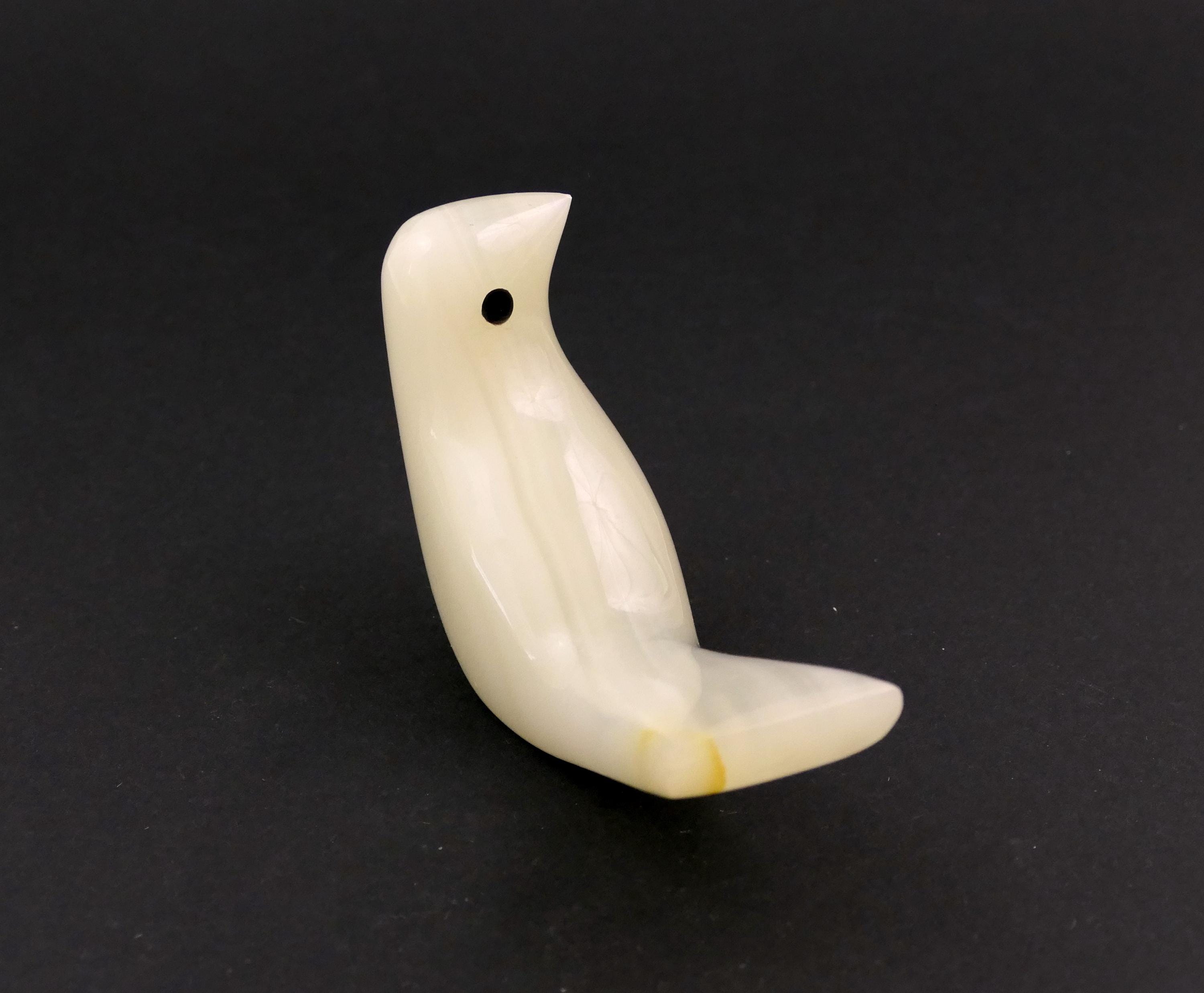 Vintage carved stone bird figurine. Made of carved, polished pale veined onyx stone. Ca late 1900s.