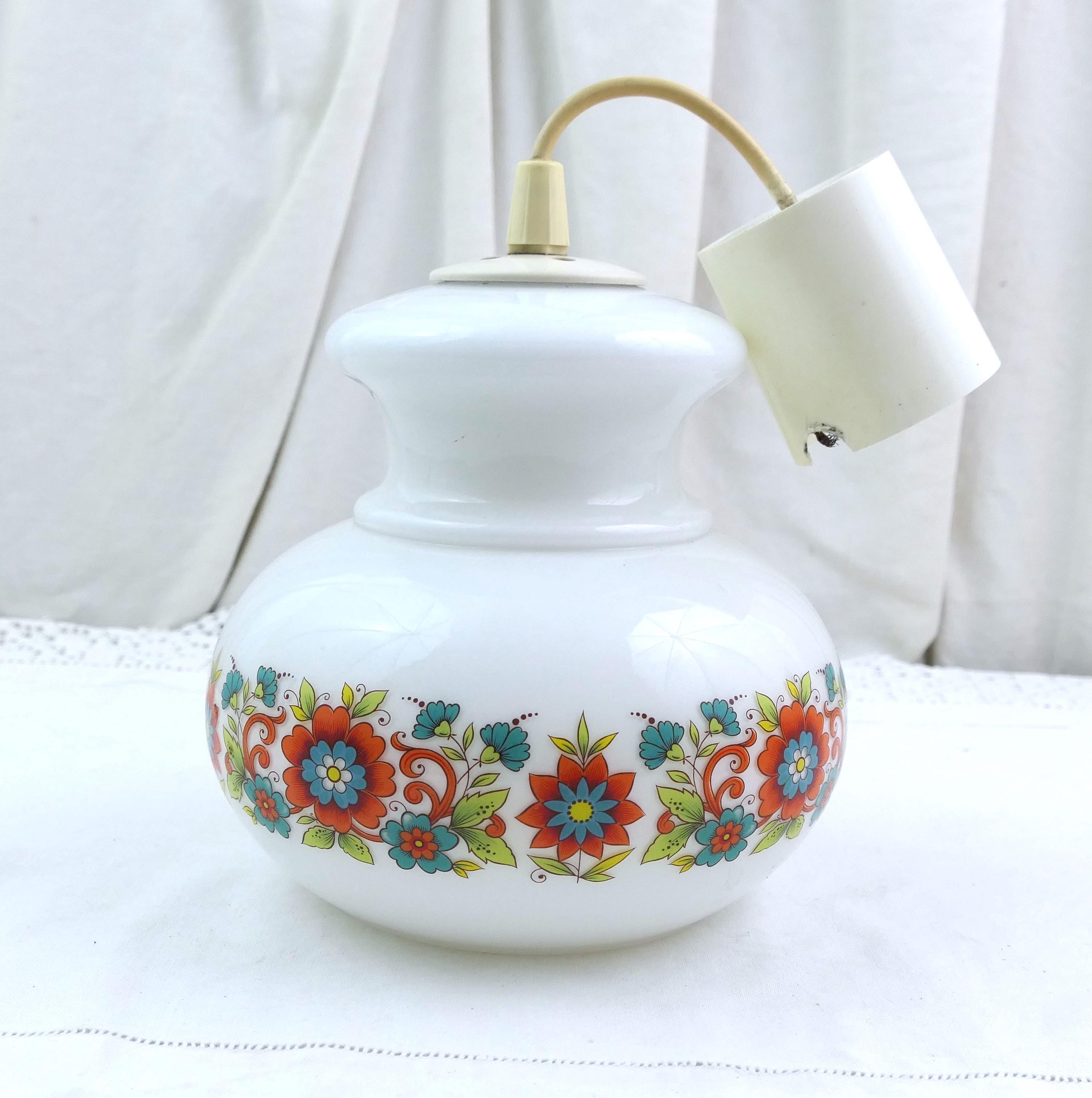 Vintage Mid century opaline pendant light shade. Made of white milk glass. Ca 1960s.