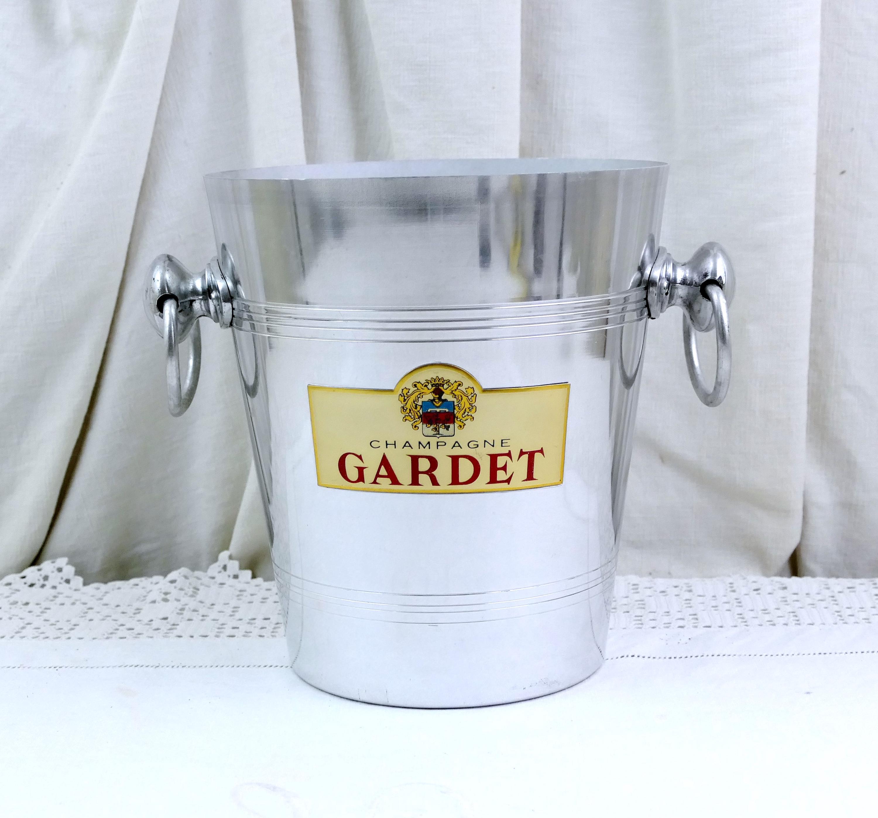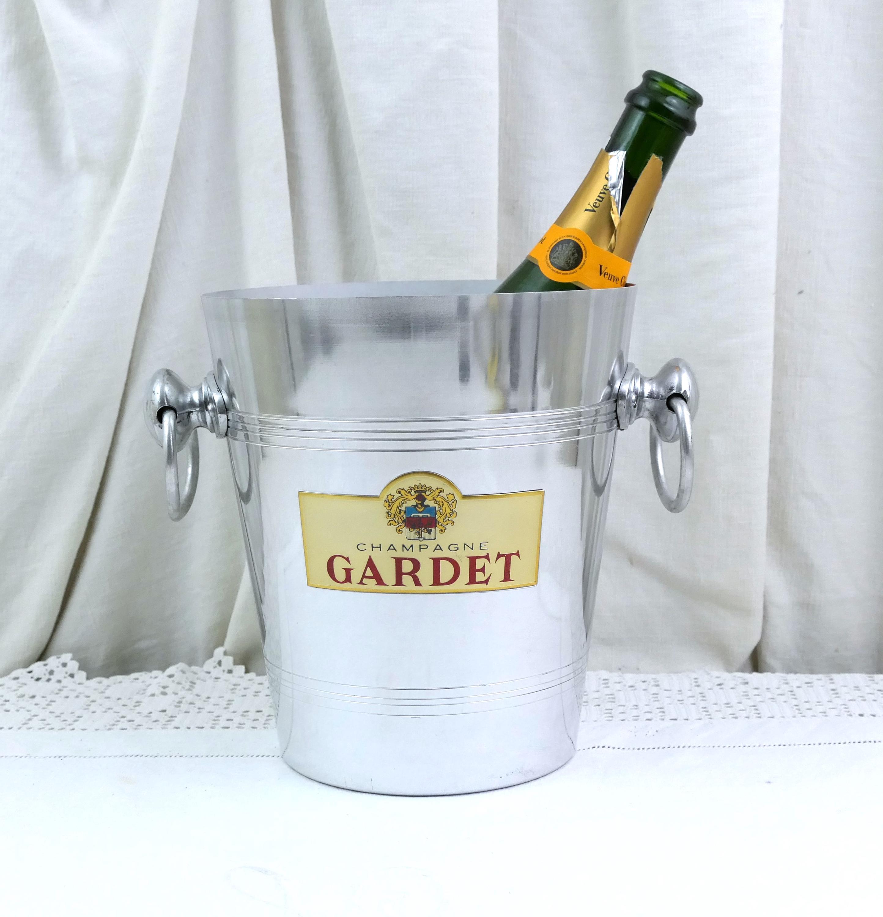 Vintage Gardet Champagne ice bucket. Made in France of white metal by Le Trefle. Ca mid 1900s.