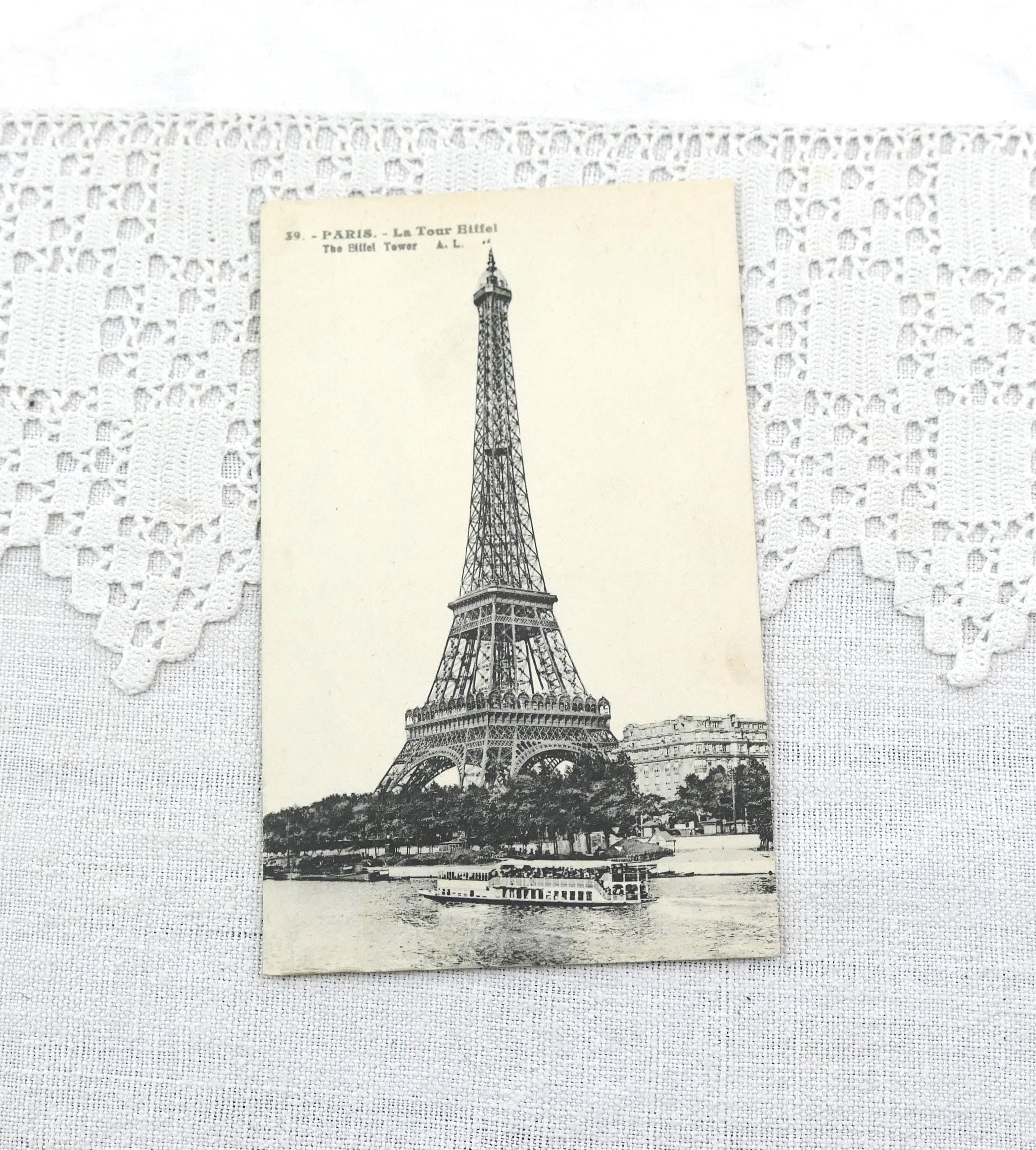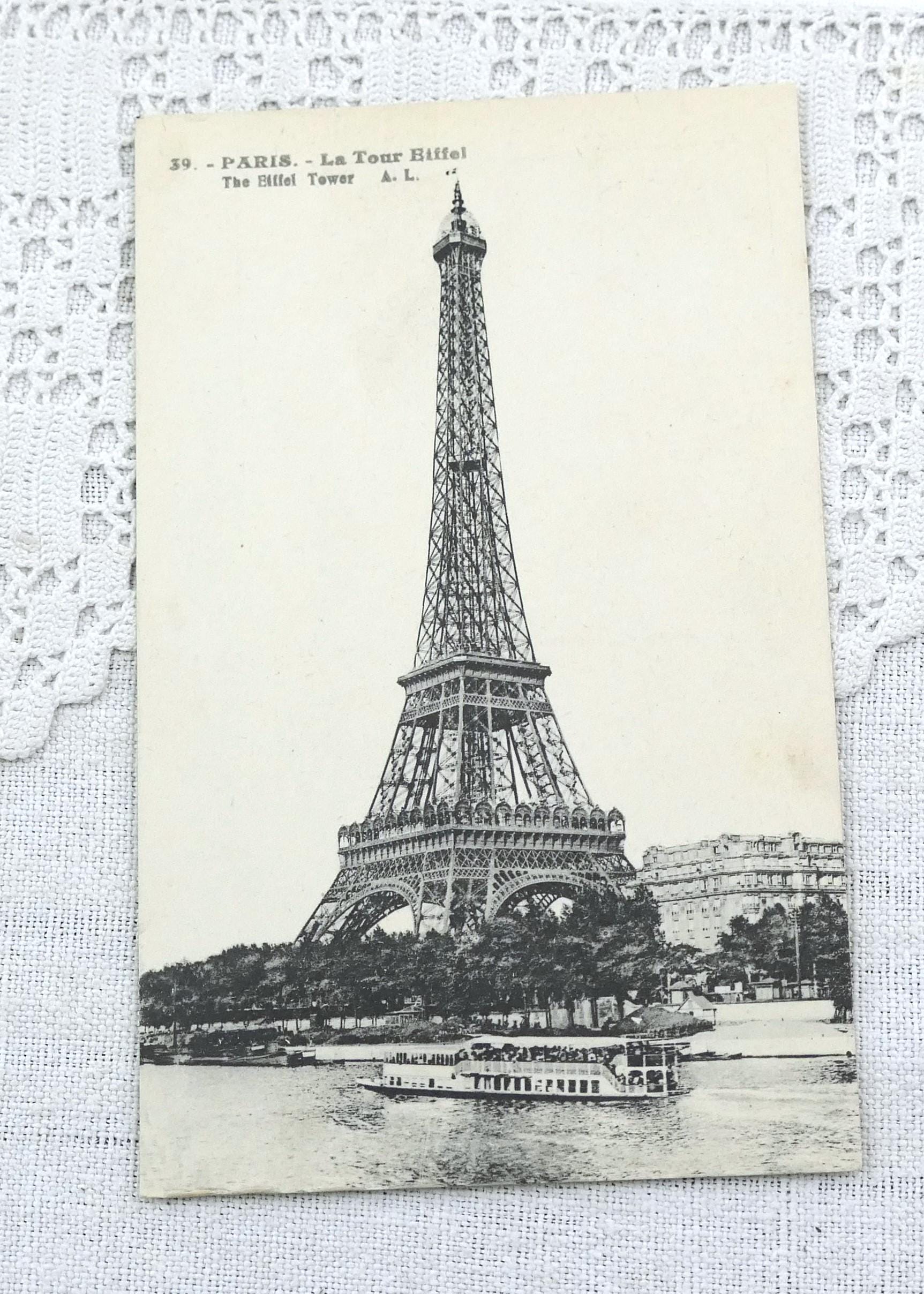 Antique French black and white postcard of the Eiffel Tower in Paris. Posted in 1905.