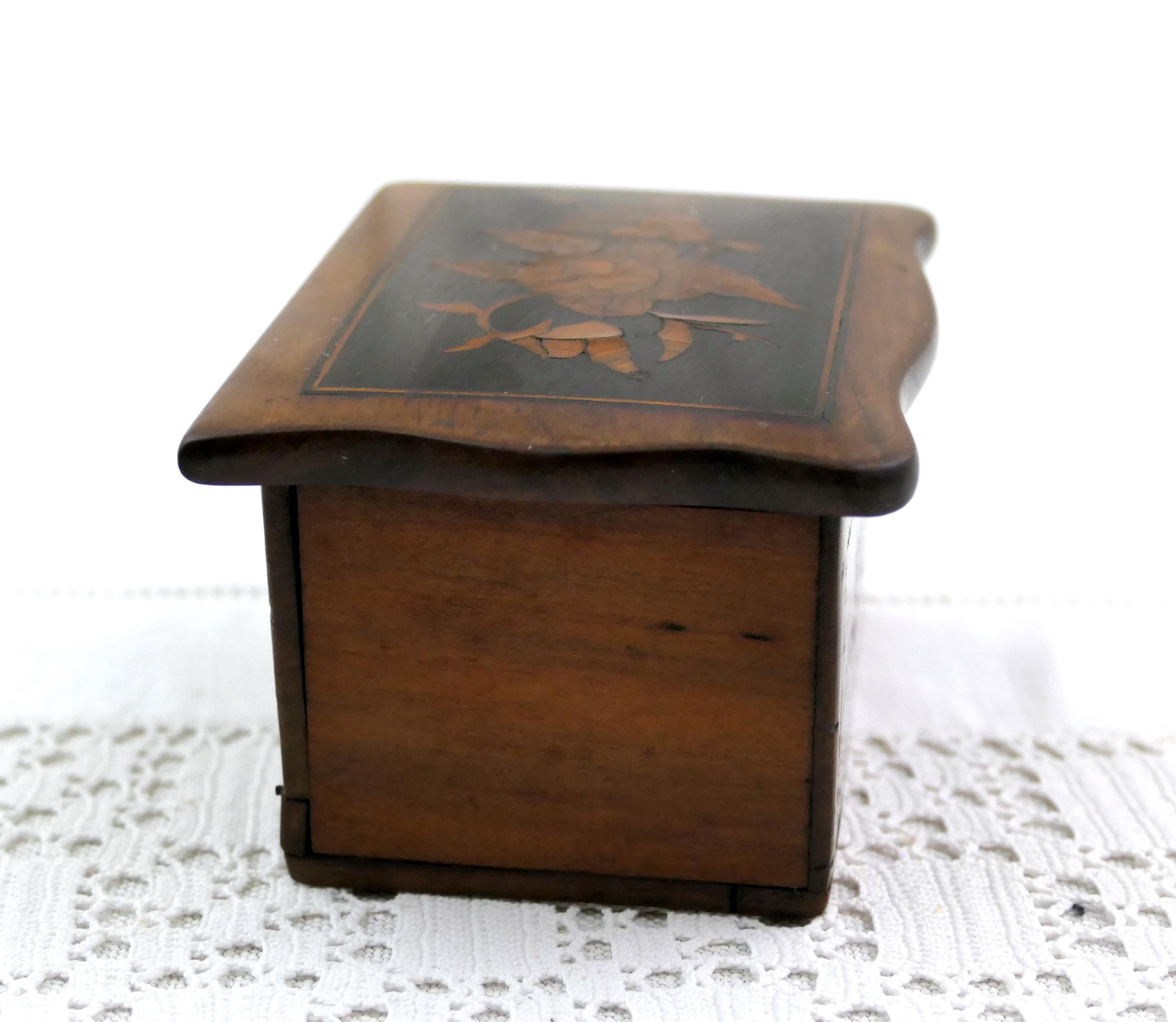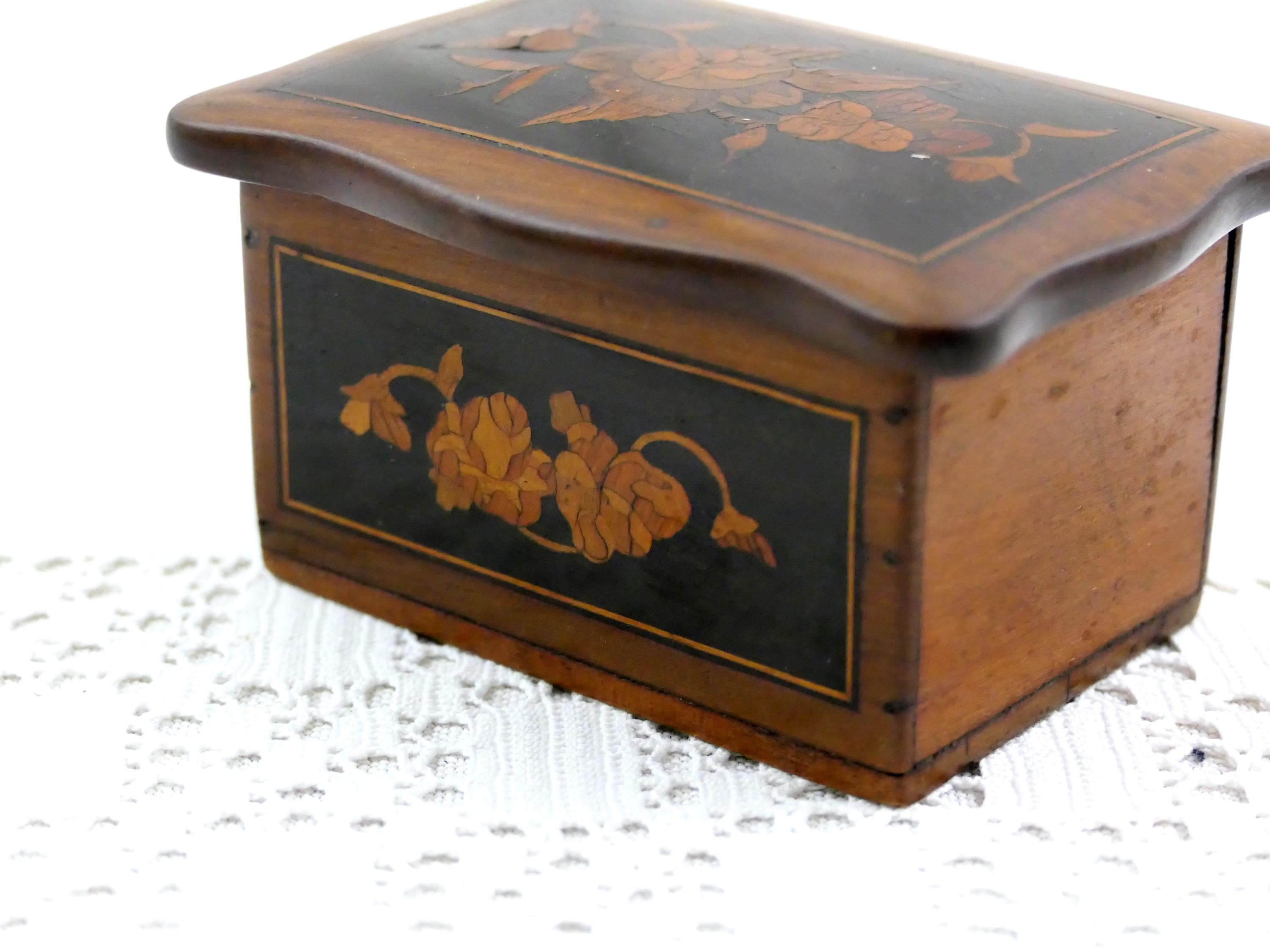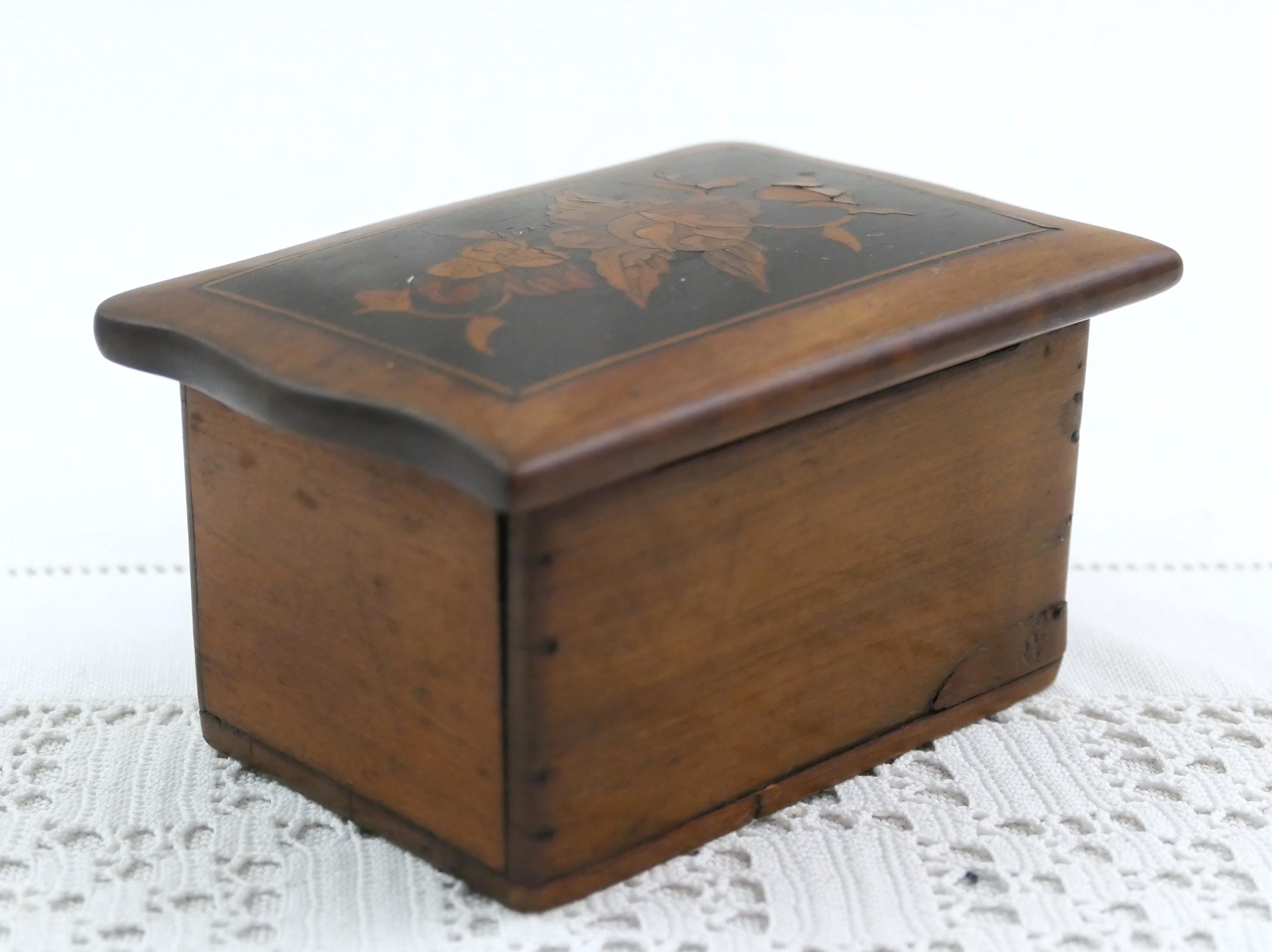 Small antique inlayed box. Made of different colored wood. Ca late 1800s. - early 1900s.