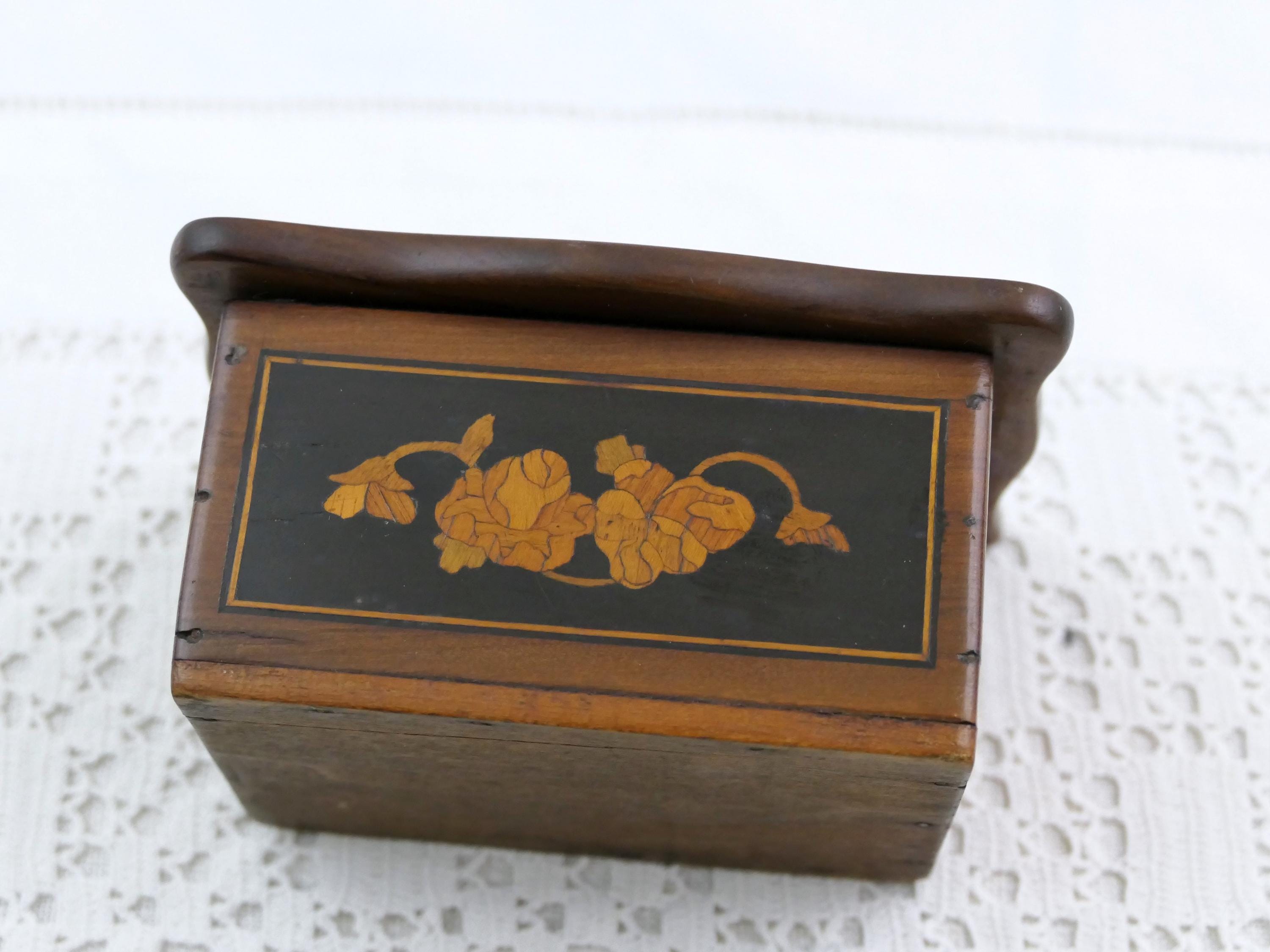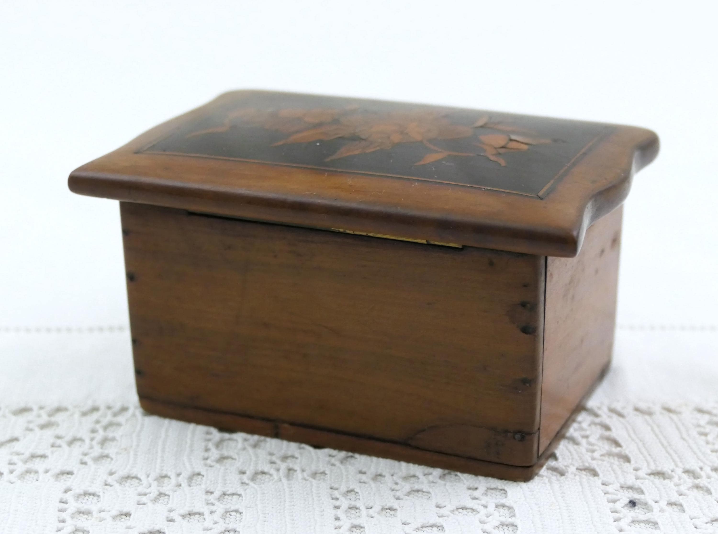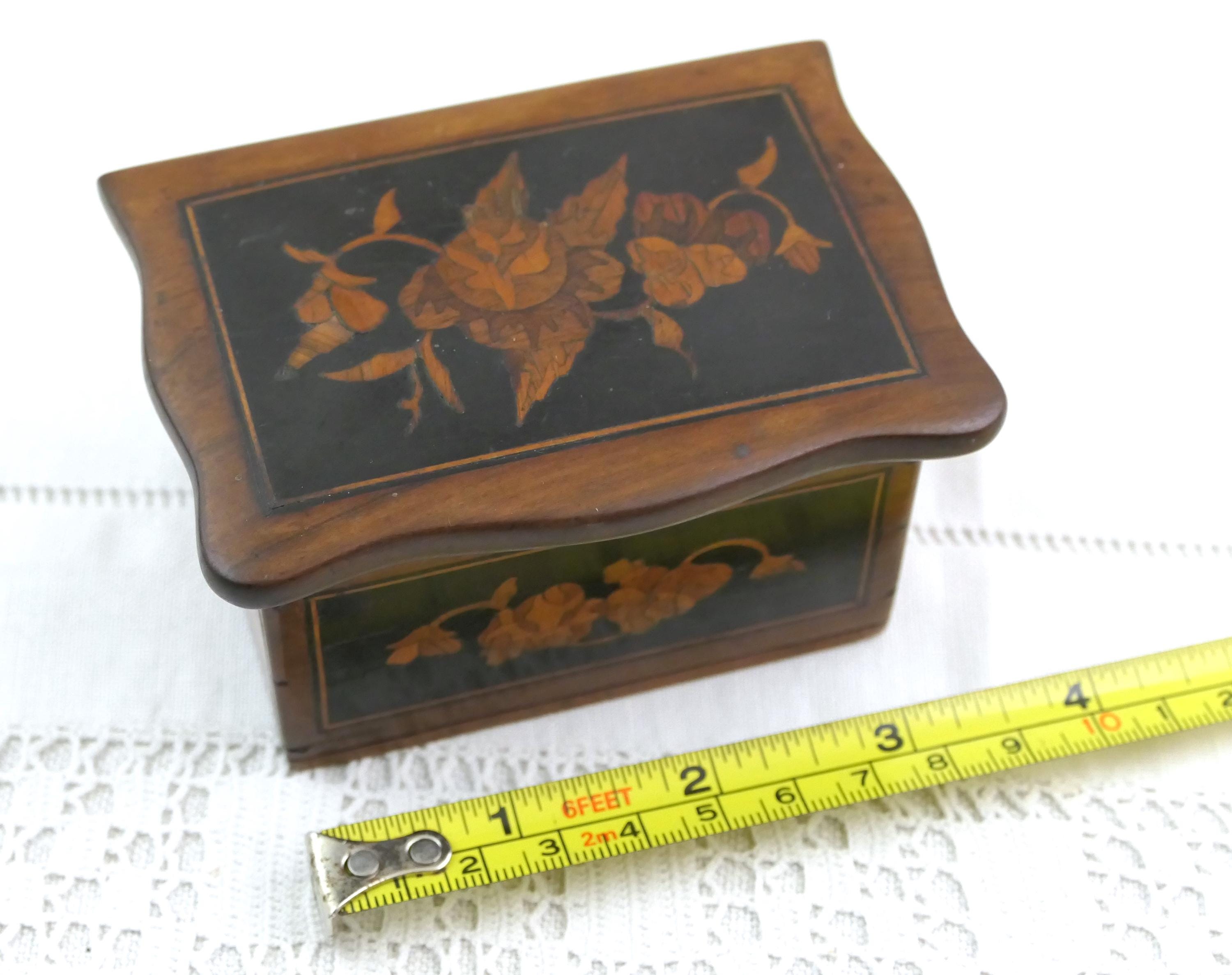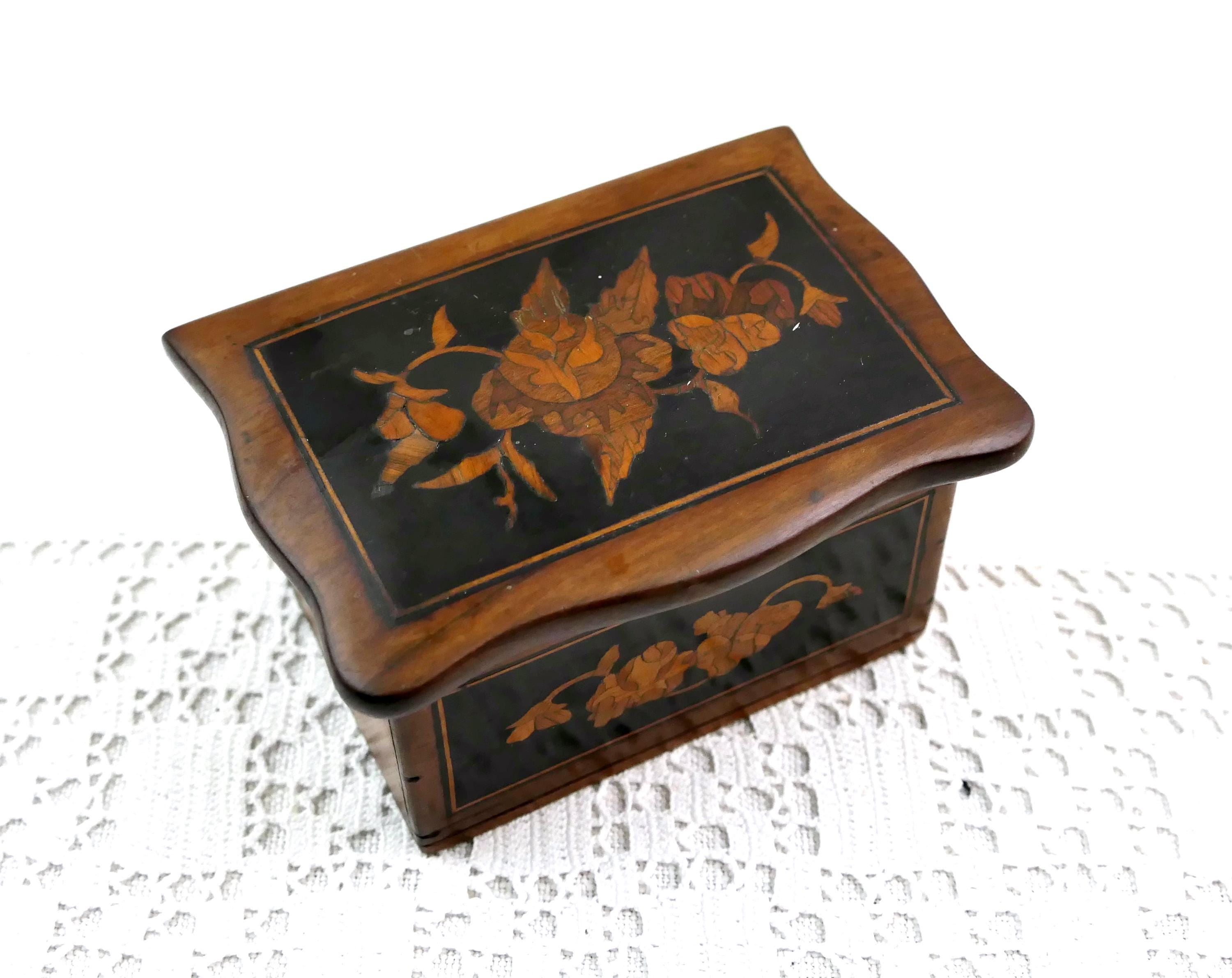 Small antique inlayed box. Made of different colored wood. Ca late 1800s. - early 1900s.