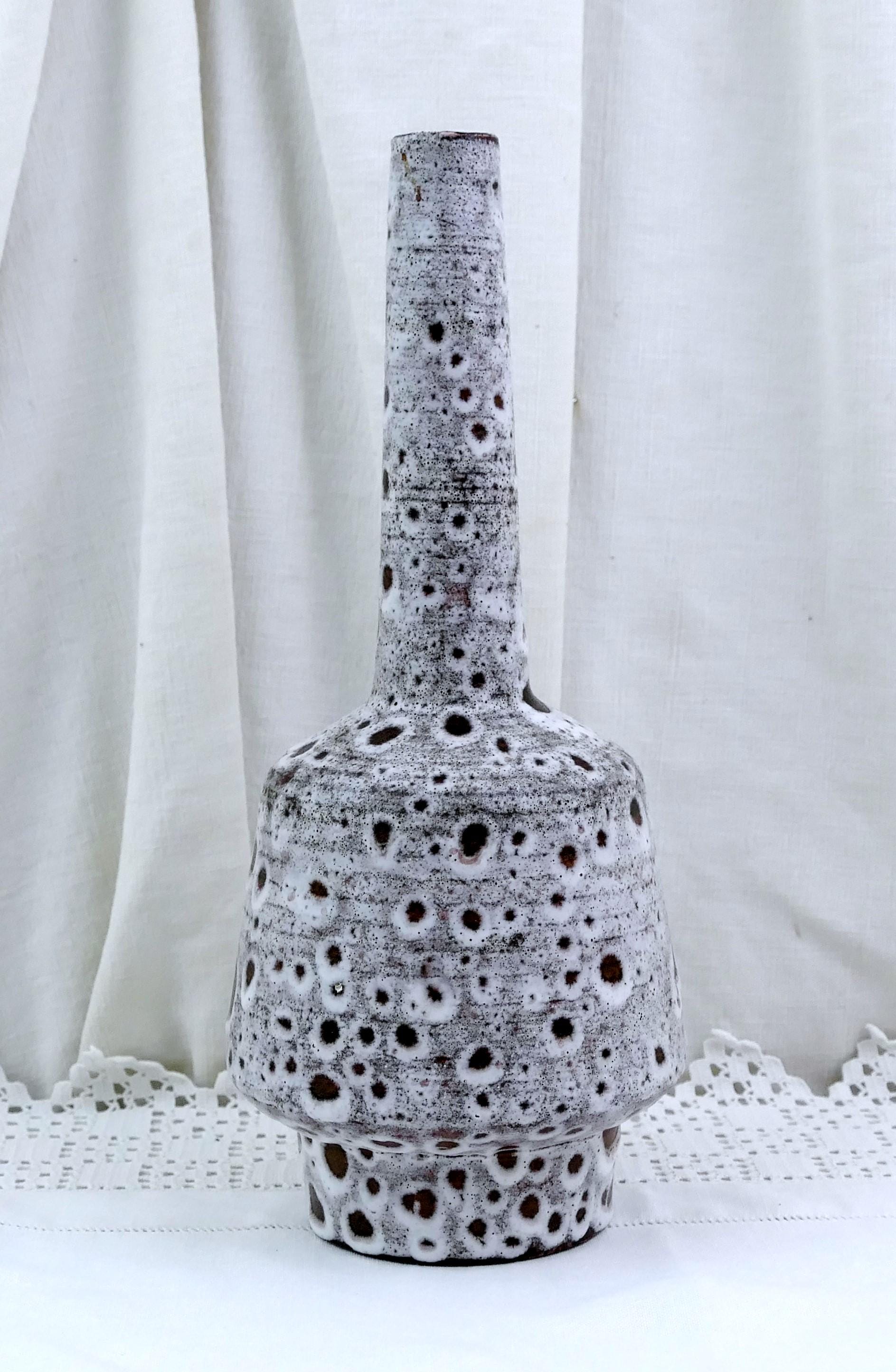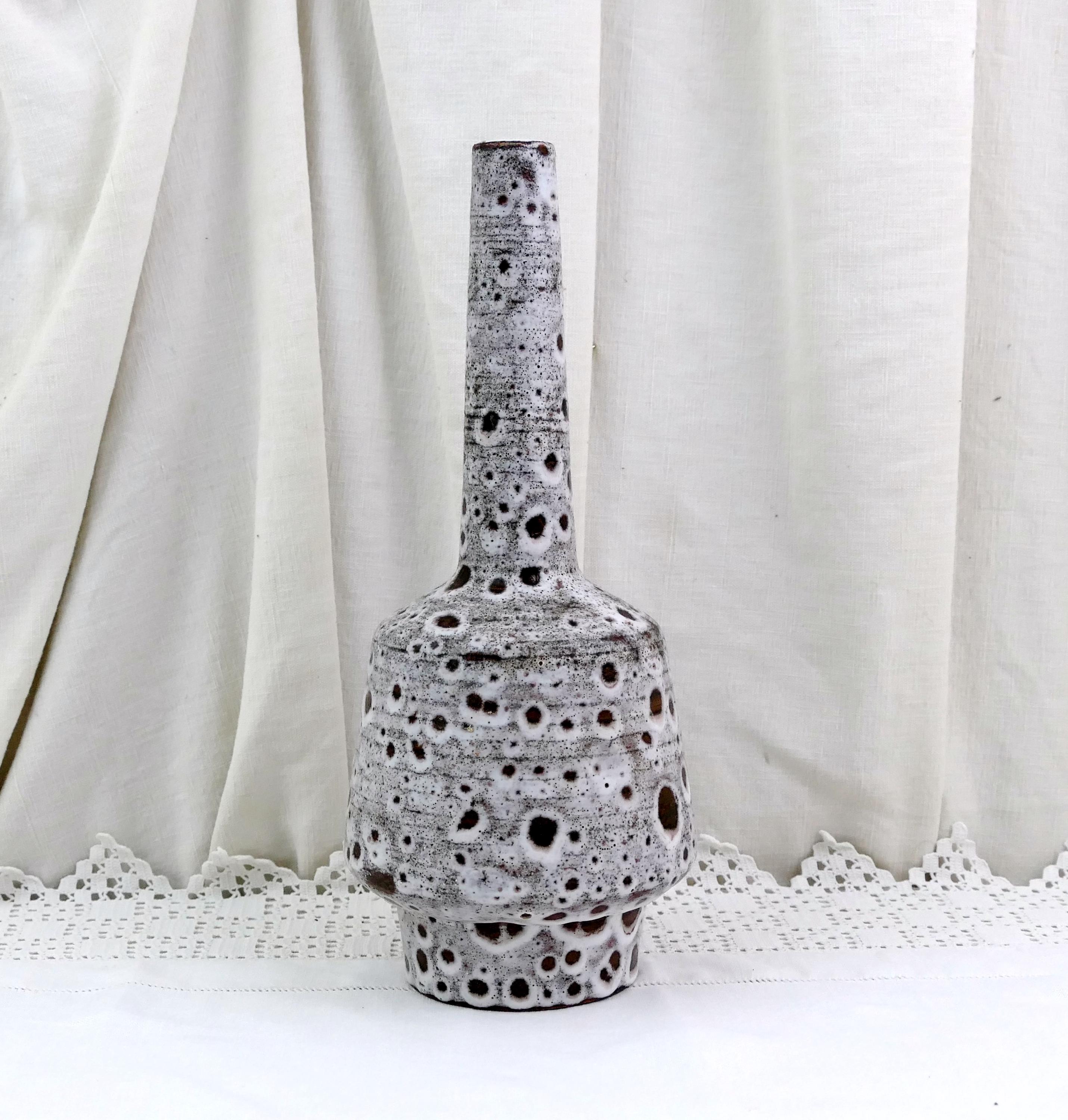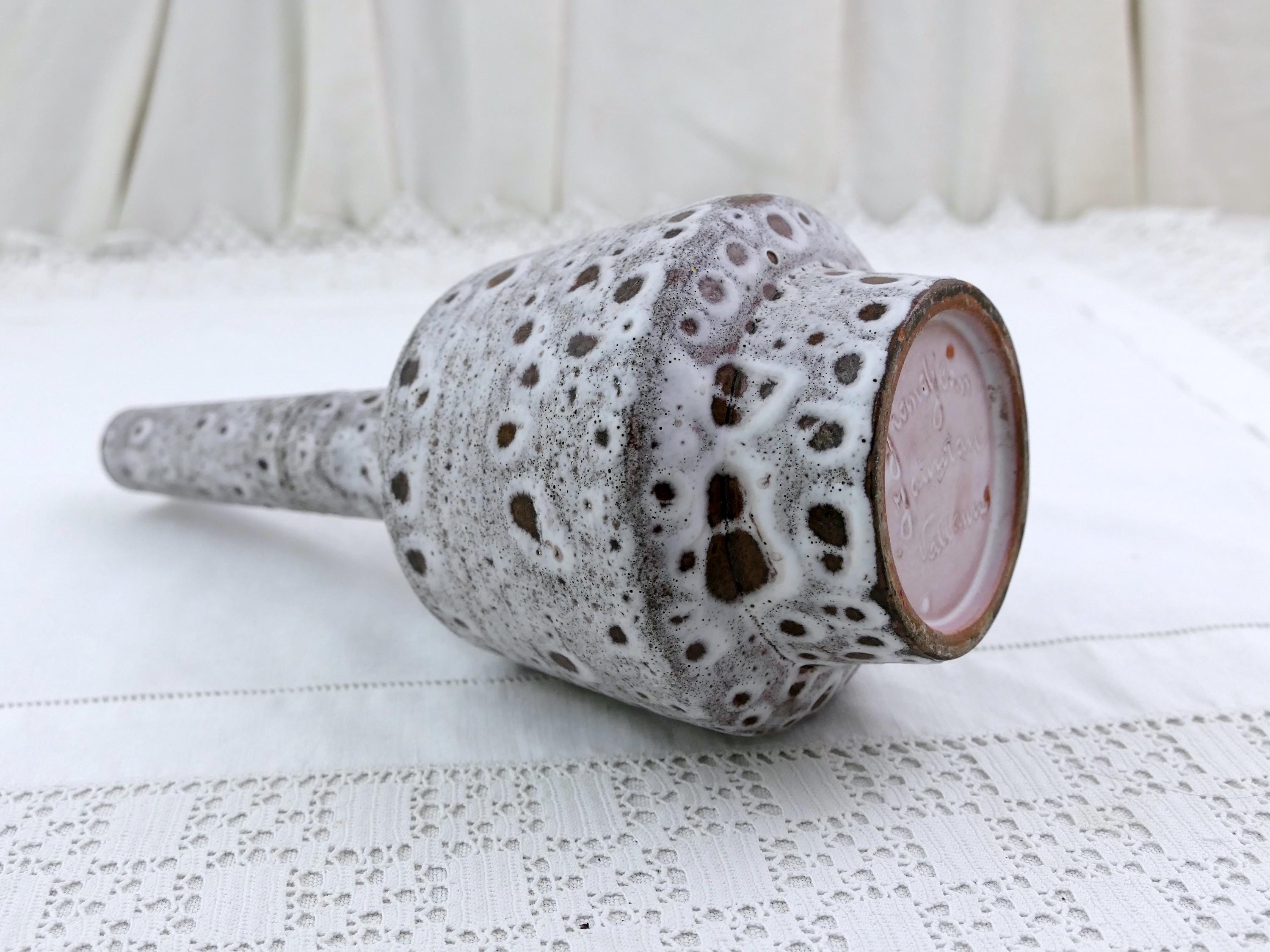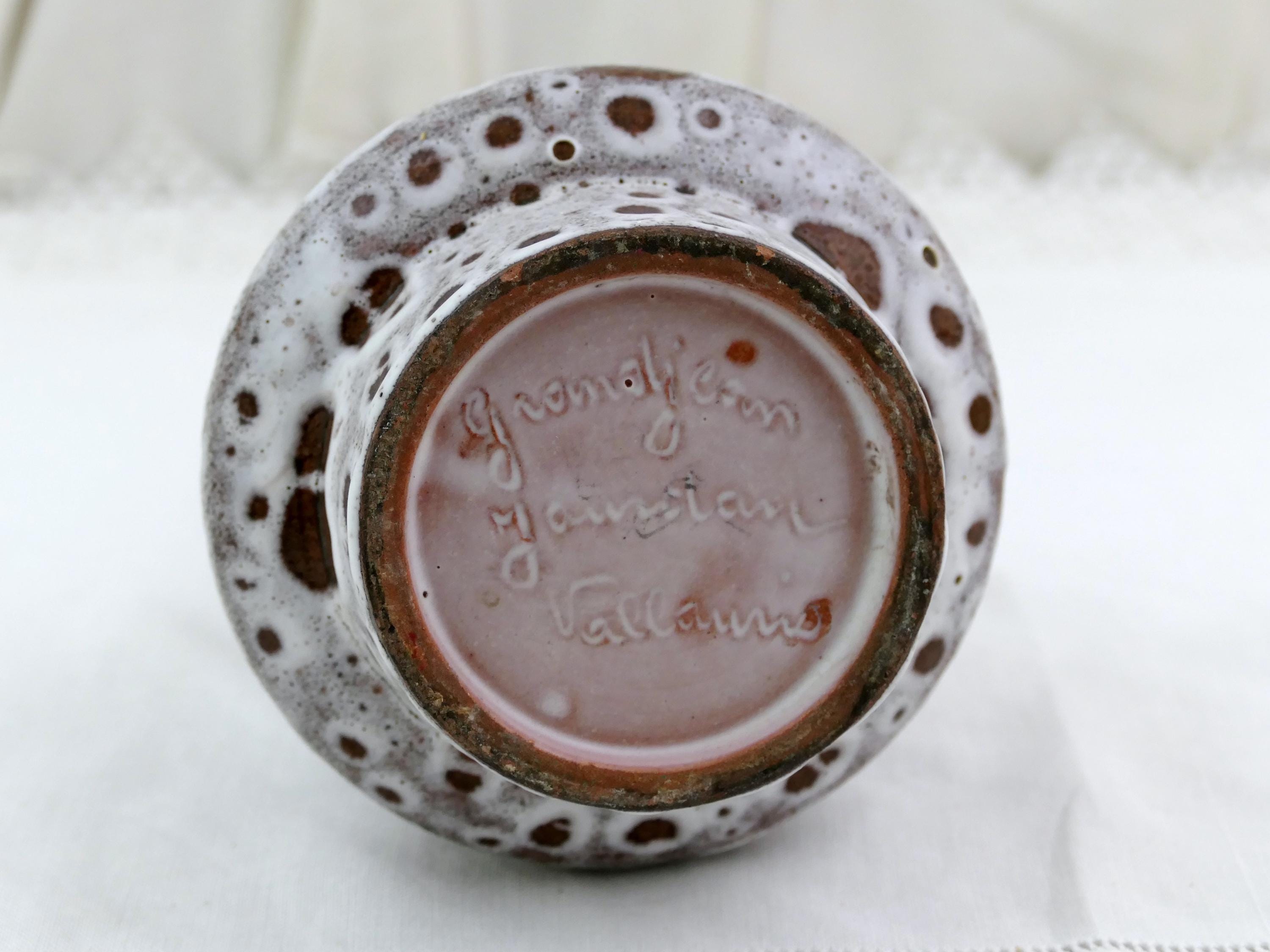 Vintage French Mid Century Modern Vallauris studio pottery flower vase by Grandjean-Jourdan. Made of glazed ceramic in the south of France. Ca 1950s