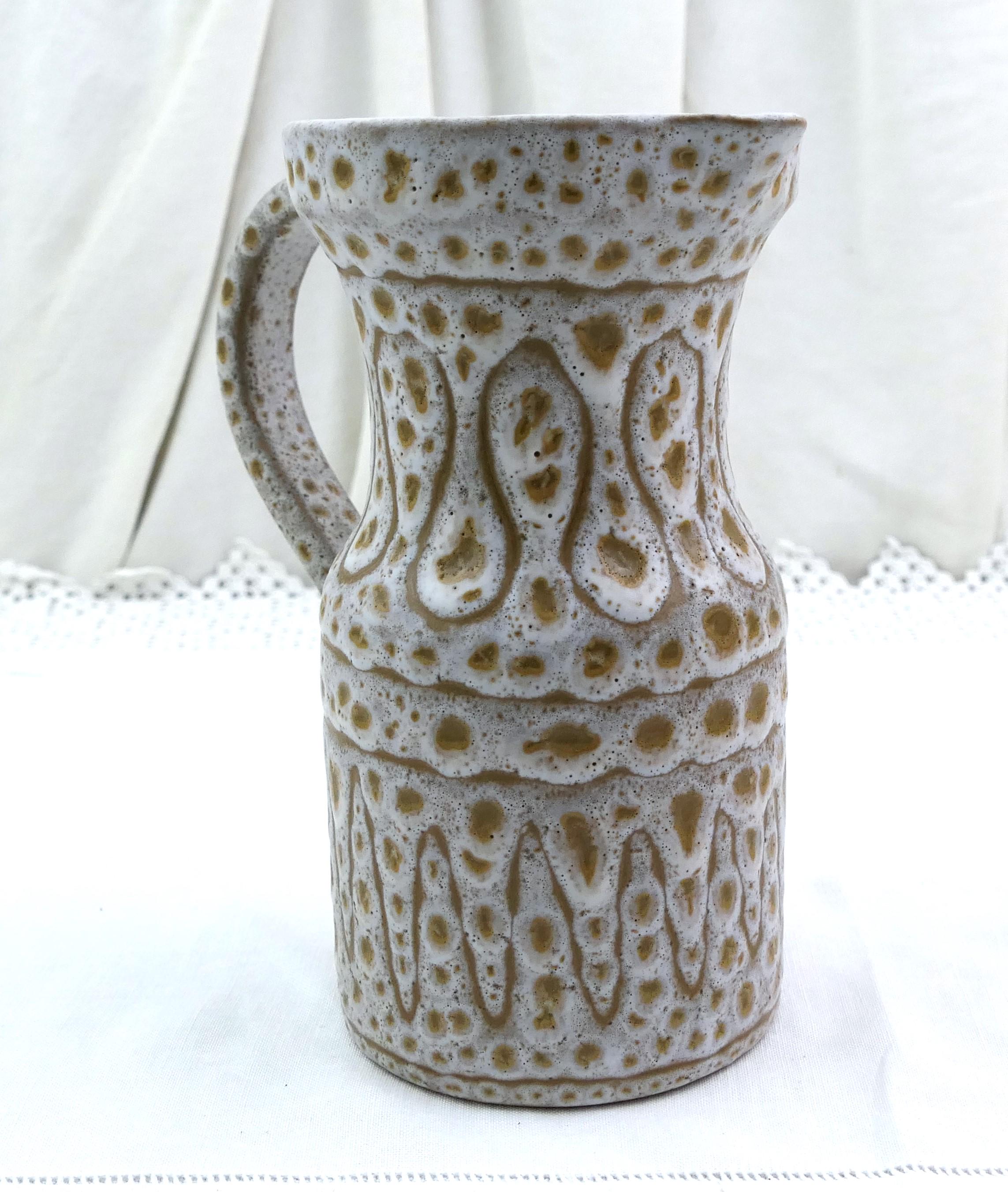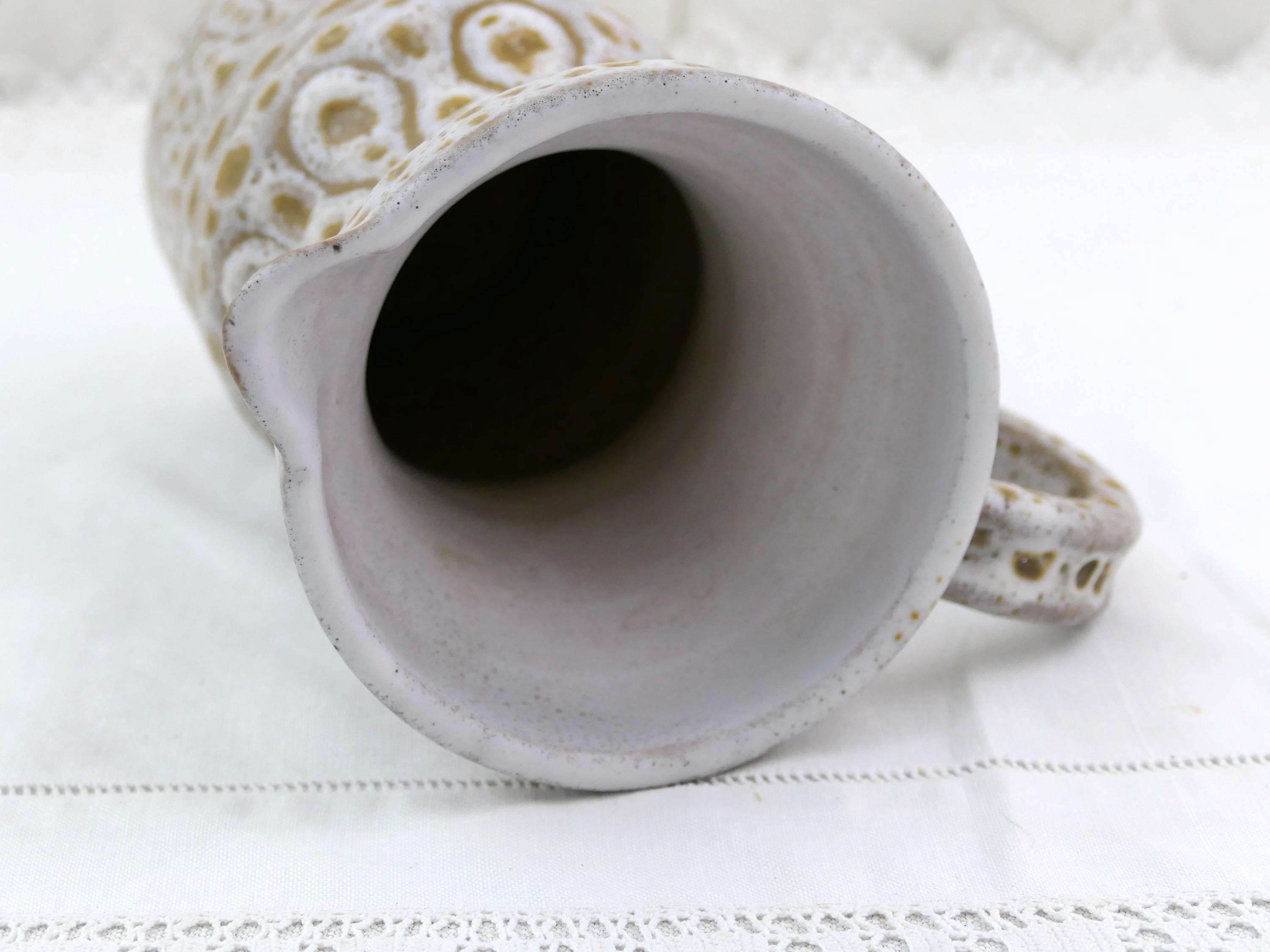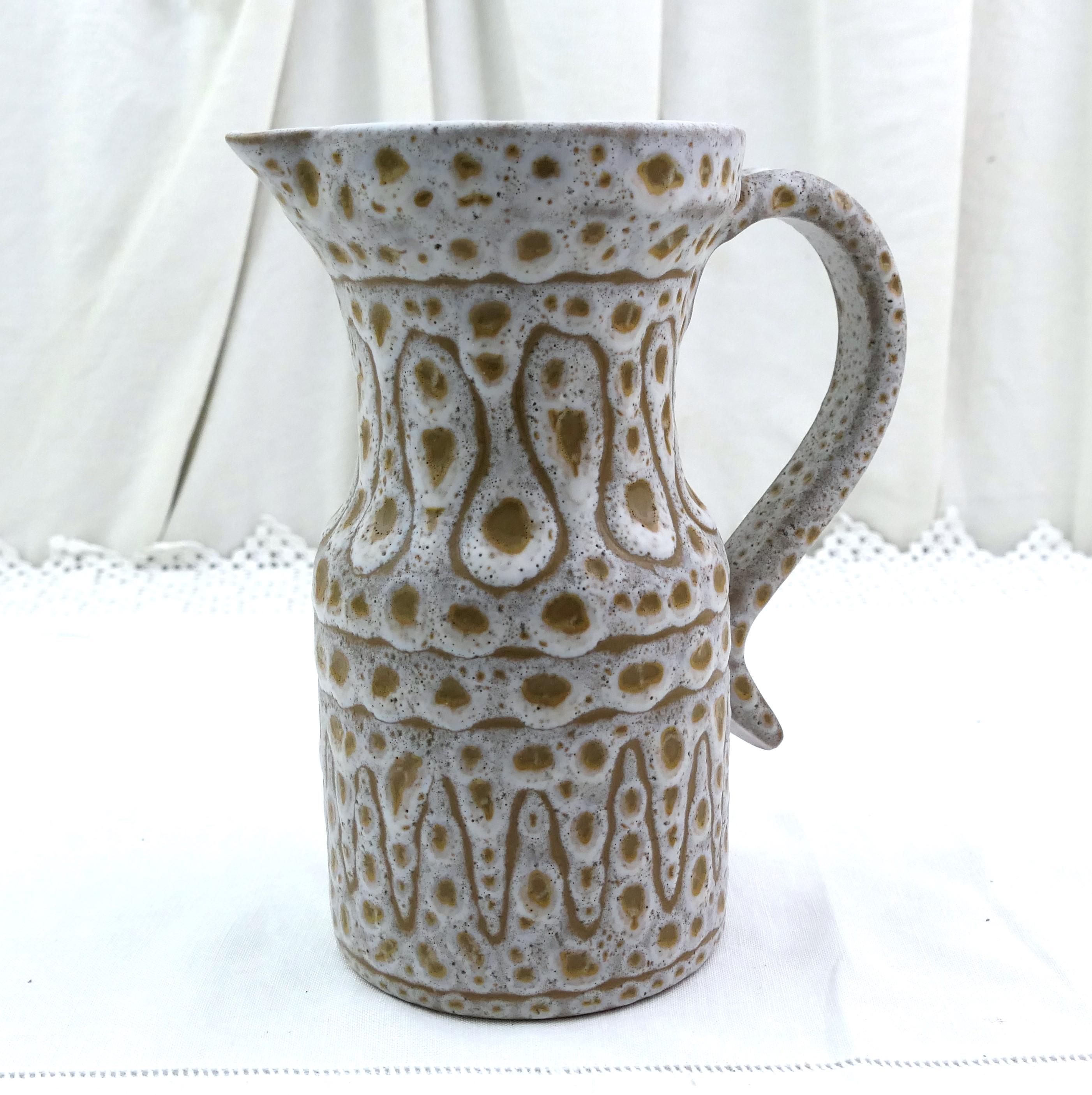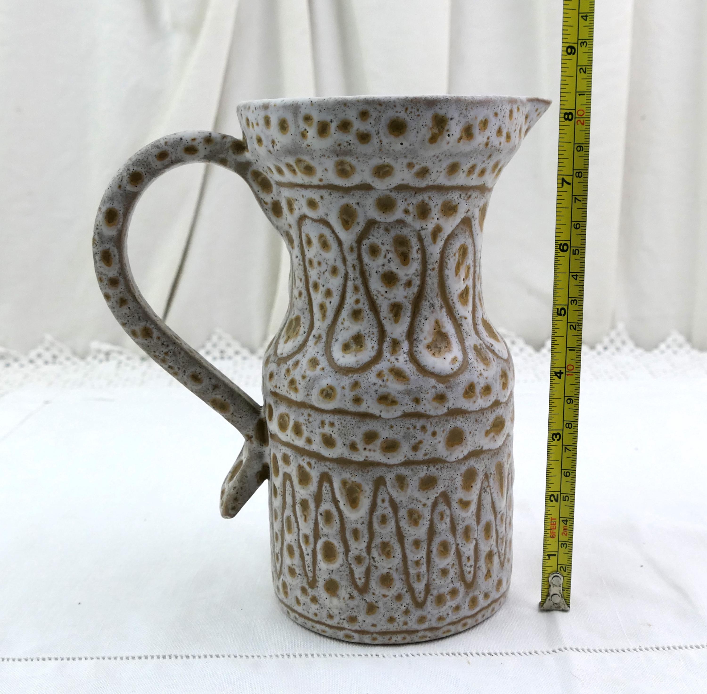 Vintage French Mid Century Modern Vallauris studio pottery flower vase / pitcher by Jean Austruy. Made of glazed ceramic in the south of France. Ca 1950s