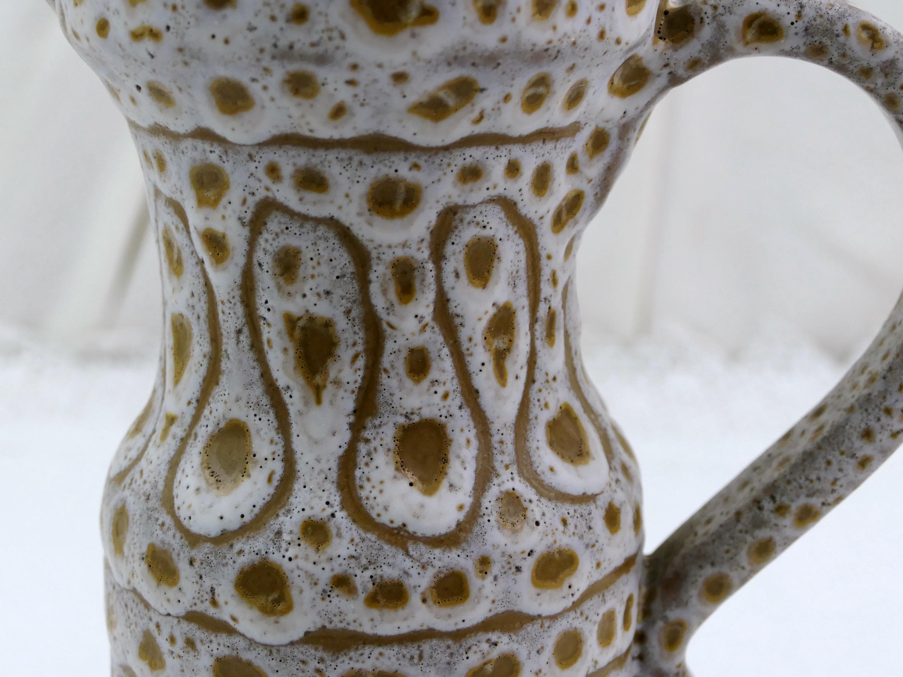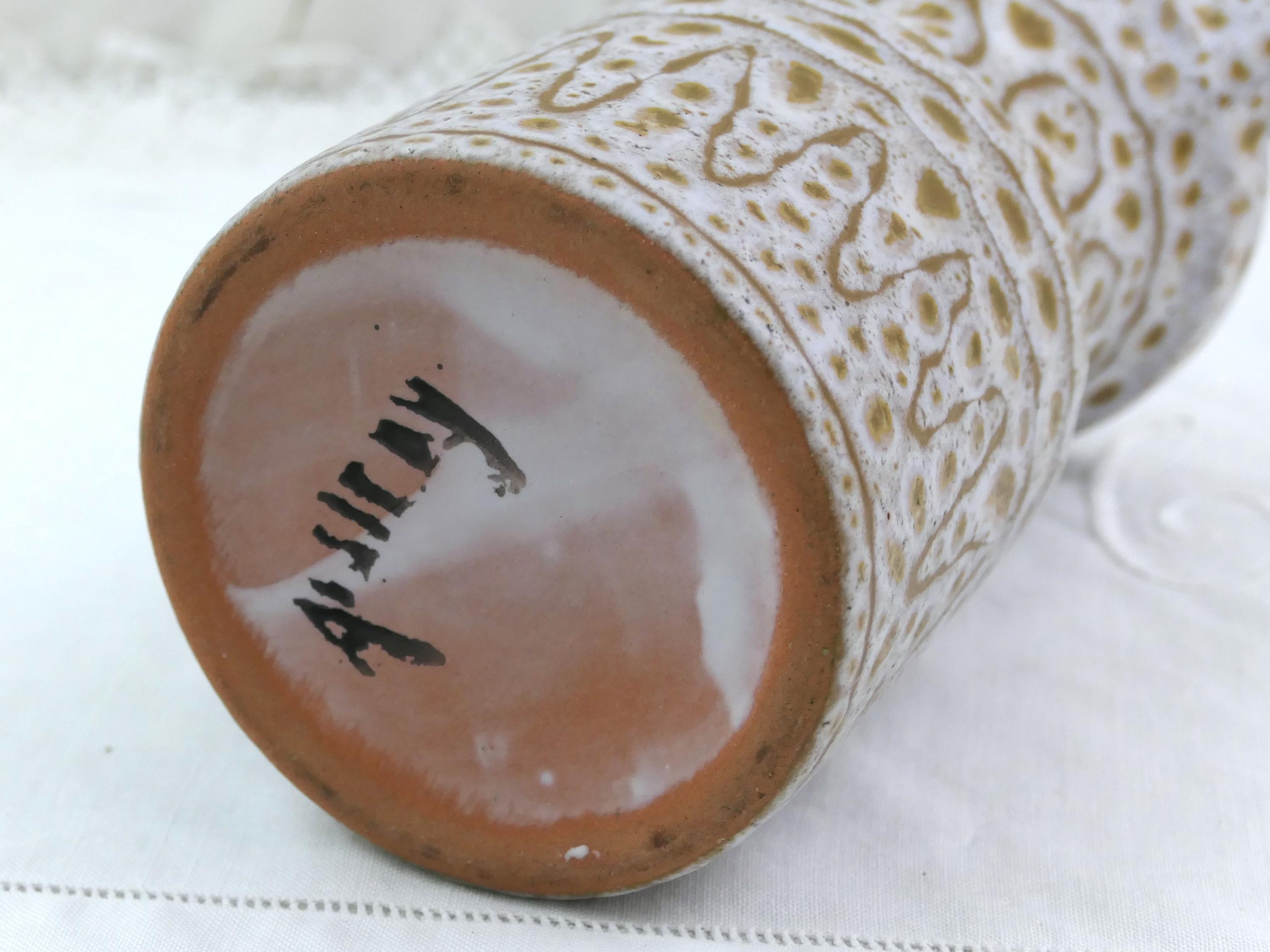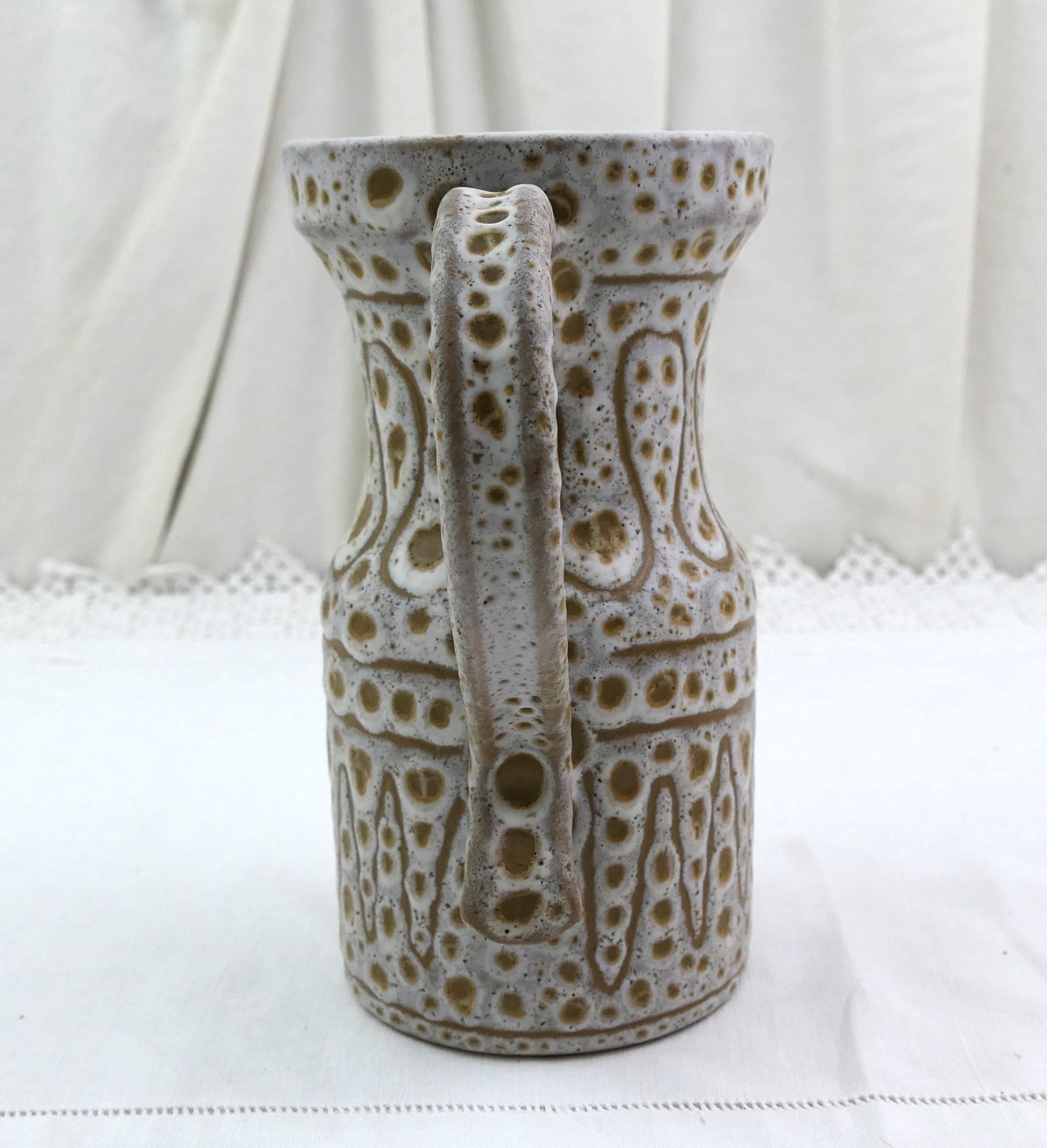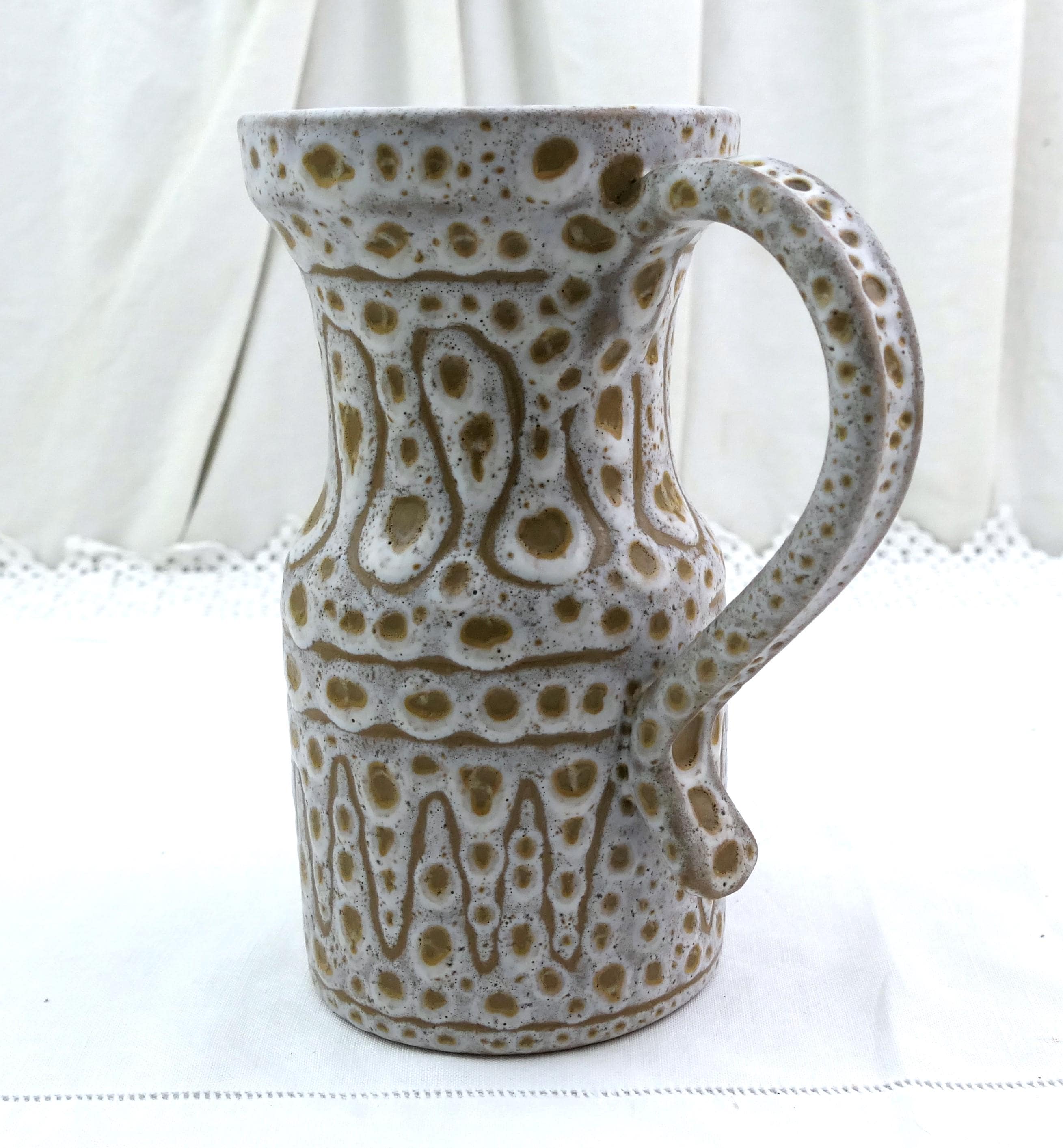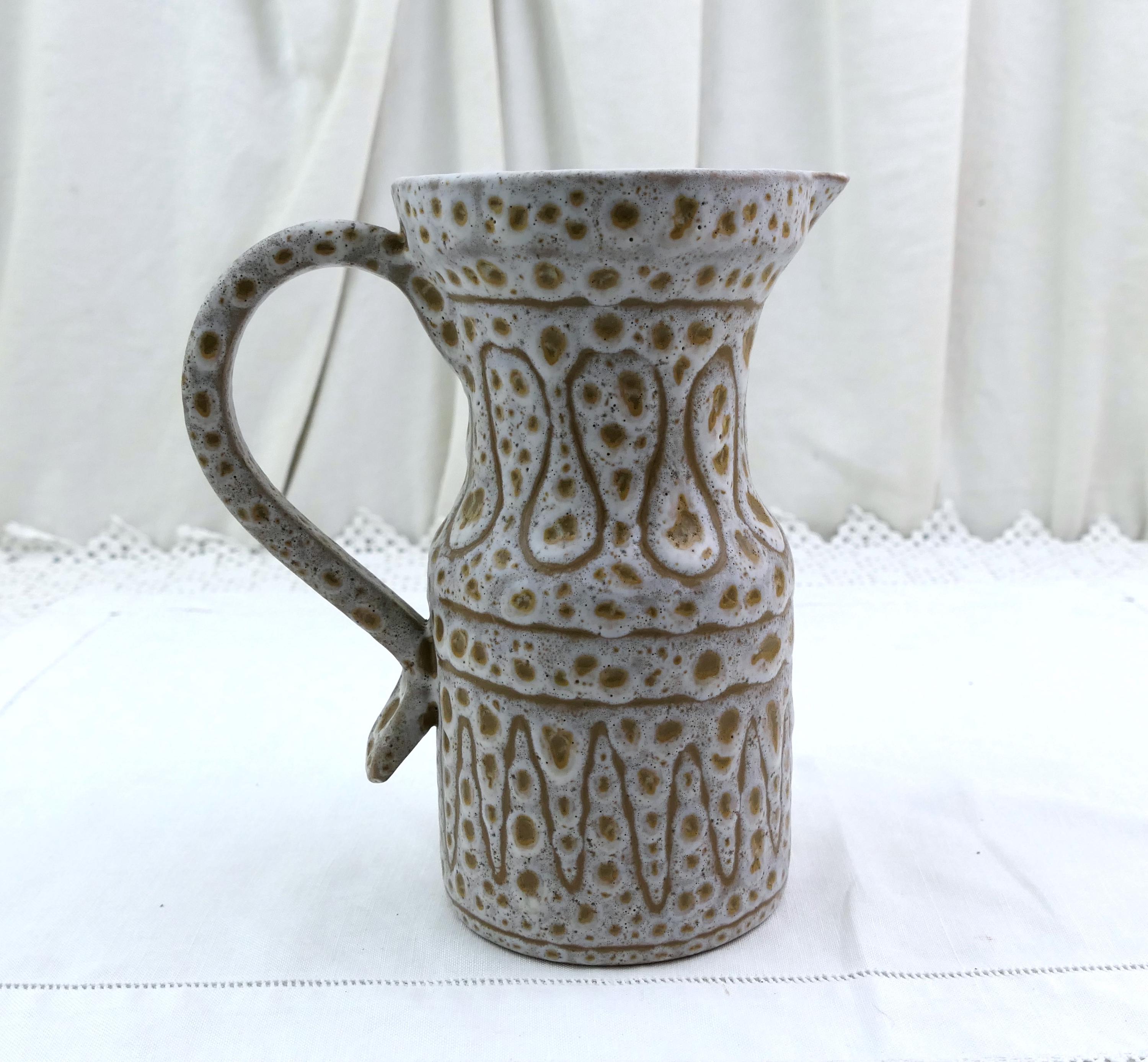 Vintage French Mid Century Modern Vallauris studio pottery flower vase / pitcher by Jean Austruy. Made of glazed ceramic in the south of France. Ca 1950s