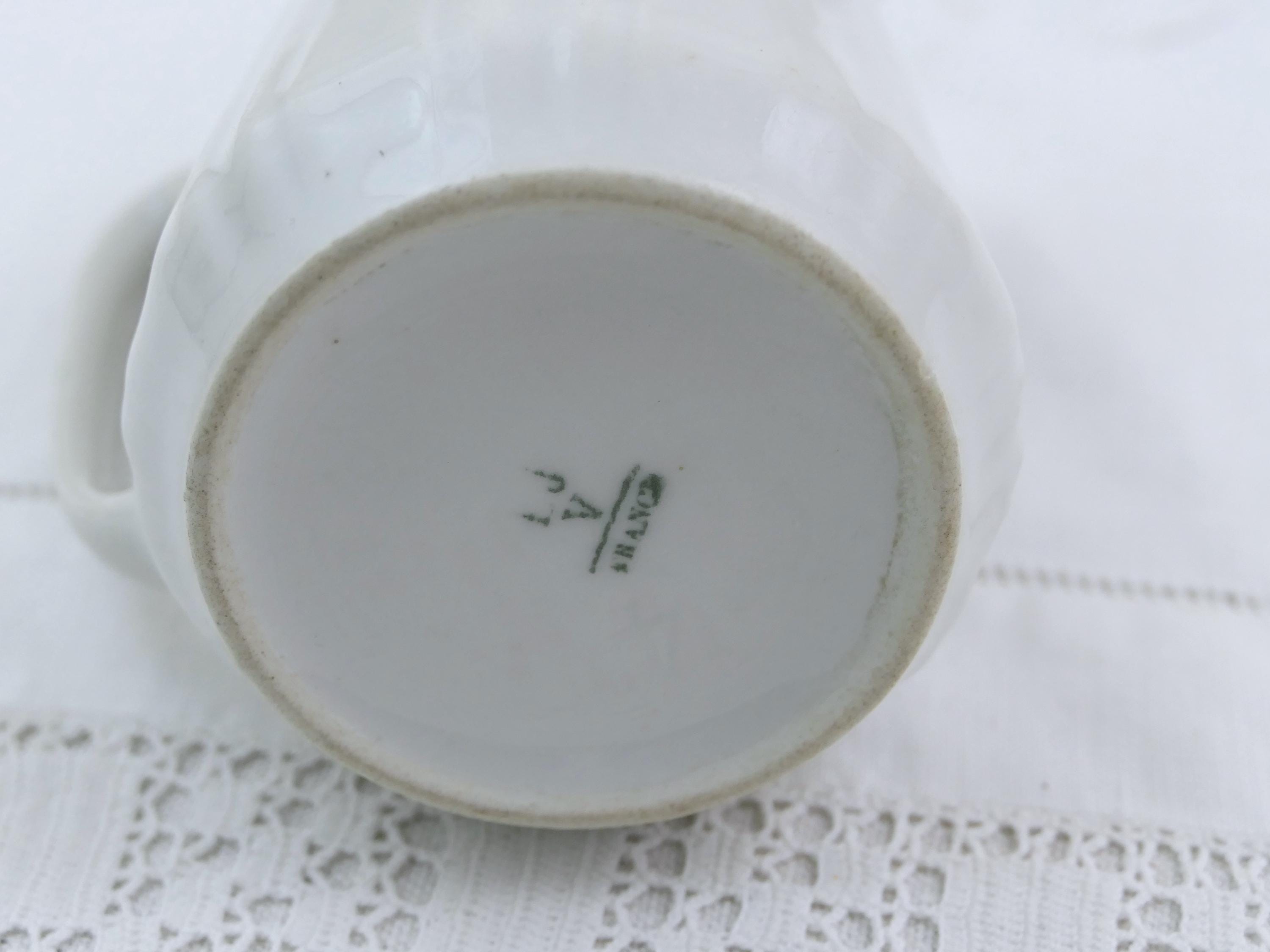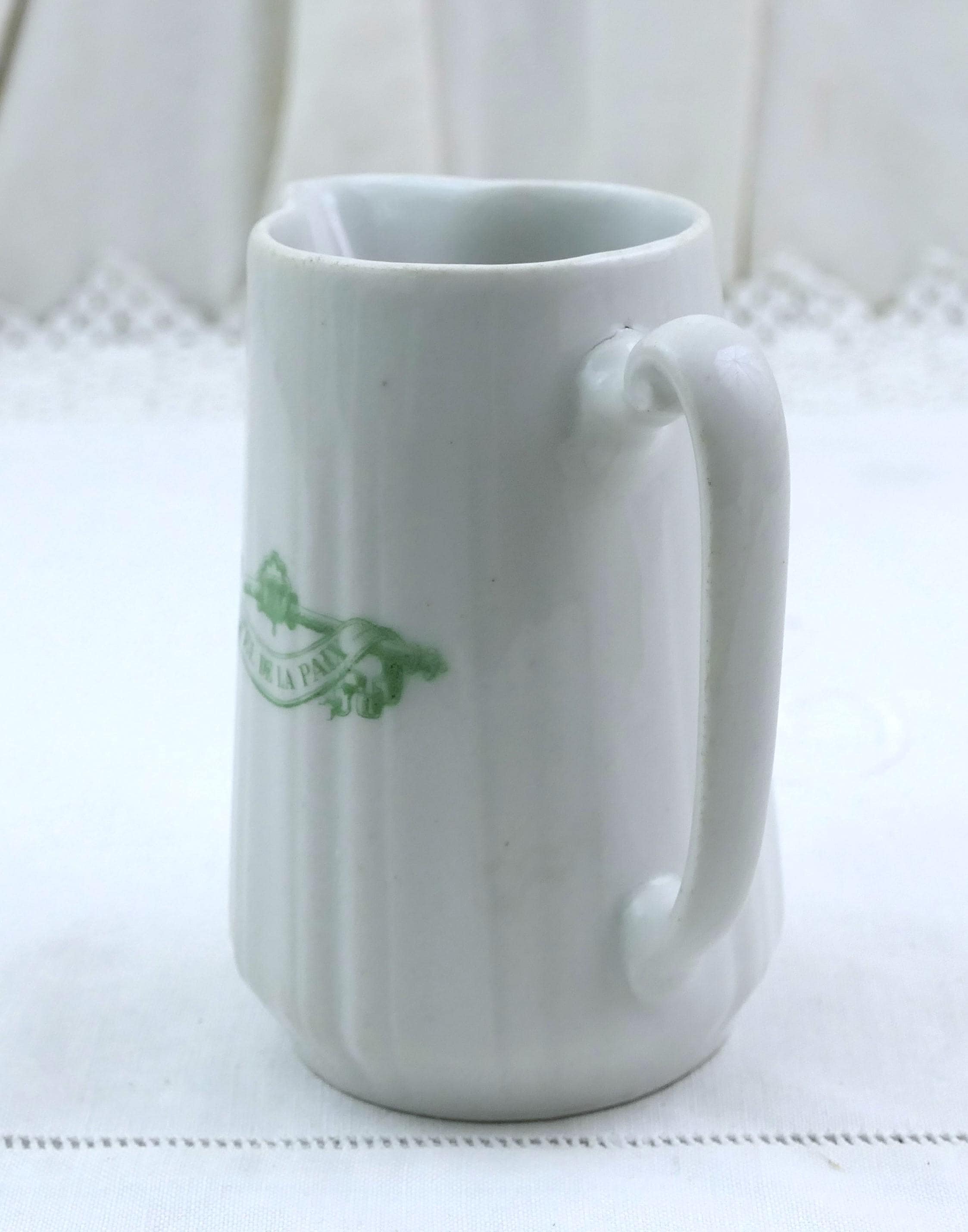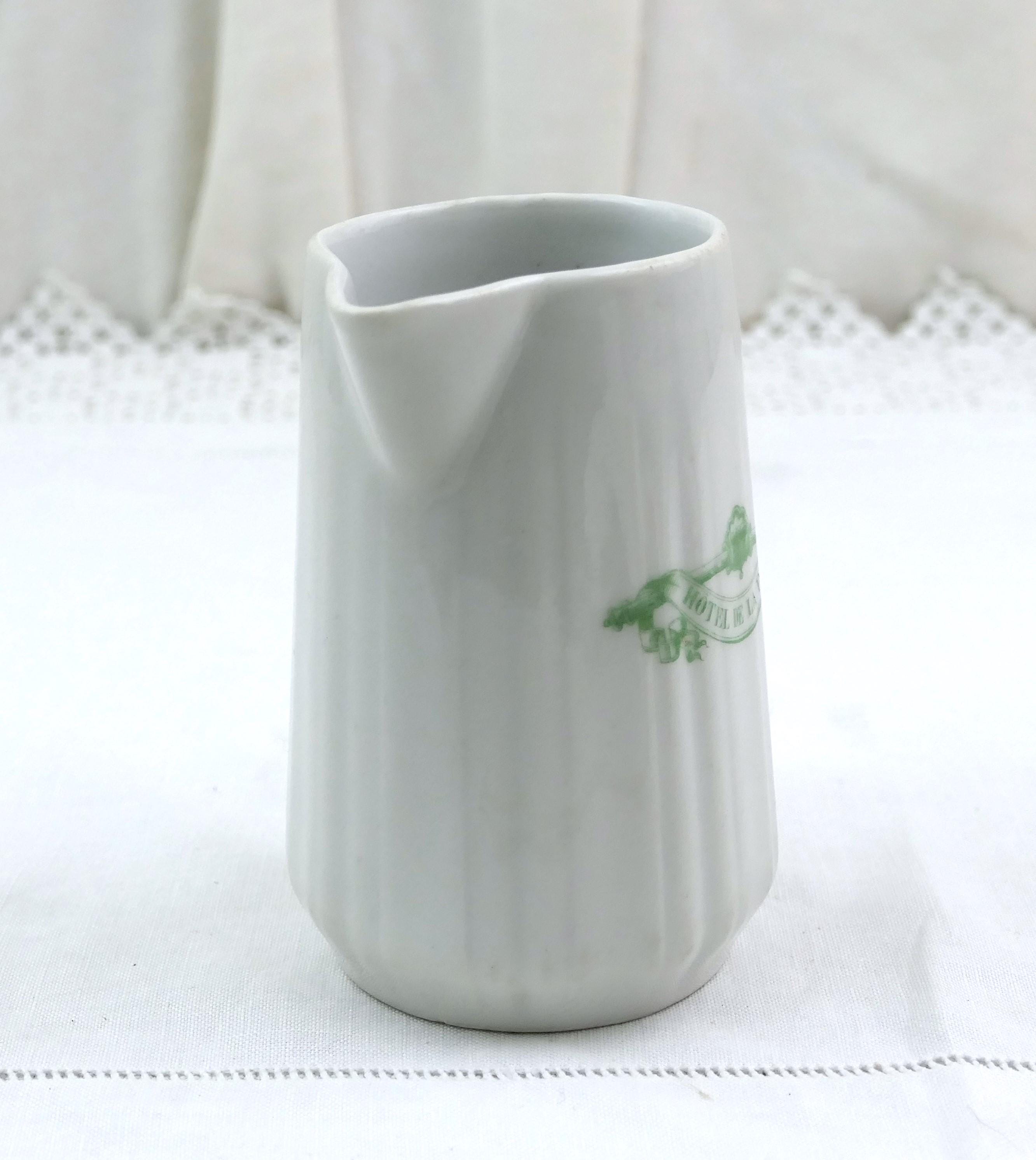 Antique French creamer from a hotel called hotel de la paix. Made of white porcelain china. Ca early 1900s.