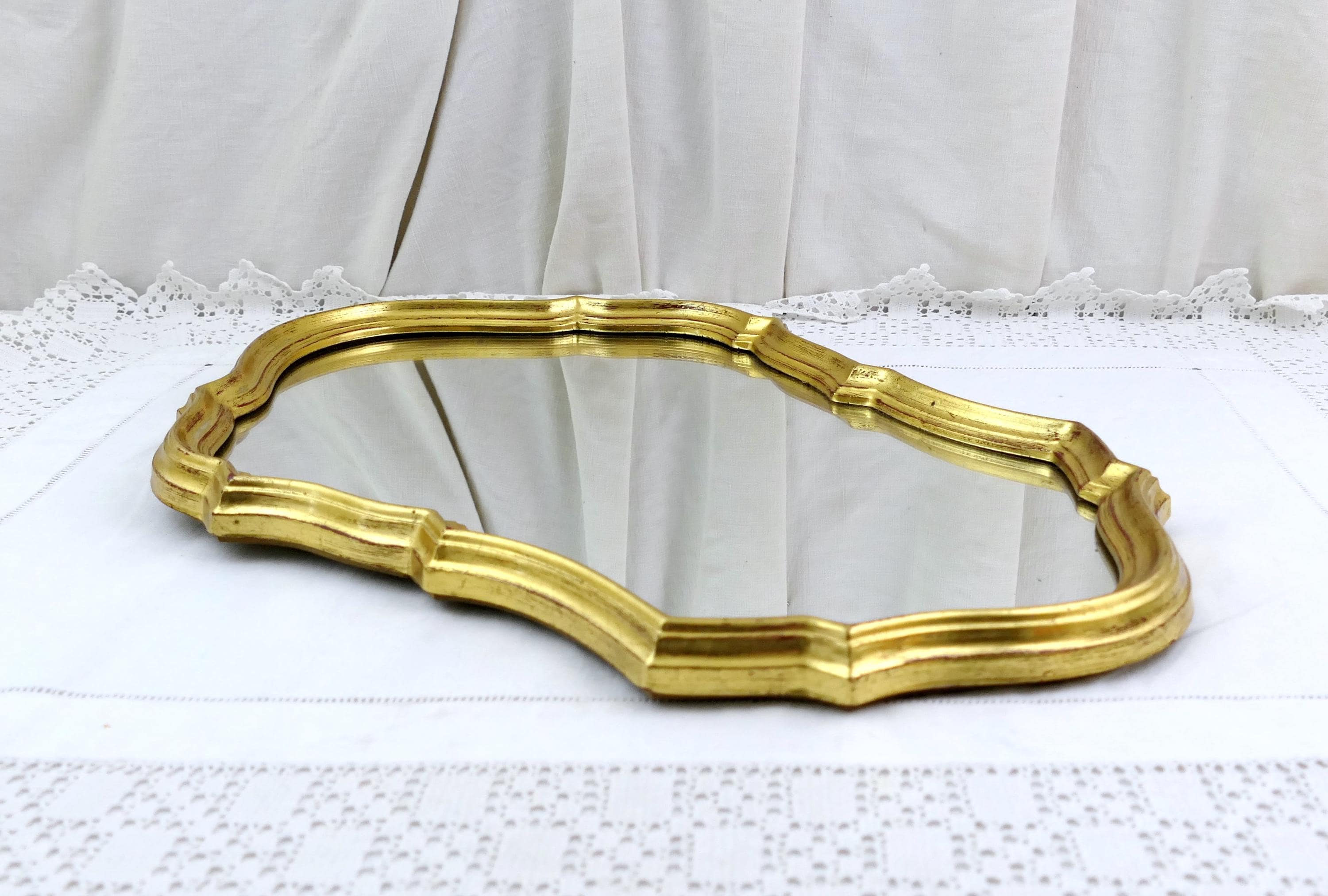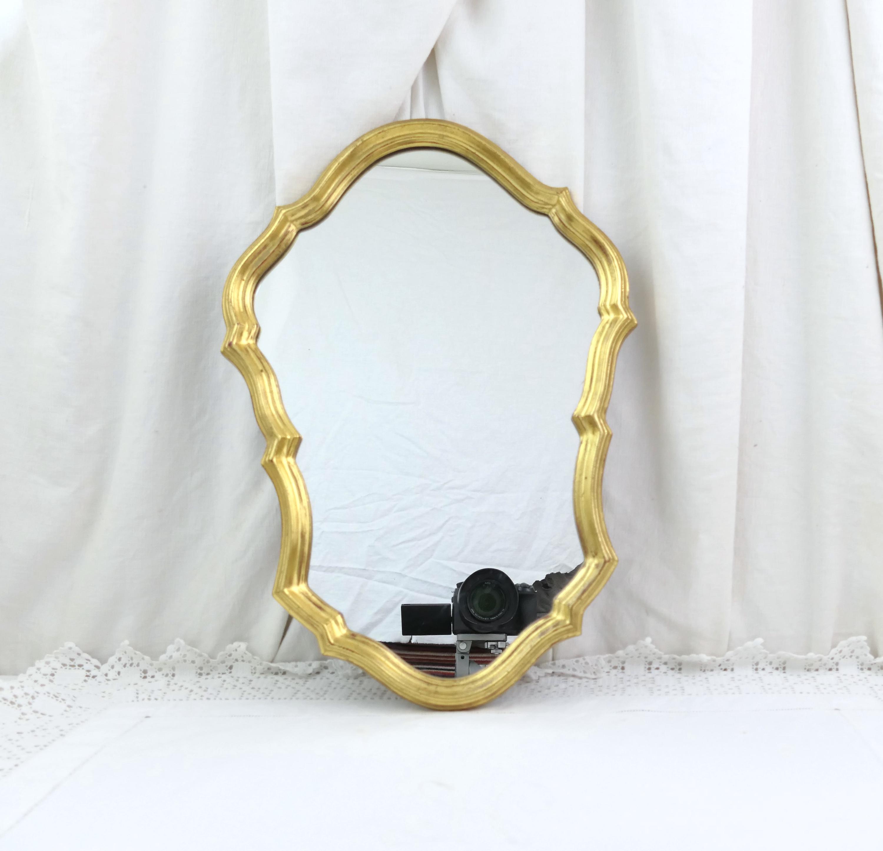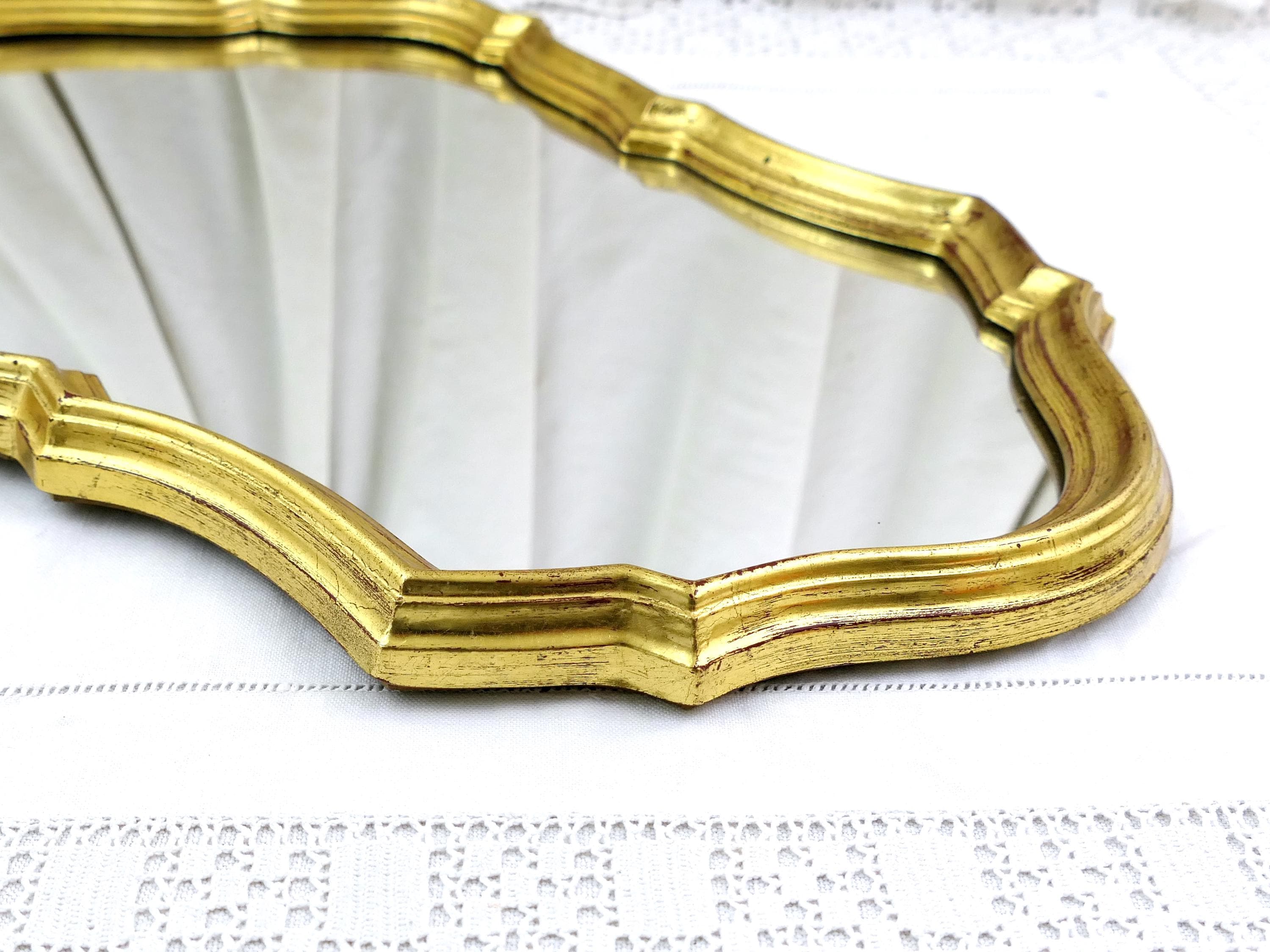Small vintage French gold gilded framed wall mirror. Made of glass mirror with gilded with gold leaf resin frame. Circa 1960s.