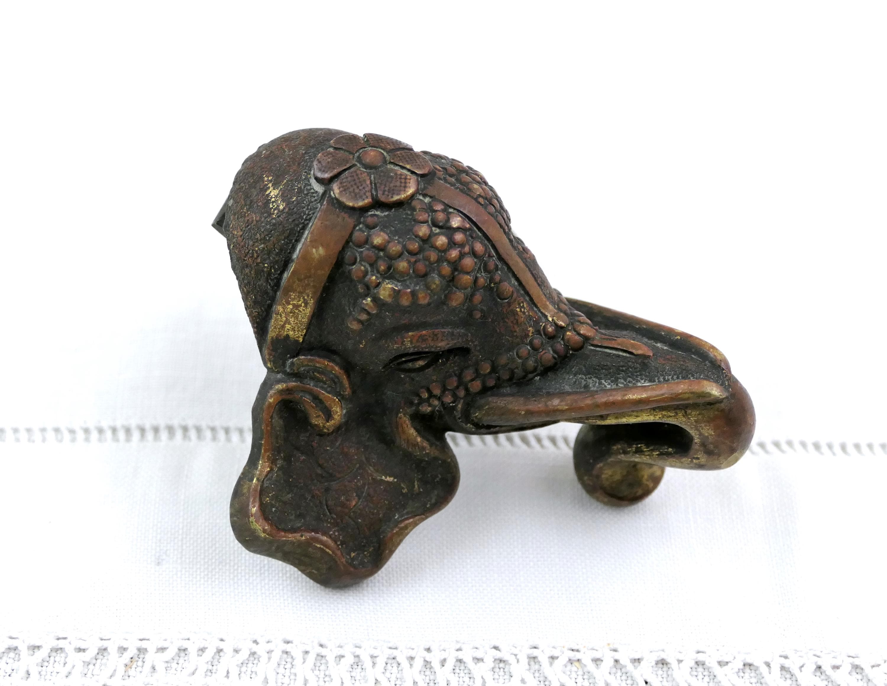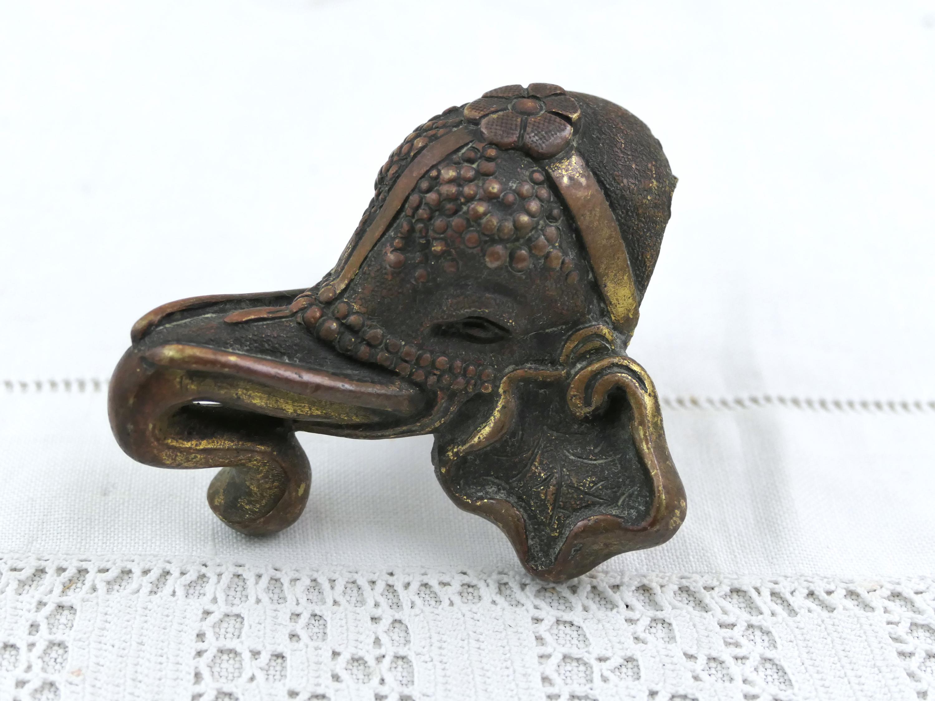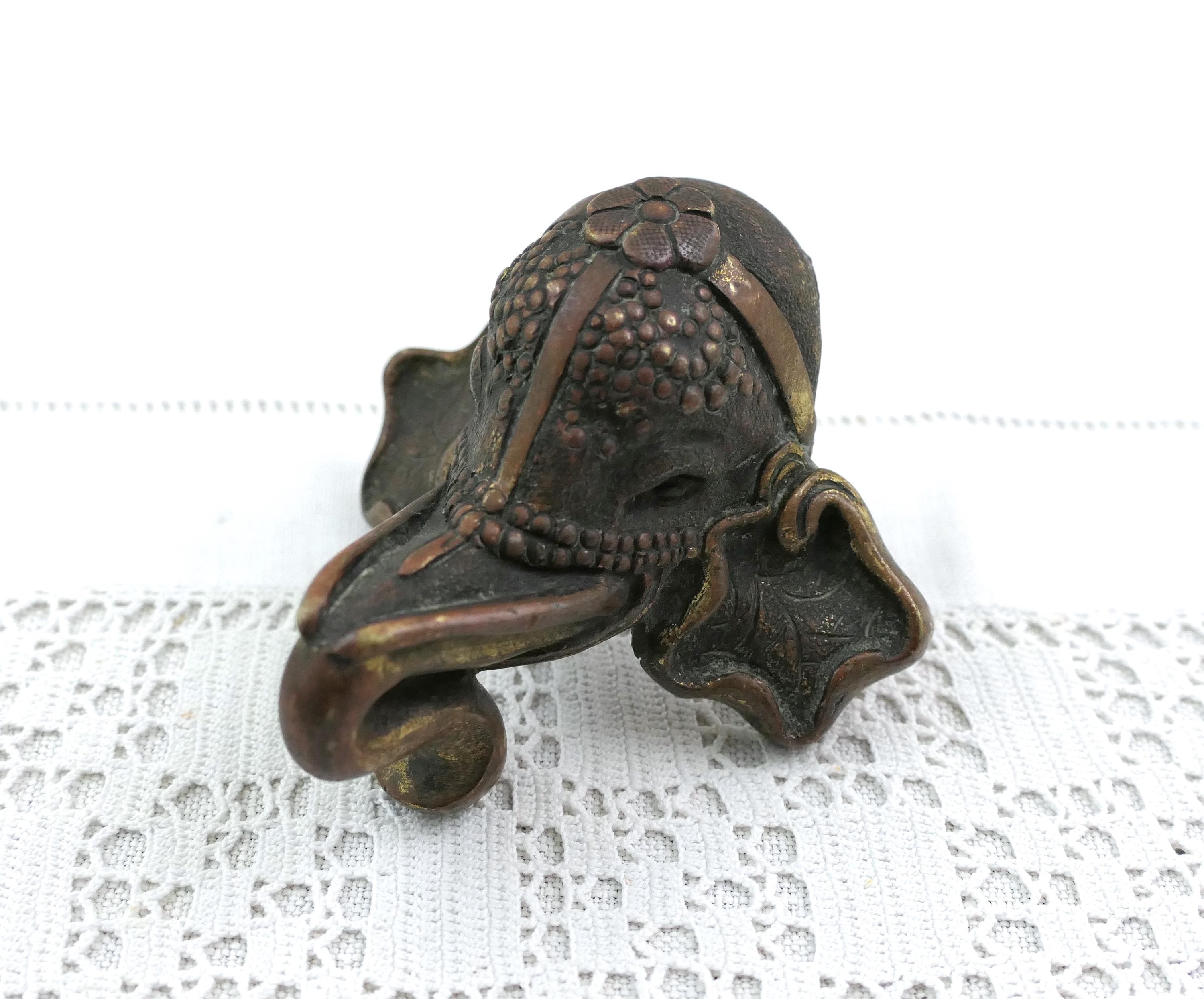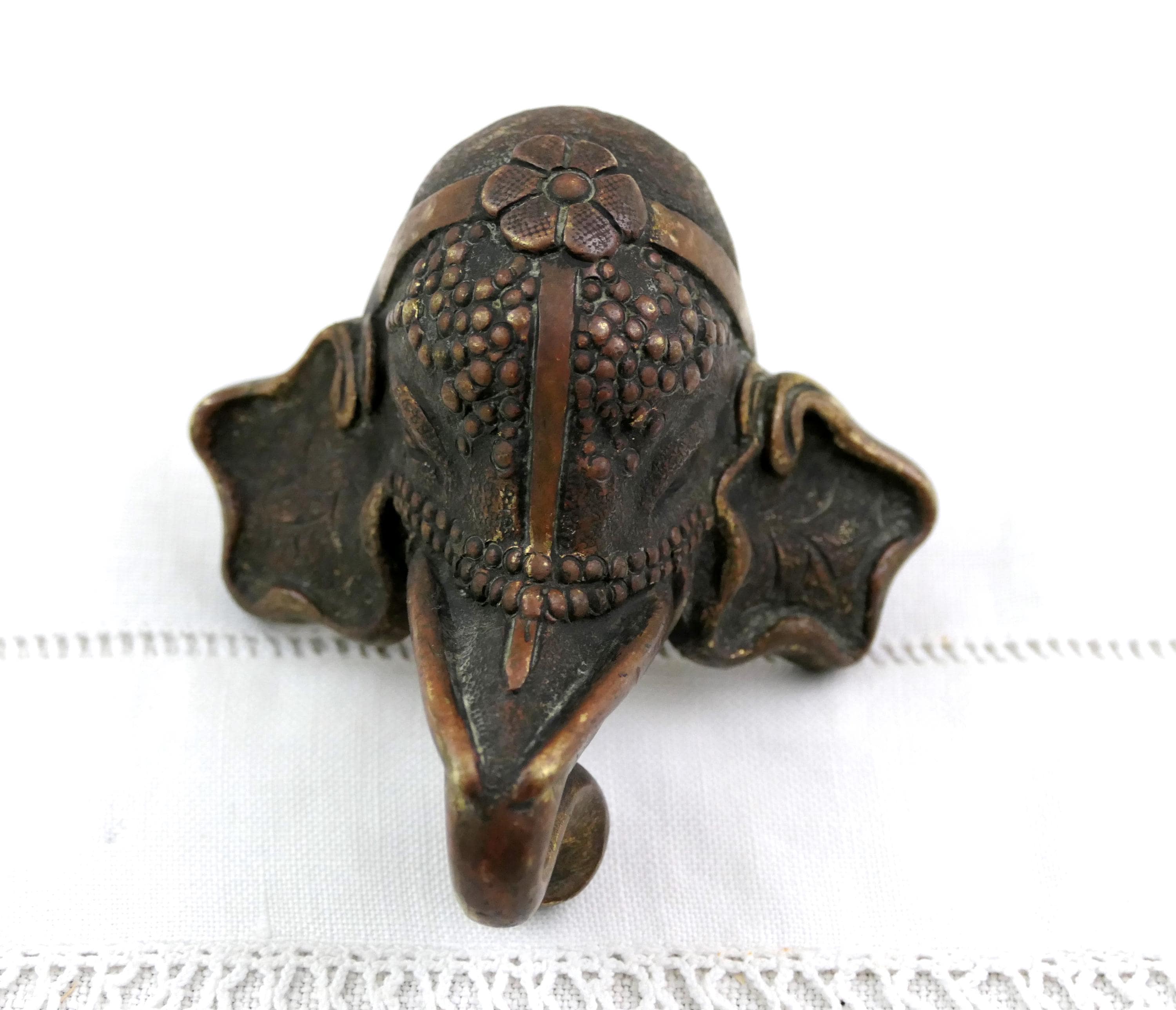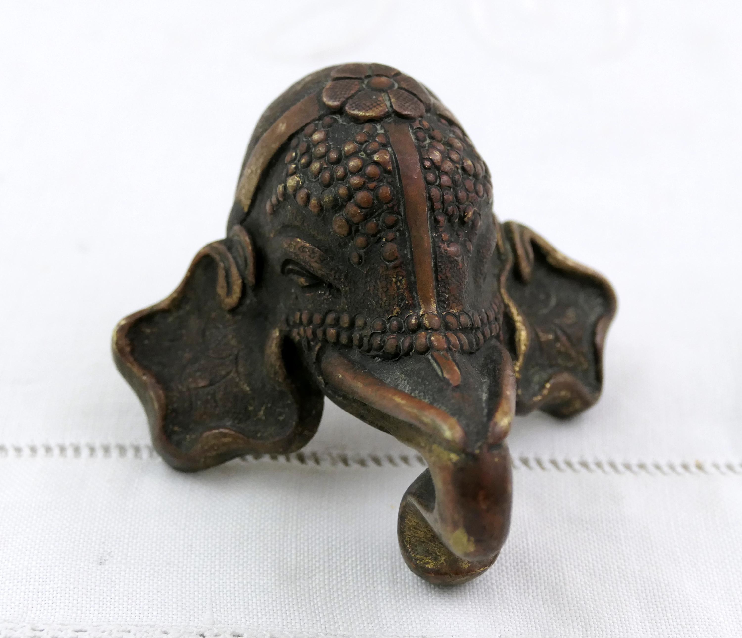 Antique oriental elephant head furniture / door handle. Made of cast bronze metal. Ca 1800s.