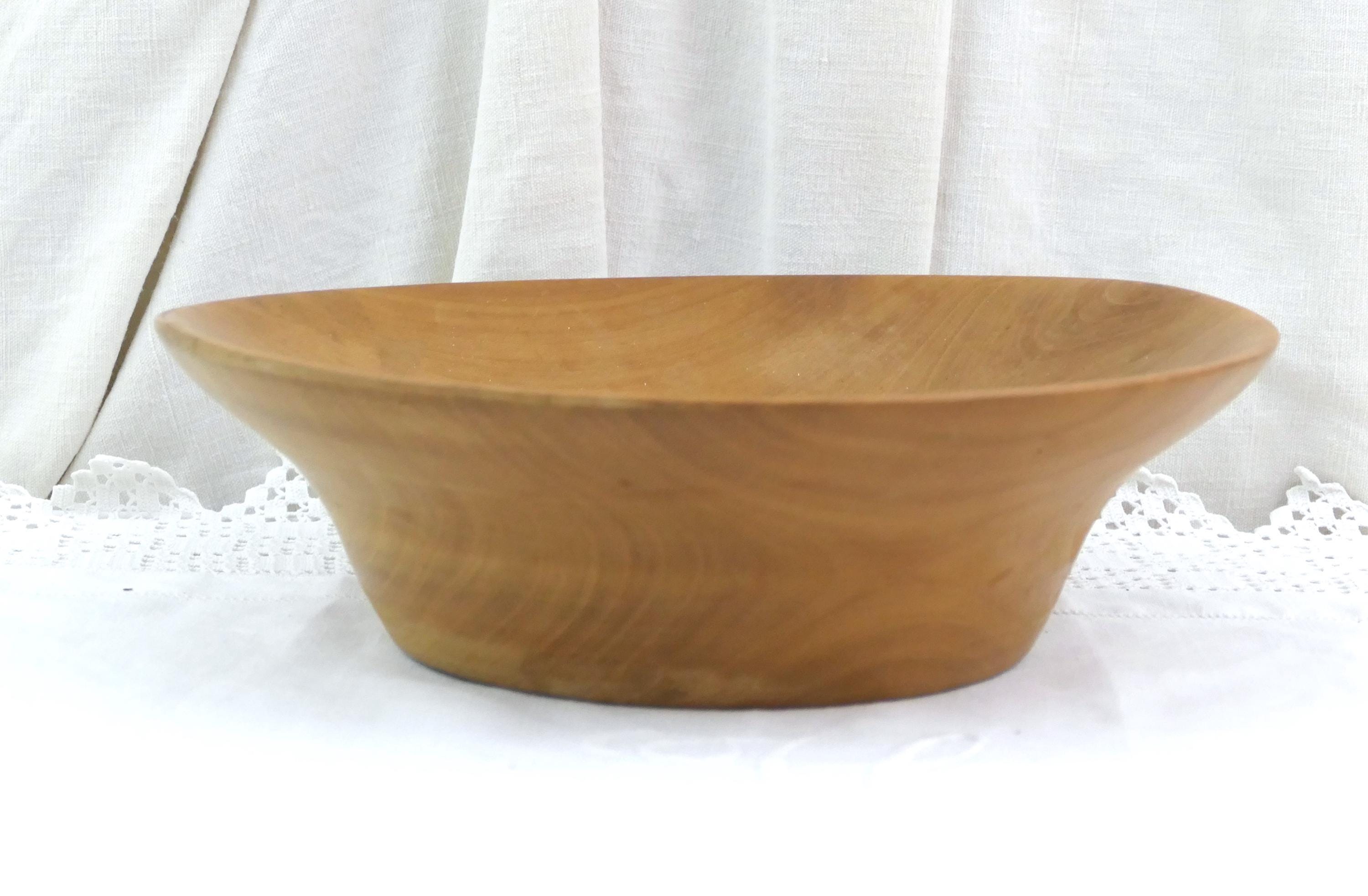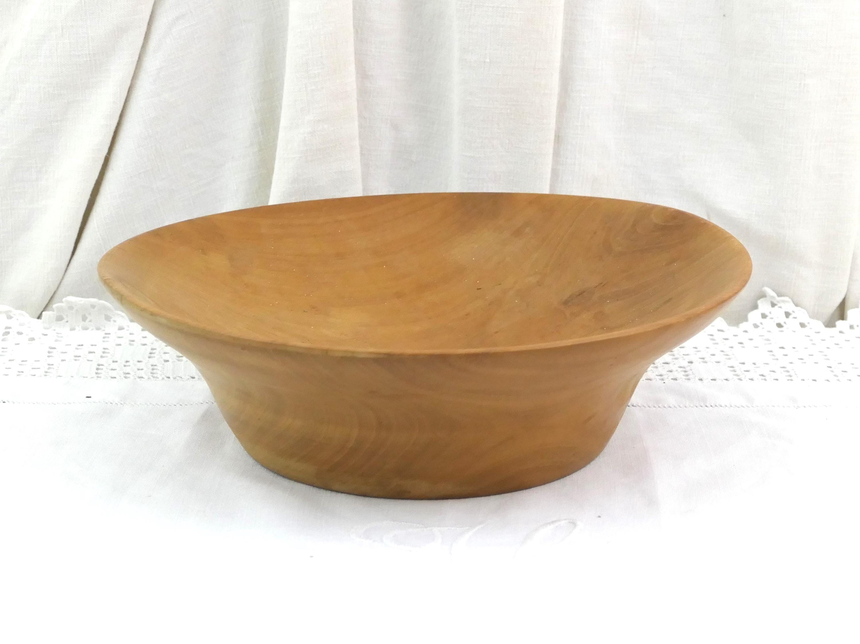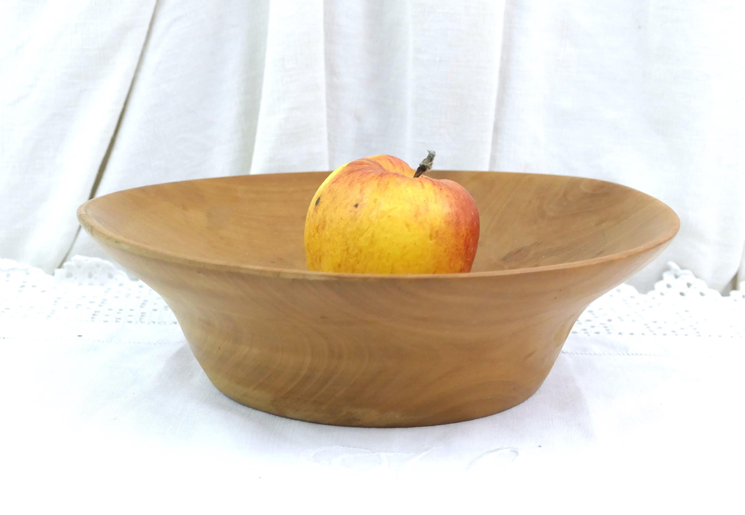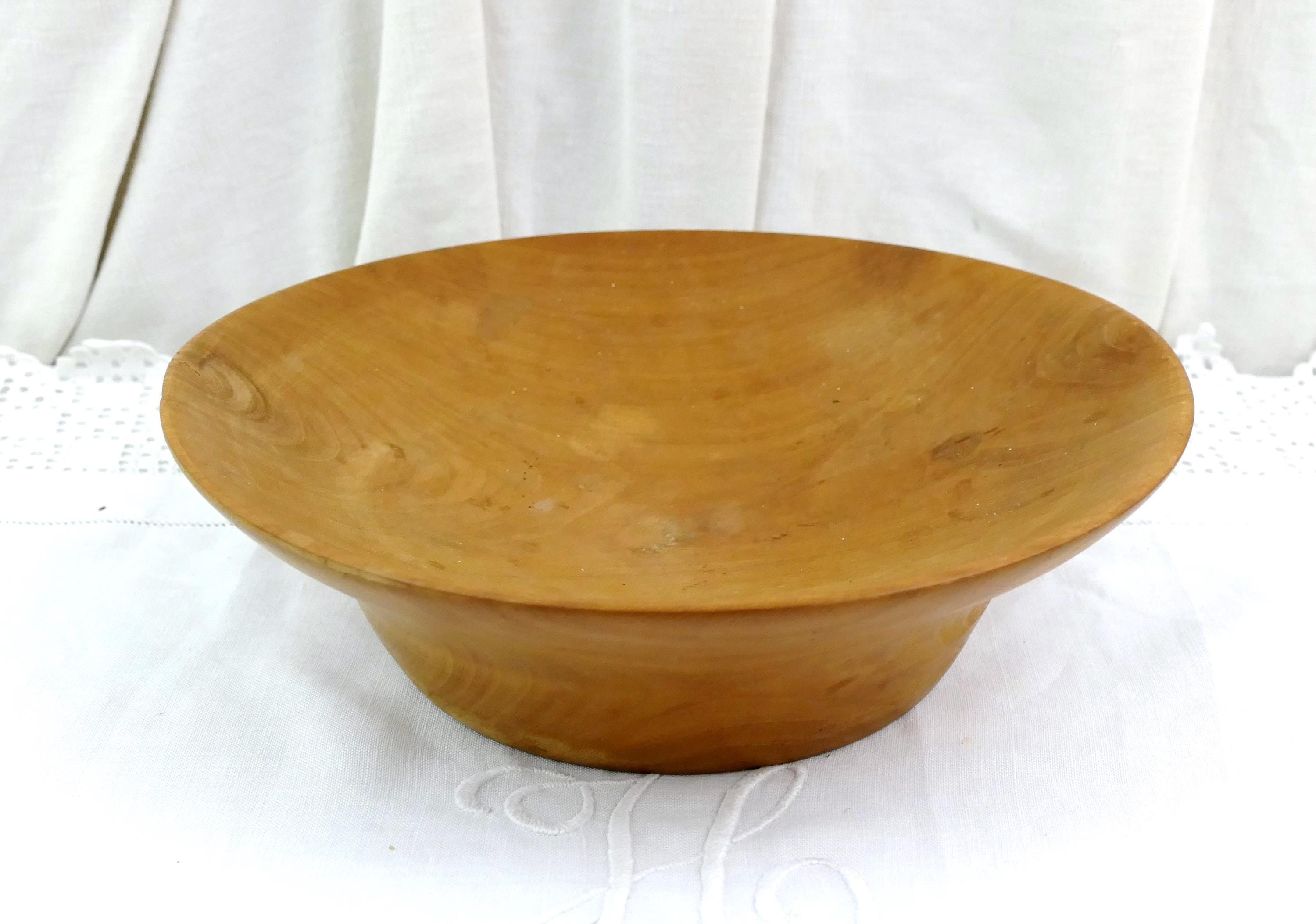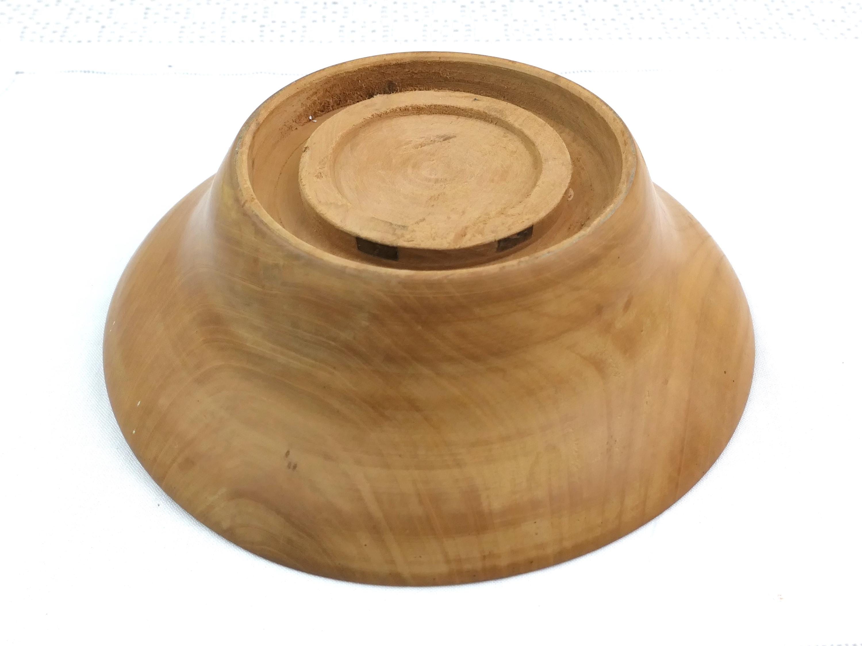 Vintage French wooden fruit bowl with natural patina. Made of turned wood. Ca early to mid 1900s.