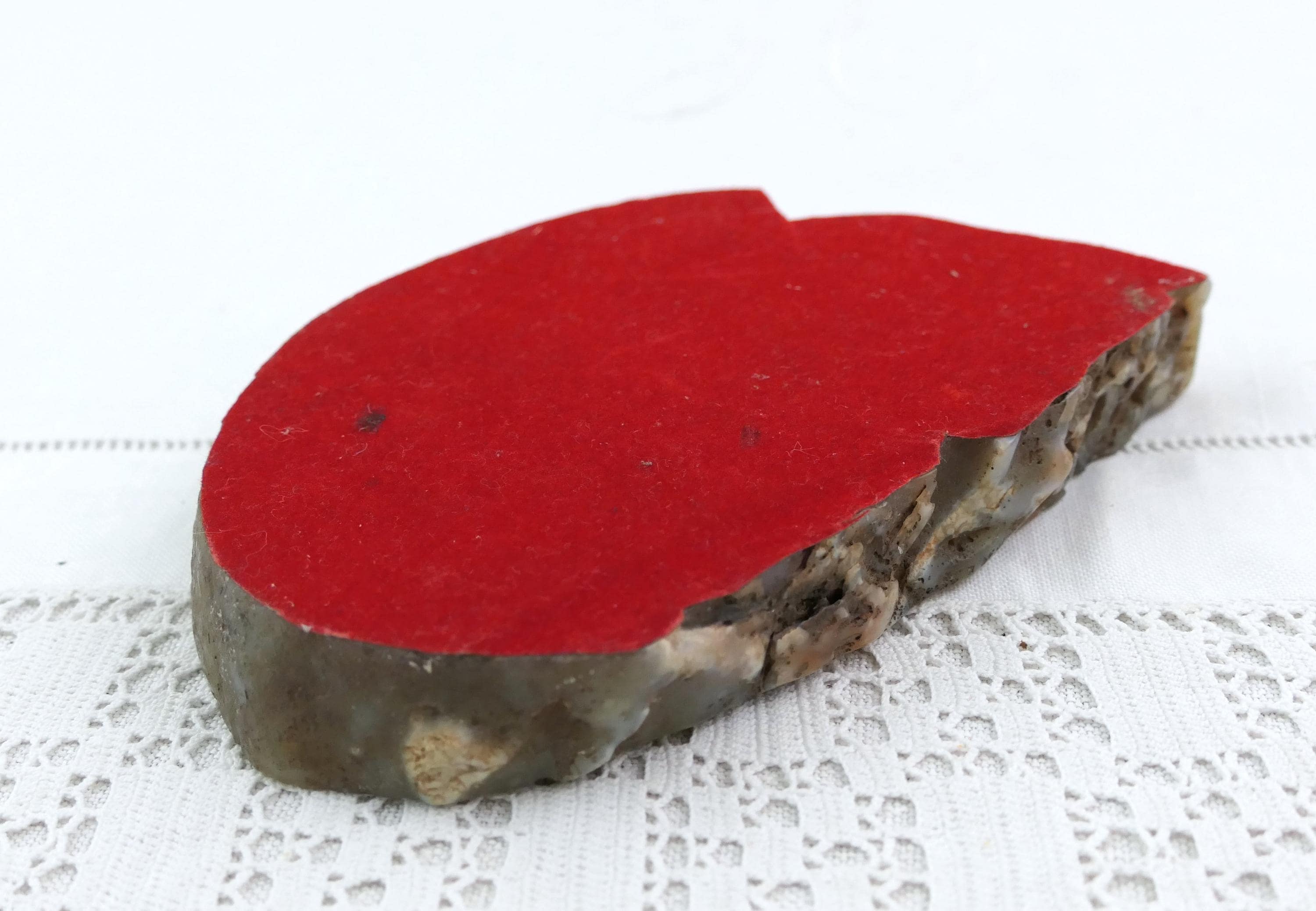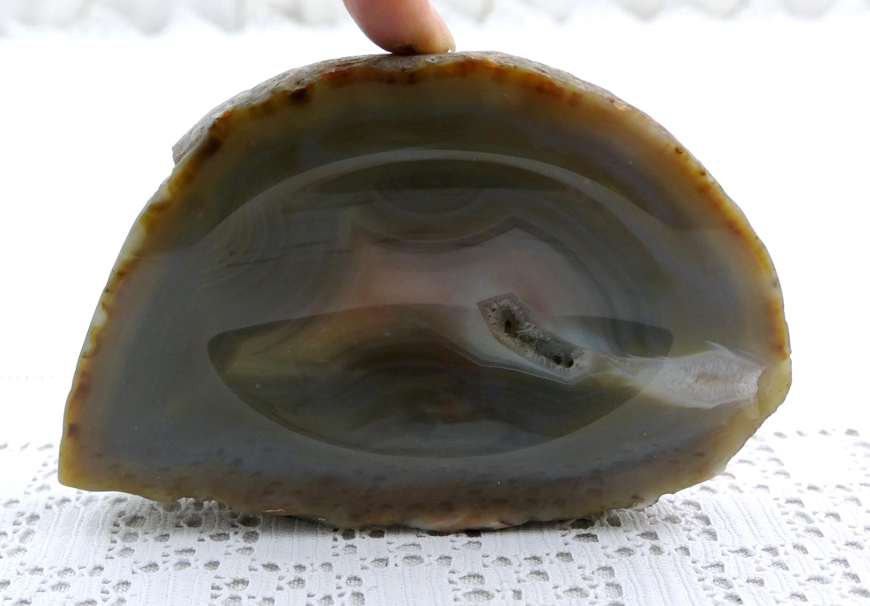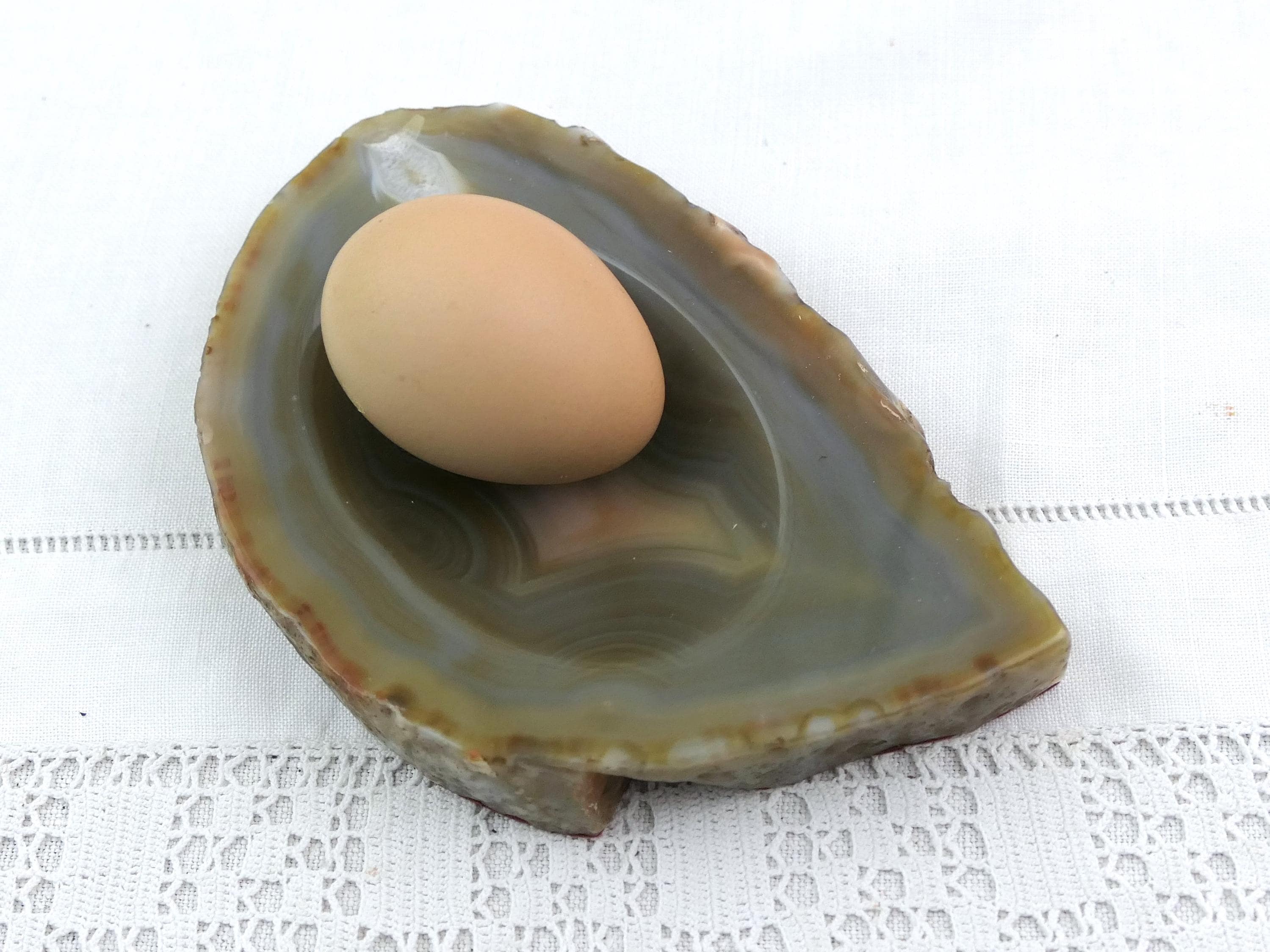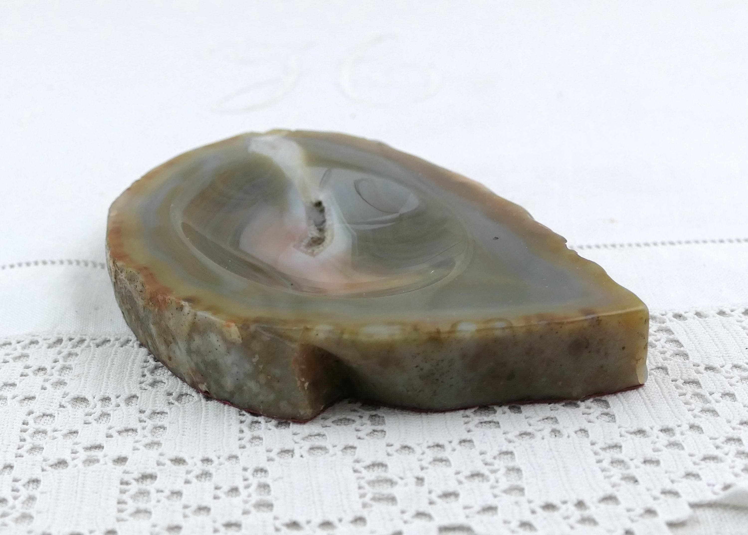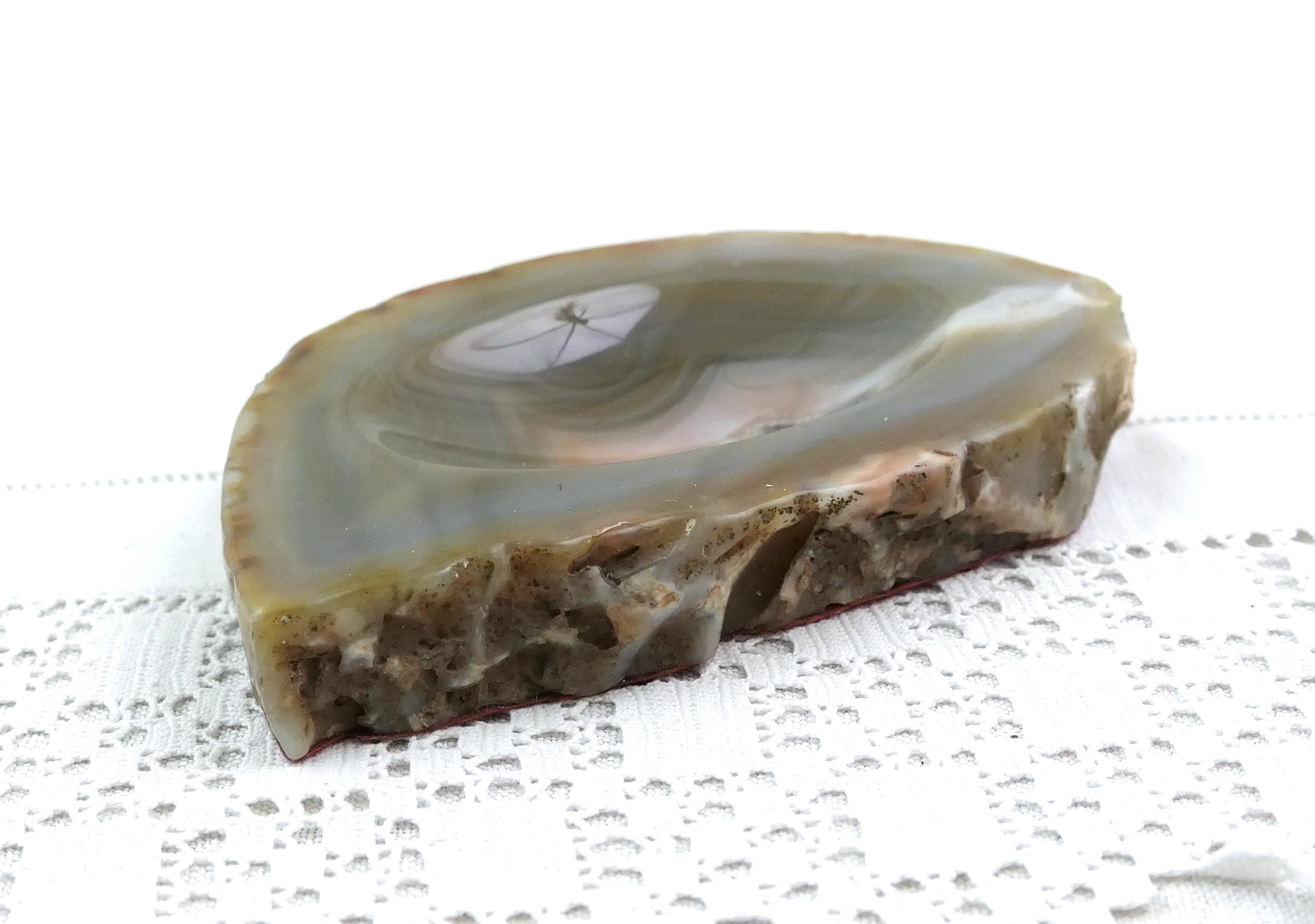 Vintage polished stone ashtray. Made from a slice of burnt blue gray agate nodule. Circa 1970s.