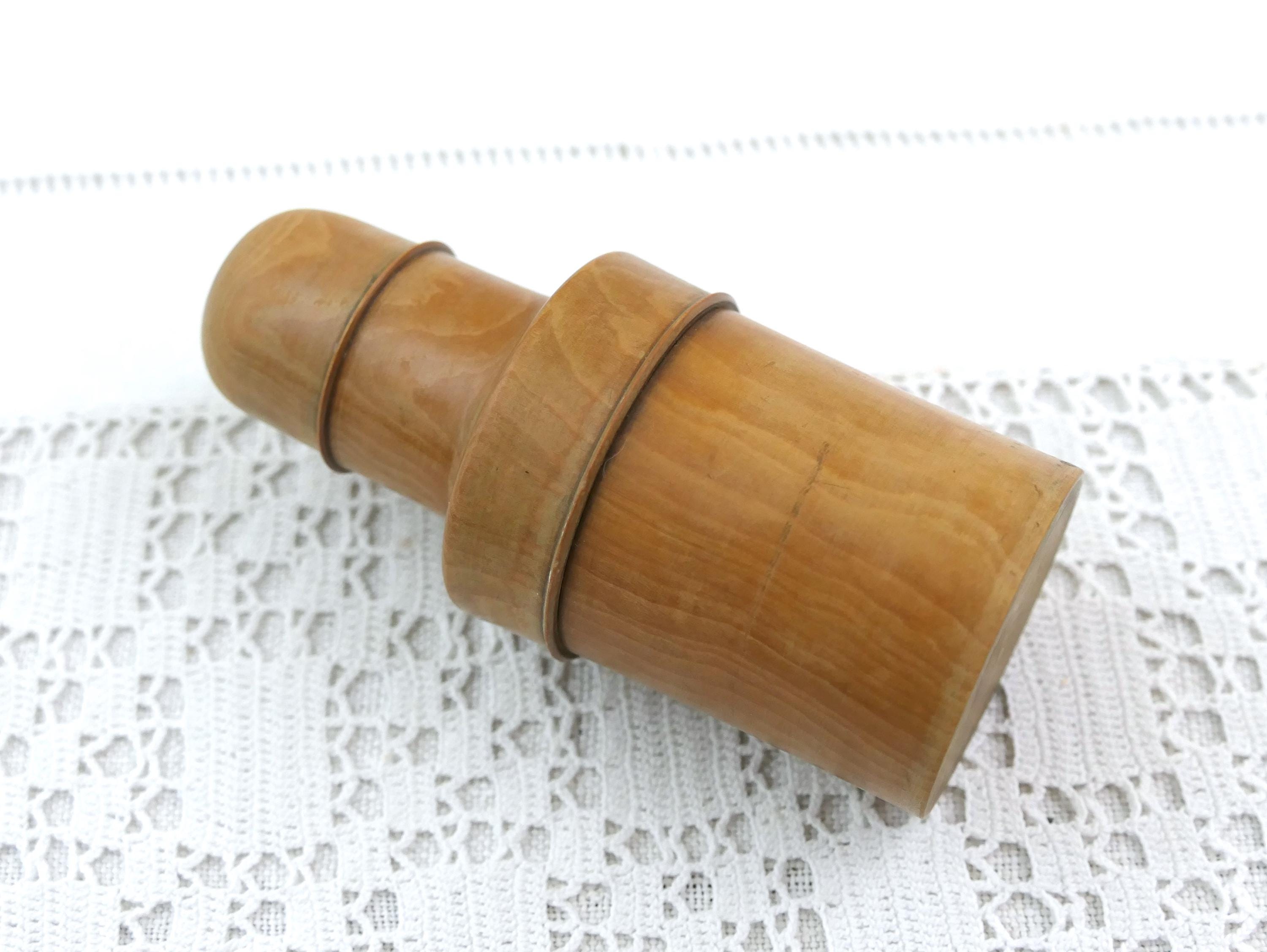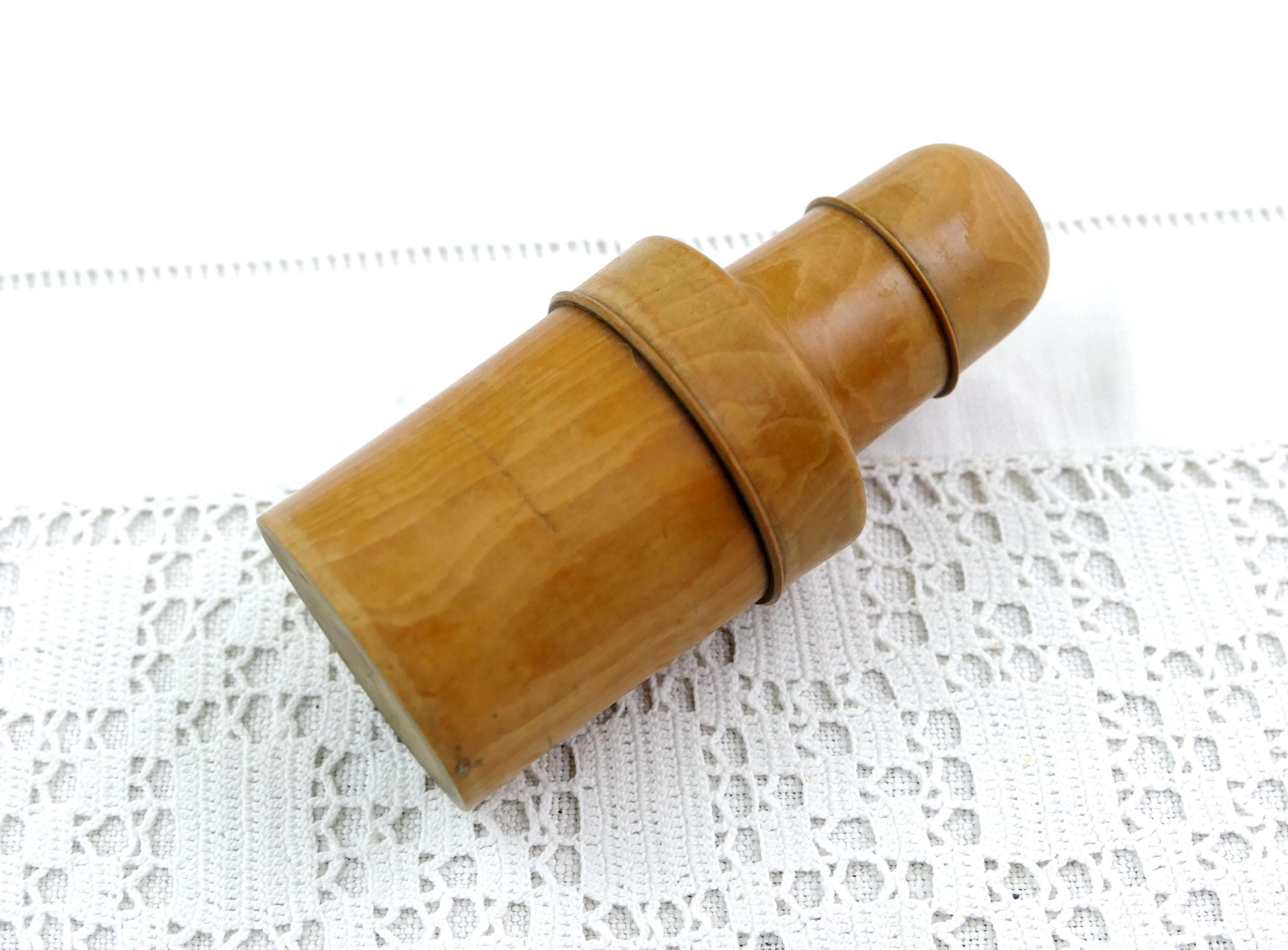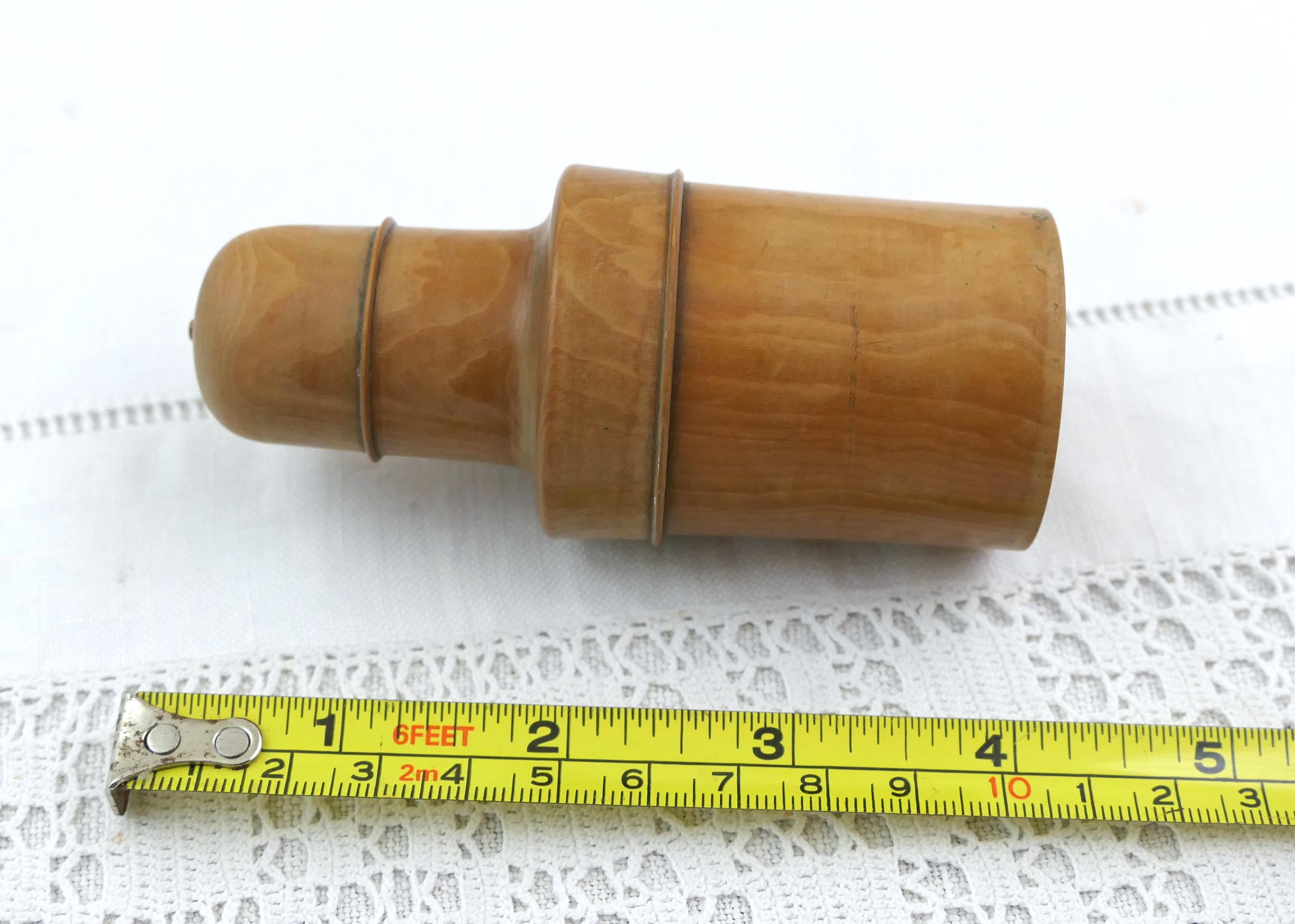 Small antique French wooden bottle holder. Made of turned box wood with a threaded lid. Ca 1800s.
