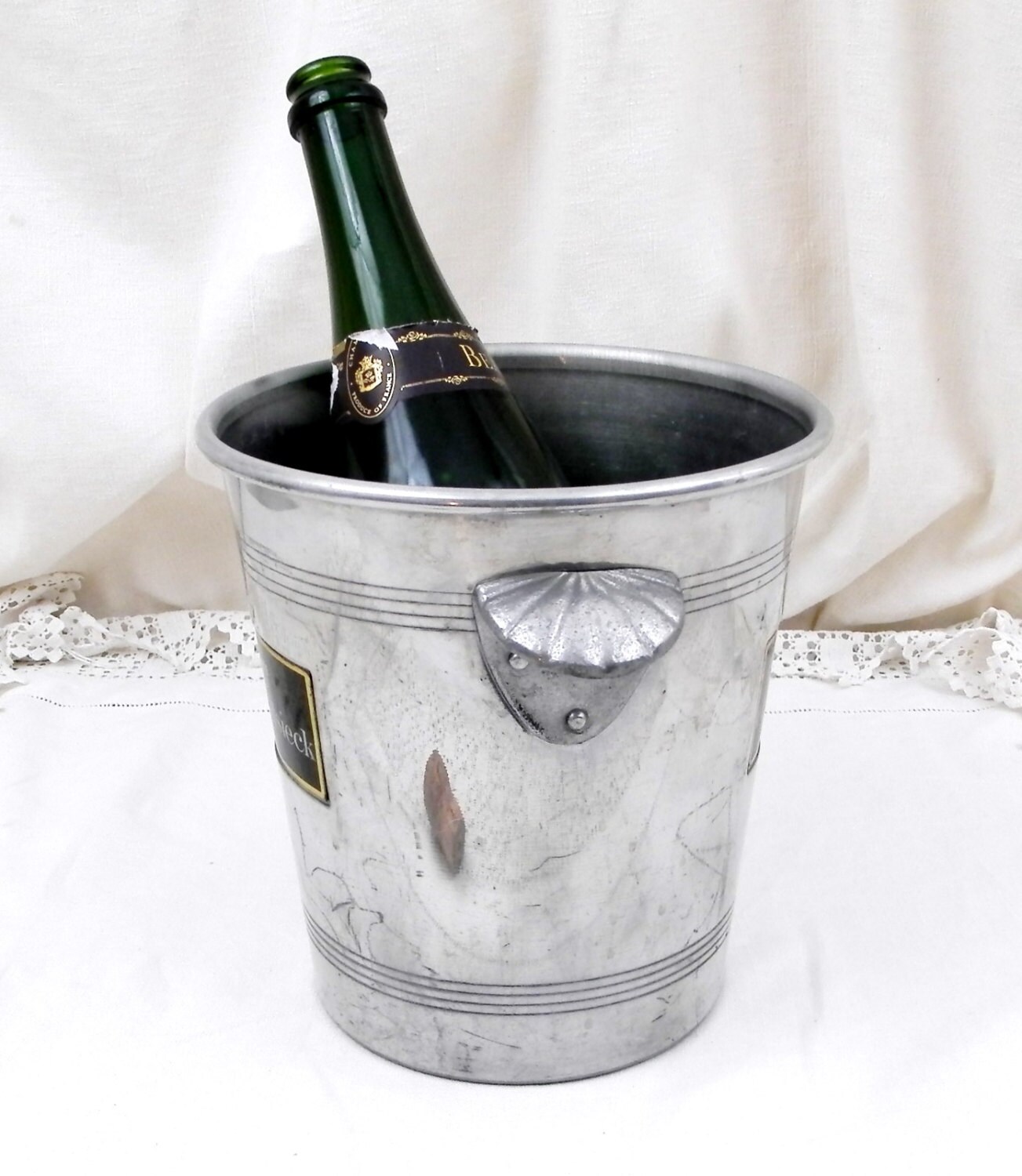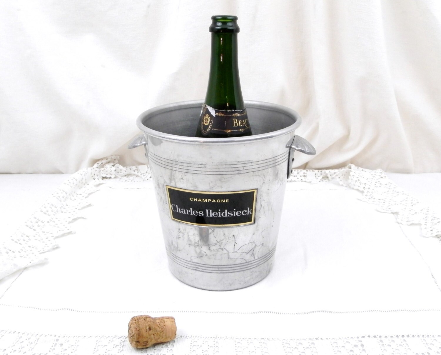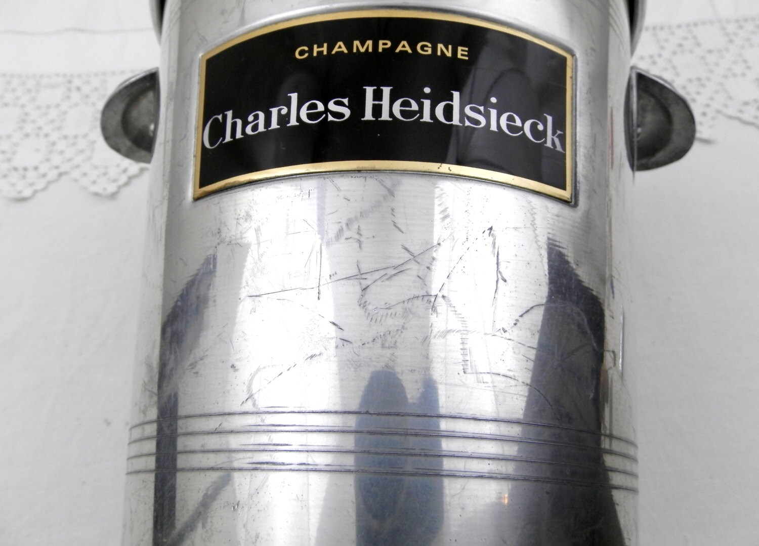 Vintage French Champagne ice bucket with the Charles Heidsieck logo on both sides.