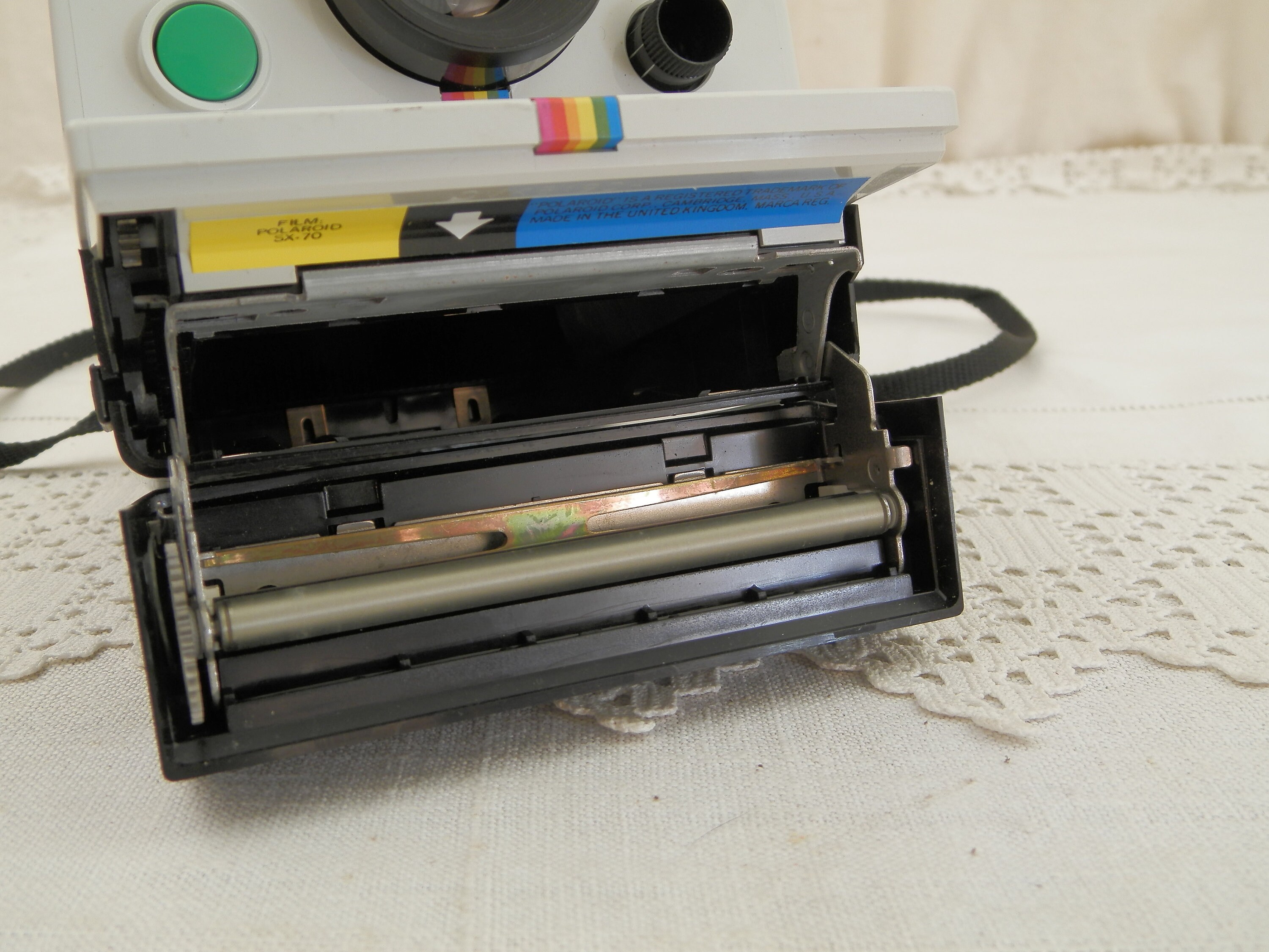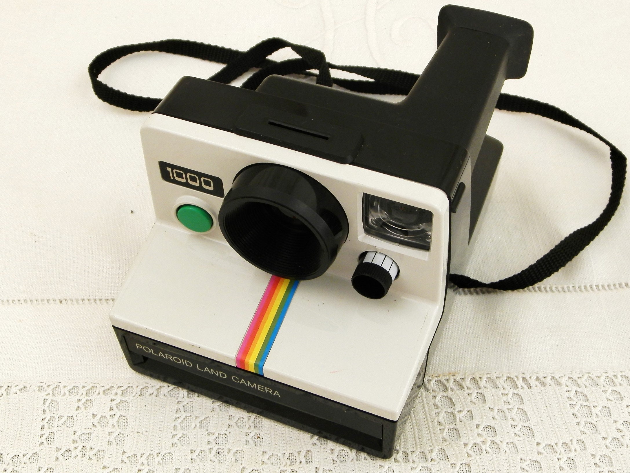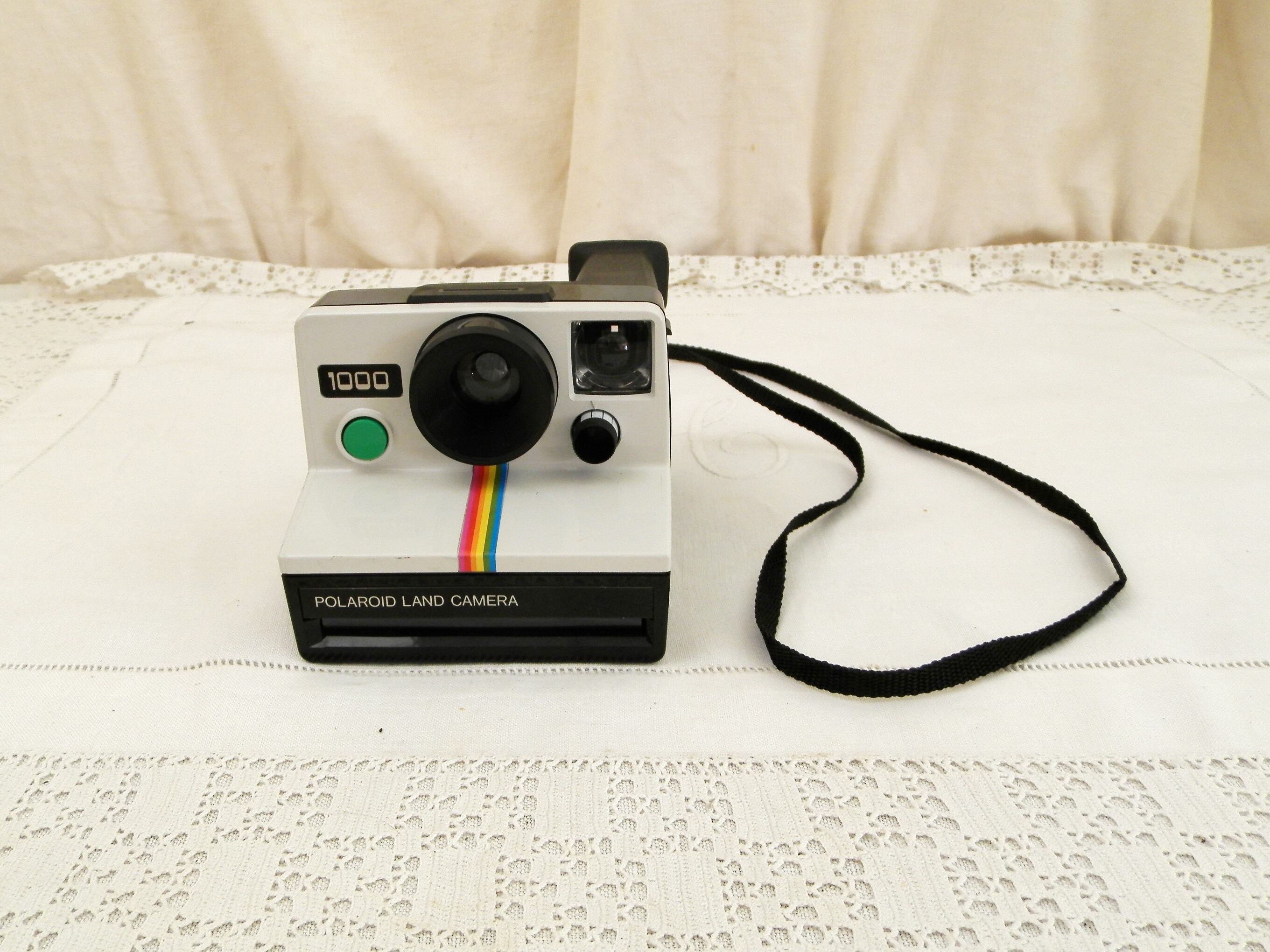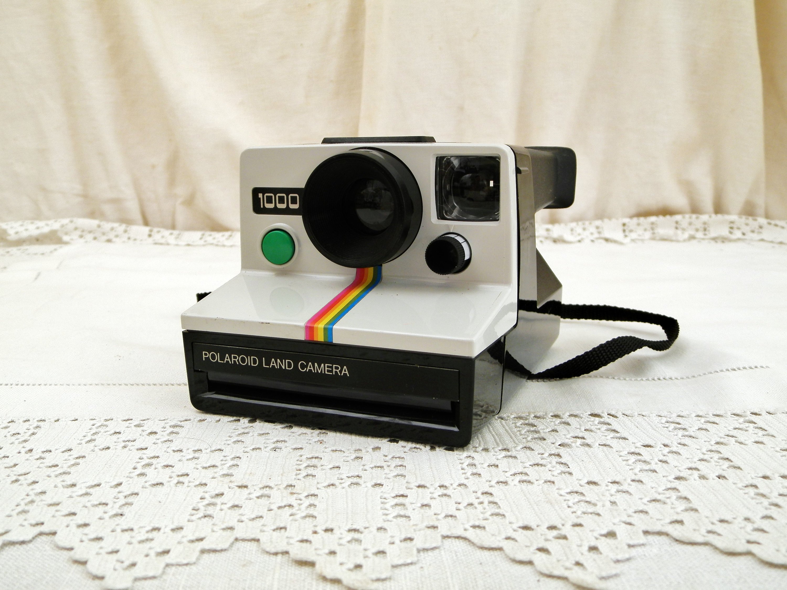 Vintage 1970s Polaroid Land Camera. Instant photo camera, at the time of it's release in 1977 this was the "must have" of modern technology, being able to a develop a photograph instantly was unheard of. I have not been able to test the camera although the insides look clean and in good condition. Found at a French flea market in Normandy.