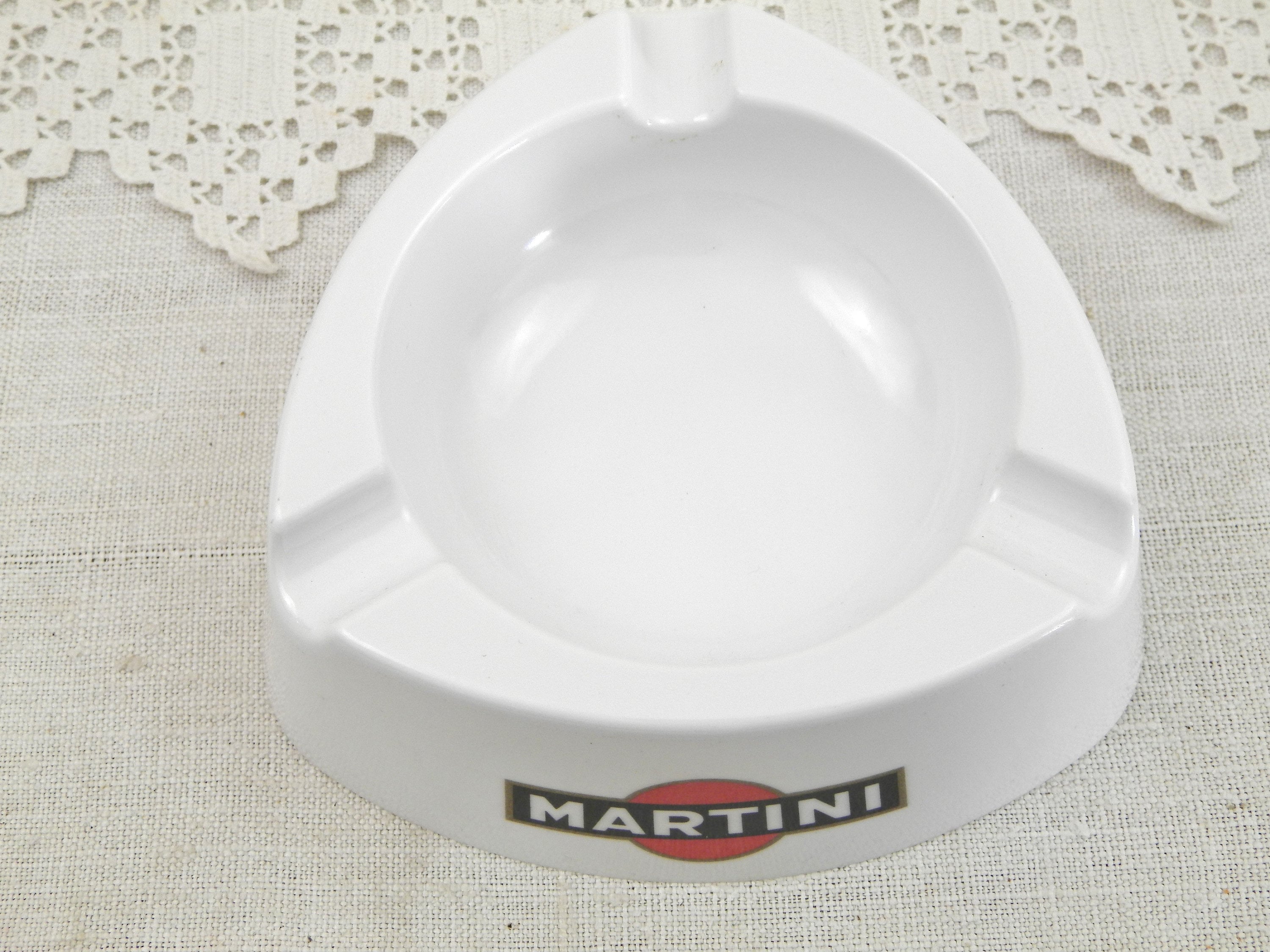 Vintage Martini triangular ashtray. Promotional gift from the Martini company before the European smoking ban in bars, pubs and restaurants. Made of strong melamine. Listing is for 1 ashtray but 5 are available. Found at a French flea market in Normandy.