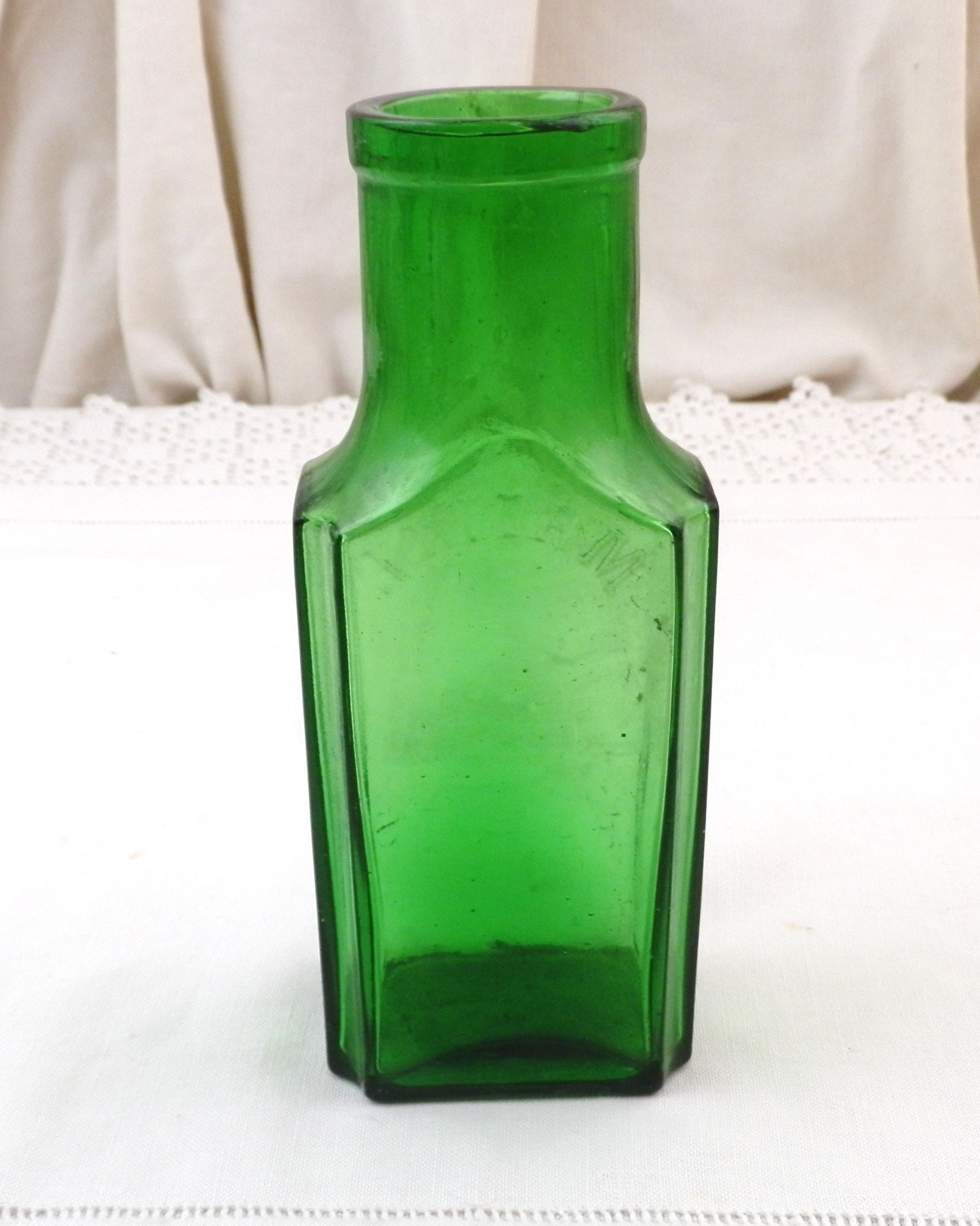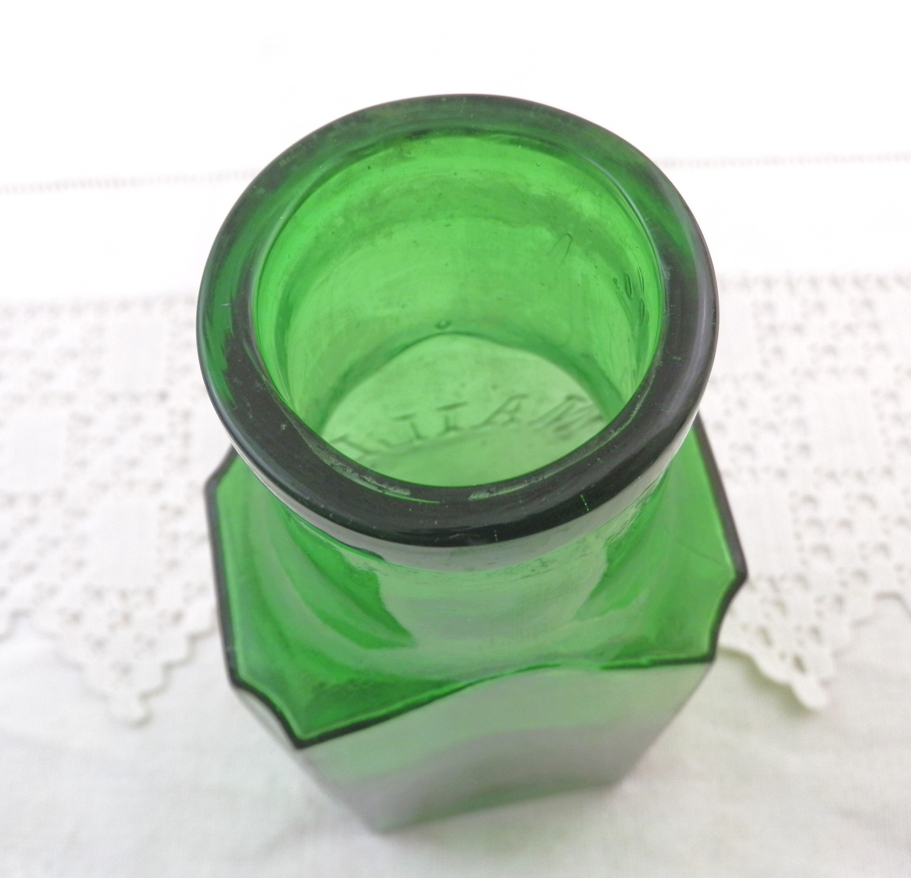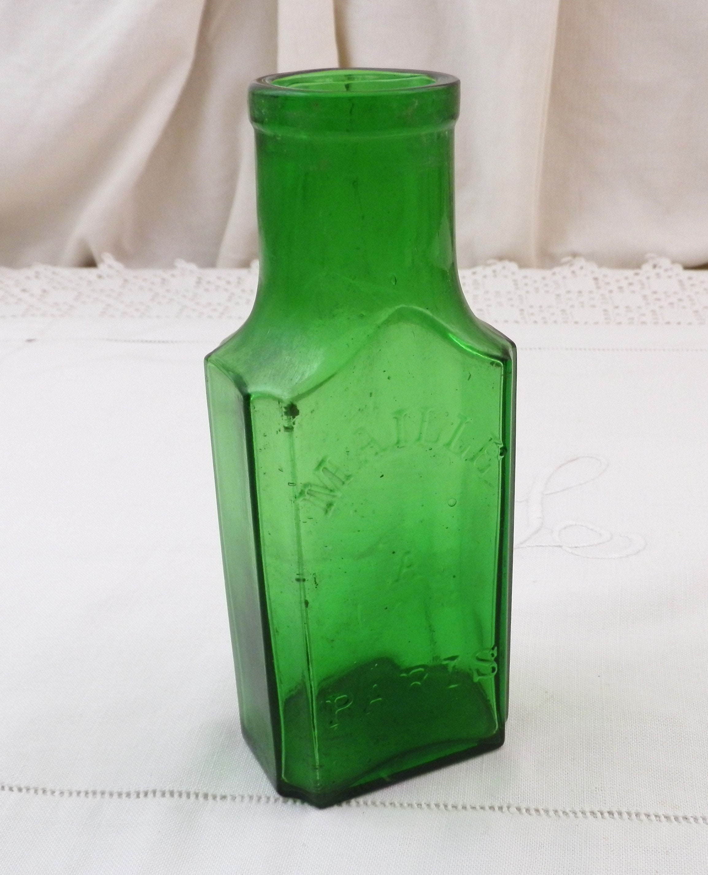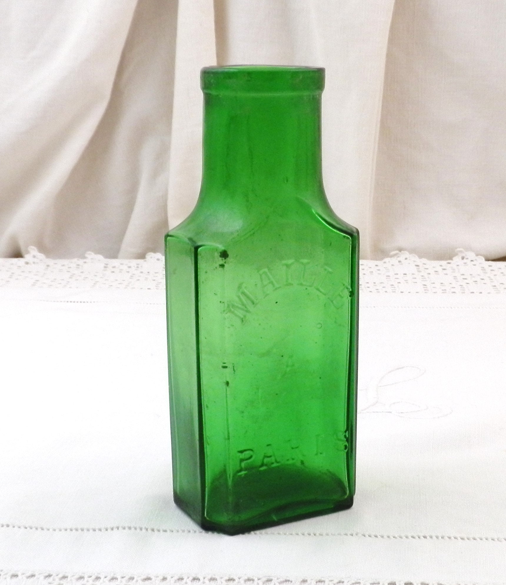 Antique French mustard bottle. A rare find in green glass, generally Maille was sold in stoneware ceramic crock pots. Embossed Maille Paris on the bottle with a wide neck. Circa late 19th C.