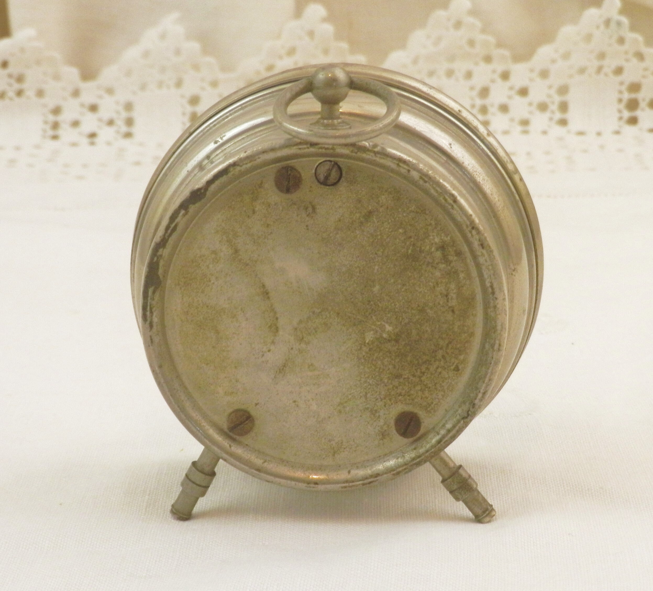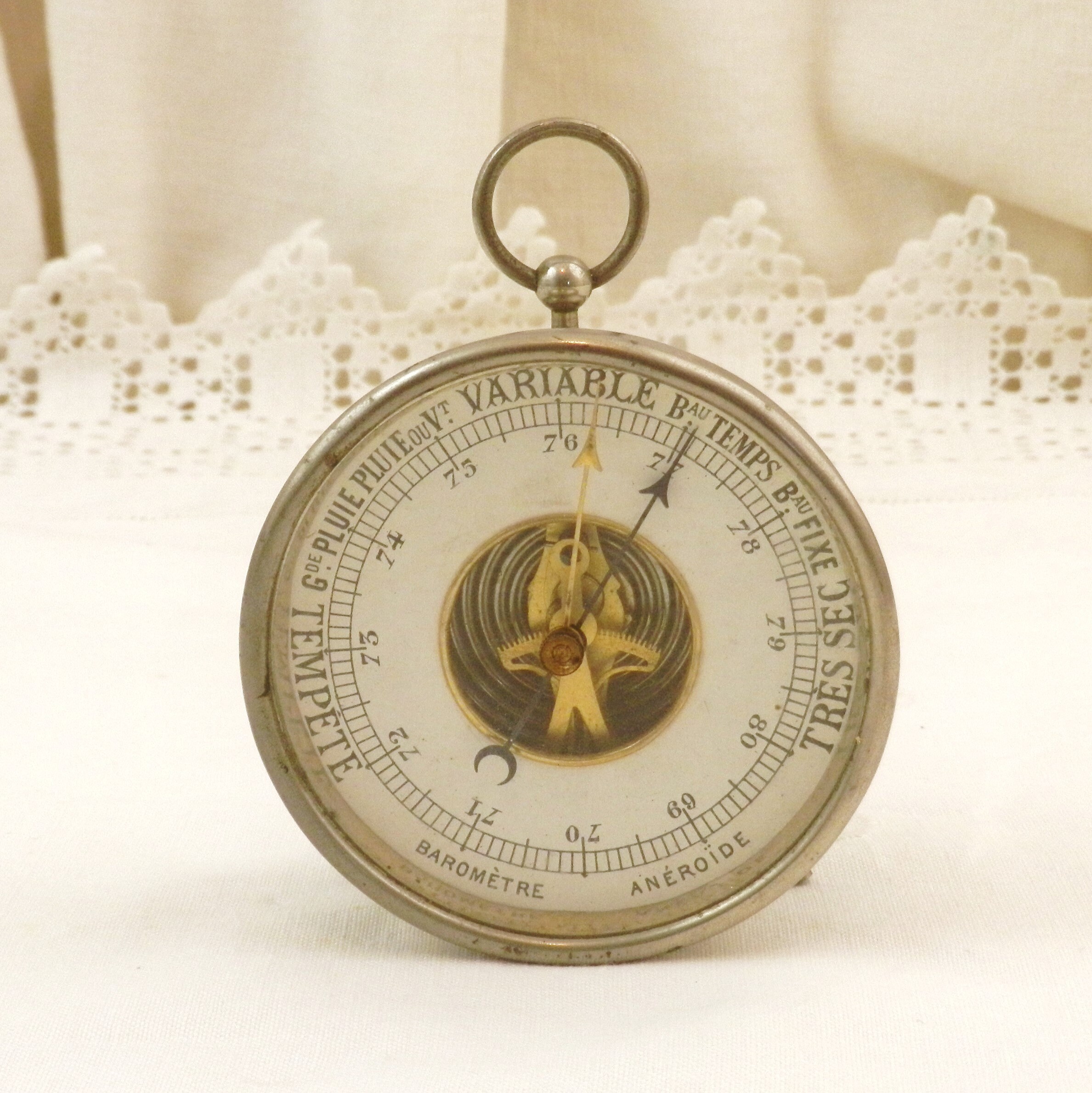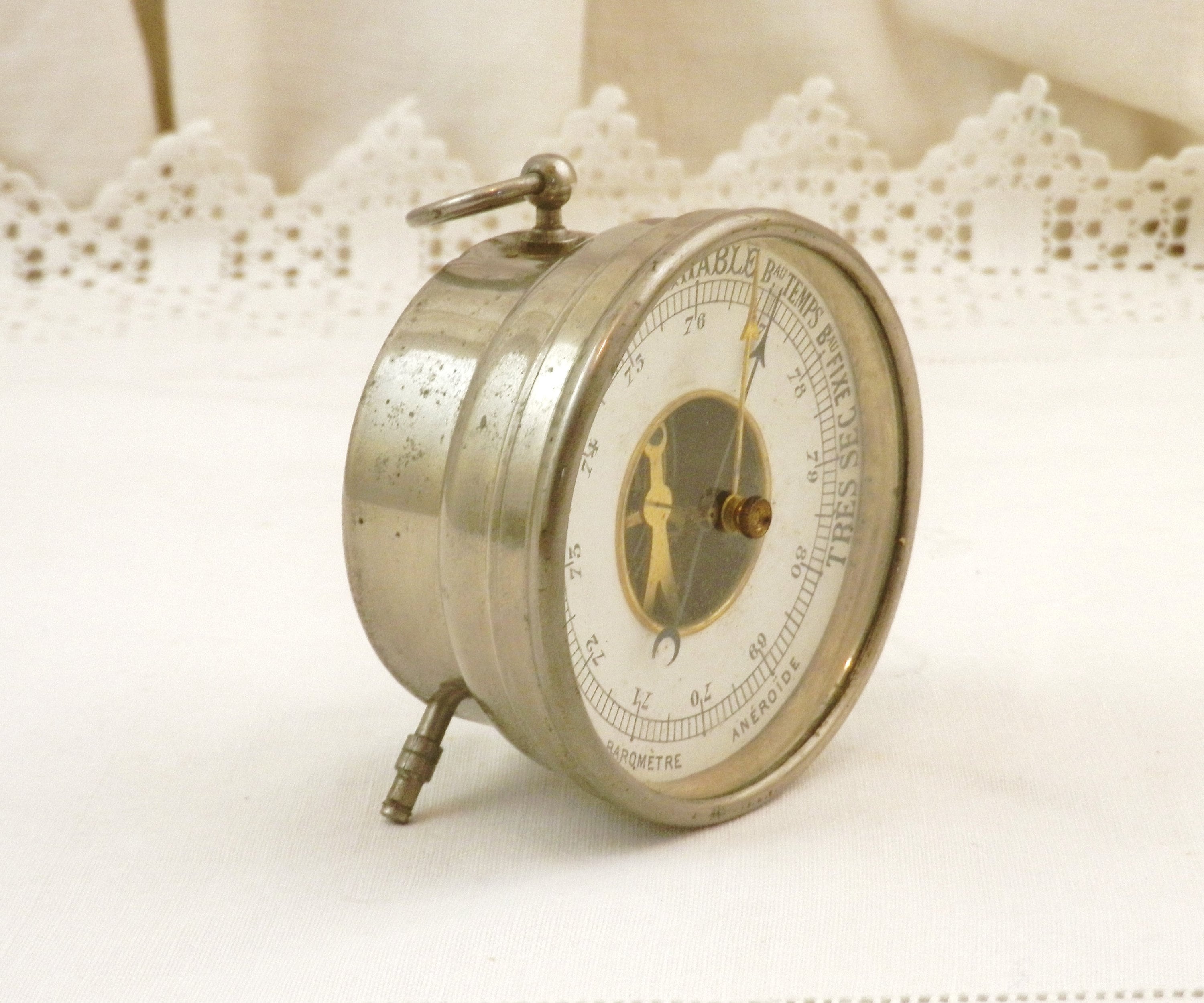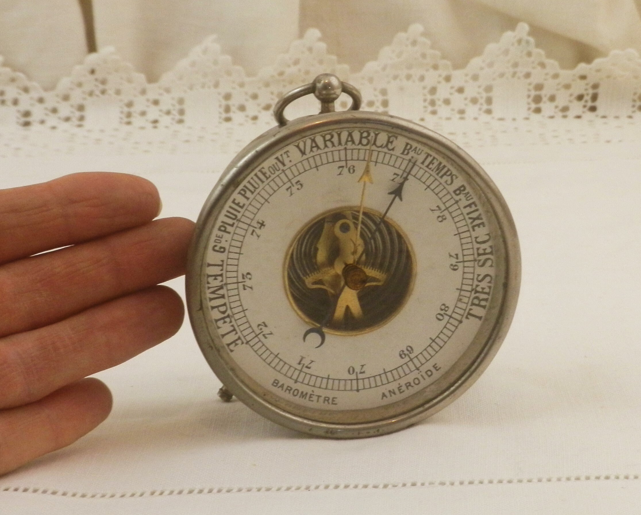 French antique mechanical barometer. Made of silver colored metal with glass. In working order although I am unsure of the accuracy. Circa early 1900s.