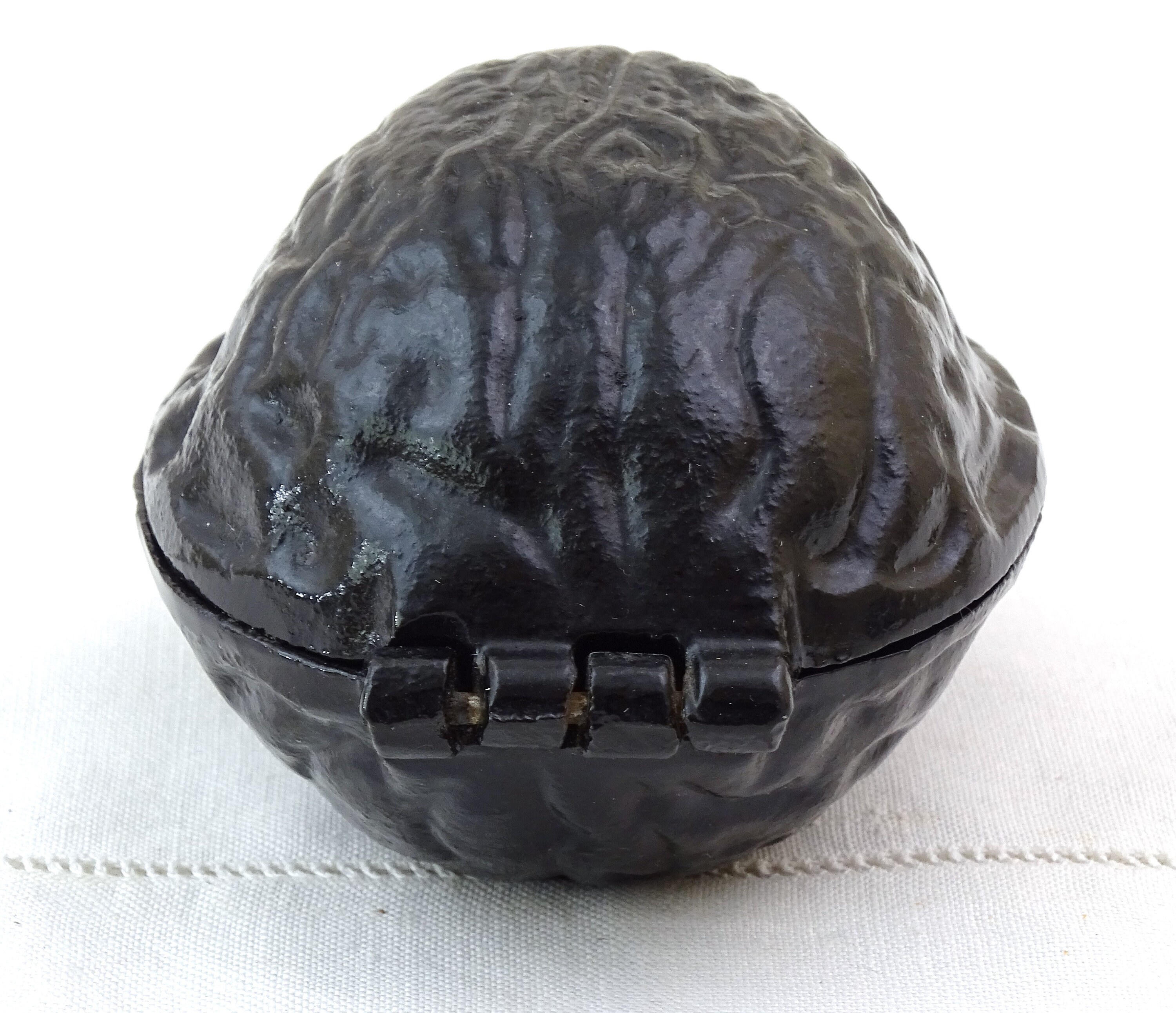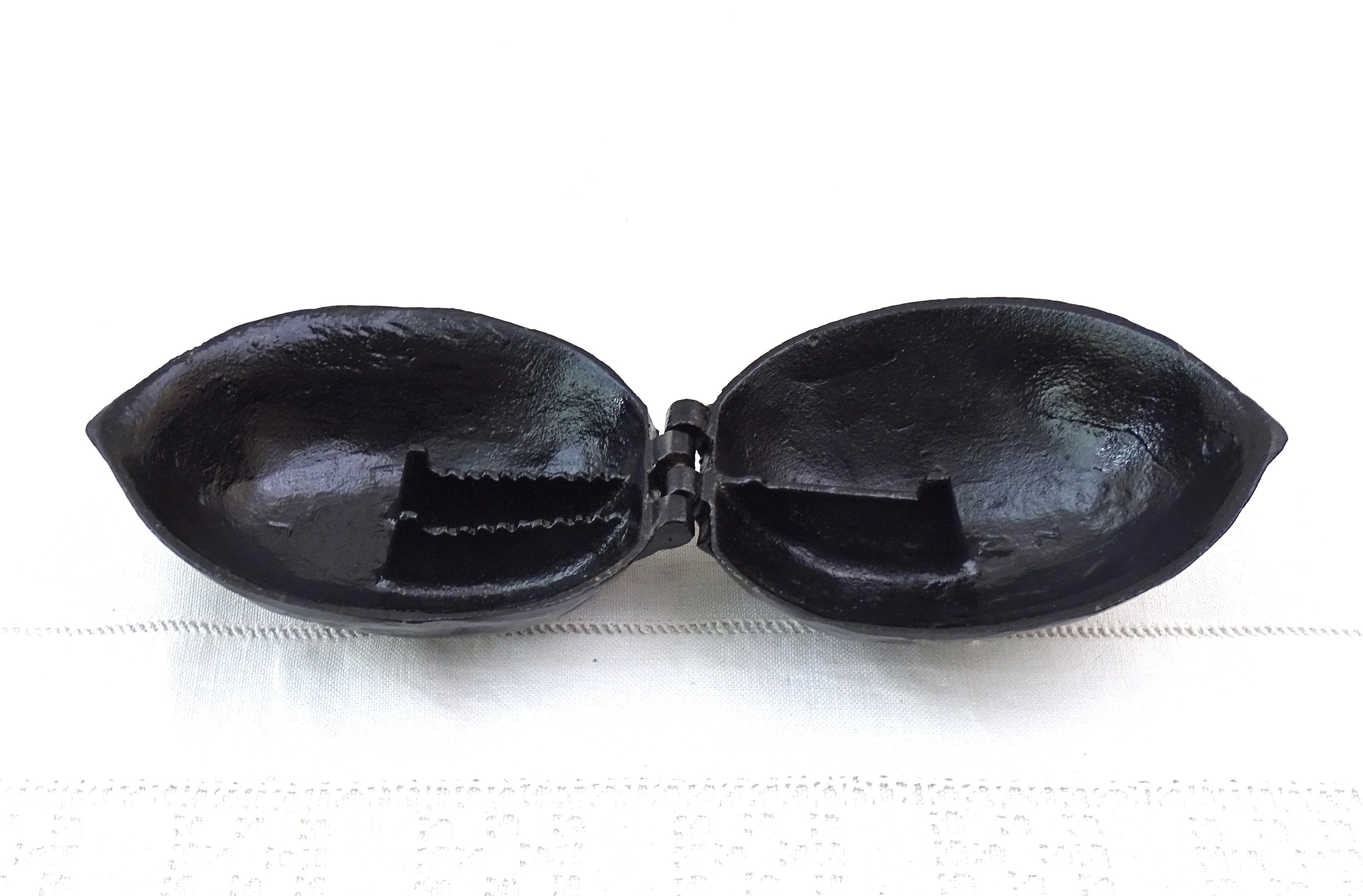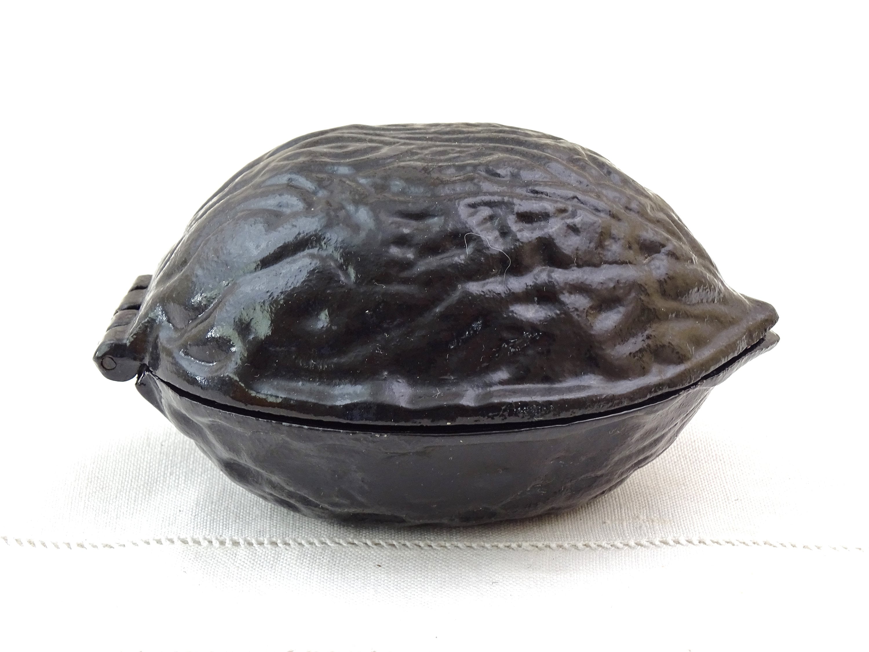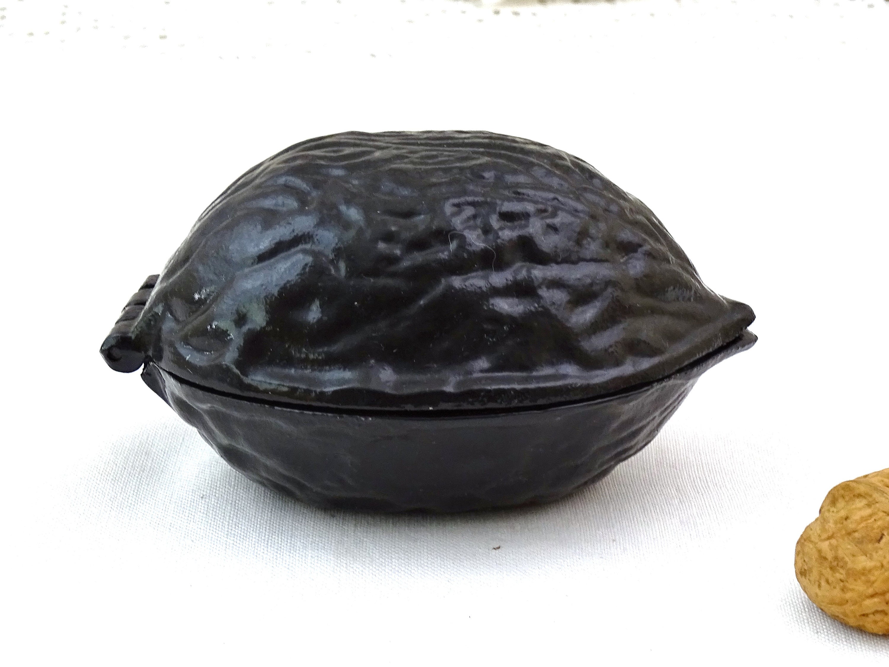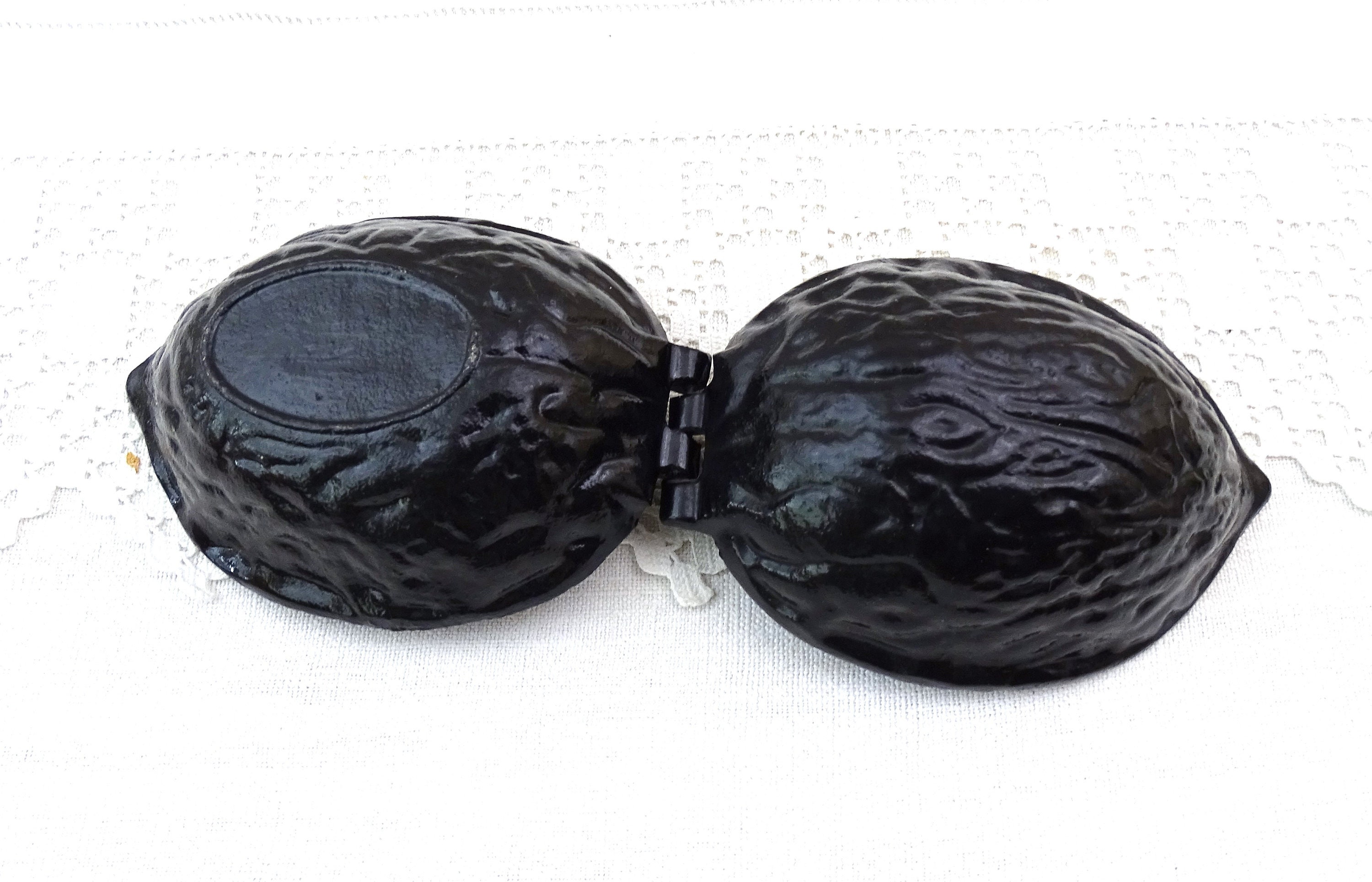 Vintage metal nut cracker shaped as a big walnut. Made of black colored metal. Circa 1980s.