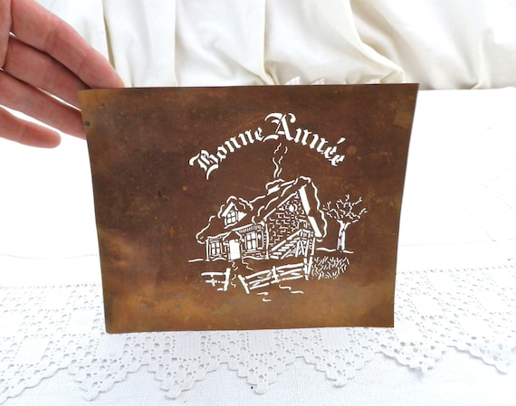 Rare Antique French Embroidery Metal and Wooden Thin Border Stamp Mid 19th C, Retro Collectible Sewing Craft Item from Normandy France