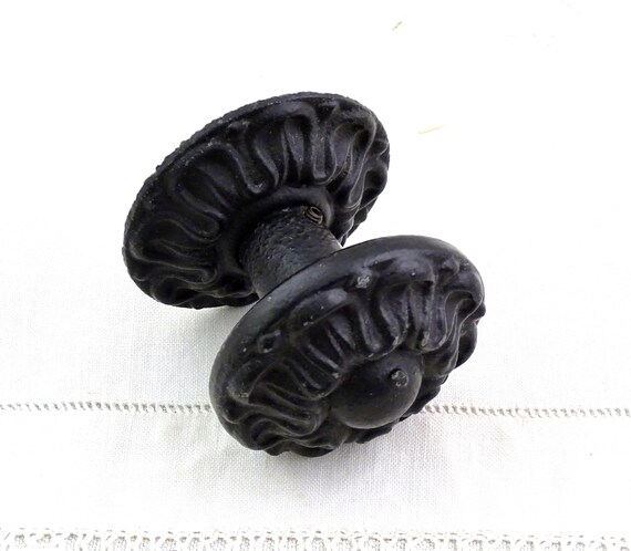 Round Antique French Brass Door Knob, Vintage Furniture Push Pull Handle made of Metal from France, Primitive Old Style Furniture Item